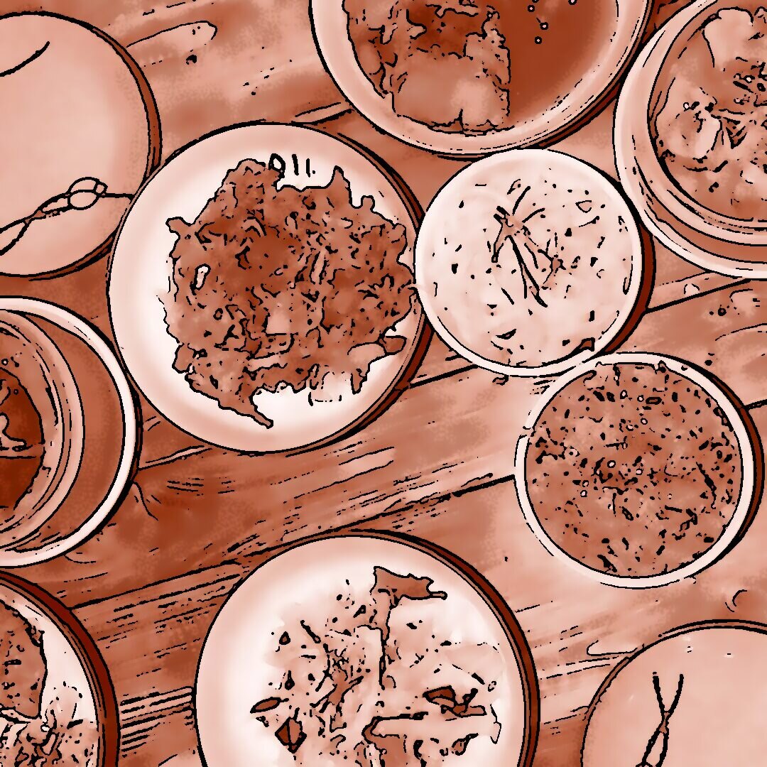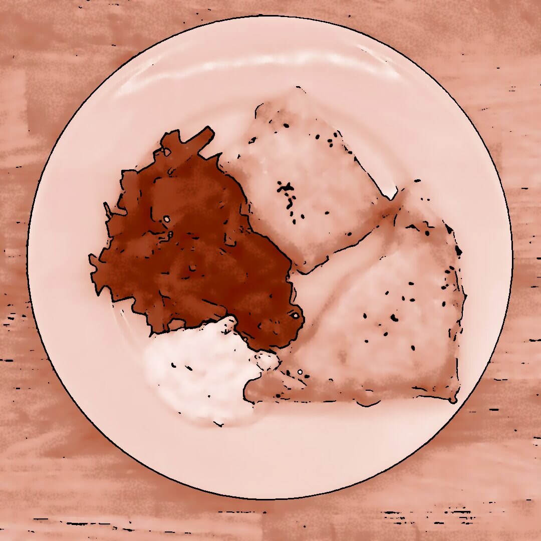 26.12.2025 Weihnachtsmenu Tag 2: Kürbis-Suppe, frittierte Okraschoten, Chaat-Masala-Kartoffeln, Karottenpüree, Hummus mit Vollkornpita, Schokoladenmousse