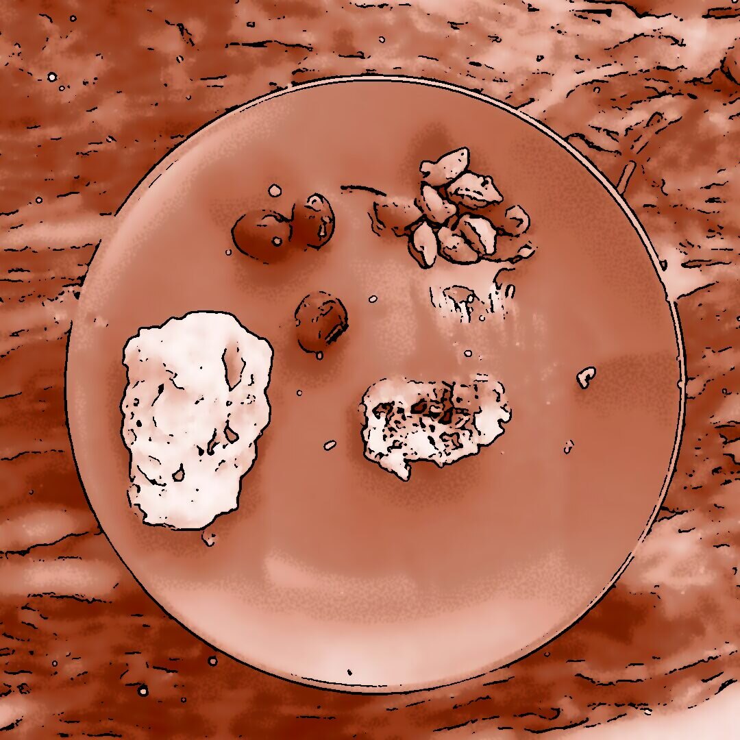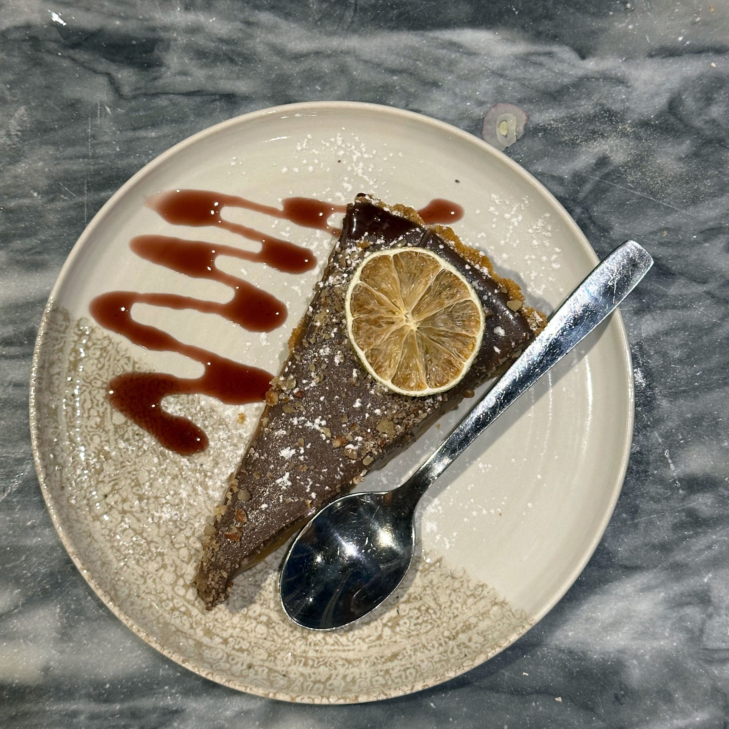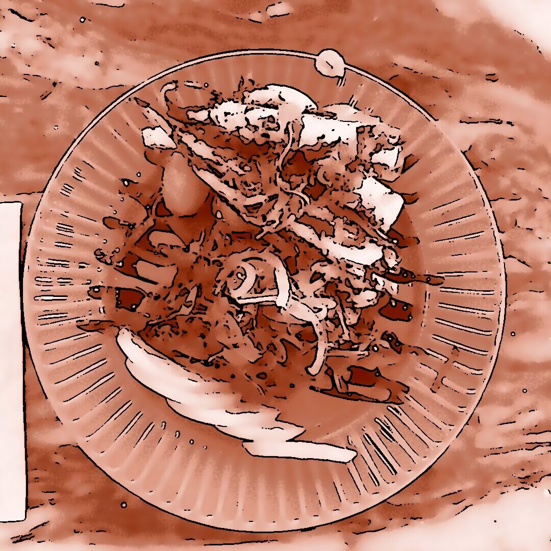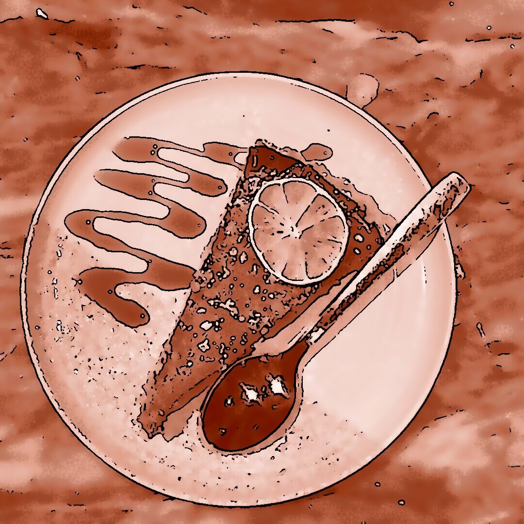 Essengehen mit der Familie in Baleal: Brot und Oliven als Starter, geschmorter und gebratener Tintenfisch mit Bratkartoffeln und Tomatensalat als Hauptgang und zum Dessert Pekanuss-Kuchen.