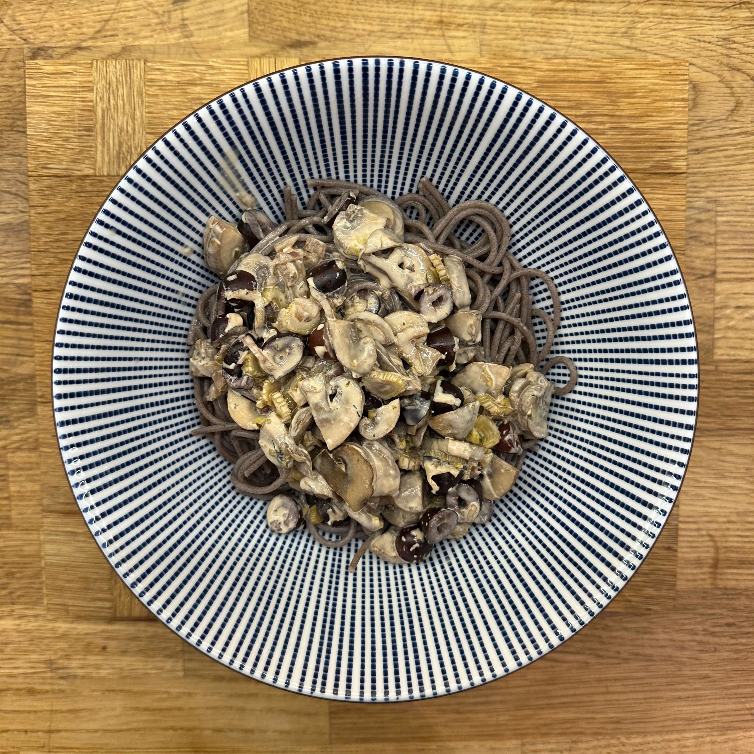 Karine kocht: 400gr Champignons in Scheiben schneiden und in etwas Öl in mehreren Chargen kräftig anbraten. 1 gewürfelte Zwiebel in etwas Öl anbraten, Champignons dazugeben, 80gr Oliven in Scheiben unterrühren, mit 200ml Brühe ablöschen und 10min köcheln lassen. 1 Becher Hafersahne einrühren, kurz aufkochen und mit Salz, Pfeffer, getrockneten Kräutern und Saft von 0,5 Zitrone abschmecken. Buchweizennudeln 12min in Salzwasser kochen, Buchweizennudeln abgießen, mit der Soße in Schüsseln servieren und mit gehackter Petersilie bestreuen.