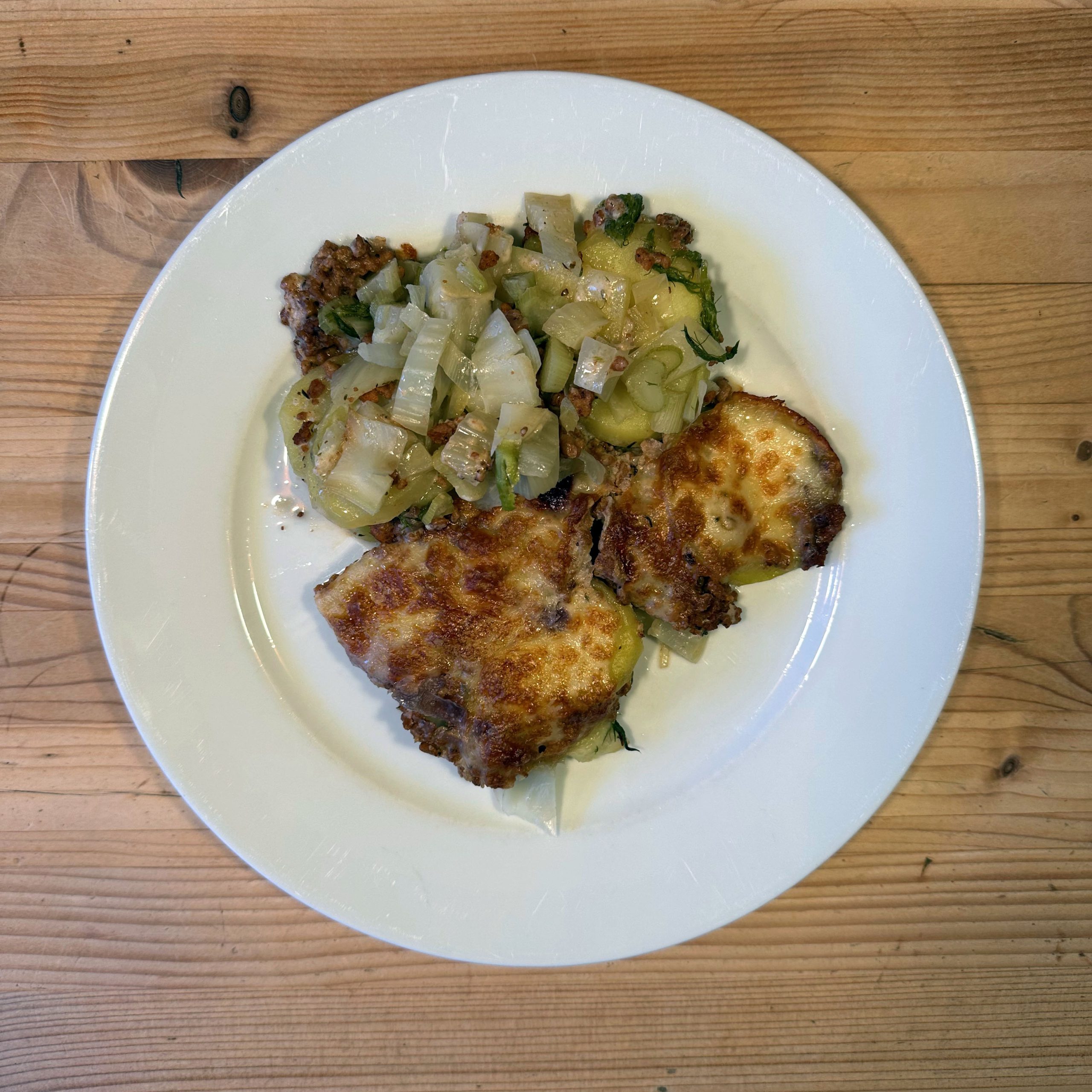 Karine kocht: 1 kg Kartoffeln und 3 Fenchelknollen schälen bzw. putzen und mit der Mandoline in dünne Scheiben hobeln. 3 Stangen Sellerie in dünne Scheiben schneiden. 2 gewürfelte Zwiebeln in etwas Öl anbraten, Fenchel und Sellerie dazugeben und 5 Min. mitbraten, mit 200 ml Brühe ablöschen und 10 Min. köcheln lassen. Kartoffel- und Fenchelscheiben abwechselnd in eine gefettete Auflaufform schichten, dabei immer wieder etwas Brühe zwischen die Schichten geben und mit Salz, Pfeffer und 1 TL Fenchelsamen würzen. Form abdecken und bei 180° Umluft 1 h backen, dann den Deckel abnehmen, 2 Mozzarella in Scheiben auf dem Auflauf verteilen und weitere 15 Min. offen backen, bis der Käse goldbraun ist.
