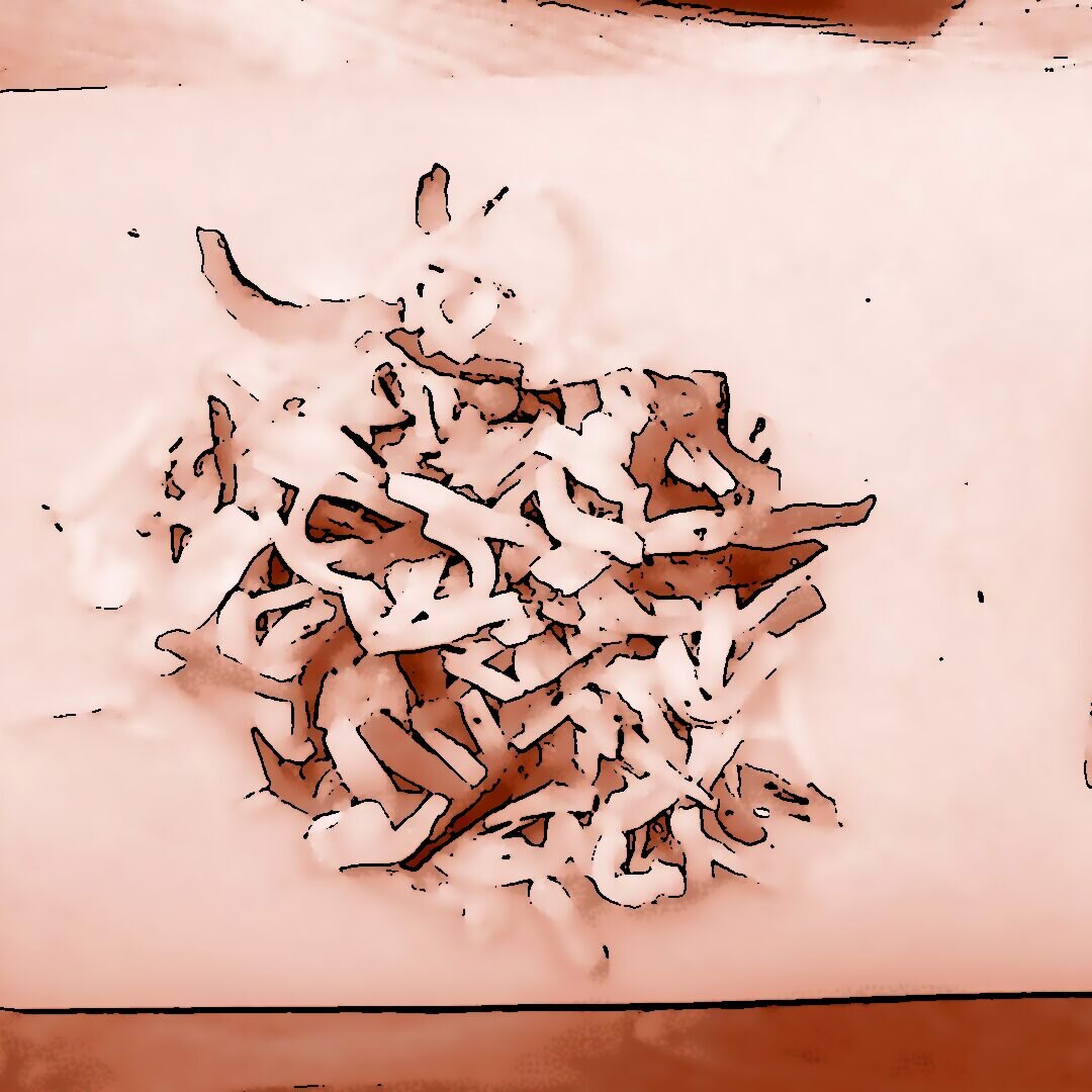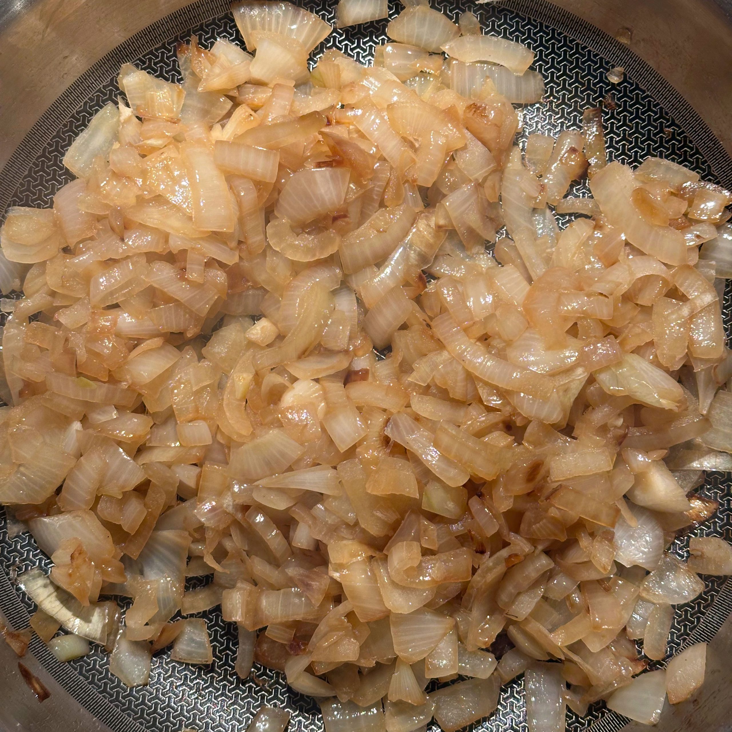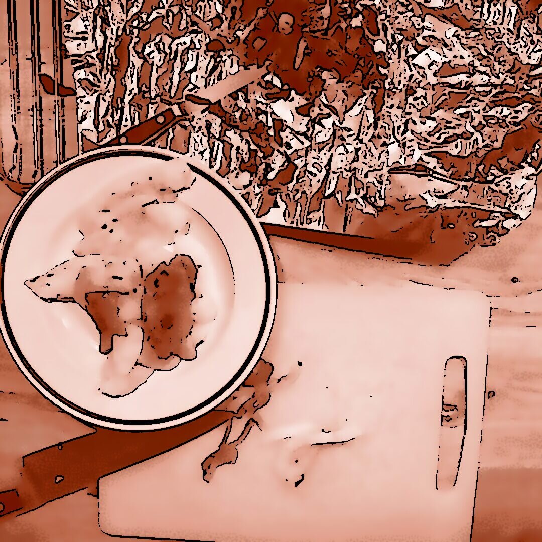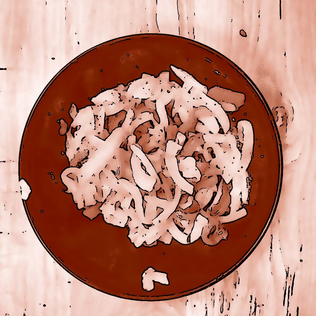 Der Rest Vollkornteig wird aufgebraucht: Eine Pizza belegt mit Crème fraîche und lang geschmorten Zwiebeln, die andere mit Gemüse. Dazu ein Paprikasalat aus gebrannten Paprika aus dem Ofen.