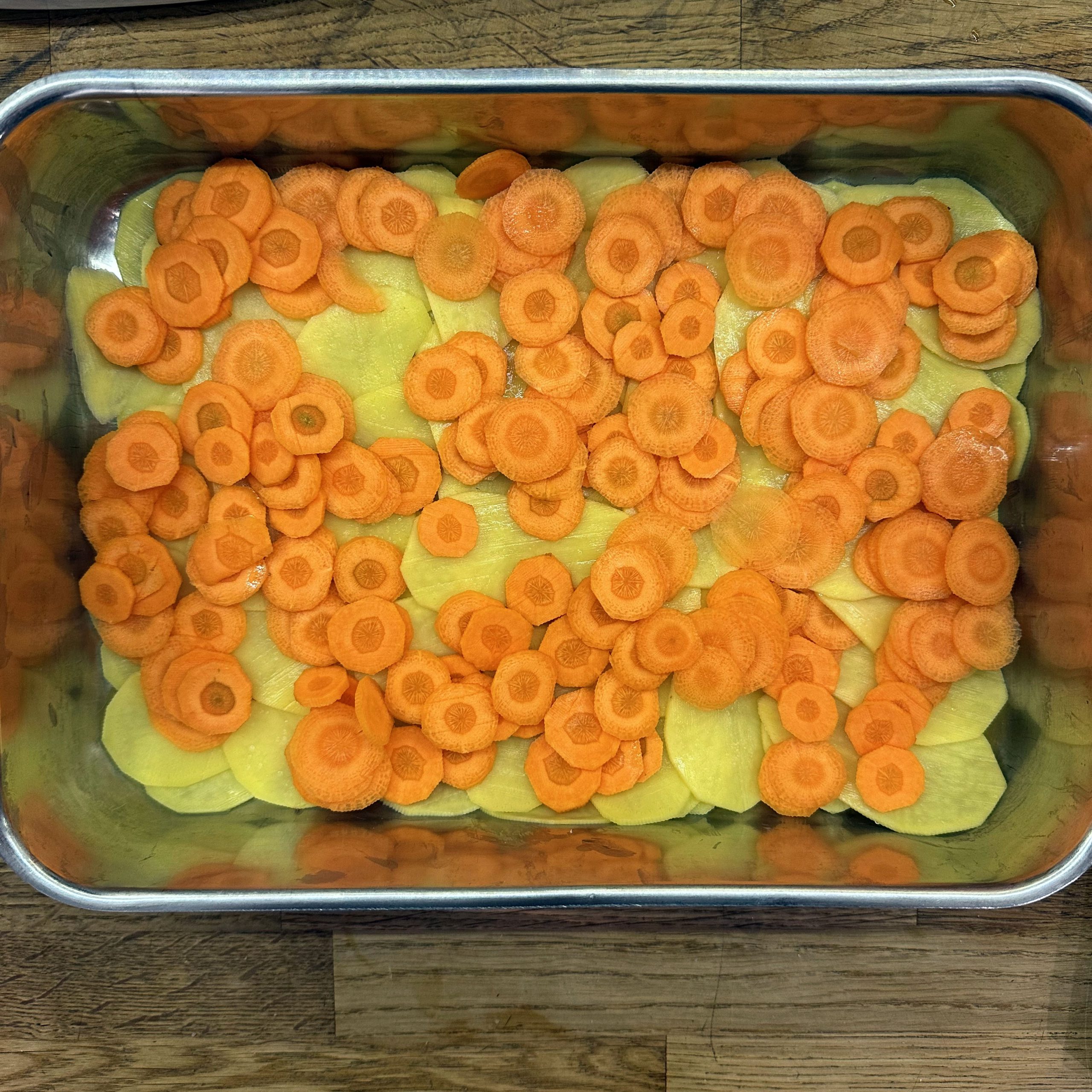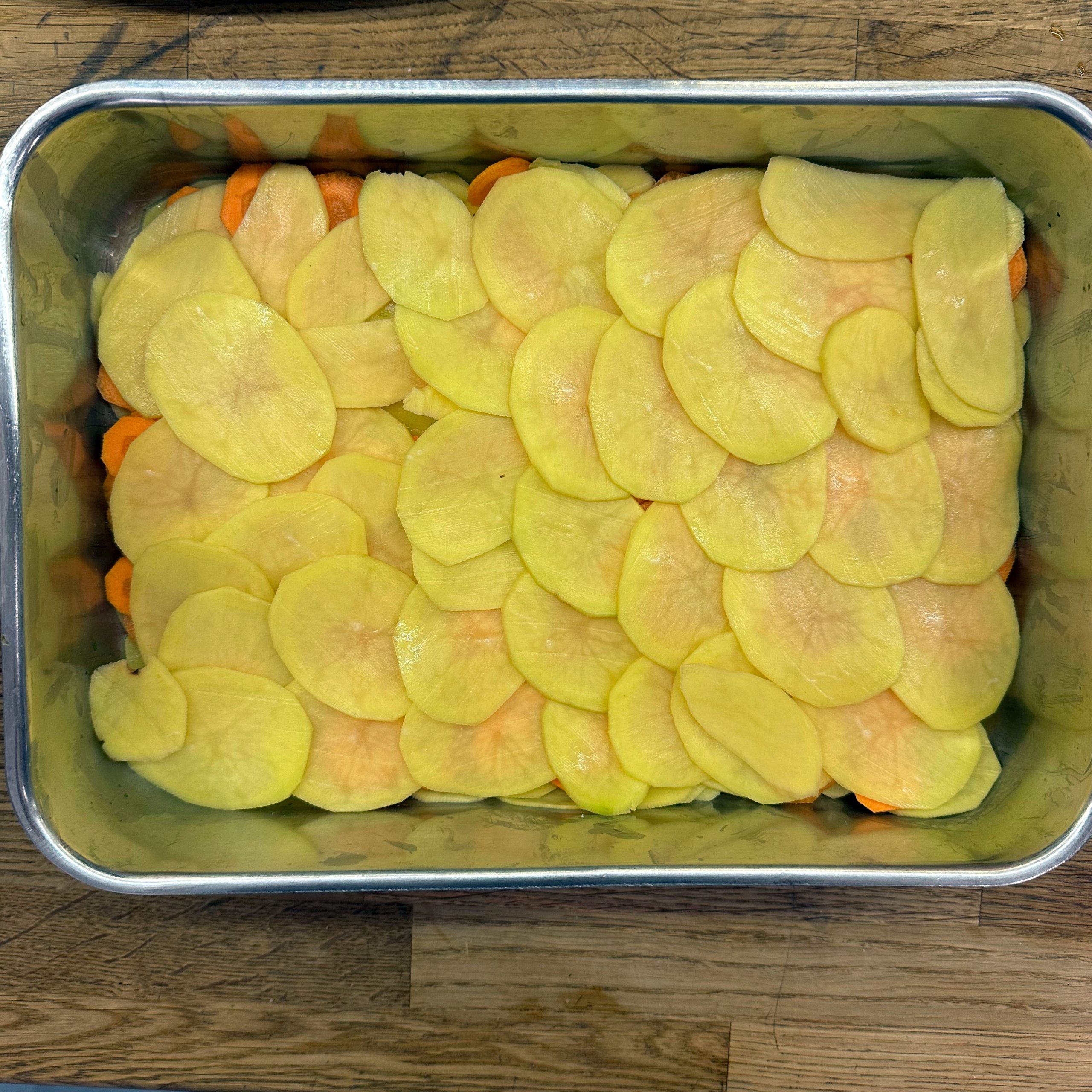 Auflauf Deutsch Gebacken Gebraten Gedünstet Vegan Winter Chicorée Kartoffelgratin Möhren
