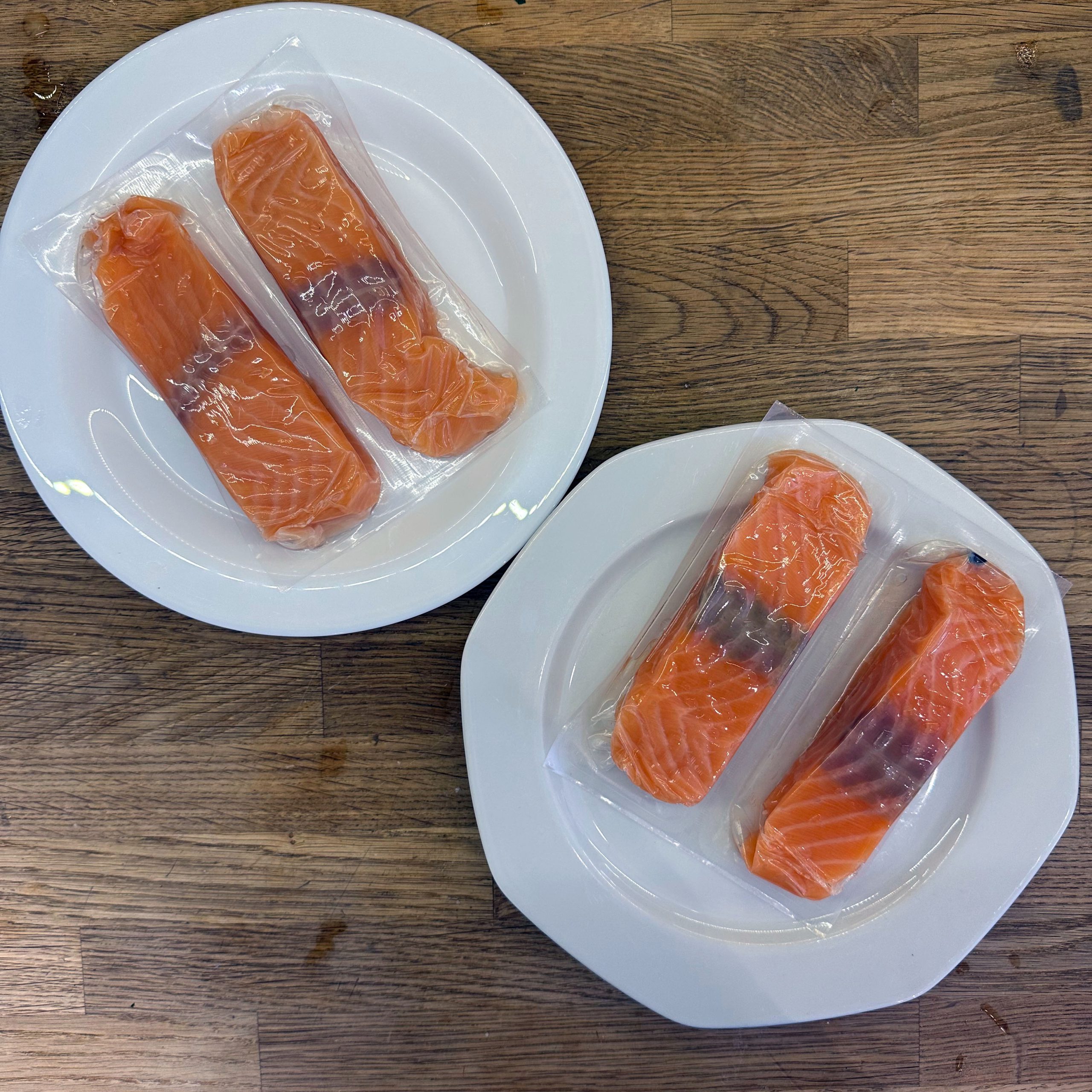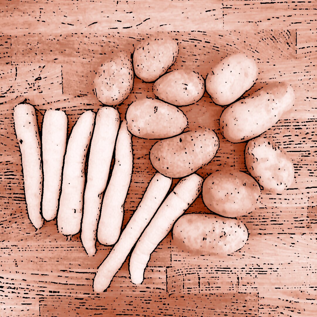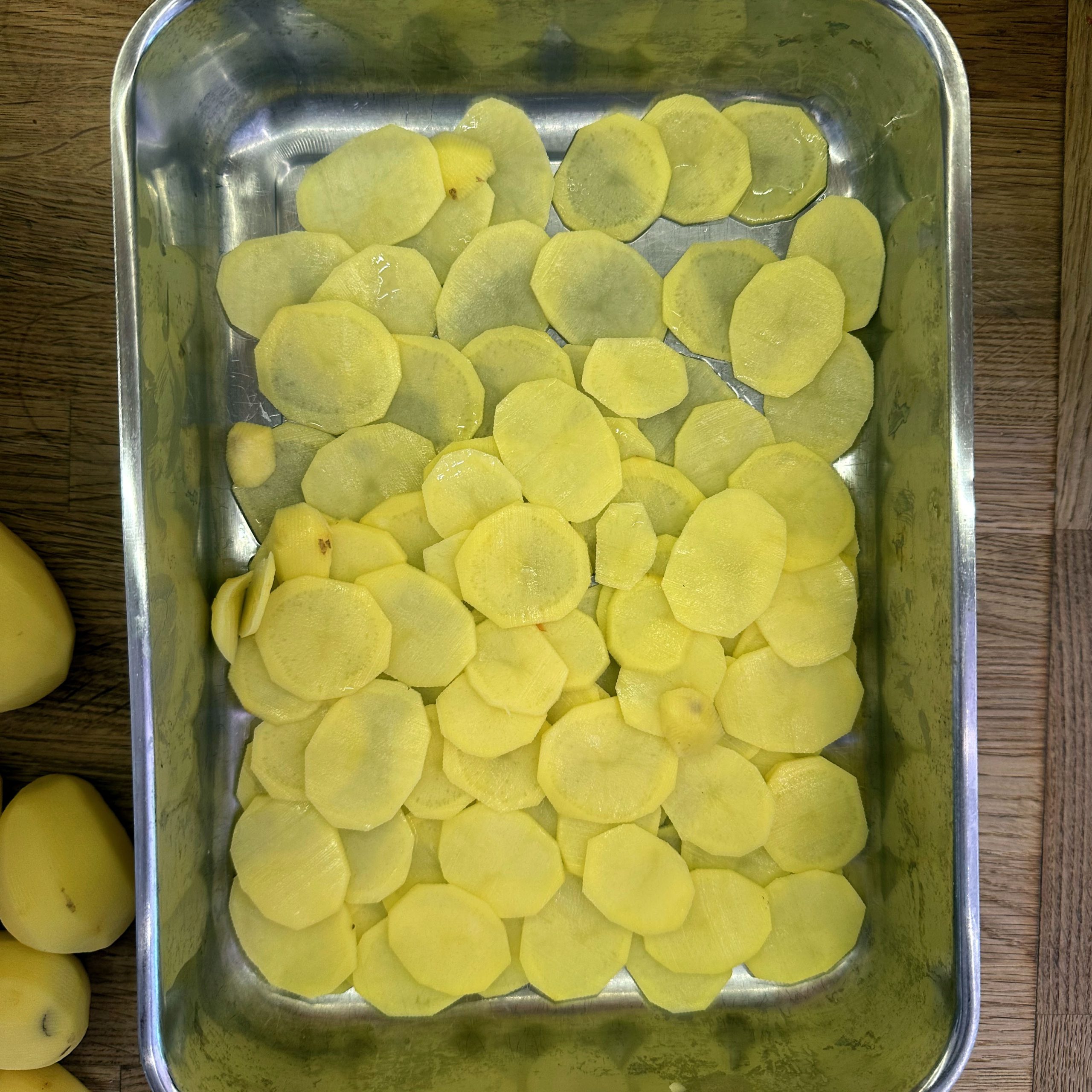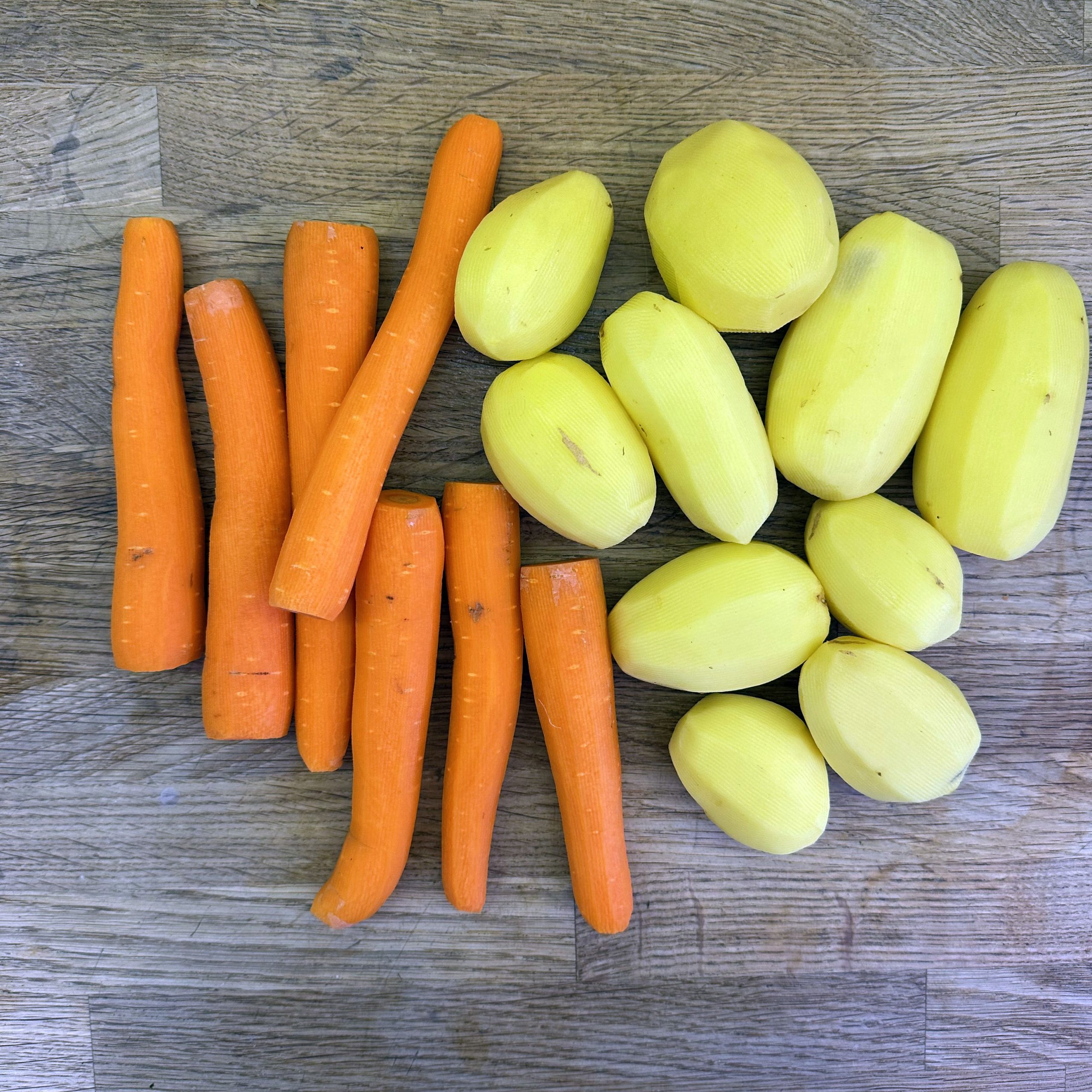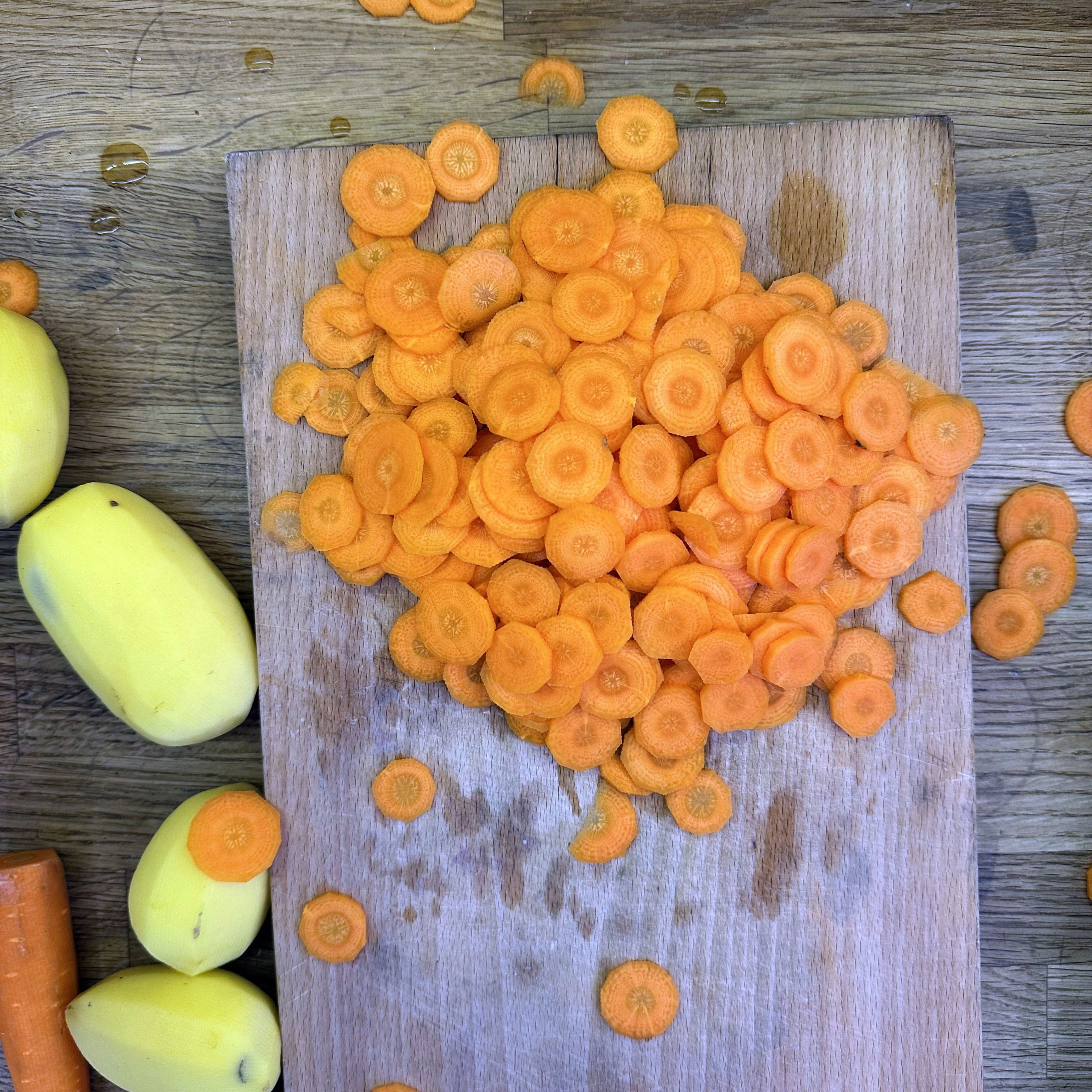 800 g Kartoffeln und 400 g Möhren mit der Mandoline in dünne Scheiben hobeln. 100 ml Brühe mit 200 ml Mandelsahne verrühren und mit Salz und Pfeffer würzen. Eine gefettete Auflaufform vorbereiten und Kartoffel- und Möhrenscheiben abwechselnd in Fischschuppenform einschichten, dazwischen eine Schicht gehackte Petersilie verteilen und alles immer wieder mit der Brühe-Mandelsahne-Mischung übergießen. Form abdecken und bei 180 °C Umluft 1 h backen, dann den Deckel abnehmen und weitere 15 min offen backen. Für den Dip Quark mit Joghurt, gehacktem Koriander, Salz, Pfeffer und dem Saft von 0,5 Zitrone verrühren. 4 Lachsfilets salzen und pfeffern, in einen Dampfeinsatz legen und über leicht kochendem Wasser 13 min dämpfen. Gedämpften Lachs mit dem Kartoffel-Karotten-Gratin und dem Quark-Koriander-Dip auf Tellern anrichten.