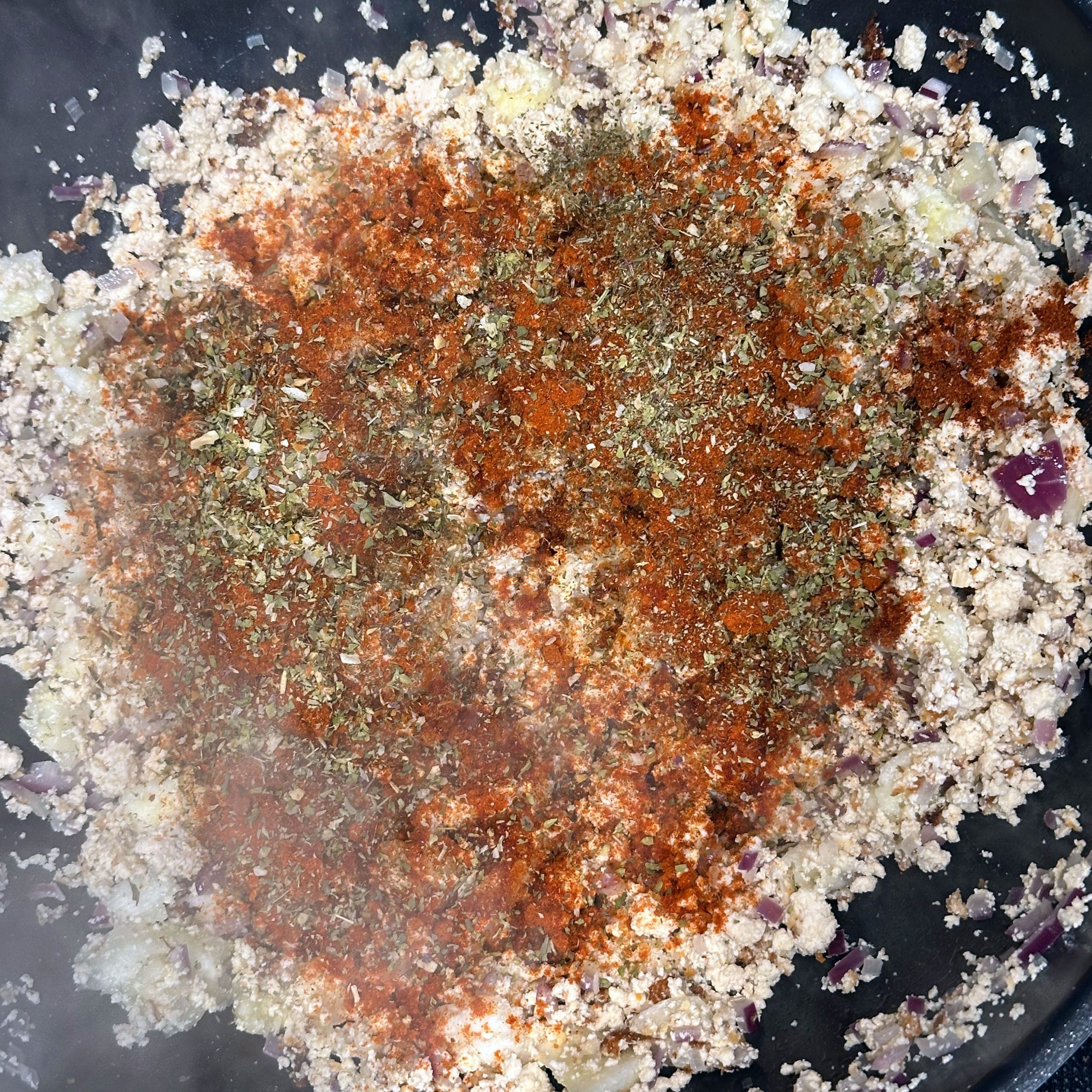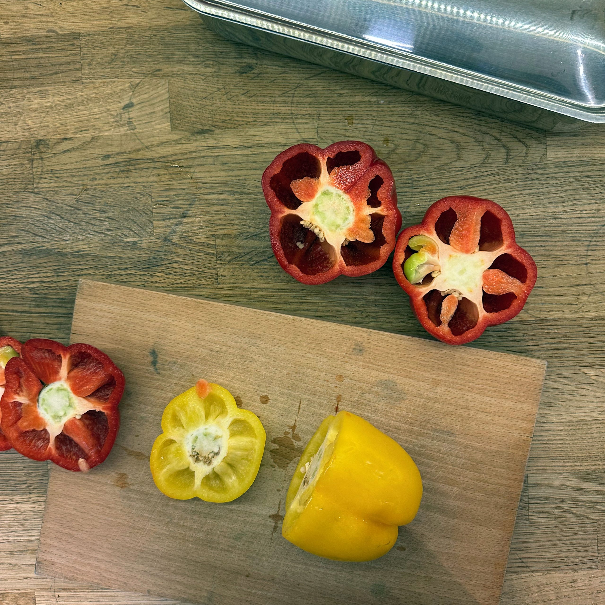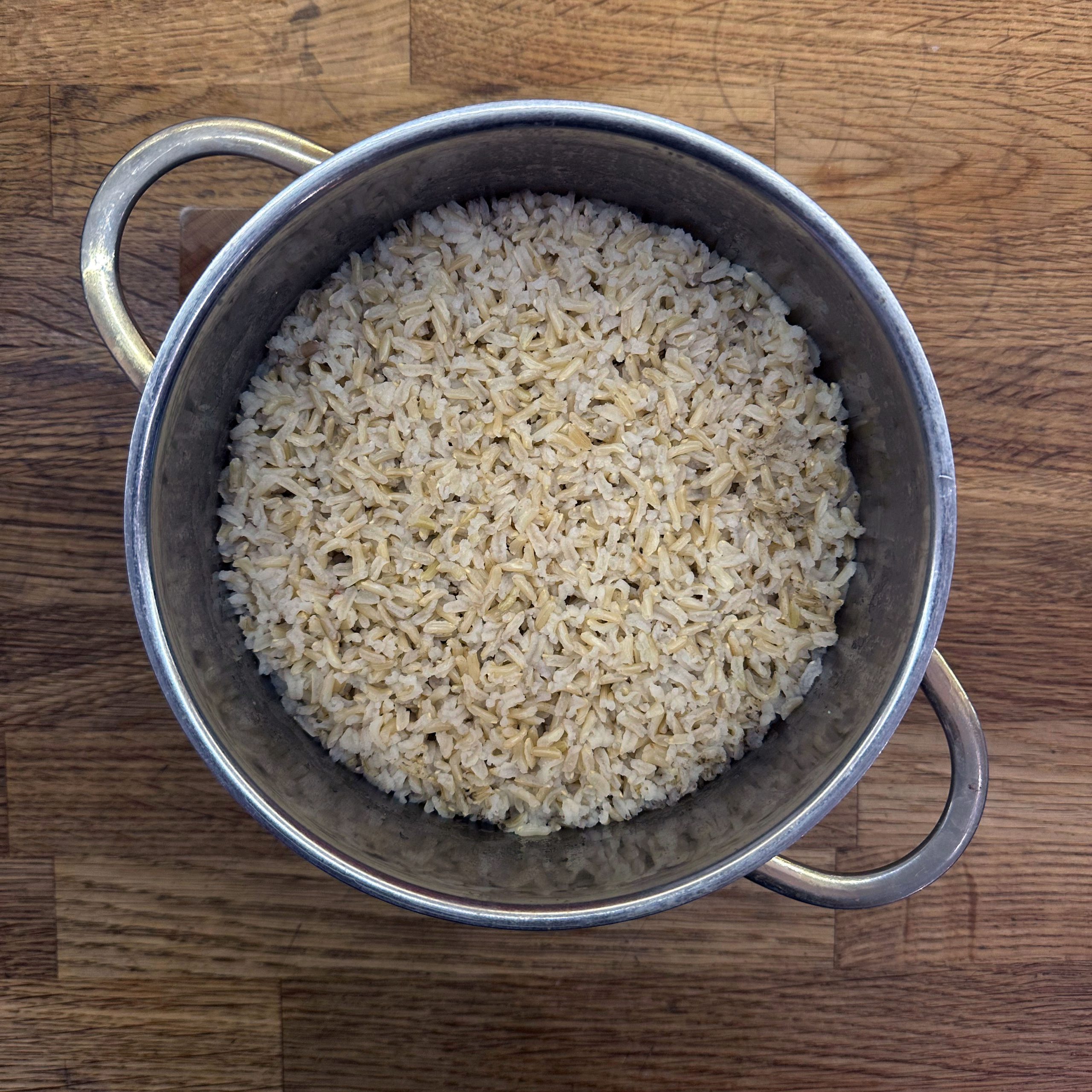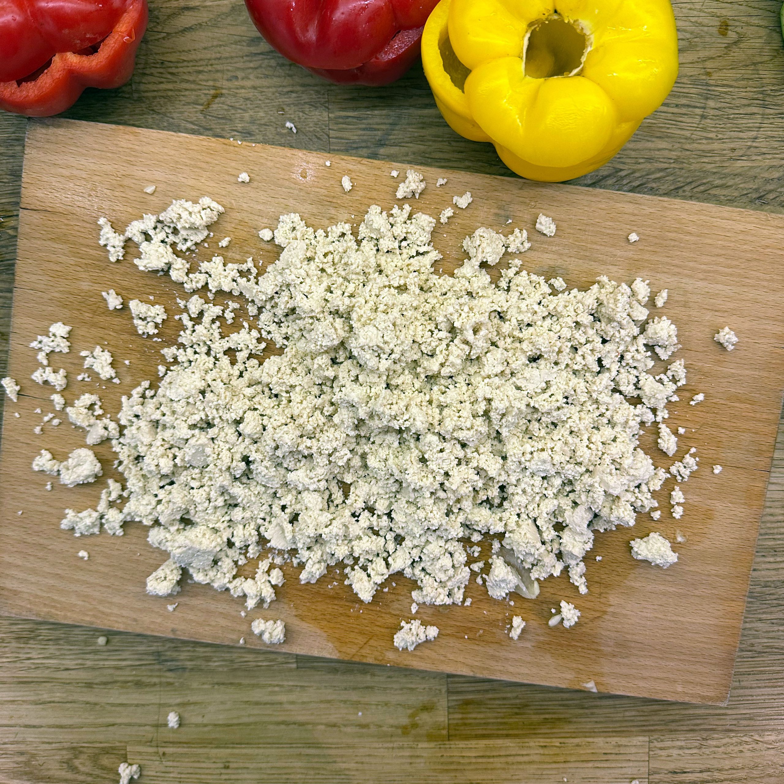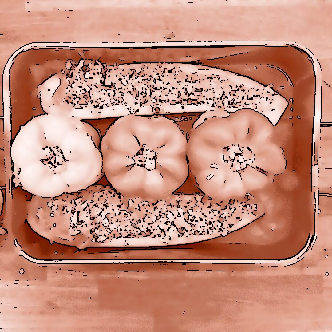 3 Paprikaschoten waschen, die Deckel abschneiden und das Kerngehäuse entfernen. 1 große Zucchini längs halbieren, das Fruchtfleisch mit einem Löffel aushöhlen und beiseite stellen. Für die Füllung 400g Tofu zerkrümeln und in einer Pfanne mit 2 EL Olivenöl scharf anbraten, 1 gewürfelte Zwiebel hinzufügen und glasig dünsten, das gehackte Zucchinifruchtfleisch, 2 EL Tomatenmark, 100g gekochten Basmatireis, 1 TL Oregano, 1 TL Paprikapulver, Salz und Pfeffer unterrühren und etwa 5 Minuten köcheln lassen. Für die Tomatensoße 2 EL Tomatenmark, 300ml Wasser, 3 EL Olivenöl, 1 TL Kreuzkümmel, 1 TL Zucker und 400g gehackte Tomaten verrühren und mit Salz würzen. Den Boden einer Auflaufform mit der Tomatensoße ausgießen, die Paprika und Zucchinihälften mit der Tofuhack-Reis-Mischung füllen und aufrecht in die Form stellen. Bei 180°C etwa 35-40 Minuten backen, bis das Gemüse weich ist. Währenddessen 250g Vollkornreis mit der 1,5-fachen Menge Wasser (375ml) aufkochen und bei geringer Hitze 40 Minuten köcheln lassen. Die gefüllten Paprika und Zucchini mit dem Vollkornreis servieren.