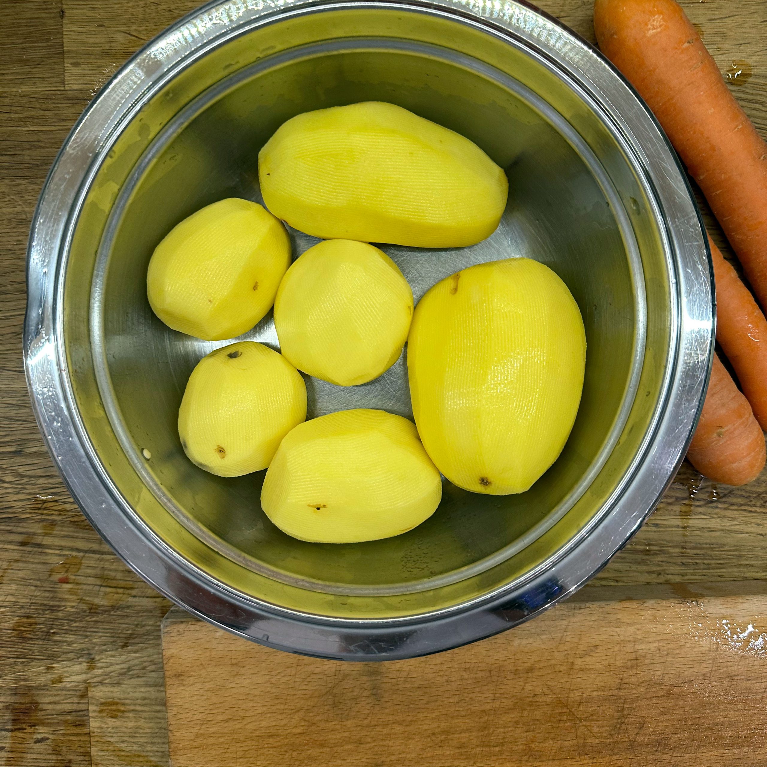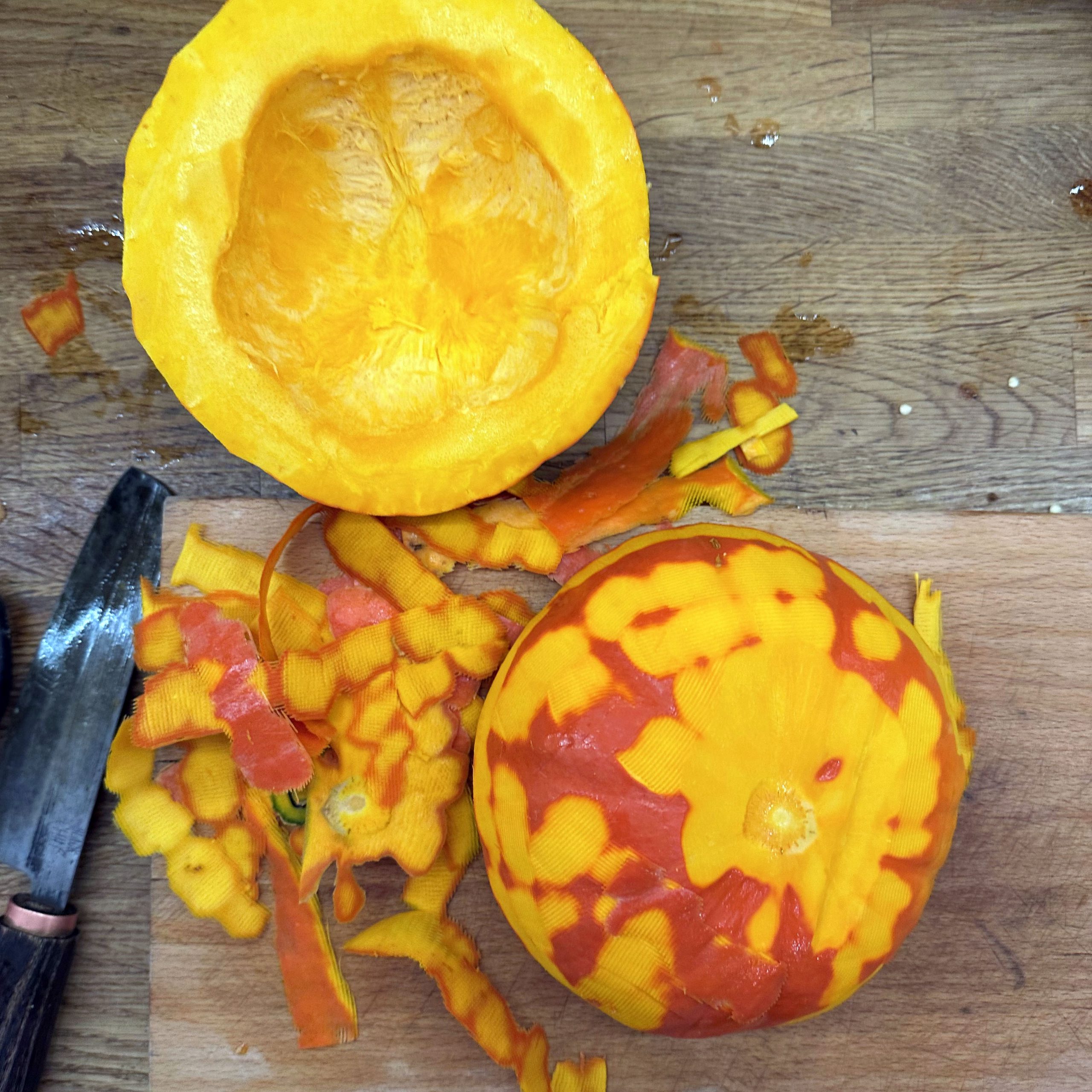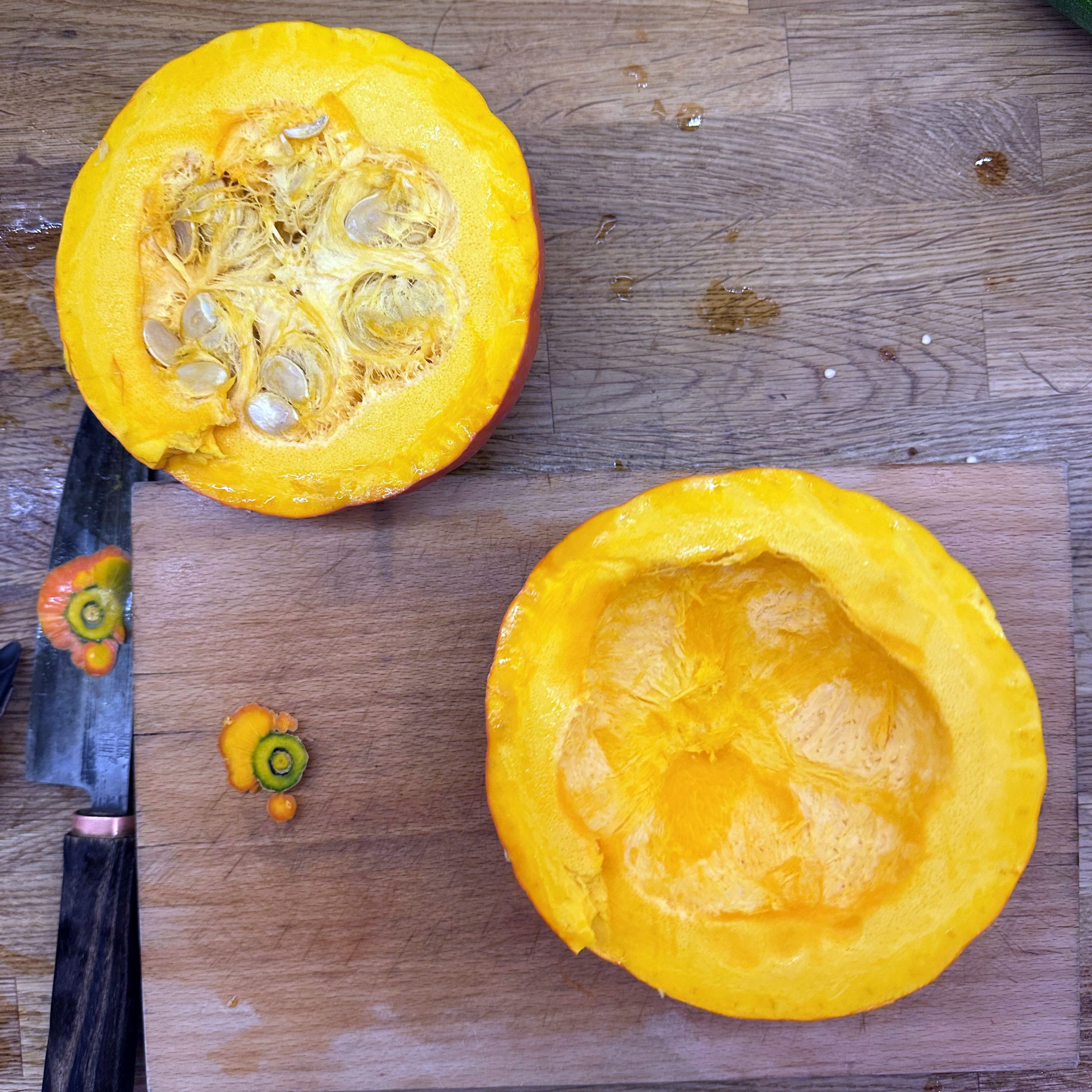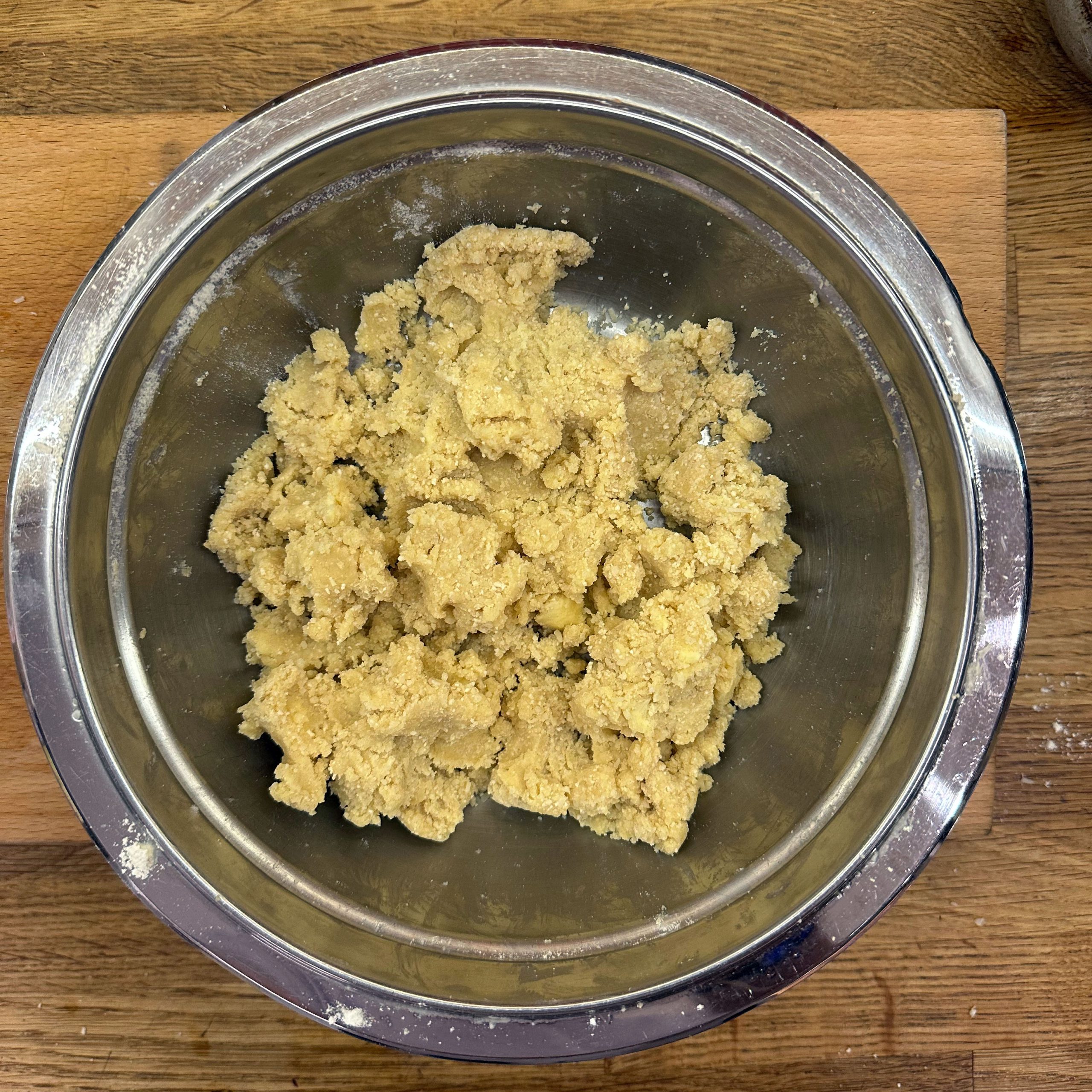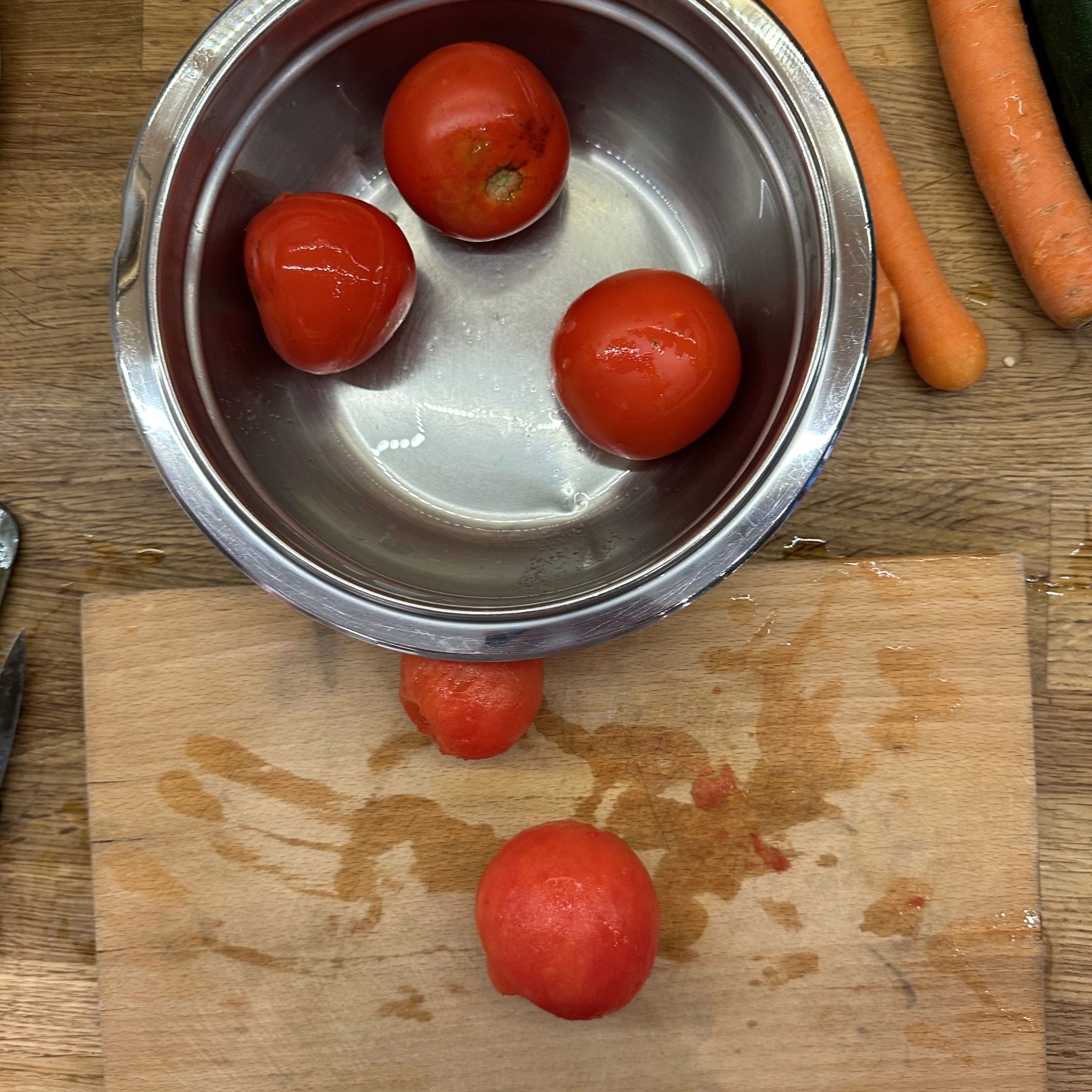 6 Kartoffeln, 5 Möhren, 0,5 Sellerieknolle, 1 Kürbis, 1 Zucchini und 3 Zwiebeln schälen bzw. putzen und in mundgerechte Stücke schneiden, 5 Tomaten mit kochendem Wasser übergießen, häuten und grob schneiden, alles mit etwas Öl, Salz und Pfeffer mischen und auf 3 Bleche verteilen. Bei 210° Umluft garen und dabei die Blechpositionen zwischendurch wechseln, bis das Gemüse weich und gut gebräunt ist. 1 Paprika halbieren, entkernen und unter dem Grill rösten, Haut abziehen, in Streifen schneiden, salzen und in Öl und Balsamico marinieren. Ofengemüse gemischt in eine große Auflaufform schichten, auf die Hälfte 150gr Schafskäse zerbröseln, den Rest Gemüse daraufgeben und die marinierten Paprikastreifen darauf verteilen. 140gr Butter, 50gr Paniermehl, 120gr Dinkelmehl und 100gr geriebenen Parmesan zu Streuseln verkneten und als Crumble-Topping auf der Form verteilen. Gemüsecrumble bei 200° Umluft 18min backen, bis die Streusel goldbraun sind. In Schalen servieren.