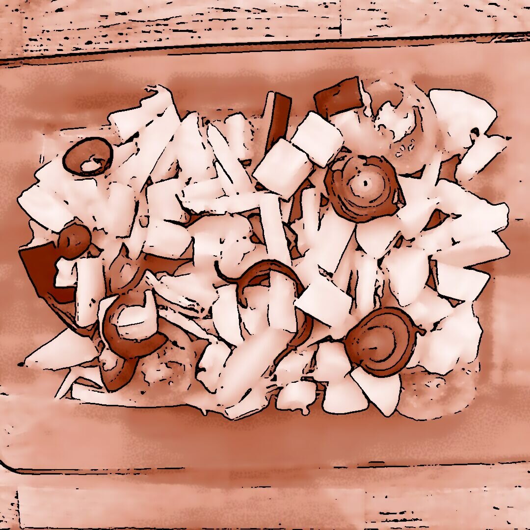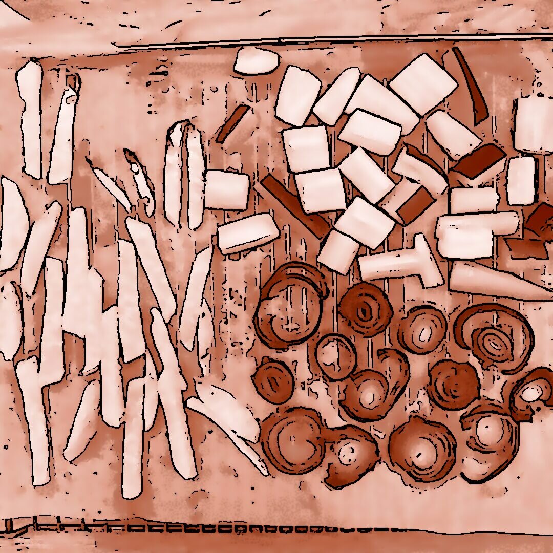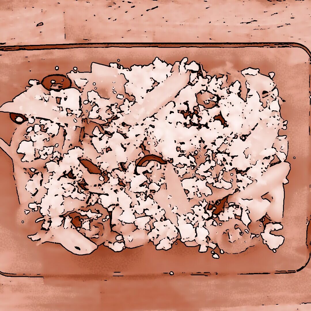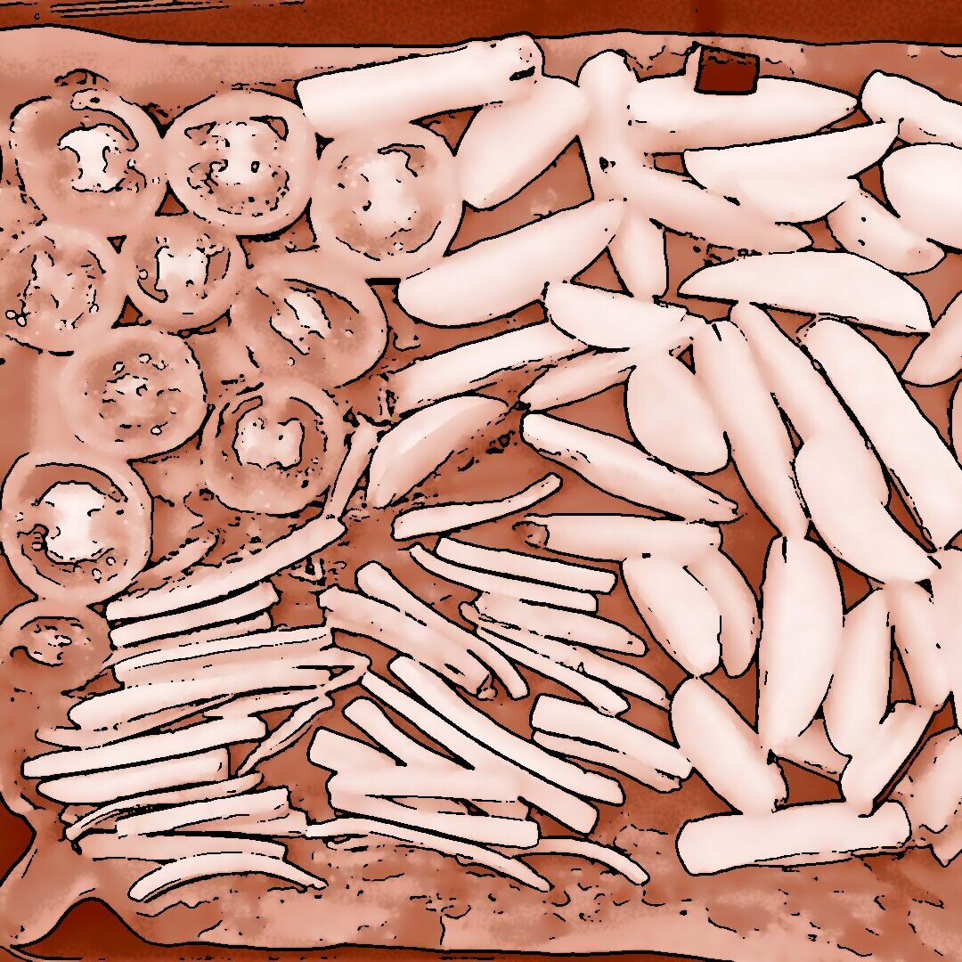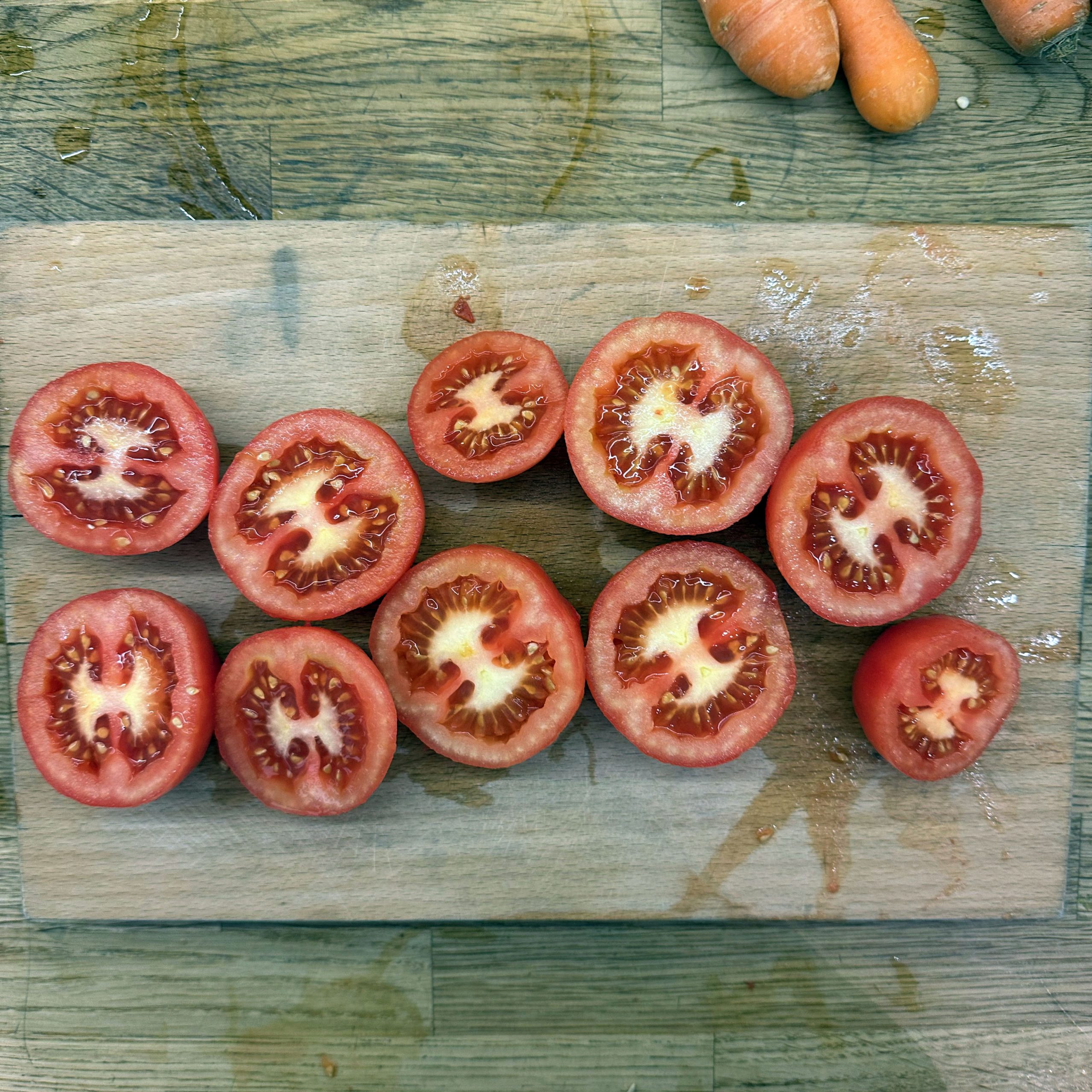 6 Kartoffeln, 5 Möhren, 0,5 Sellerieknolle, 1 Kürbis, 1 Zucchini und 3 Zwiebeln schälen bzw. putzen und in mundgerechte Stücke schneiden, 5 Tomaten mit kochendem Wasser übergießen, häuten und grob schneiden, alles mit etwas Öl, Salz und Pfeffer mischen und auf 3 Bleche verteilen. Bei 210° Umluft garen und dabei die Blechpositionen zwischendurch wechseln, bis das Gemüse weich und gut gebräunt ist. 1 Paprika halbieren, entkernen und unter dem Grill rösten, Haut abziehen, in Streifen schneiden, salzen und in Öl und Balsamico marinieren. Ofengemüse gemischt in eine große Auflaufform schichten, auf die Hälfte 150gr Schafskäse zerbröseln, den Rest Gemüse daraufgeben und die marinierten Paprikastreifen darauf verteilen. 140gr Butter, 50gr Paniermehl, 120gr Dinkelmehl und 100gr geriebenen Parmesan zu Streuseln verkneten und als Crumble-Topping auf der Form verteilen. Gemüsecrumble bei 200° Umluft 18min backen, bis die Streusel goldbraun sind. In Schalen servieren.