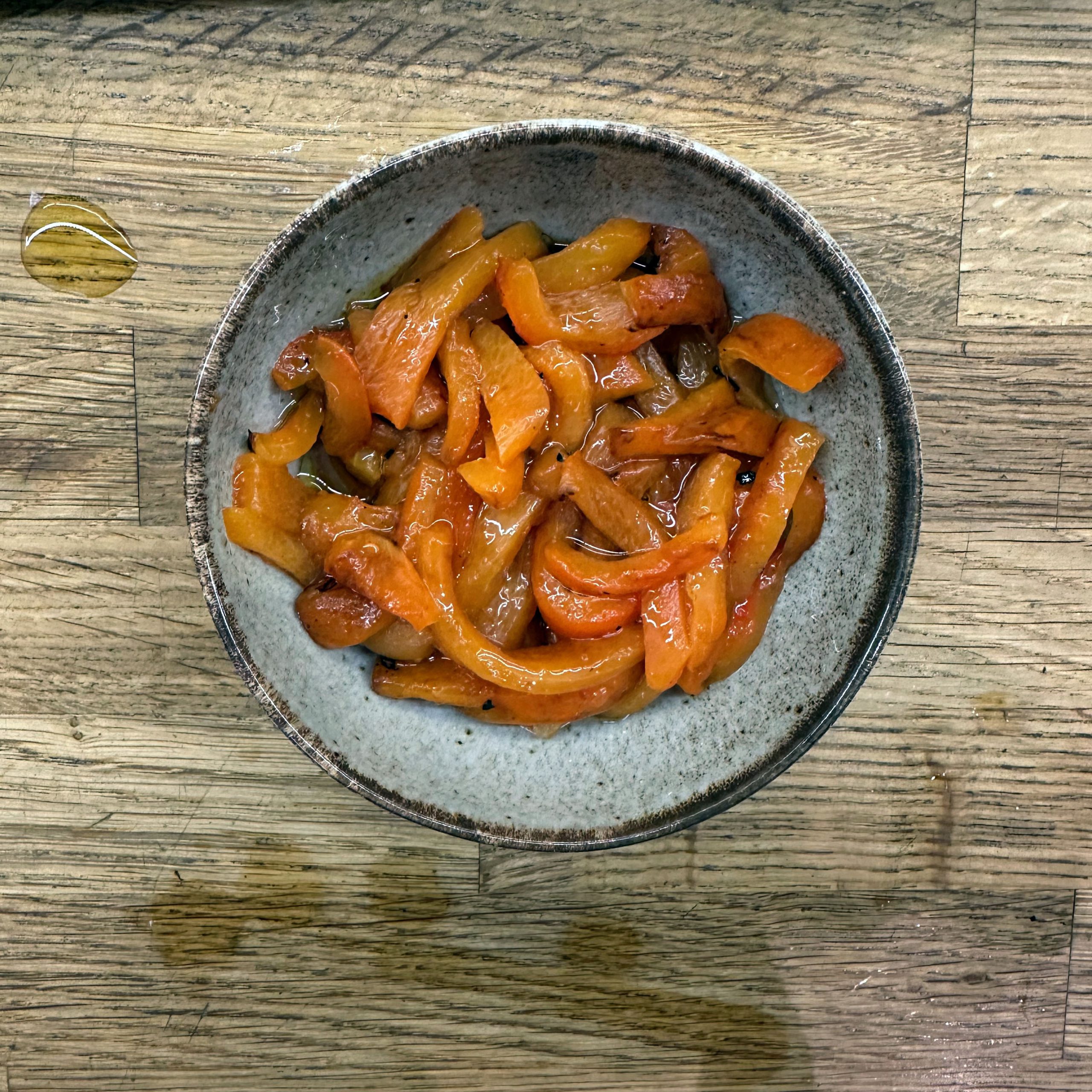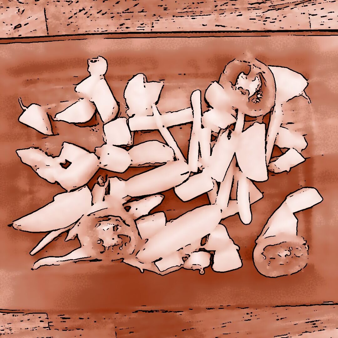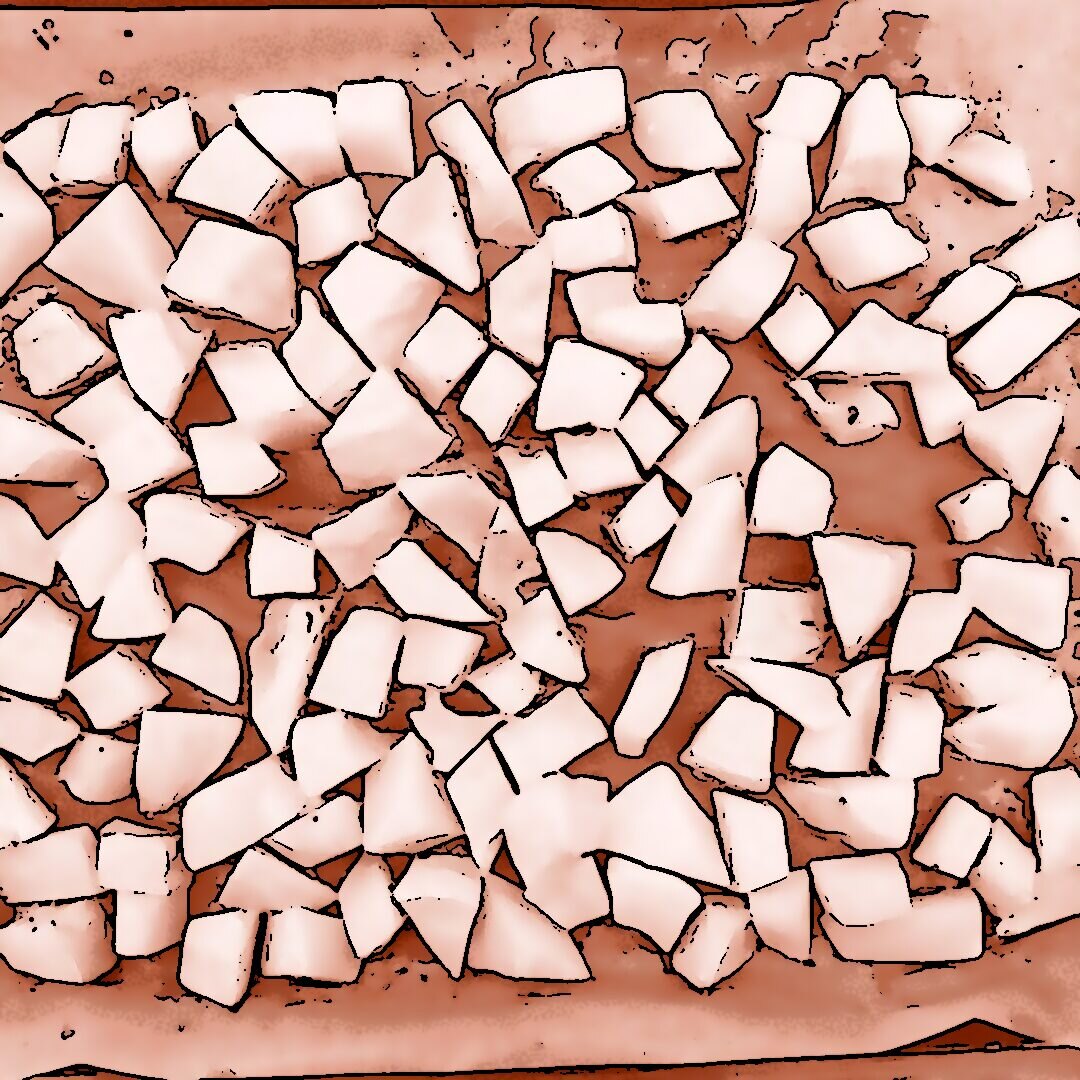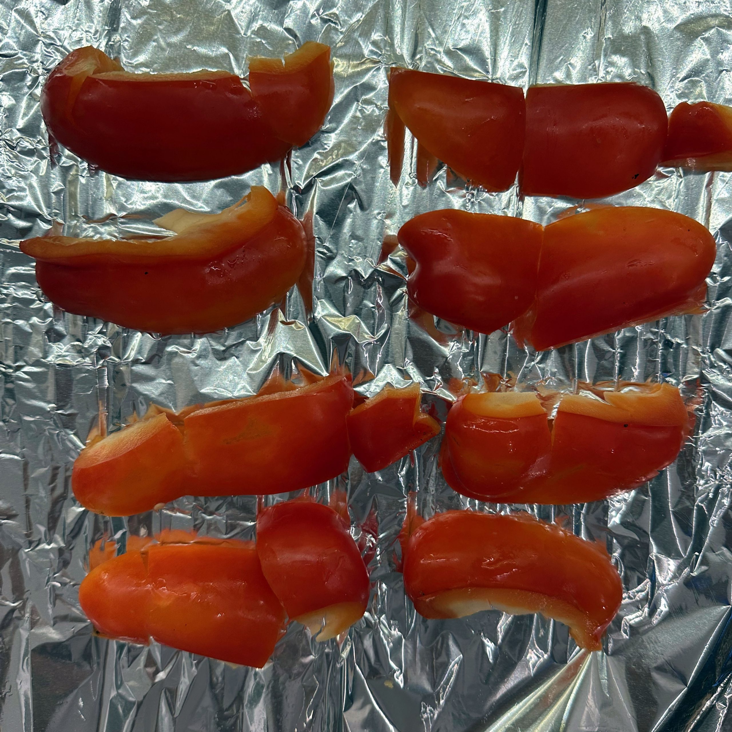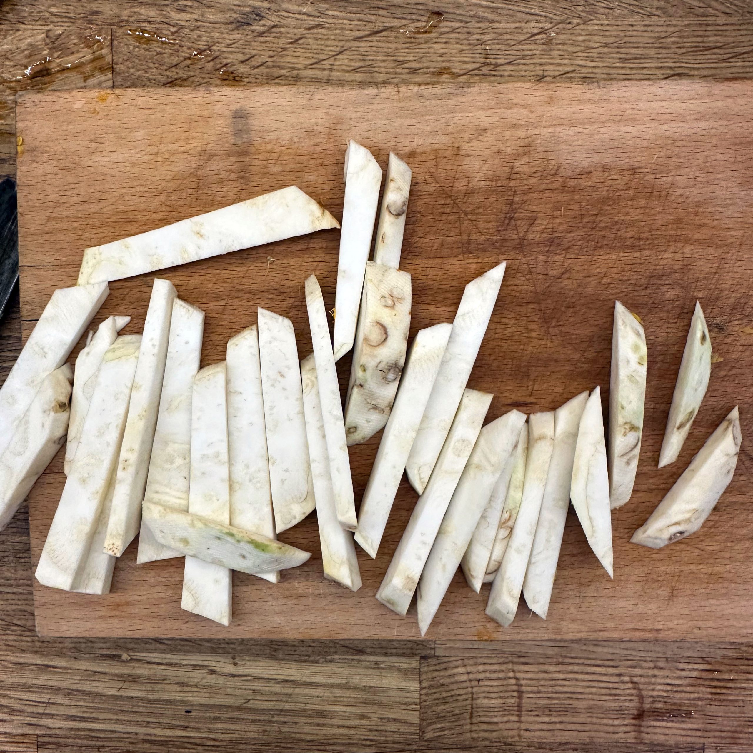 6 Kartoffeln, 5 Möhren, 0,5 Sellerieknolle, 1 Kürbis, 1 Zucchini und 3 Zwiebeln schälen bzw. putzen und in mundgerechte Stücke schneiden, 5 Tomaten mit kochendem Wasser übergießen, häuten und grob schneiden, alles mit etwas Öl, Salz und Pfeffer mischen und auf 3 Bleche verteilen. Bei 210° Umluft garen und dabei die Blechpositionen zwischendurch wechseln, bis das Gemüse weich und gut gebräunt ist. 1 Paprika halbieren, entkernen und unter dem Grill rösten, Haut abziehen, in Streifen schneiden, salzen und in Öl und Balsamico marinieren. Ofengemüse gemischt in eine große Auflaufform schichten, auf die Hälfte 150gr Schafskäse zerbröseln, den Rest Gemüse daraufgeben und die marinierten Paprikastreifen darauf verteilen. 140gr Butter, 50gr Paniermehl, 120gr Dinkelmehl und 100gr geriebenen Parmesan zu Streuseln verkneten und als Crumble-Topping auf der Form verteilen. Gemüsecrumble bei 200° Umluft 18min backen, bis die Streusel goldbraun sind. In Schalen servieren.