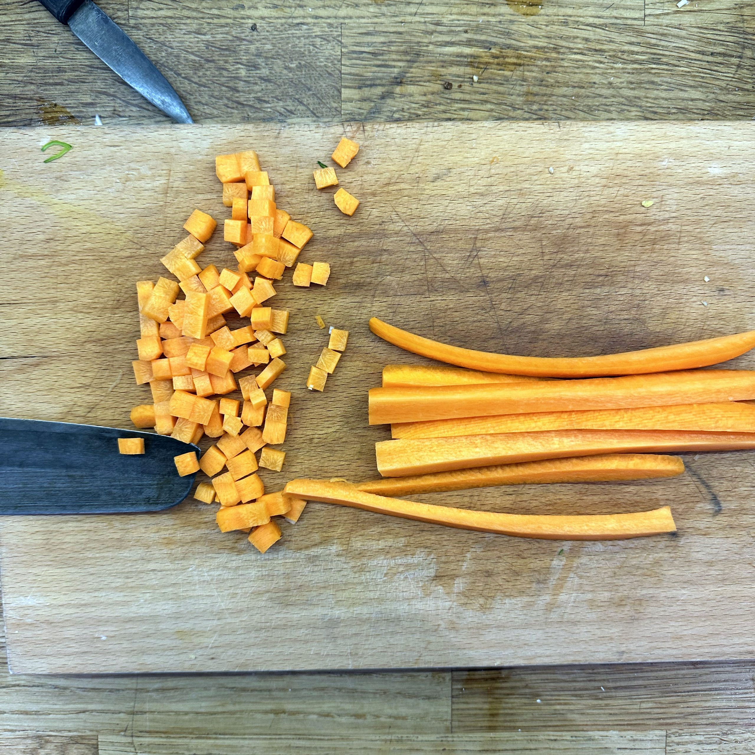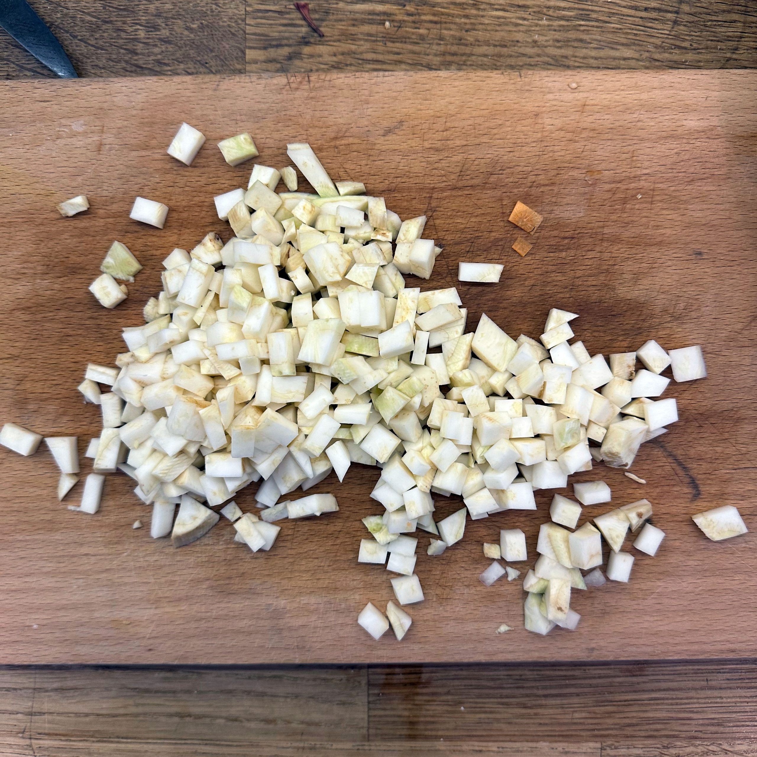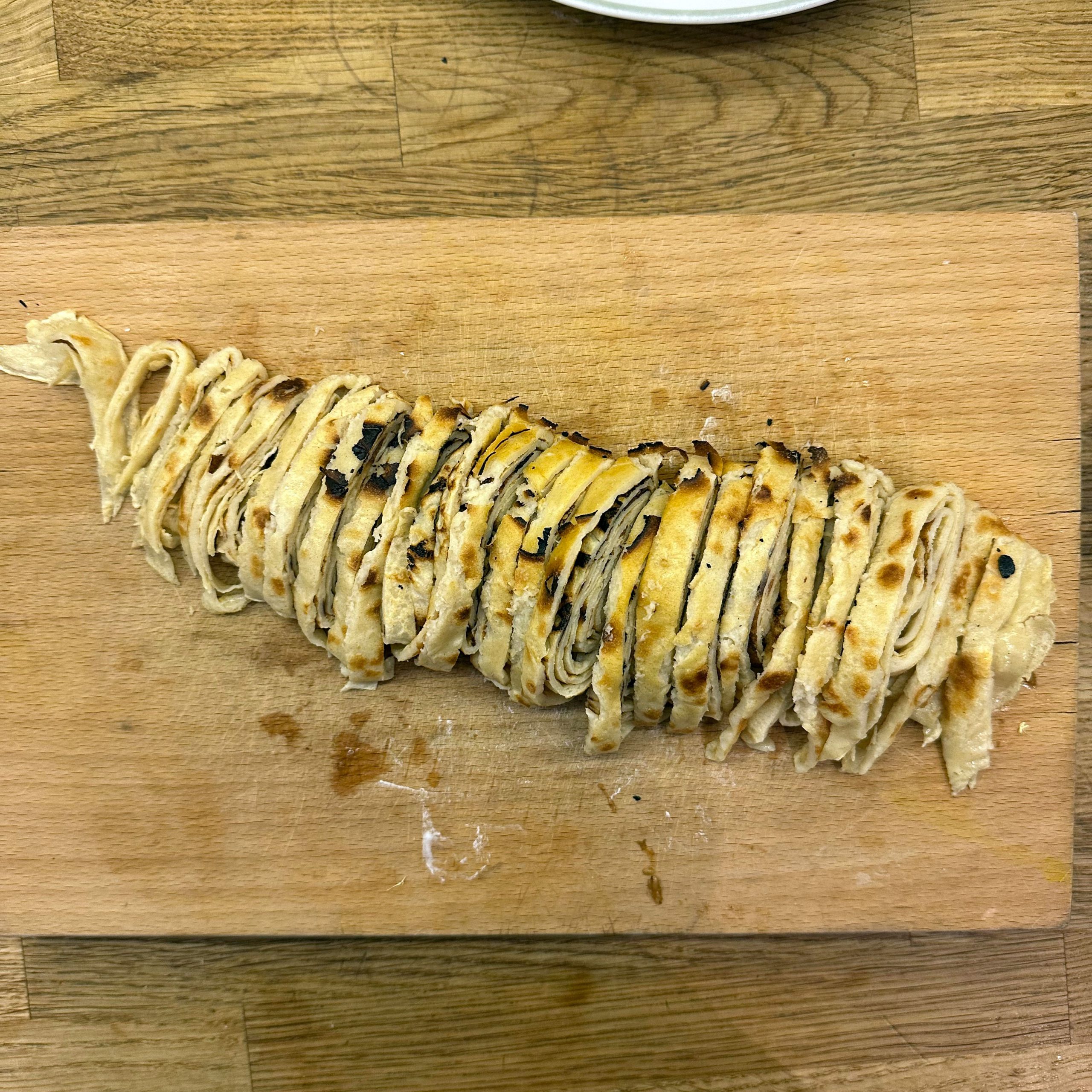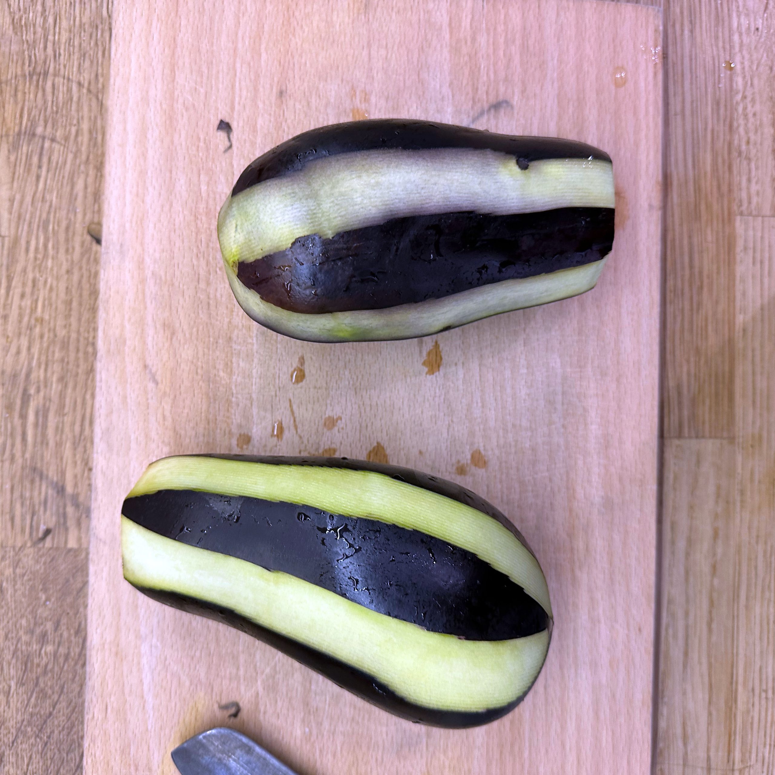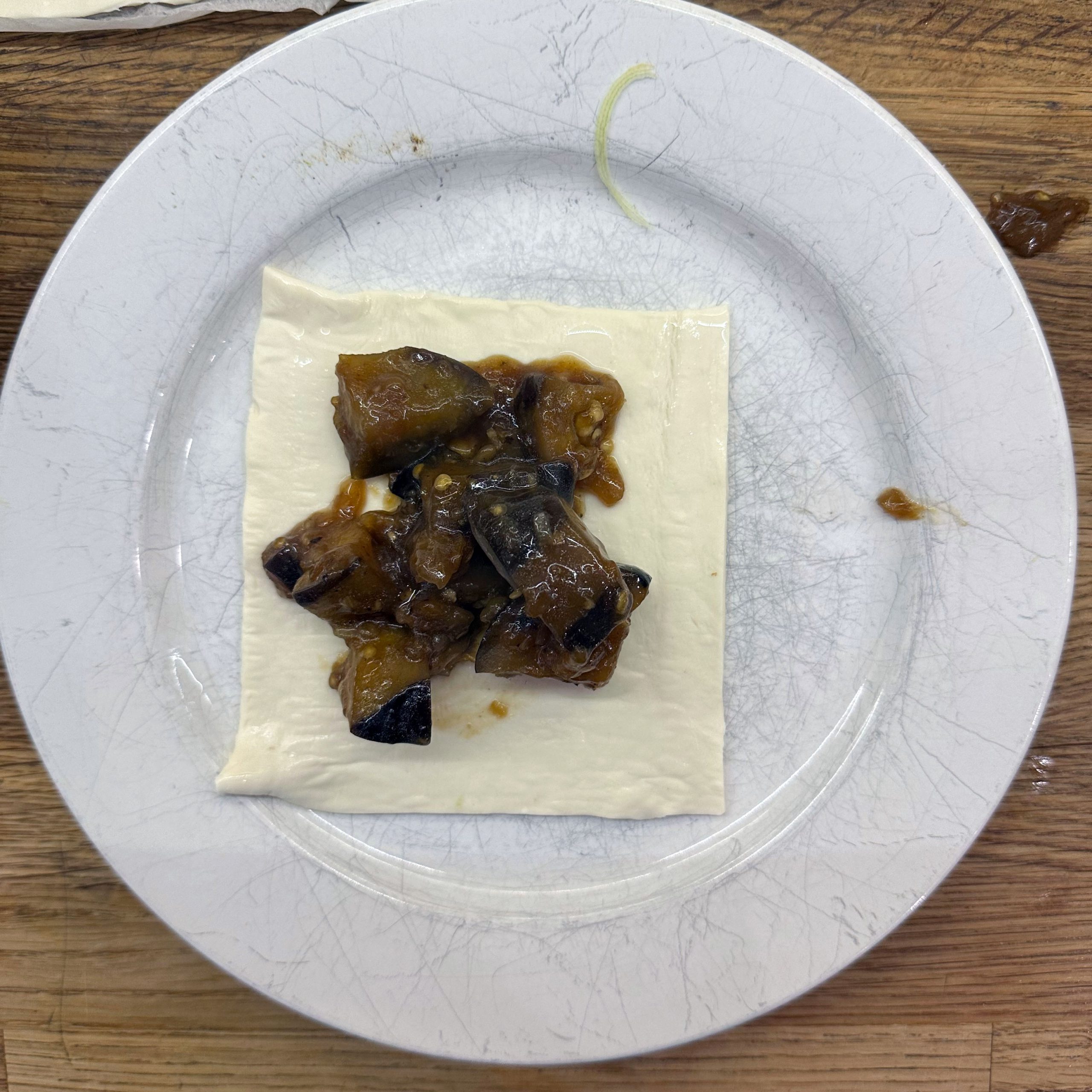 1 Ei mit 150ml Mandelmilch verquirlen, 100g Mehl, 1 Prise Salz unterrühren und zu einem glatten Teig verrühren, etwa 30 Minuten ruhen lassen. Dann in einer beschichteten Pfanne mit etwas Öl 4-5 dünne Pfannkuchen ausbacken, abkühlen lassen, aufrollen und in feine Streifen schneiden. Für die Gemüsesuppe 2 Möhren, 100g Knollensellerie und 1 Lauchstange putzen, schälen und in kleine Würfel schneiden. In einem großen Topf 2 EL Olivenöl erhitzen, das Gemüse hinzufügen und etwa 5 Minuten anschwitzen. Mit 1,5 Liter Gemüsebrühe aufgießen und etwa 10 Minuten köcheln lassen. Die Flädle-Streifen kurz vor dem Servieren in die Schalen geben. Für die chinesischen Auberginen in Blätterteig 2 Auberginen in Scheiben 20 Minuten in Salzwasser einweichen, dann in Würfel schneiden und in einer Pfanne mit 2 EL Öl scharf anbraten. Deckel auf die Pfanne legen und die Auberginenwürfel 20 Minuten dünsten, dabei gelegentlich umrühren. 5 Minuten vor Ende 1 EL geriebenen Ingwer und 1 gewürfelte Schalotte unterrühren. Eine Sauce aus 2 EL Essig, 3 EL Sojasoße, 1 EL Reissirup und 1 EL Stärke (mit etwas Wasser angerührt) mischen, zu den Auberginen geben und 5 Minuten köcheln lassen, bis die Sauce eingedickt ist. 1 Packung Blätterteig ausrollen und in Quadrate schneiden, je 2-3 EL Auberginenmischung in die Mitte legen, den Teig zu Päckchen falten und die Ränder gut verschließen. Die Päckchen auf ein mit Backpapier ausgelegtes Blech legen und bei 200°C 30 Minuten backen, dabei 2x wenden und mit einer Mischung aus Öl und Pflanzenmilch einpinseln. Beim letzten Wenden mit Sesam bestreuen. Die Auberginen-Blätterteig-Päckchen mit der Gemüsesuppe servieren.