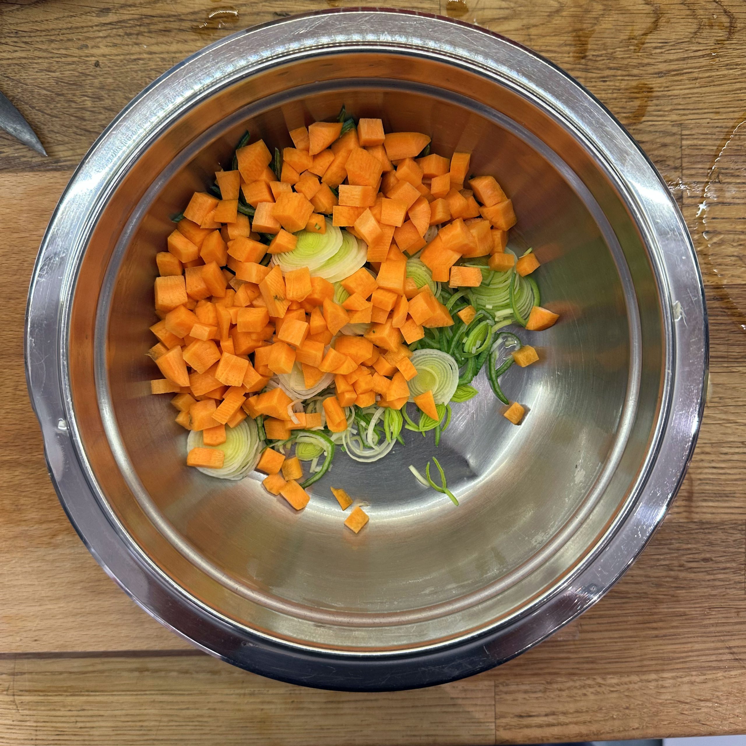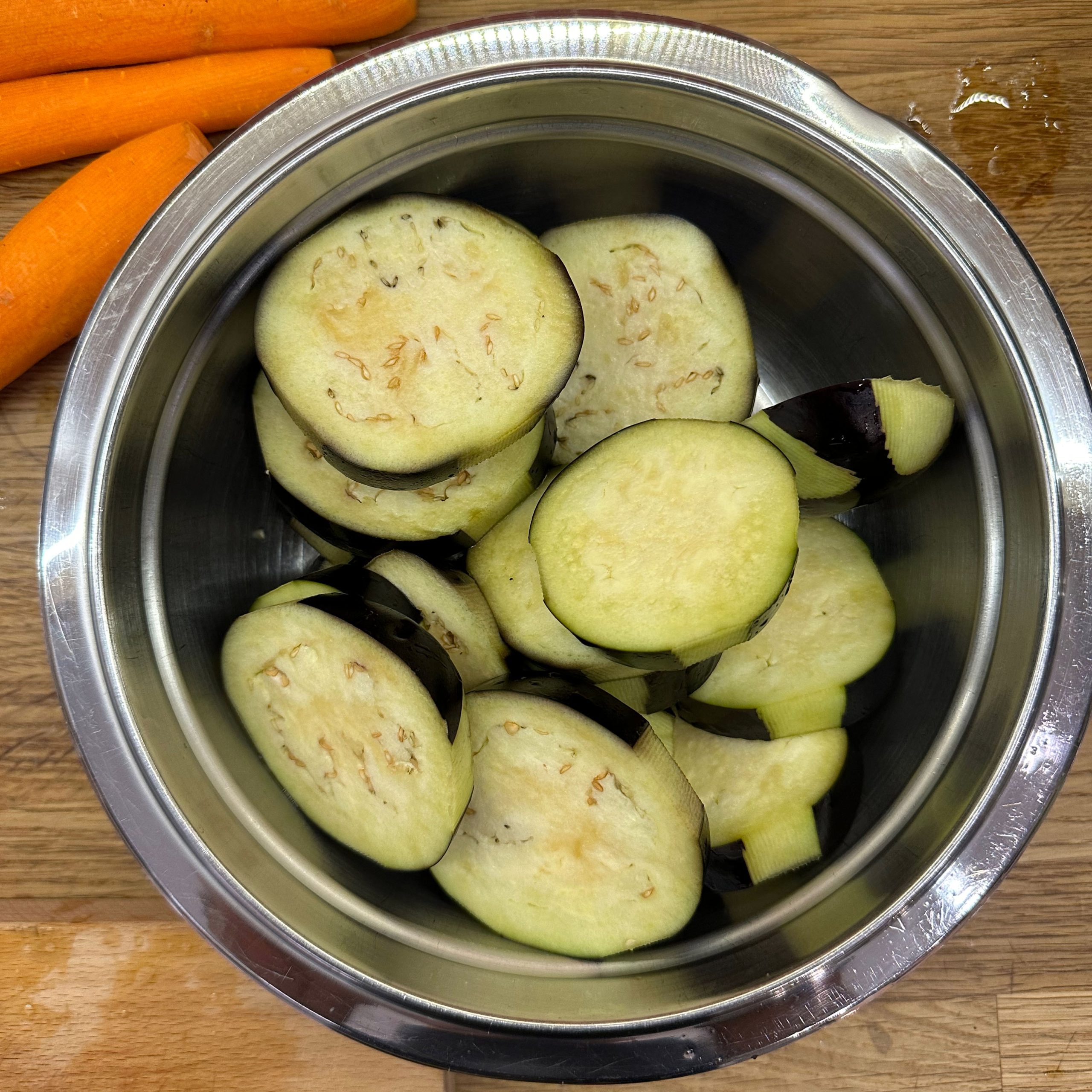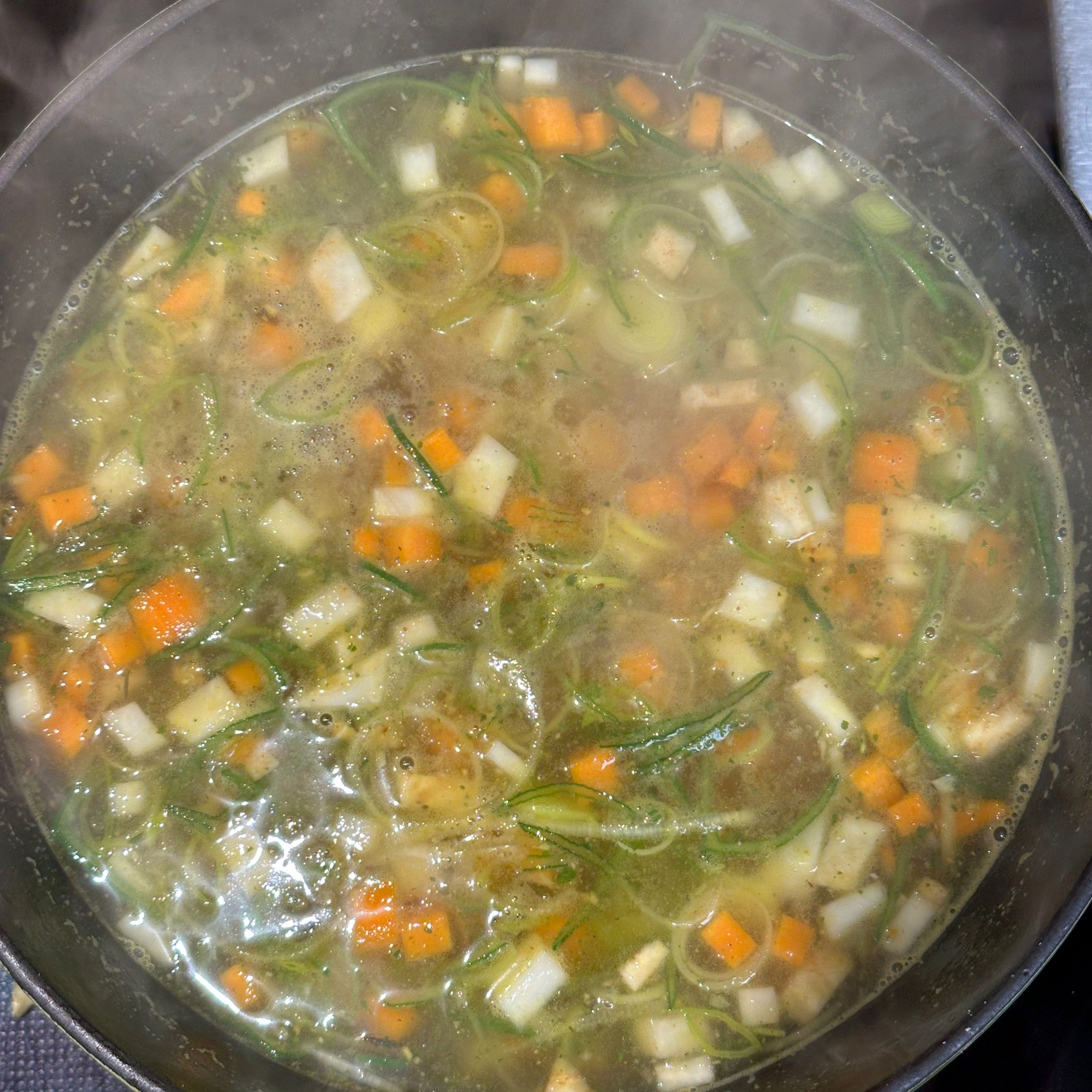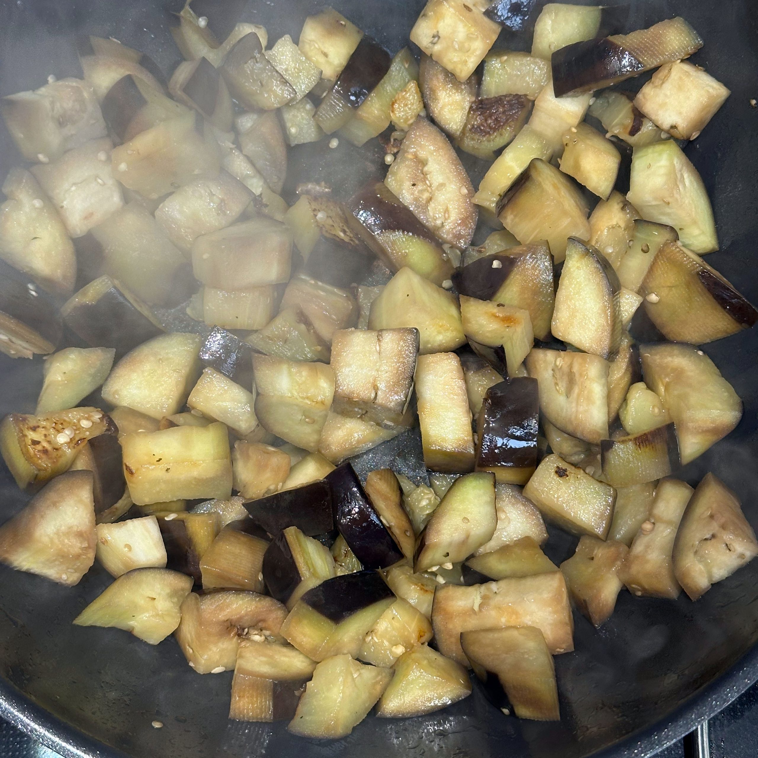 1 Ei mit 150ml Mandelmilch verquirlen, 100g Mehl, 1 Prise Salz unterrühren und zu einem glatten Teig verrühren, etwa 30 Minuten ruhen lassen. Dann in einer beschichteten Pfanne mit etwas Öl 4-5 dünne Pfannkuchen ausbacken, abkühlen lassen, aufrollen und in feine Streifen schneiden. Für die Gemüsesuppe 2 Möhren, 100g Knollensellerie und 1 Lauchstange putzen, schälen und in kleine Würfel schneiden. In einem großen Topf 2 EL Olivenöl erhitzen, das Gemüse hinzufügen und etwa 5 Minuten anschwitzen. Mit 1,5 Liter Gemüsebrühe aufgießen und etwa 10 Minuten köcheln lassen. Die Flädle-Streifen kurz vor dem Servieren in die Schalen geben. Für die chinesischen Auberginen in Blätterteig 2 Auberginen in Scheiben 20 Minuten in Salzwasser einweichen, dann in Würfel schneiden und in einer Pfanne mit 2 EL Öl scharf anbraten. Deckel auf die Pfanne legen und die Auberginenwürfel 20 Minuten dünsten, dabei gelegentlich umrühren. 5 Minuten vor Ende 1 EL geriebenen Ingwer und 1 gewürfelte Schalotte unterrühren. Eine Sauce aus 2 EL Essig, 3 EL Sojasoße, 1 EL Reissirup und 1 EL Stärke (mit etwas Wasser angerührt) mischen, zu den Auberginen geben und 5 Minuten köcheln lassen, bis die Sauce eingedickt ist. 1 Packung Blätterteig ausrollen und in Quadrate schneiden, je 2-3 EL Auberginenmischung in die Mitte legen, den Teig zu Päckchen falten und die Ränder gut verschließen. Die Päckchen auf ein mit Backpapier ausgelegtes Blech legen und bei 200°C 30 Minuten backen, dabei 2x wenden und mit einer Mischung aus Öl und Pflanzenmilch einpinseln. Beim letzten Wenden mit Sesam bestreuen. Die Auberginen-Blätterteig-Päckchen mit der Gemüsesuppe servieren.