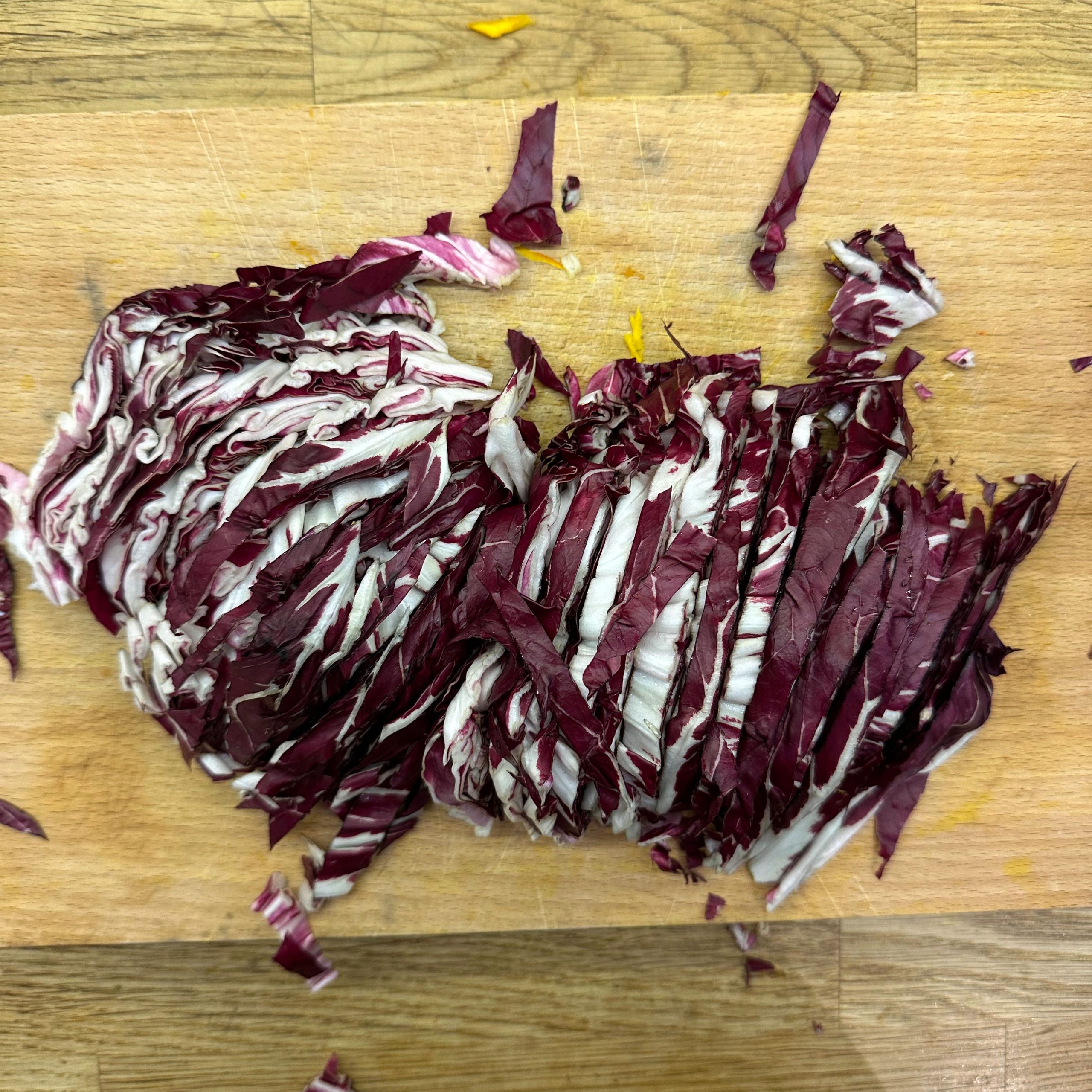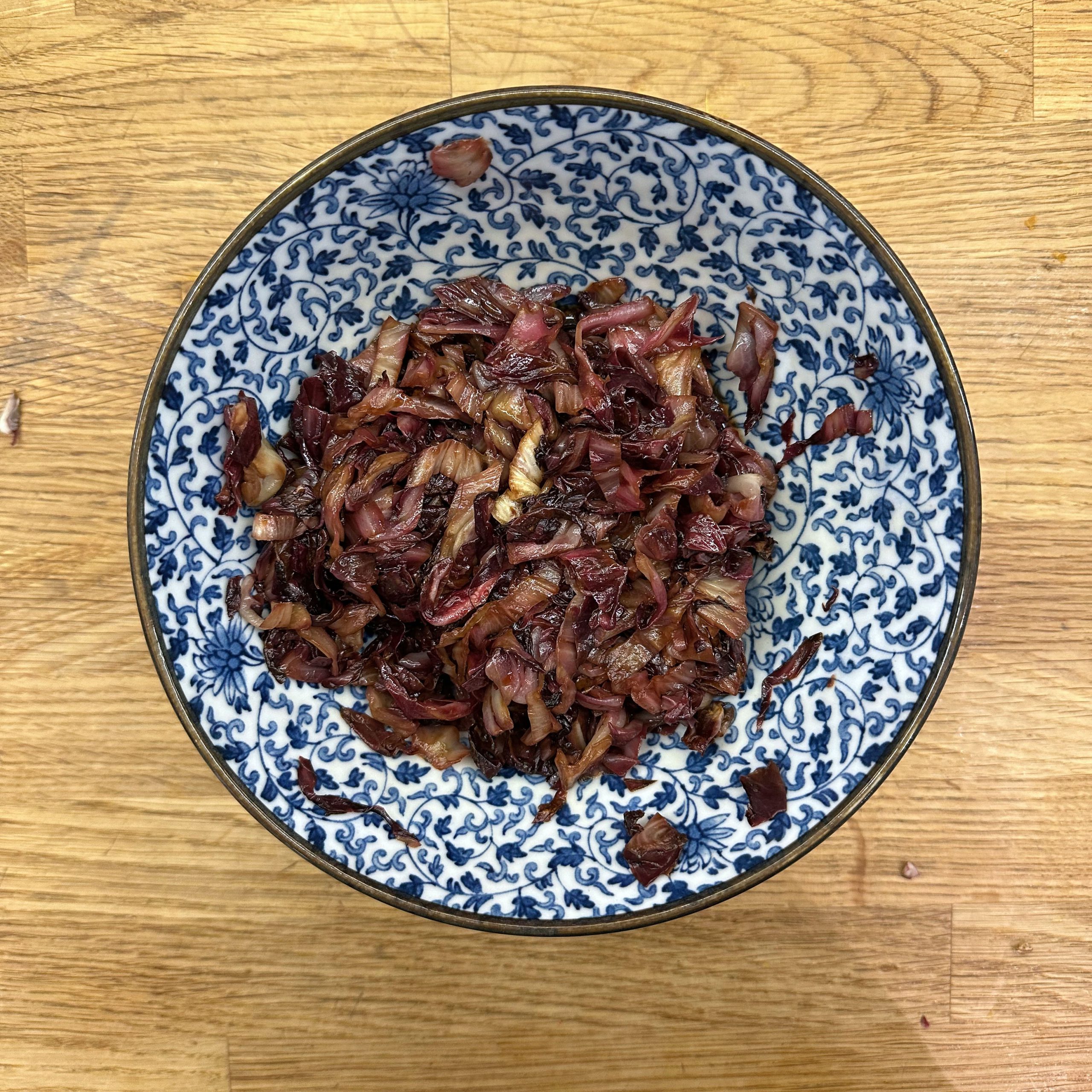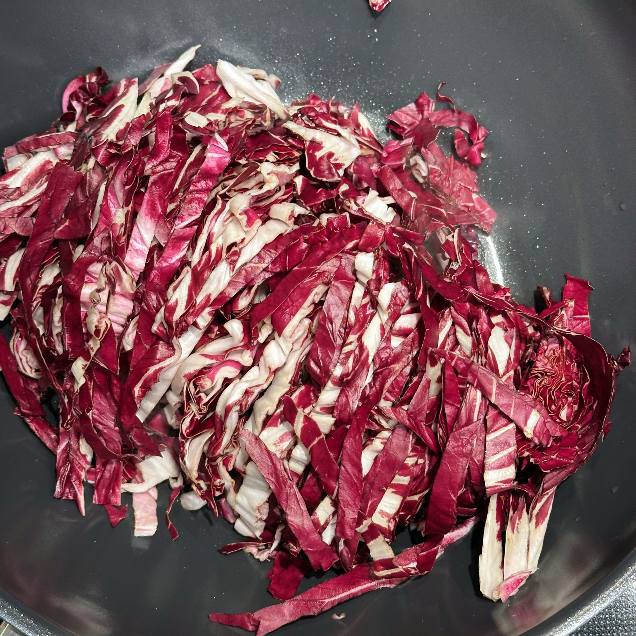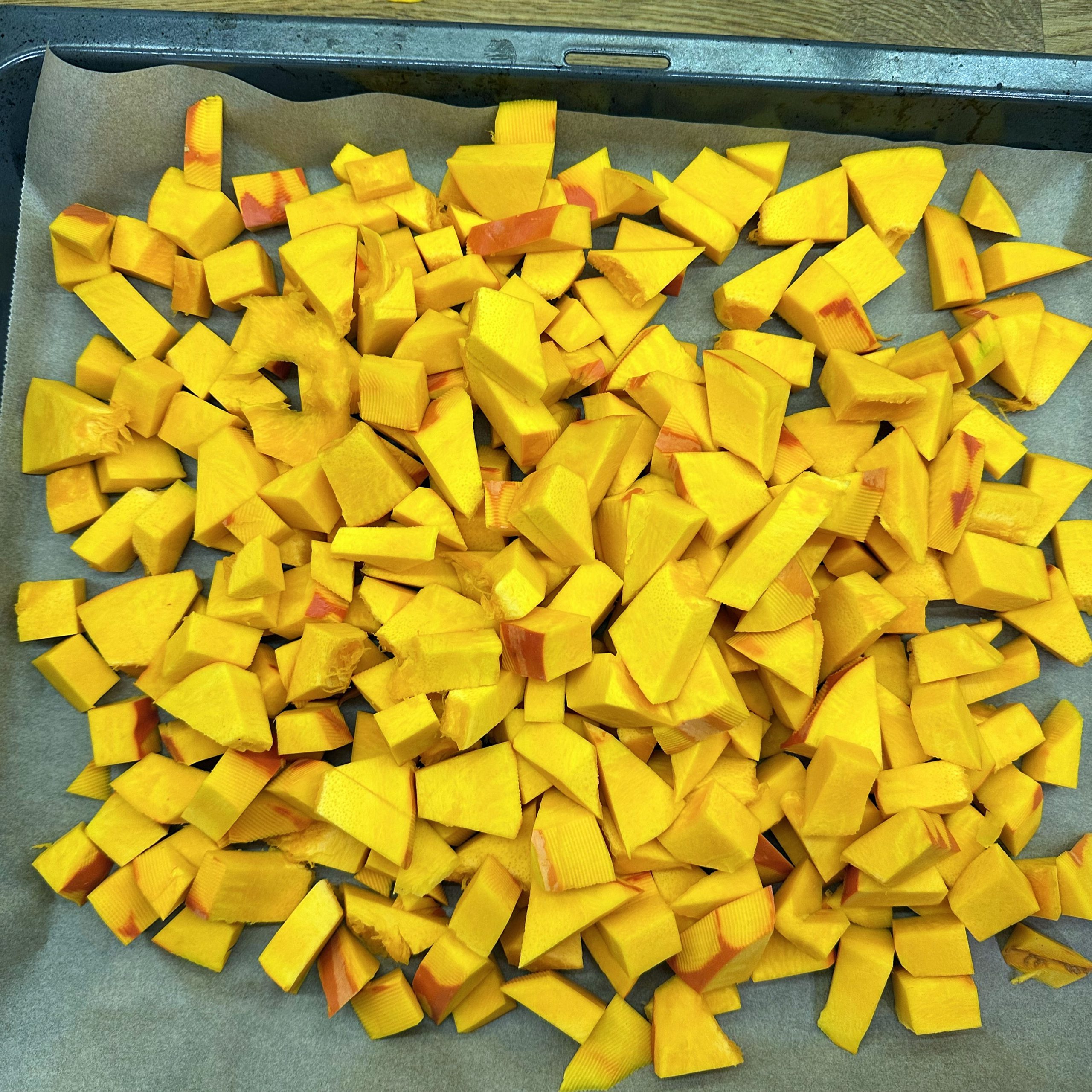 Kürbis schälen, entkernen und in mundgerechte Stücke schneiden, 300gr Champignons ganz lassen, Kürbis und Champignons mit etwas Öl, Salz und Pfeffer mischen und bei 200° Umluft 25-30min im Ofen backen, bis der Kürbis weich ist. Champignons etwas abkühlen lassen, in Scheiben schneiden und mit Balsamico, Sojasoße und Ahornsirup marinieren. 2 Packungen Gnocchi à 400gr in eine Auflaufform geben, mit etwas Öl vermengen und bei Umluft 12min backen. 1 Zwiebel würfeln und in etwas Öl anbraten, 300ml Hafersahne und etwas Wasser zugeben und mit Salz, Pfeffer, getrockneten Kräutern und Paprika würzen. Radicchio in Streifen schneiden und in einer Pfanne in etwas Öl kräftig anbraten, bis er leicht bräunt. Vorgebackene Gnocchi mit Ofenkürbis, Radicchio und den marinierten Champignons mischen, die Zwiebel-Hafersahne-Soße darübergeben, 200gr Feta darüberbröseln und bei 200° Umluft 15-20min überbacken, bis der Feta leicht gebräunt ist.