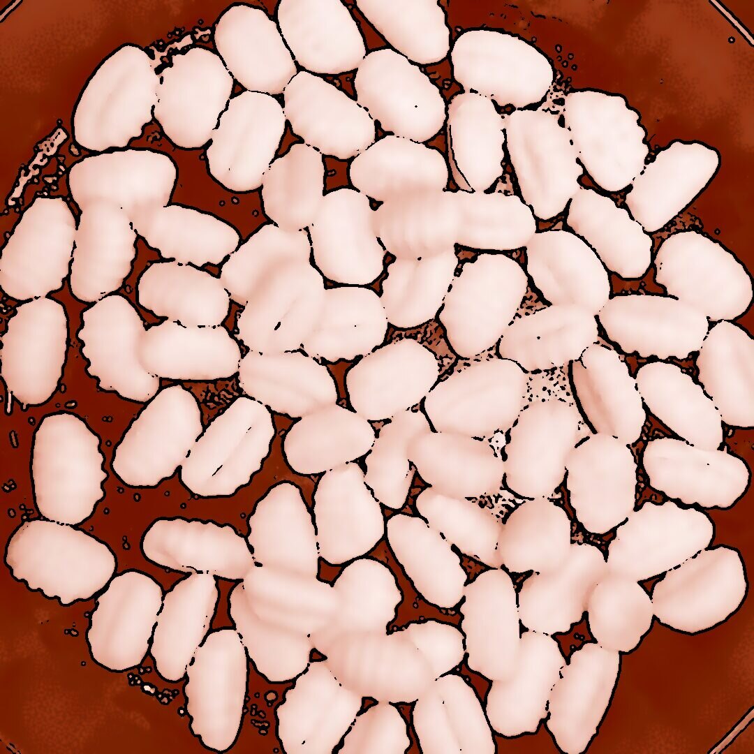 2 Packungen Gnocchi in zwei Pfannen bei geringer Hitze mit etwas Öl 20 min braten, dabei immer wieder umrühren. 400 g frischen Spinat im Wok mit etwas Öl braten, bis alles zusammengefallen ist. 1 Tofu zerbröseln und im Wok scharf anbraten, 2 gewürfelte Zwiebeln hinzufügen, mit 300 ml Brühe und 20 ml Sojasoße ablöschen, Paprika und getrocknete Kräuter einrühren und einkochen lassen. 200 ml Mandelsahne und den Spinat unterrühren, kurz aufkochen und mit Salz und Pfeffer abschmecken. Gebratene Gnocchi mit der Spinat-Tofu-Soße in Schüsseln servieren.