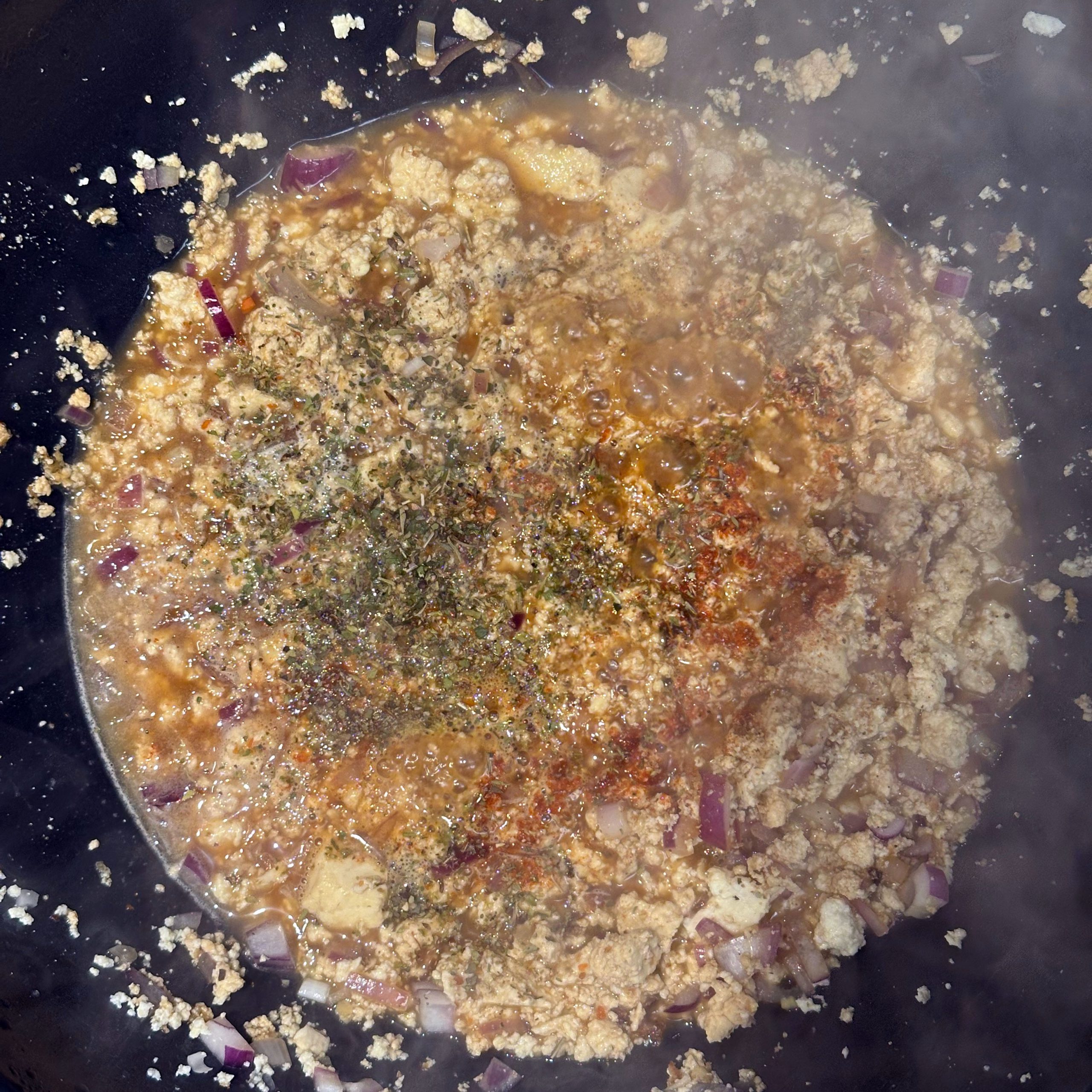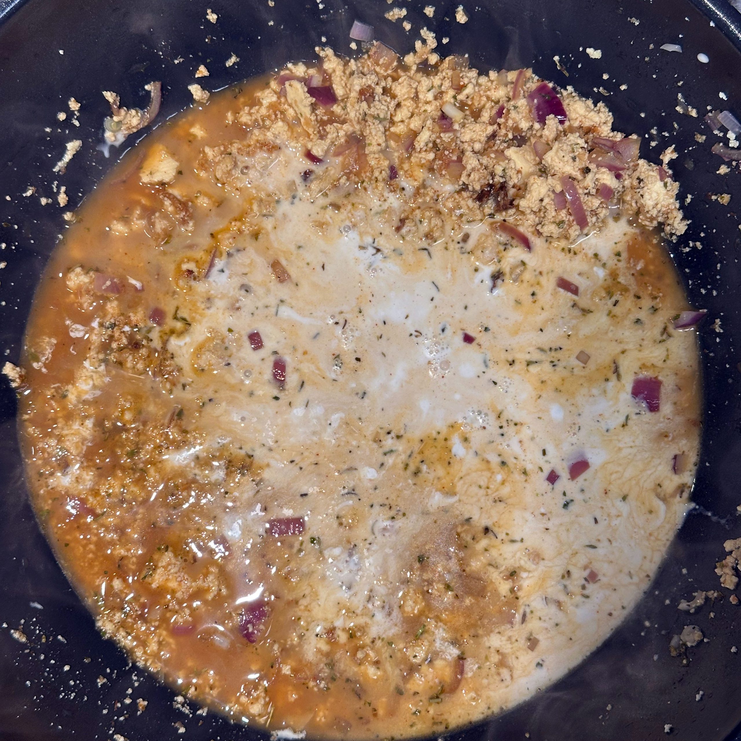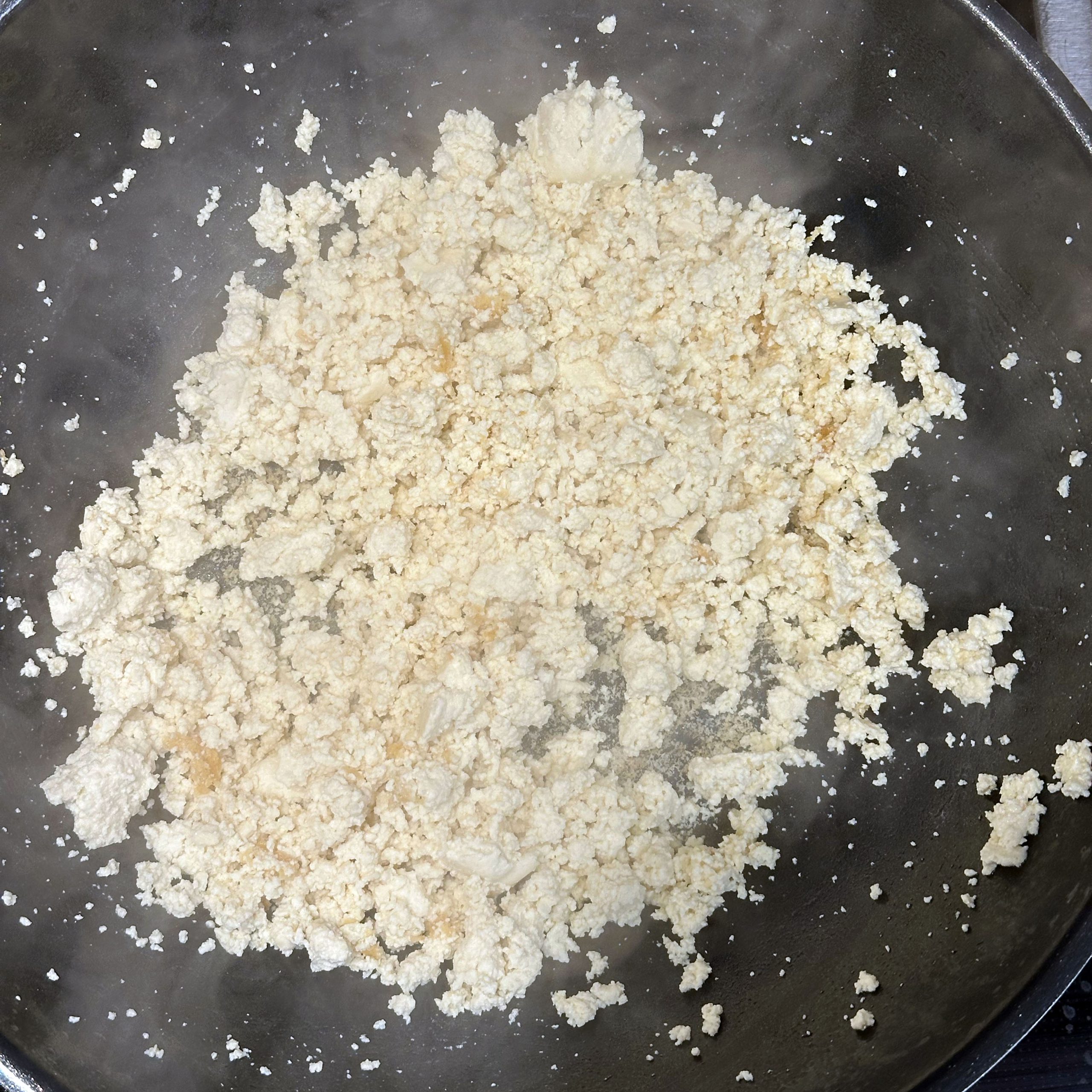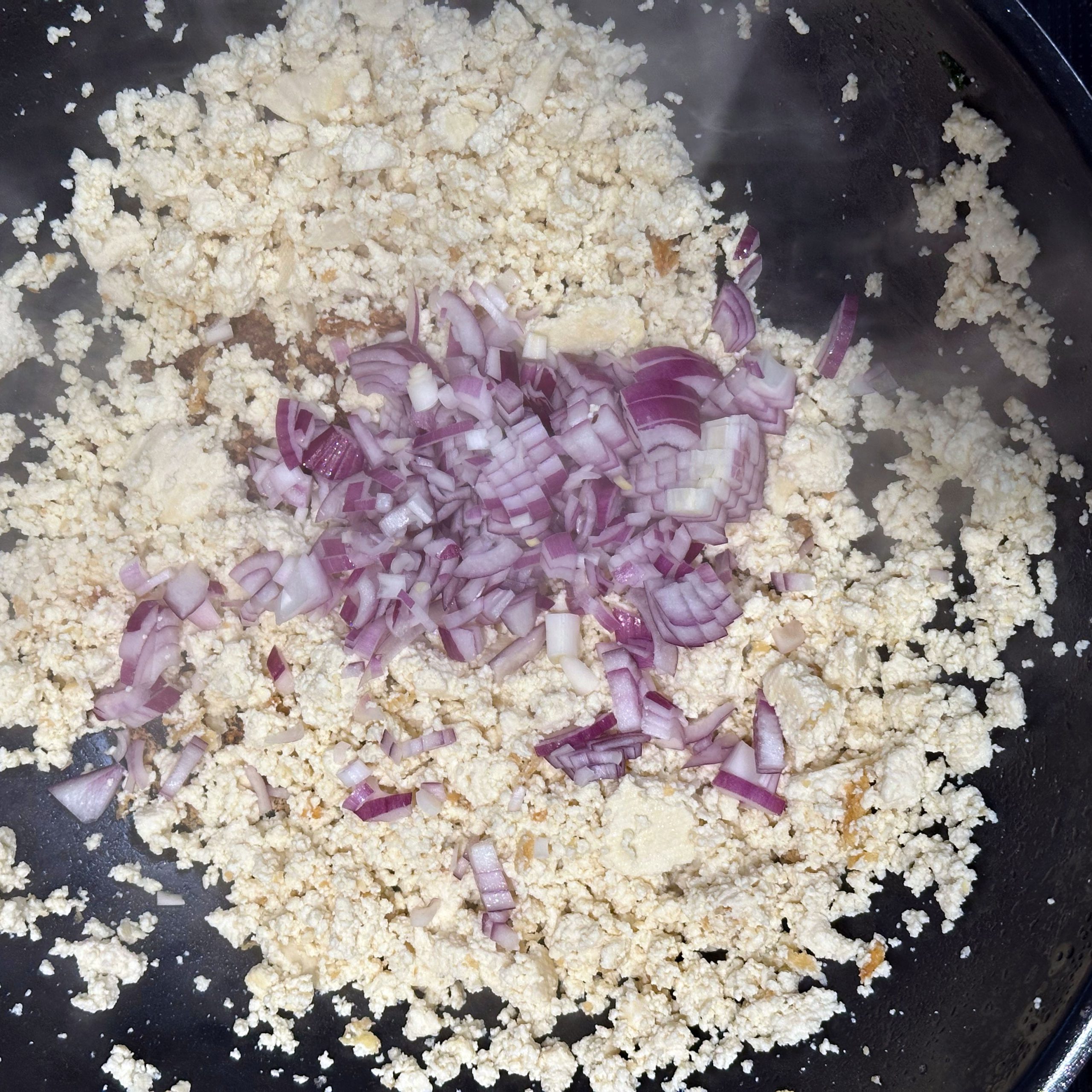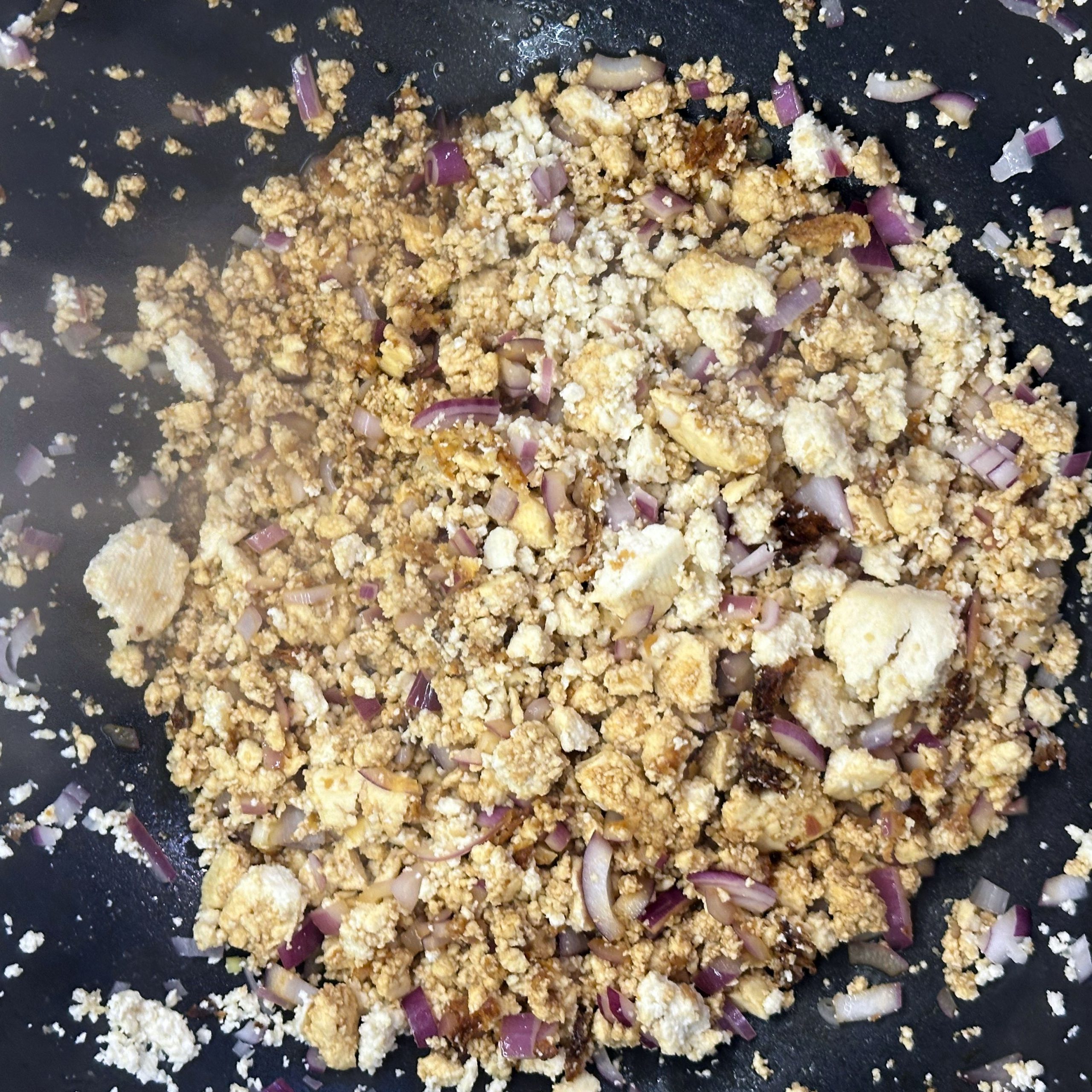 2 Packungen Gnocchi in zwei Pfannen bei geringer Hitze mit etwas Öl 20 min braten, dabei immer wieder umrühren. 400 g frischen Spinat im Wok mit etwas Öl braten, bis alles zusammengefallen ist. 1 Tofu zerbröseln und im Wok scharf anbraten, 2 gewürfelte Zwiebeln hinzufügen, mit 300 ml Brühe und 20 ml Sojasoße ablöschen, Paprika und getrocknete Kräuter einrühren und einkochen lassen. 200 ml Mandelsahne und den Spinat unterrühren, kurz aufkochen und mit Salz und Pfeffer abschmecken. Gebratene Gnocchi mit der Spinat-Tofu-Soße in Schüsseln servieren.