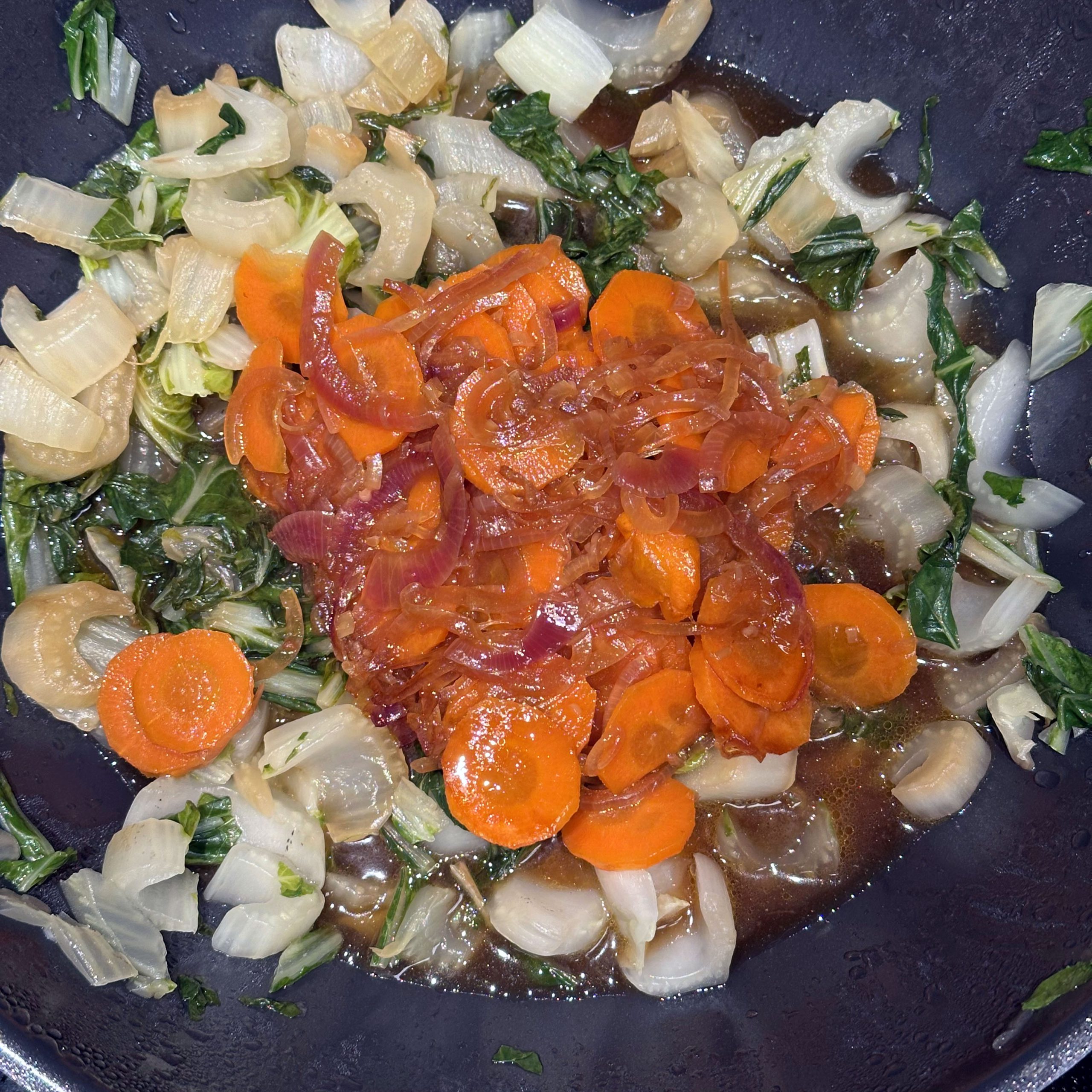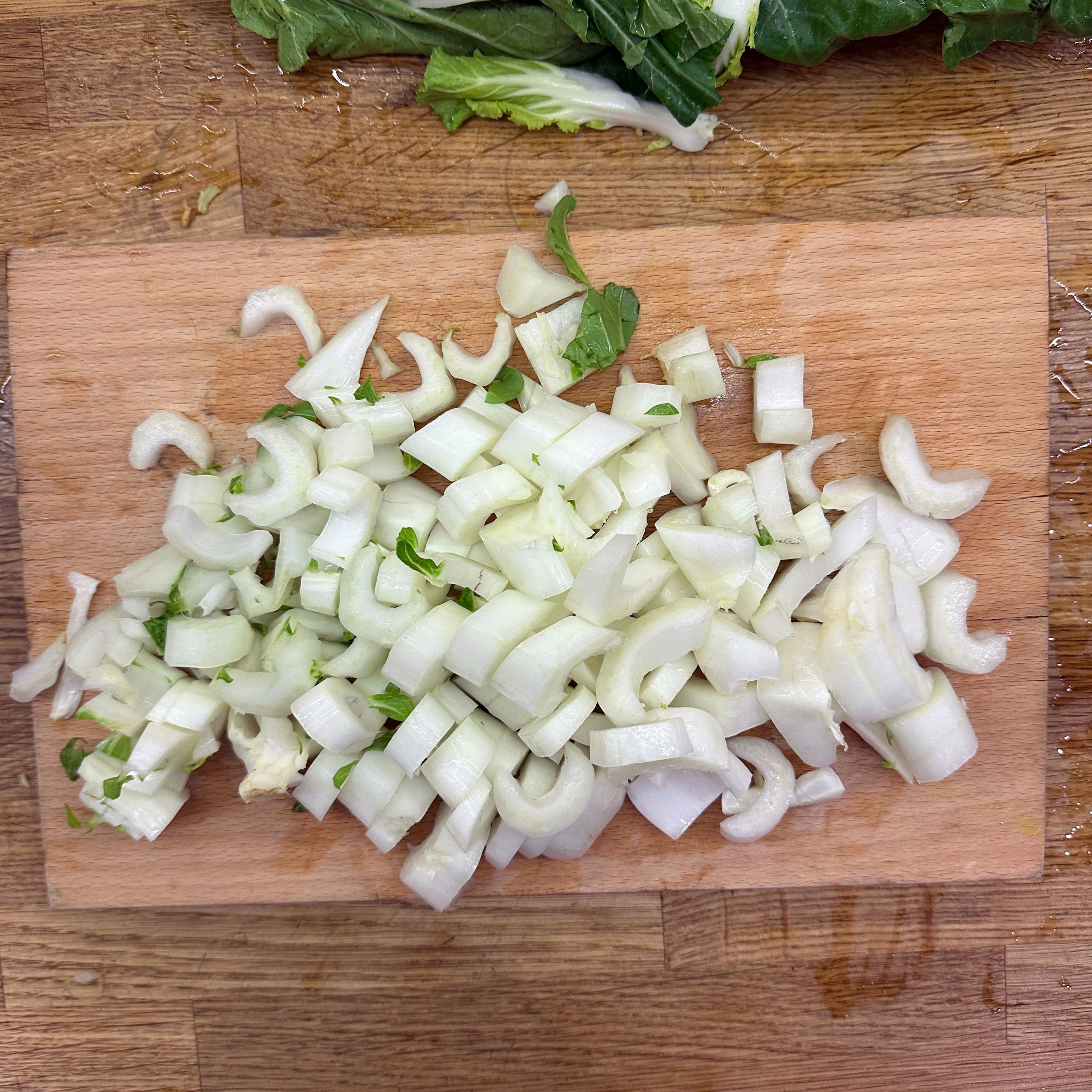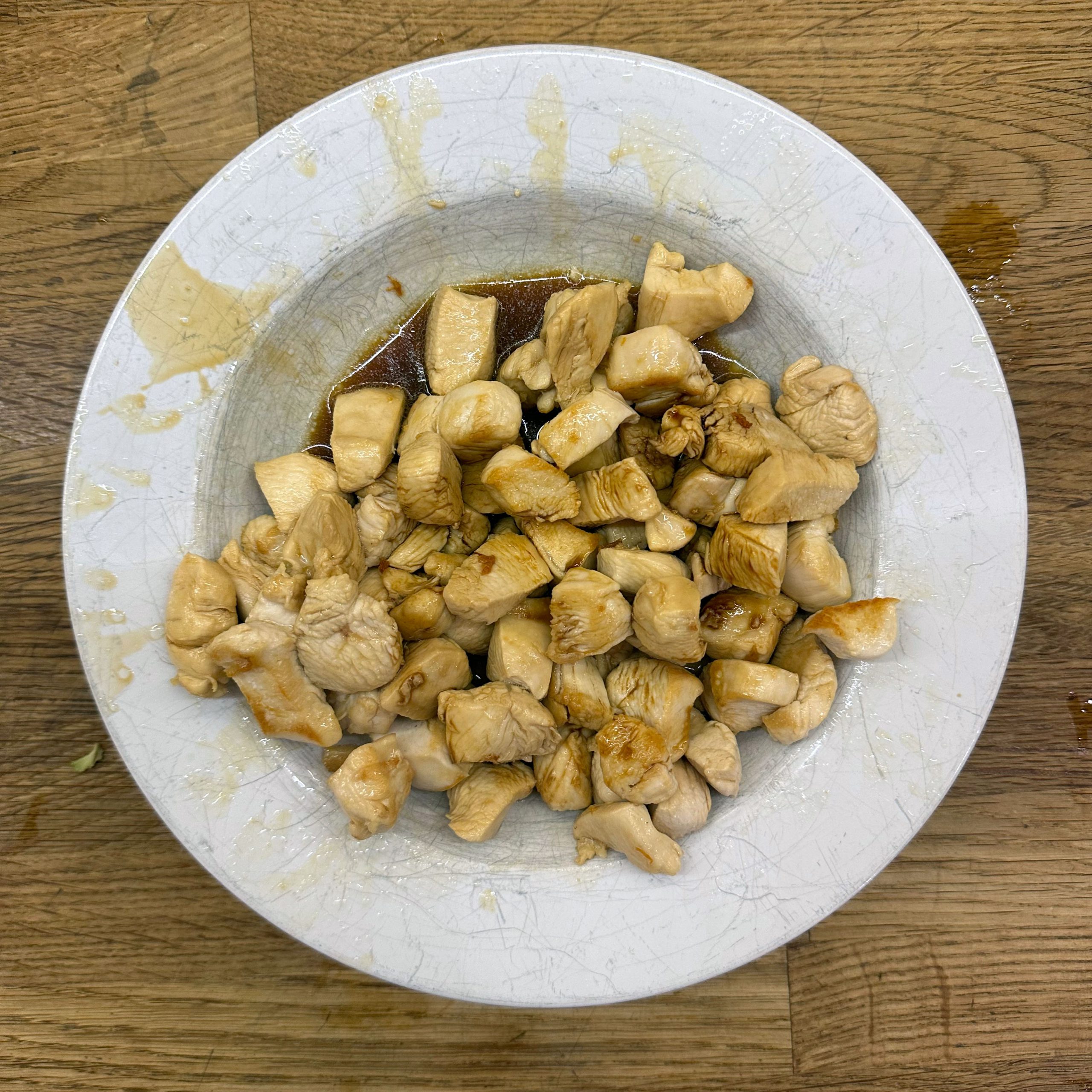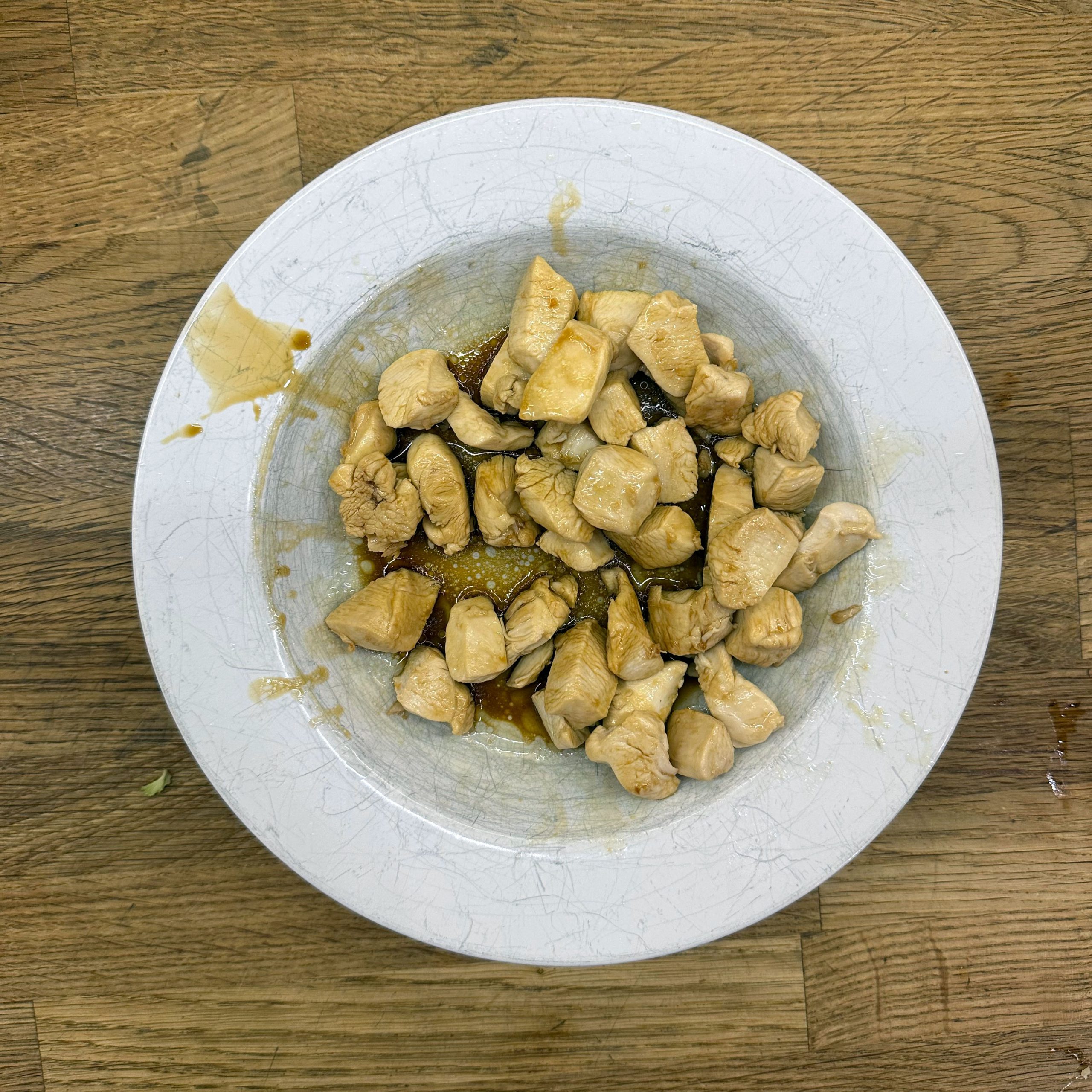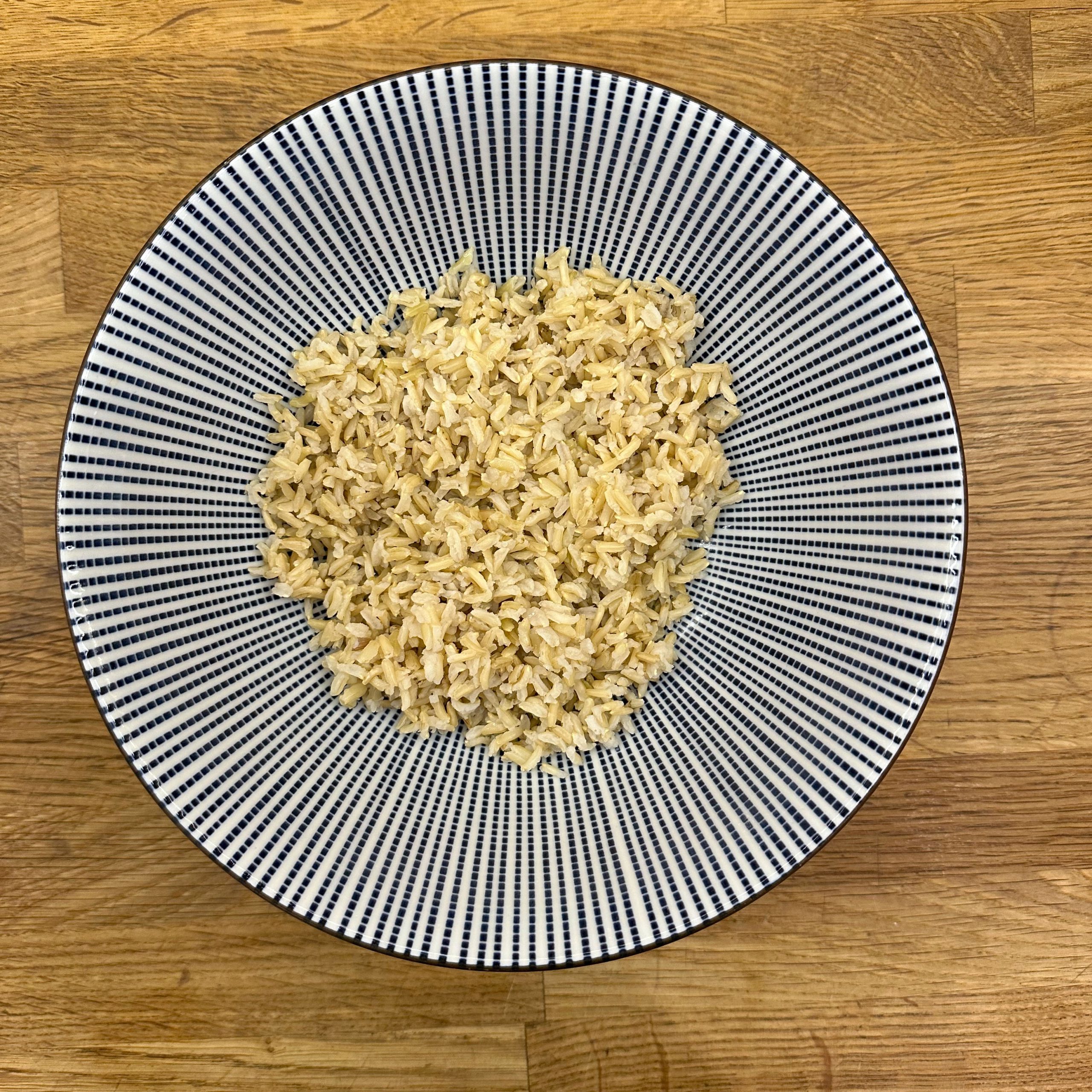 0,75 Tasse Vollkornreis gut waschen und mit der 1,25-fachen Menge Wasser aufkochen, dann 40 Minuten bei niedriger Hitze garen. 400g Hähnchenbrust waschen, trocken tupfen, in mundgerechte Stücke schneiden und in einem Wok in 2 Chargen 4min scharf anbraten, dann in einer Marinade aus Sojasoße, geriebenem Ingwer und Zitronensaft ziehen lassen. 1 Zwiebel würfeln und in dem Wok braten, 1 geraspelte Möhre hinzufügen und mit 100ml Gemüsebrühe 4min köcheln lassen, mit Zitronensaft und Sojasoße abschmecken. 700g Pak Choi waschen, die Blätter vom Strunk schneiden, die Stiele in Streifen schneiden und im Wok bei hoher Hitze mit geschlossenem Deckel braten, dabei ab und zu umrühren, nach 8 Minuten die Blätter hinzugeben, Deckel drauf, bis alles zusammengefallen ist. Die Zwiebelbrühe mit Möhren hinzufügen, 1 EL Stärke in etwas Wasser angerührt unterrühren und aufkochen lassen, die marinierte Hähnchenbrust hinzufügen und kurz erwärmen. Das Gericht mit dem gekochten Vollkornreis servieren.