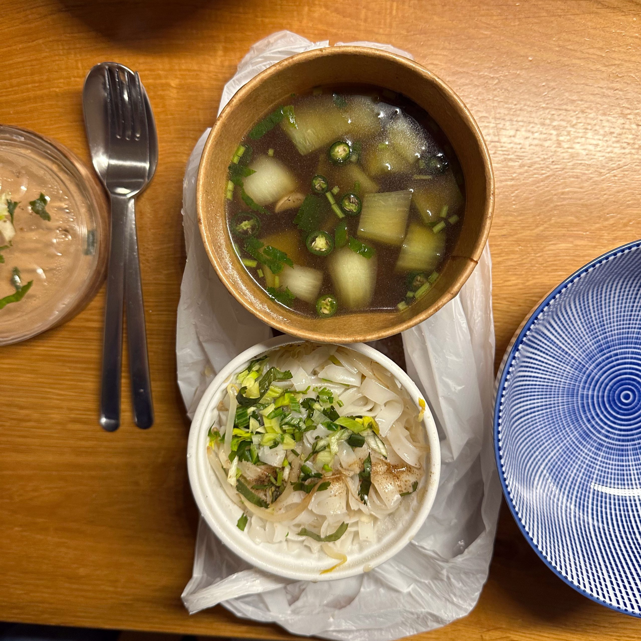 Mit Schwesti und Familie zum klassischen Thai-Imbiss um die Ecke zum Mitnehmen Essen geholt. Pho ist sehr lecker und auf Nachfrage auch angemessen scharf.