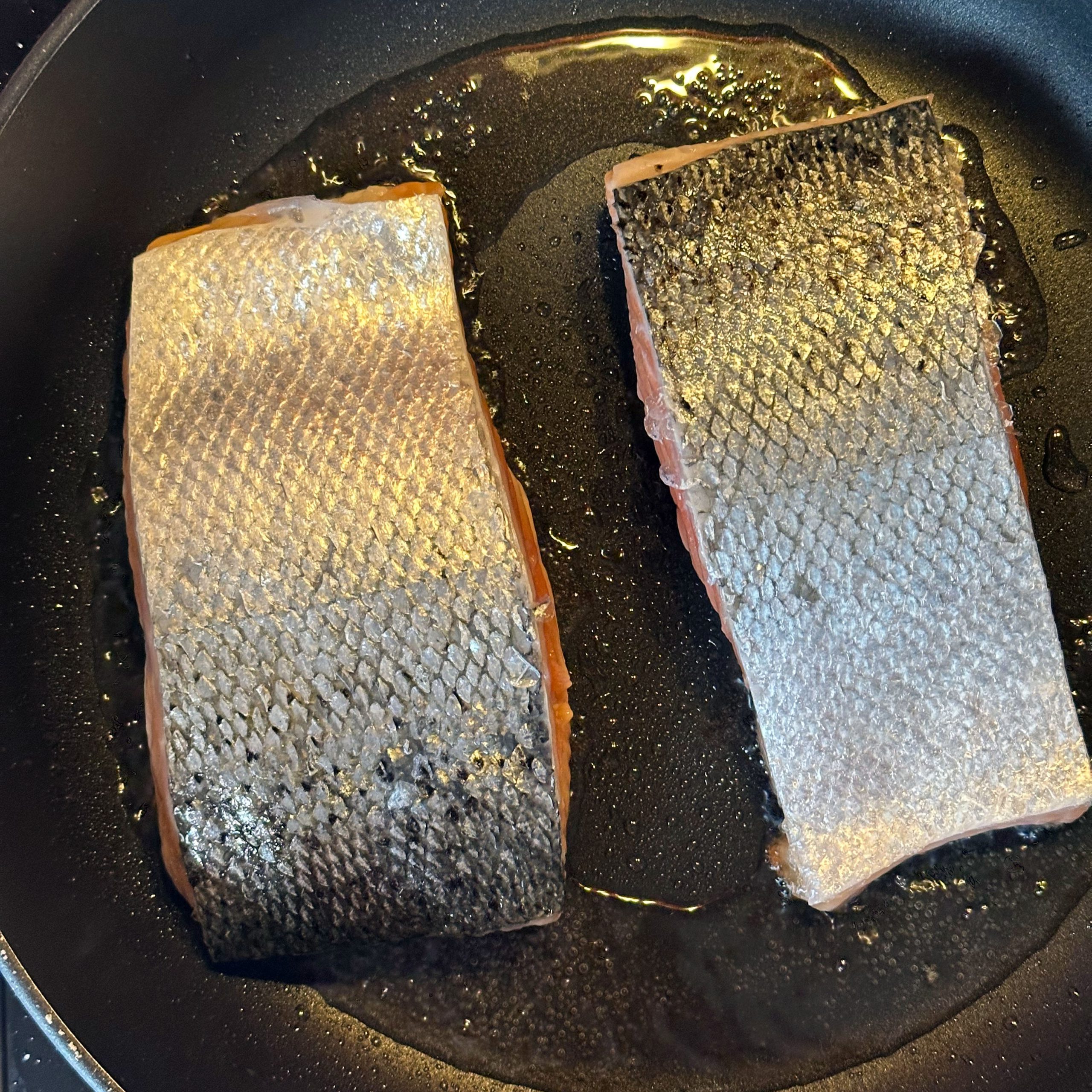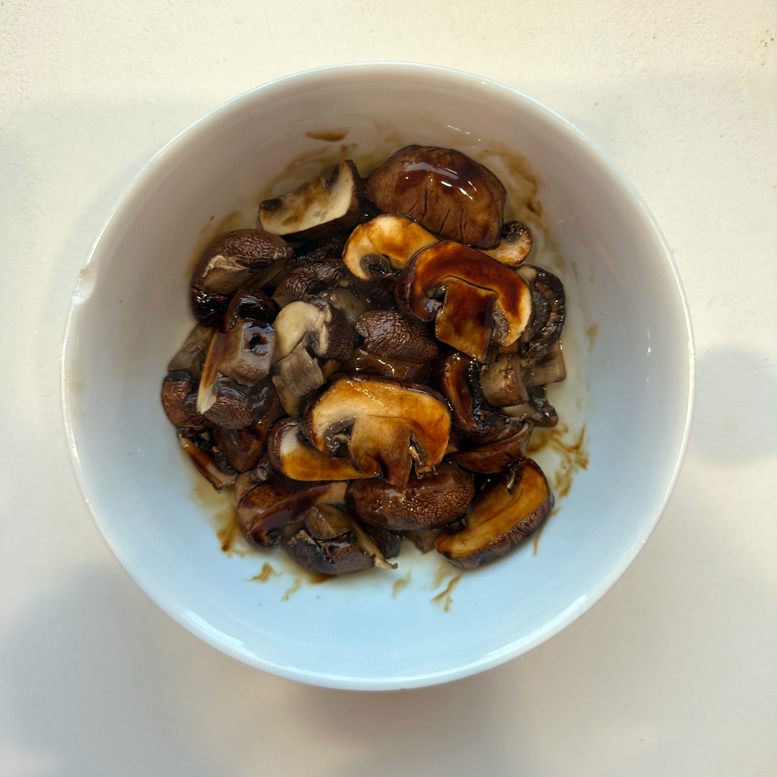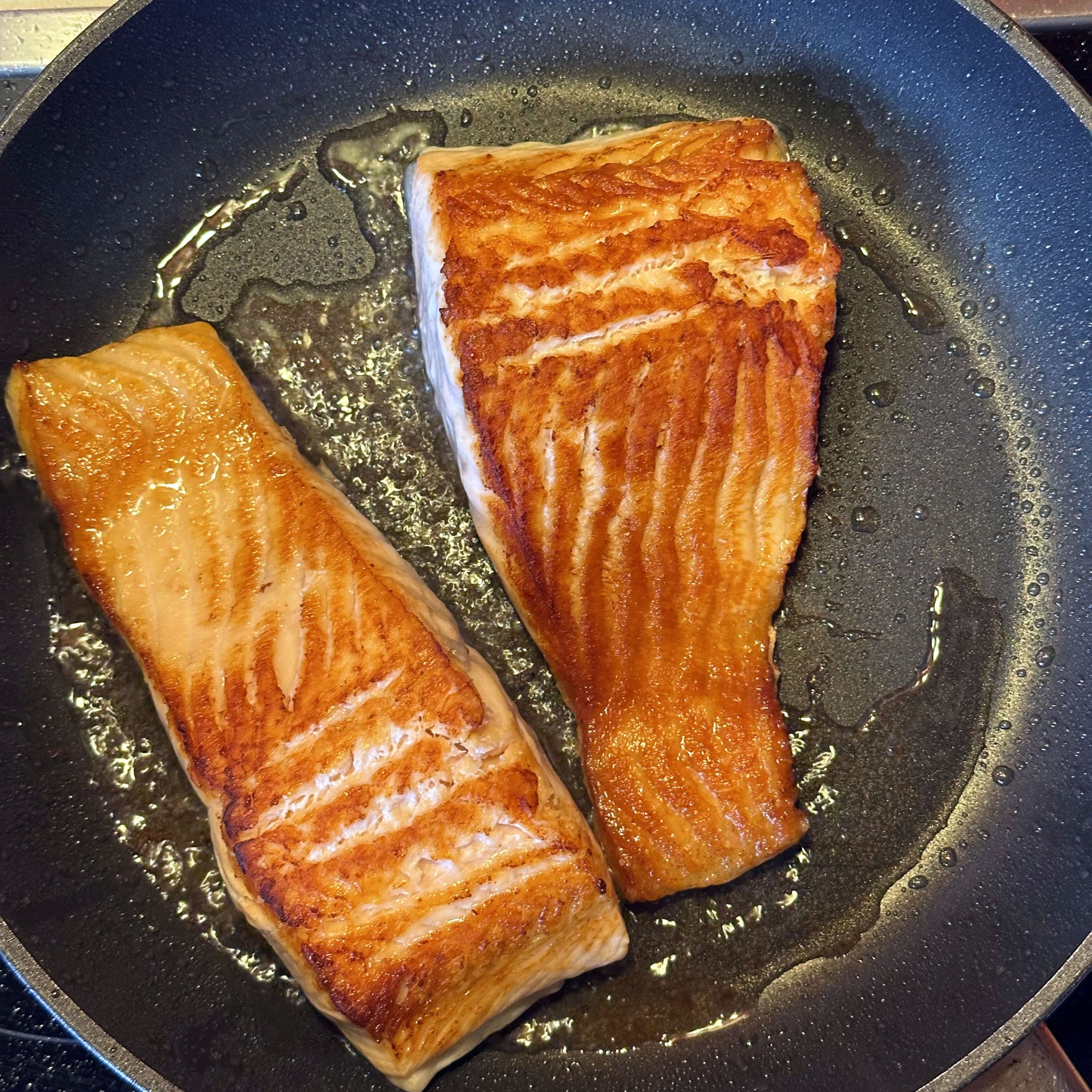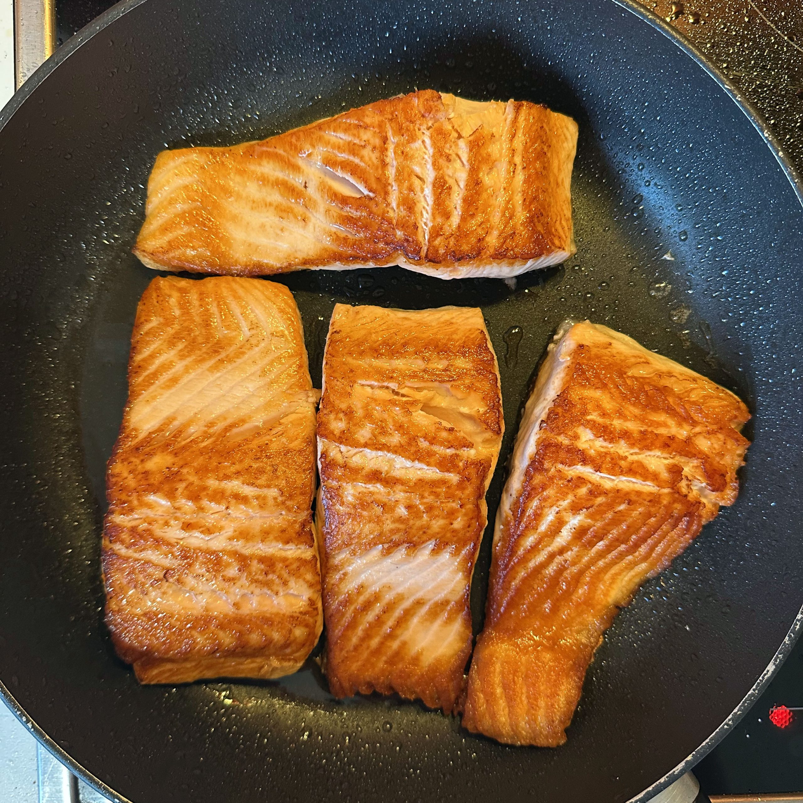 800 g Kartoffeln schälen und in mundgerechte Stücke schneiden, 1 Knollensellerie schälen und würfeln, 7 Möhren schälen und in Stücke schneiden, 2 Zucchini in Scheiben schneiden. Alles mit etwas Öl, Salz und Pfeffer mischen und auf 2 mit Backpapier belegte Bleche verteilen, bei 200 °C Umluft 35–40 Min. backen. 300 g Champignons ganz mit dem Kopf nach unten auf ein Blech setzen, mit etwas Öl beträufeln und salzen, bei 200 °C Umluft 30 Min. mitbacken, etwas abkühlen lassen, in Scheiben schneiden und mit Sojasoße, Balsamico und Ahornsirup marinieren. 2 Paprika halbieren, entkernen und unter dem Grill rösten, bis die Haut schwarz ist, abkühlen lassen, häuten, in Streifen schneiden, salzen und in Essig, Öl und Balsamico marinieren. 4 Lachsfilets in einer heißen Pfanne in etwas Öl auf der hautfreien Seite 5 Min. braten, dann wenden und auf der Hautseite bei mittlerer Hitze 7–8 Min. weiterbraten. Dip aus Joghurt, Mayonnaise, Zitrone, Petersilie, Olivenöl anrühren. Ofengemüse mit marinierten Champignons, Paprikasalat und gebratenem Lachs auf Tellern mit Dip anrichten.