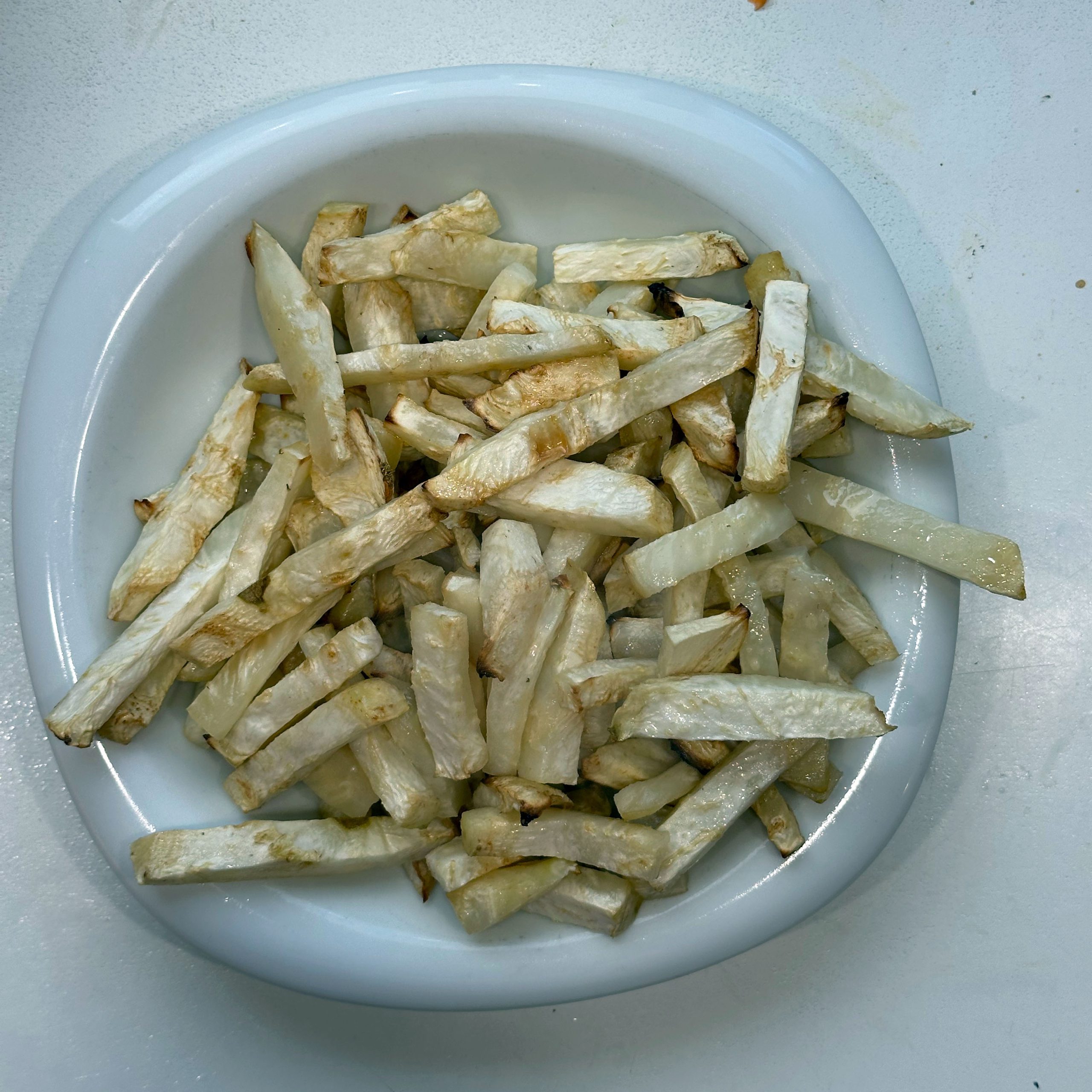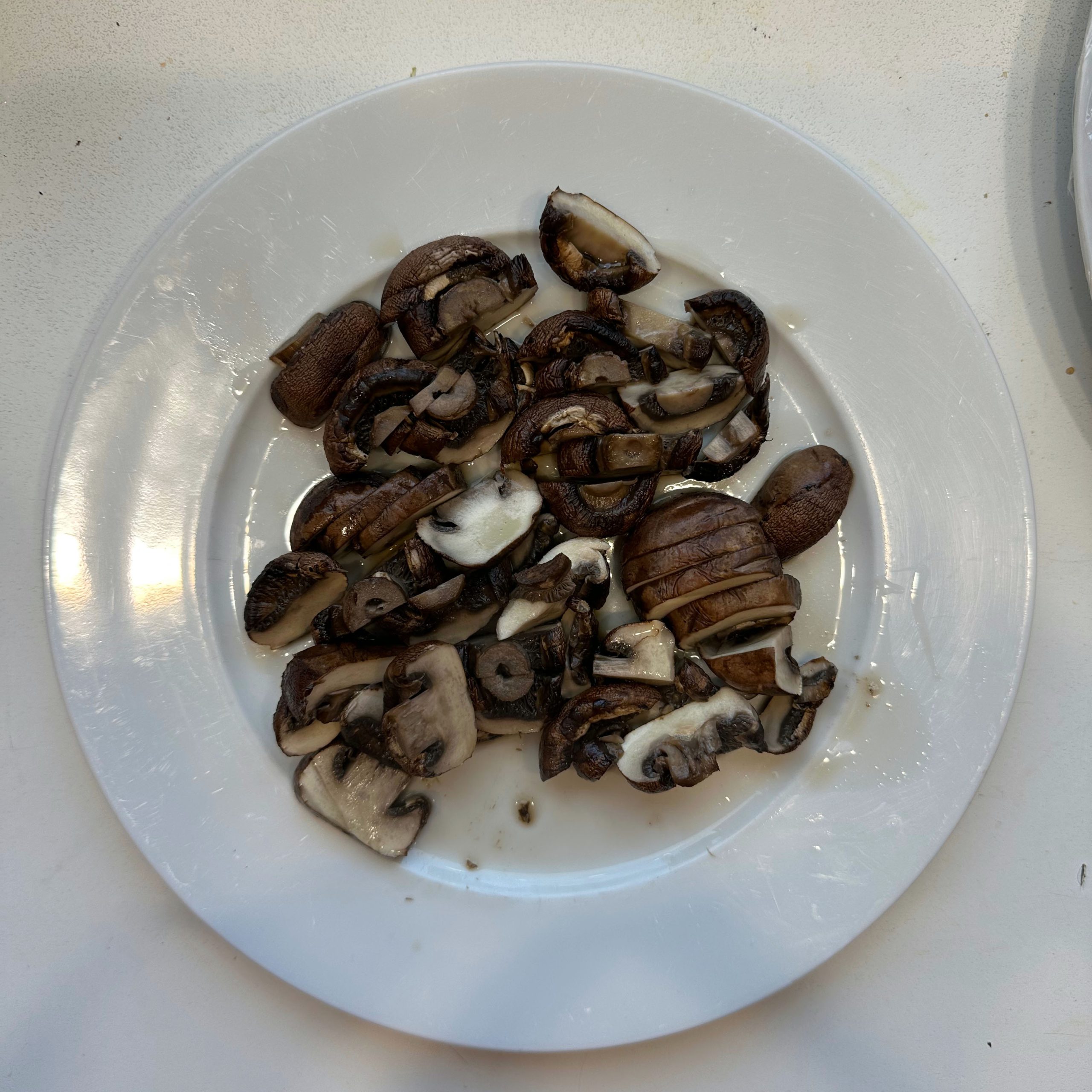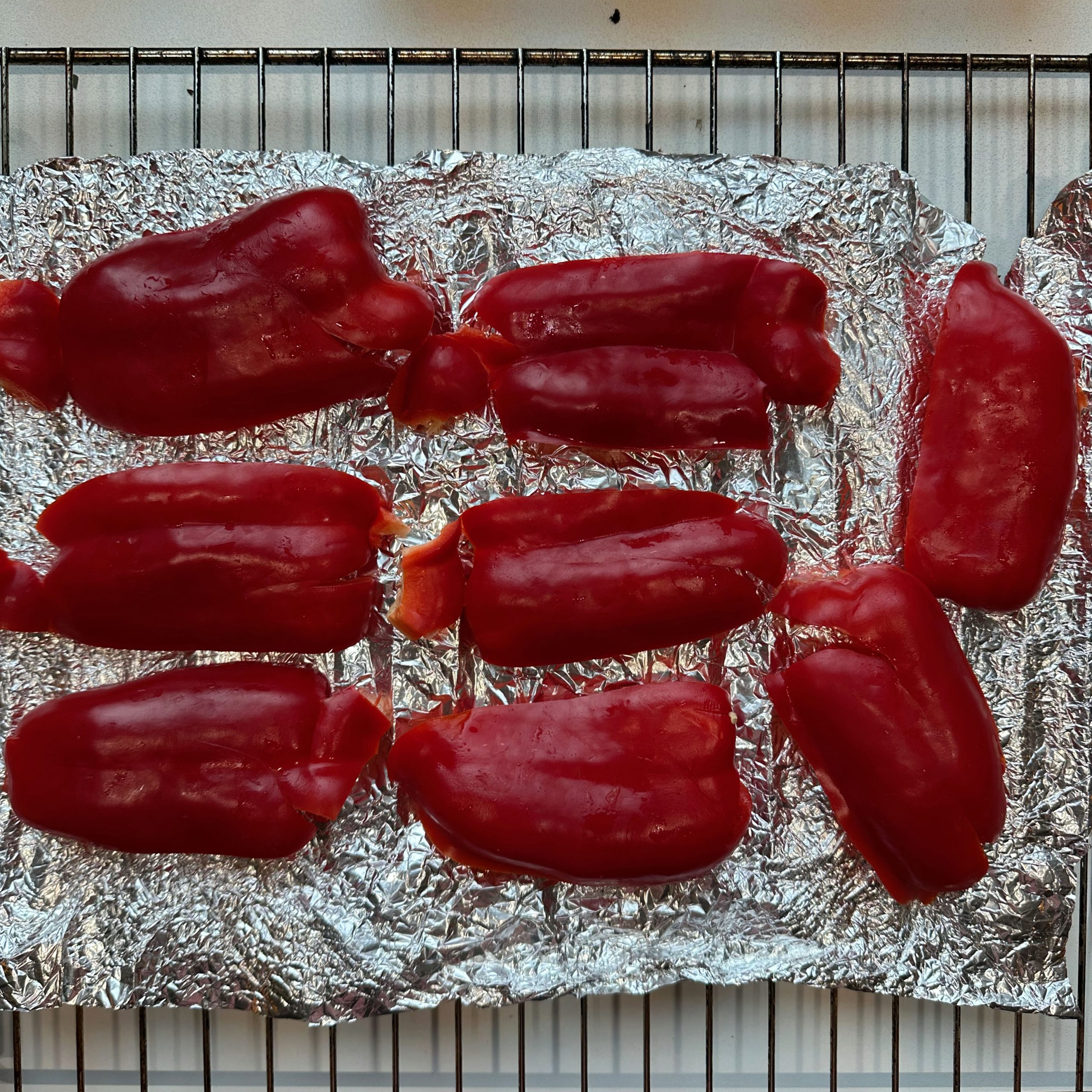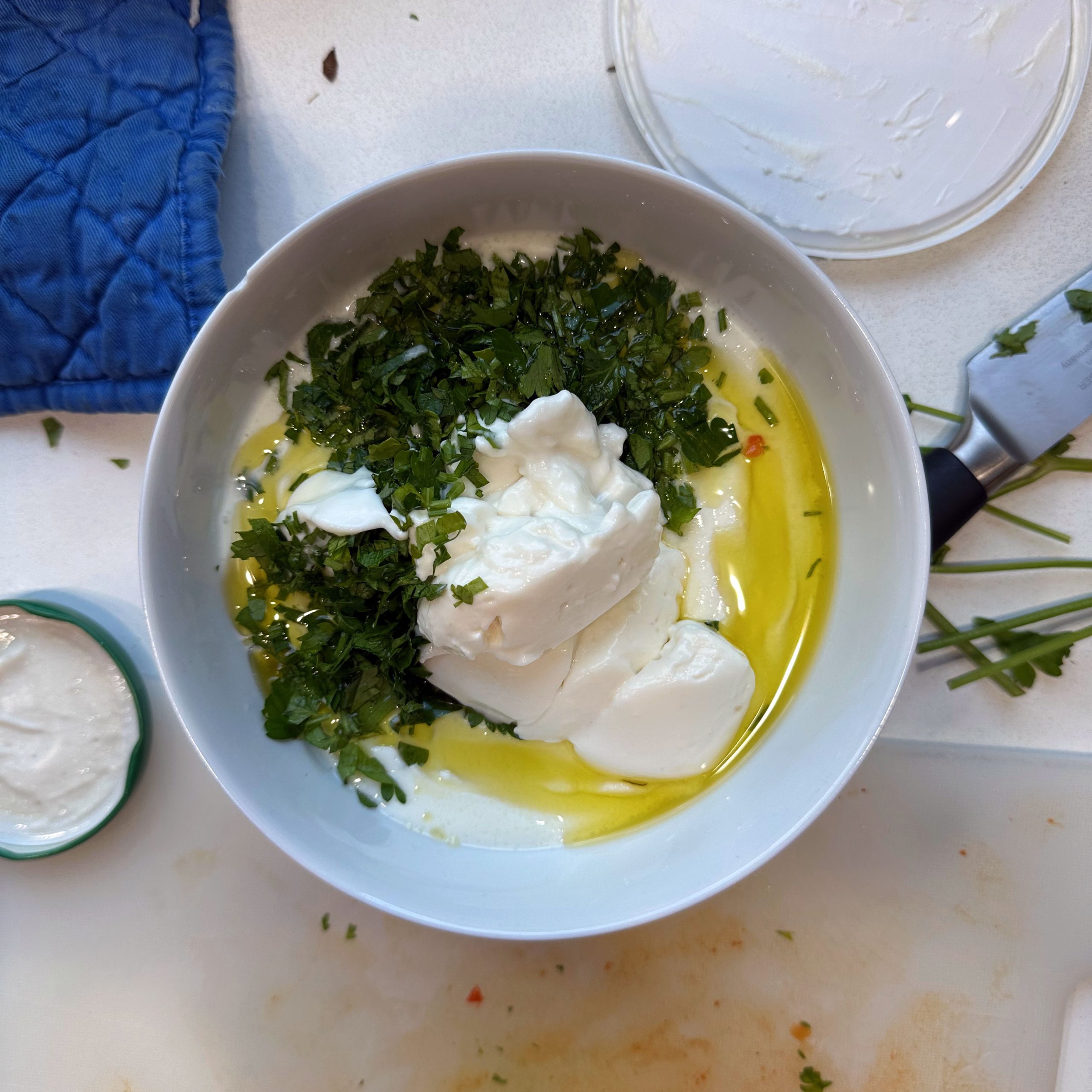 800 g Kartoffeln schälen und in mundgerechte Stücke schneiden, 1 Knollensellerie schälen und würfeln, 7 Möhren schälen und in Stücke schneiden, 2 Zucchini in Scheiben schneiden. Alles mit etwas Öl, Salz und Pfeffer mischen und auf 2 mit Backpapier belegte Bleche verteilen, bei 200 °C Umluft 35–40 Min. backen. 300 g Champignons ganz mit dem Kopf nach unten auf ein Blech setzen, mit etwas Öl beträufeln und salzen, bei 200 °C Umluft 30 Min. mitbacken, etwas abkühlen lassen, in Scheiben schneiden und mit Sojasoße, Balsamico und Ahornsirup marinieren. 2 Paprika halbieren, entkernen und unter dem Grill rösten, bis die Haut schwarz ist, abkühlen lassen, häuten, in Streifen schneiden, salzen und in Essig, Öl und Balsamico marinieren. 4 Lachsfilets in einer heißen Pfanne in etwas Öl auf der hautfreien Seite 5 Min. braten, dann wenden und auf der Hautseite bei mittlerer Hitze 7–8 Min. weiterbraten. Dip aus Joghurt, Mayonnaise, Zitrone, Petersilie, Olivenöl anrühren. Ofengemüse mit marinierten Champignons, Paprikasalat und gebratenem Lachs auf Tellern mit Dip anrichten.