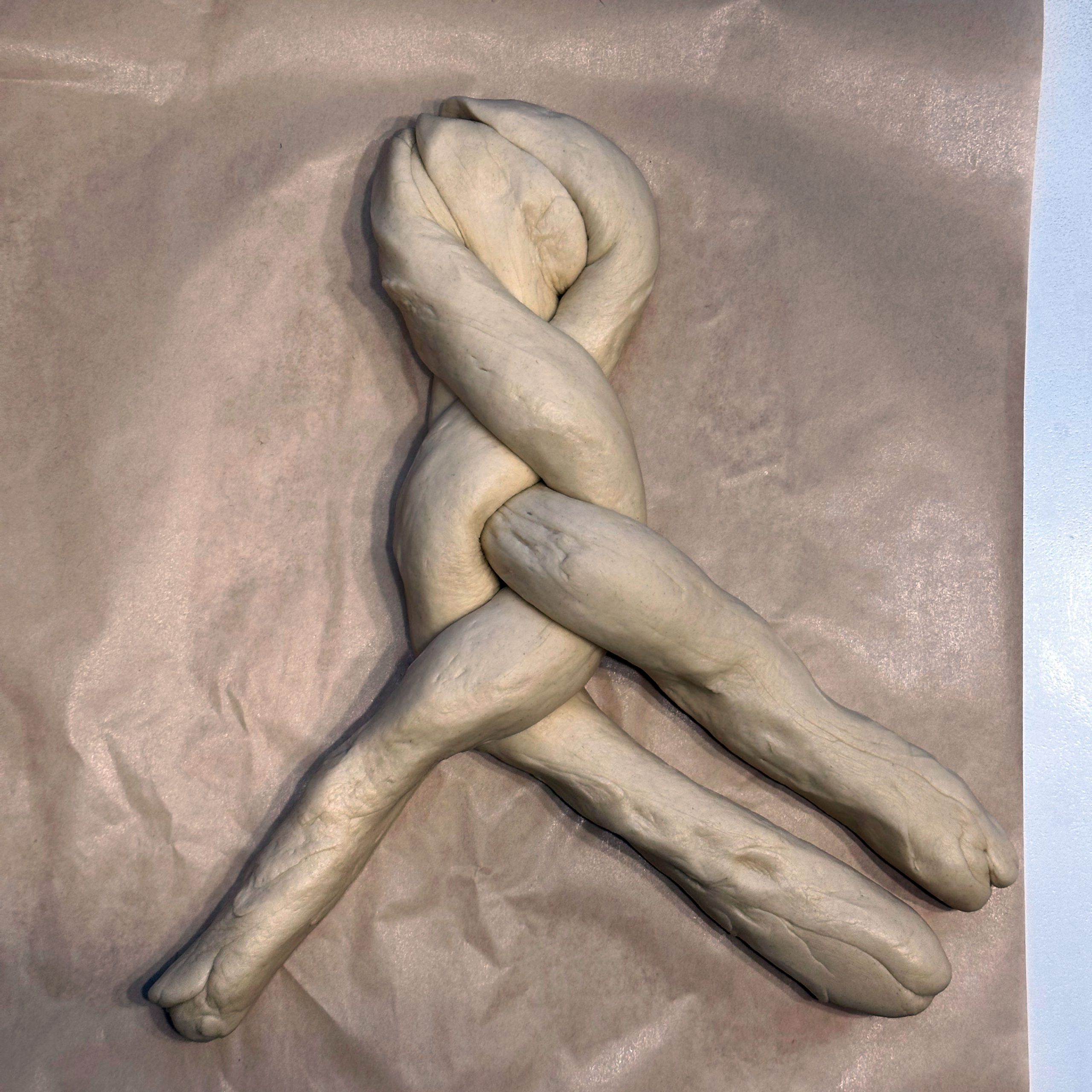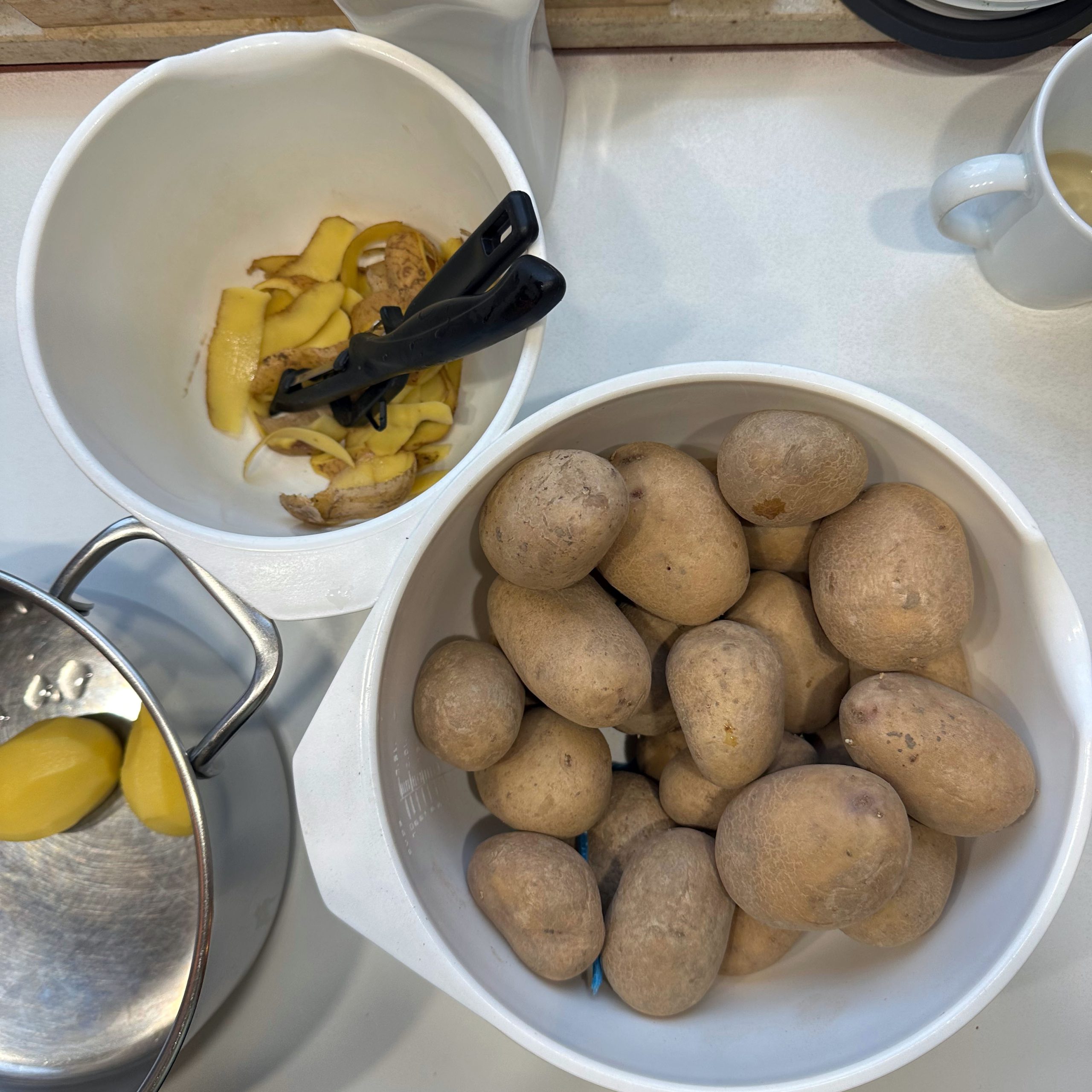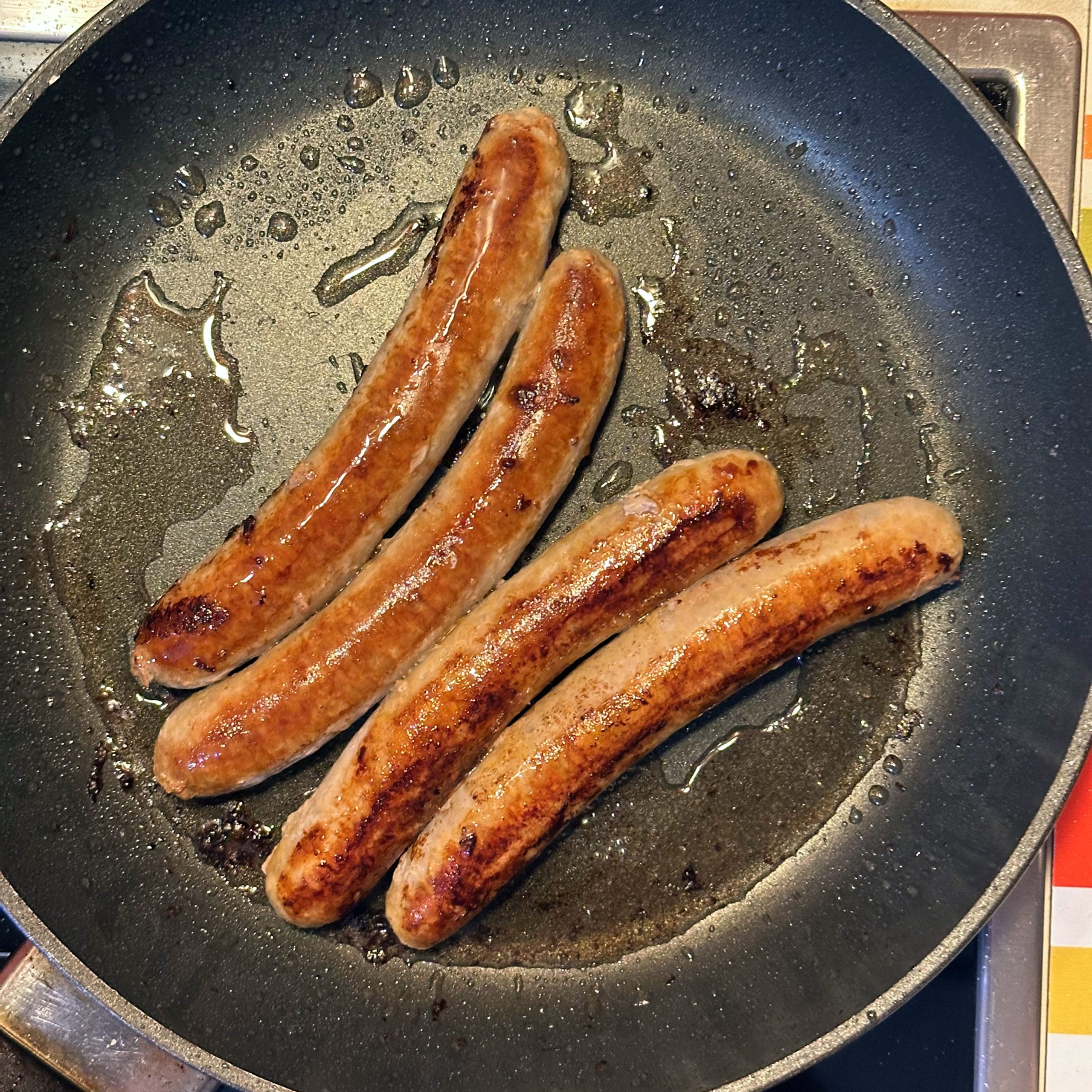 Zunächst den Osterzopf für morgen zubereiten. Dann 1 kg Kartoffeln schälen und in Salzwasser weich kochen. 4 Eier in kaltem Wasser aufsetzen, aufkochen und 9 Min. kochen, herausnehmen, kalt abschrecken und pellen oder bereits zubereitete Ostereier nehmen. Für die Grüne Soße 1 Bund gemischte Kräuter (Petersilie, Schnittlauch, Kerbel, Borretsch, Pimpinelle, Sauerampfer, Kresse) waschen, trocken tupfen und fein hacken. 2 Becher Schmand, 1 Becher Quark, 200 g Joghurt, 2 EL Öl, 2 EL Essig, 1 TL Senf, Salz und Pfeffer verrühren und die gehackten Kräuter unterheben, mit Saft von 0,5 Zitrone abschmecken. 4 Bratwürste in einer Pfanne in etwas Öl rundum goldbraun braten. Kartoffeln abgießen, Eier halbieren und zusammen mit den Bratwürsten und der Grünen Soße auf Tellern anrichten.