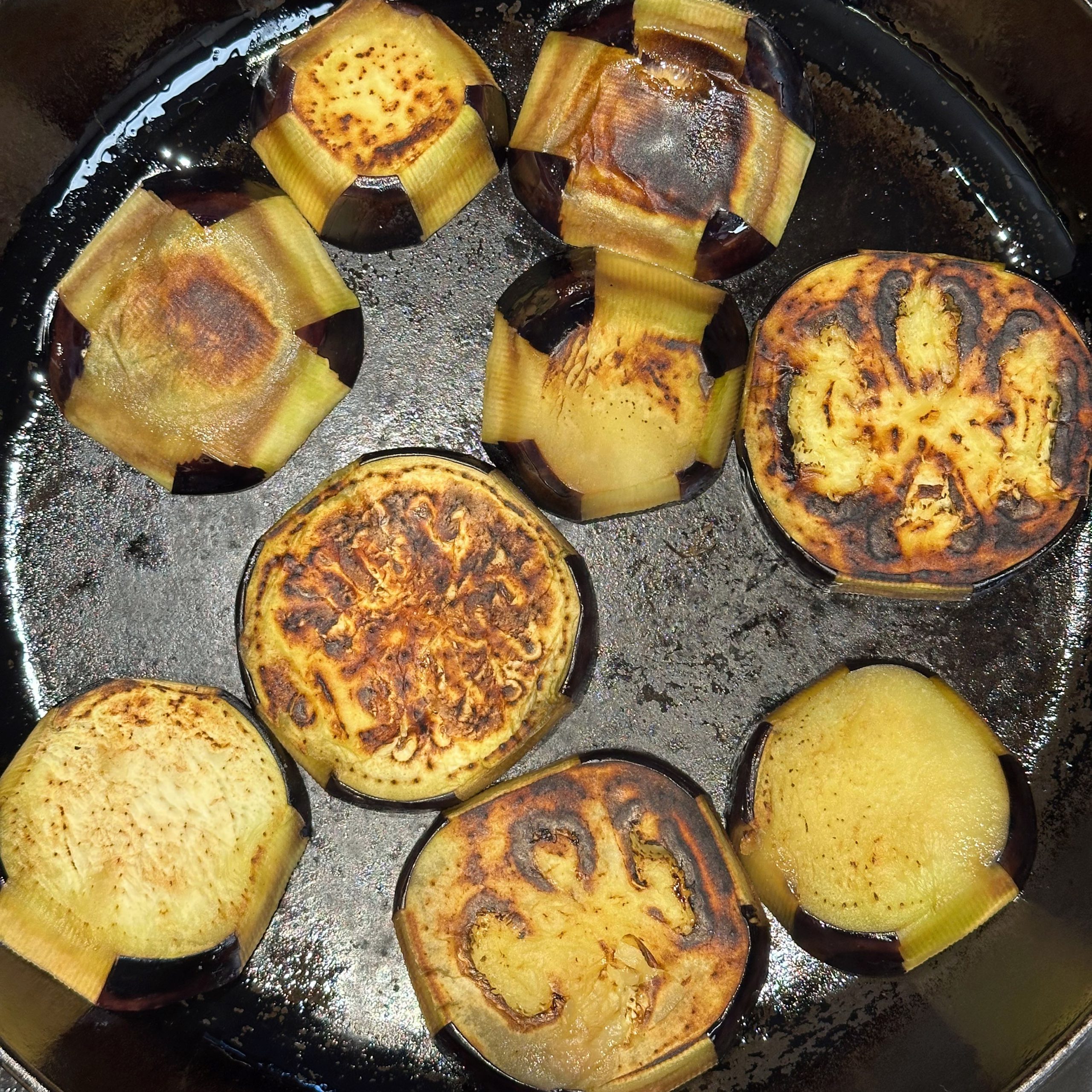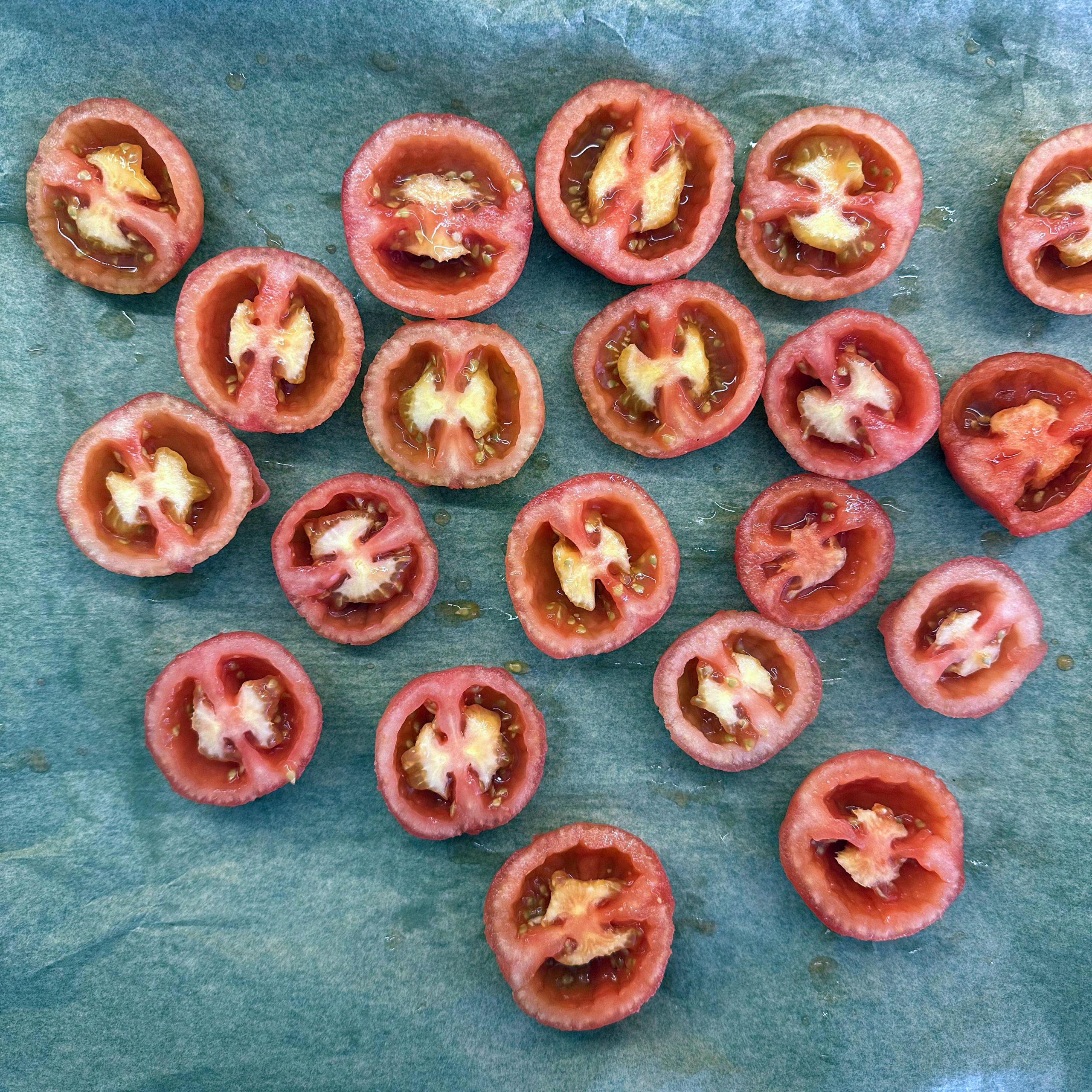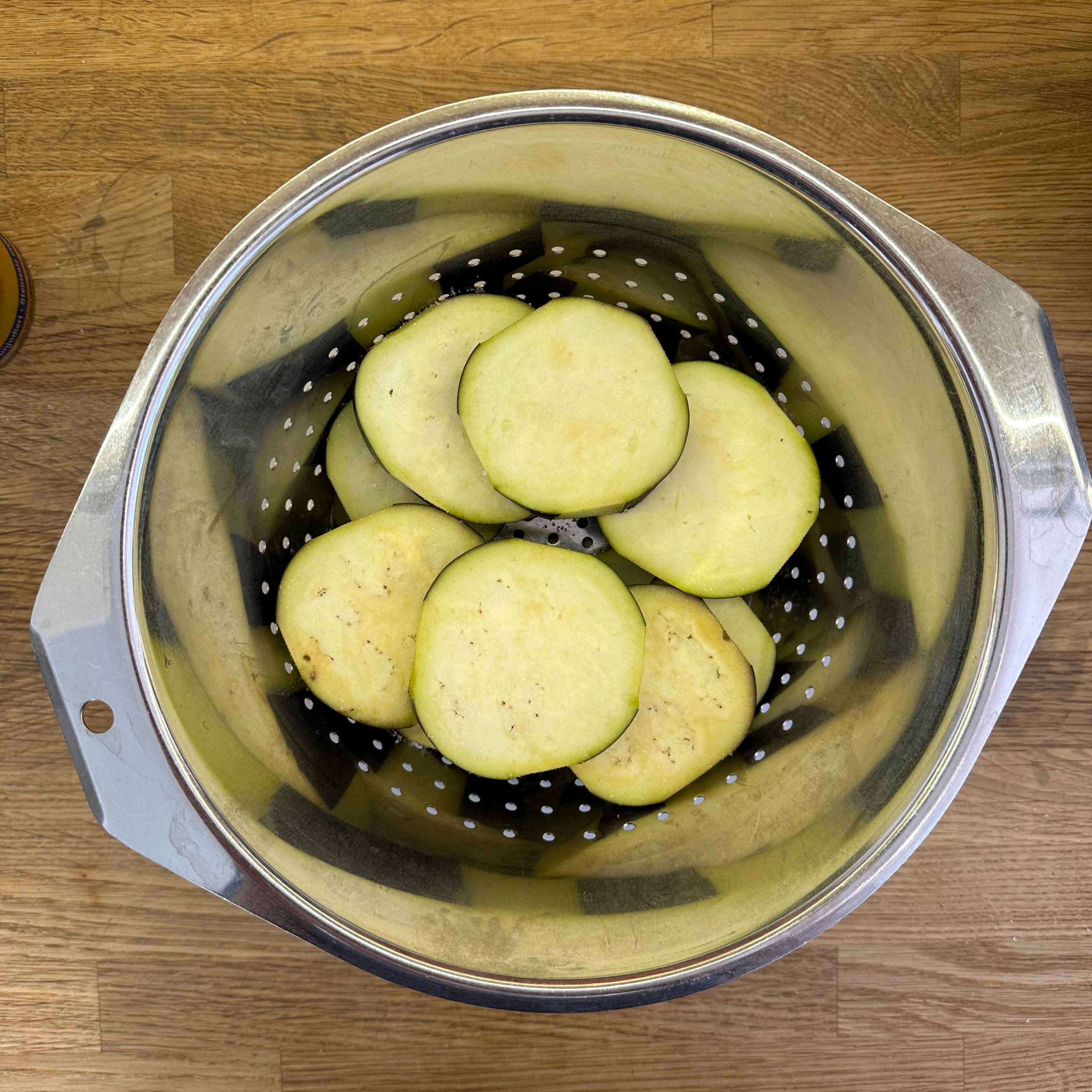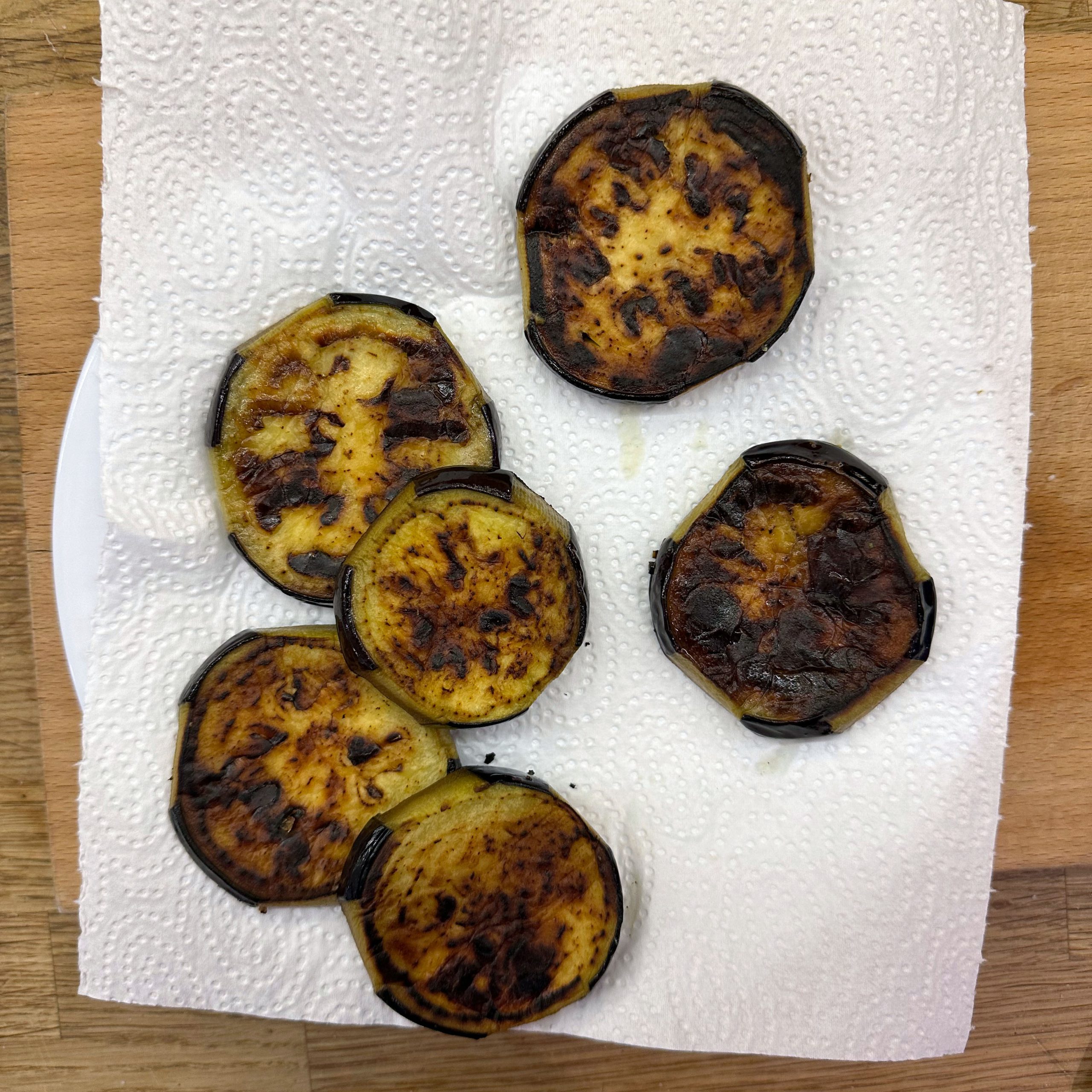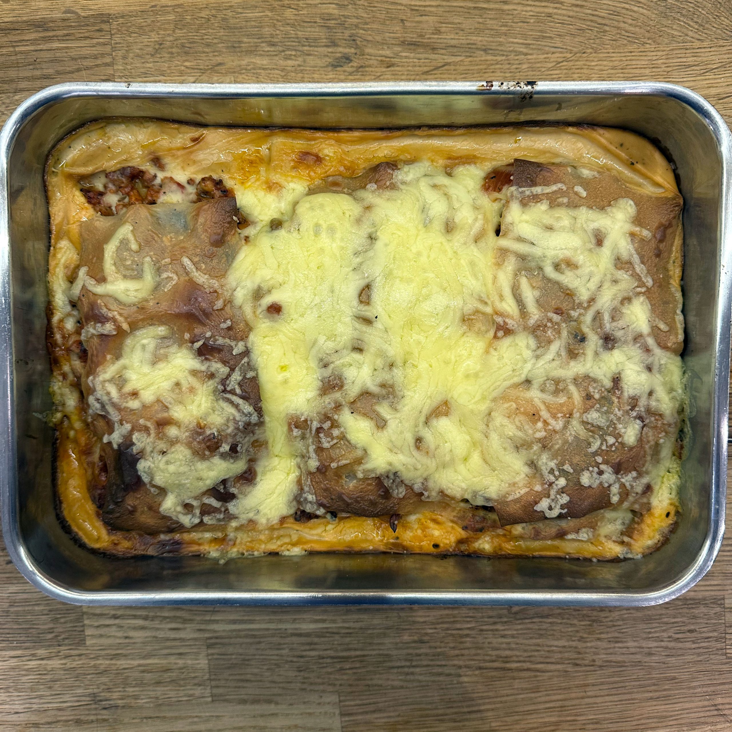 8 Tomaten blanchieren, enthäuten, halbieren, entkernen und mit Olivenöl und Salz bei 180°C etwa 40 Minuten im Ofen rösten, bis sie eingefallen sind. 2 mittelgroße Auberginen in Scheiben schneiden, salzen, 30 Minuten entwässern lassen, trocken tupfen und in Olivenöl von beiden Seiten goldbraun braten. 500g frischen Spinat waschen und in einer Pfanne kurz zusammenfallen lassen, gut ausdrücken. Für die Tofubolognese 400g Tofuhack mit kochendem Wasser übergießen, 10min ziehen lassen, auswringen und in einer Pfanne mit 2 EL Olivenöl goldbraun braten, 1 gewürfelte Zwiebel hinzufügen und glasig dünsten, 2 EL Tomatenmark einrühren, mit 1 Dose gehackten Tomaten (400g) und 100ml Gemüsebrühe ablöschen, mit 1 TL Oregano, 1 TL Thymian, Salz und Pfeffer würzen und 15 Minuten köcheln lassen. Eine Bechamelsoße aus 80g Butter, 80g Mehl und 1l Milch zubereiten, mit Salz und Pfeffer würzen. Eine Auflaufform einfetten und schichtweise aufbauen: etwas Bechamelsoße auf den Boden, 3 Lasagneblätter, Tofubolognese, Spinat, Auberginenscheiben, Ofentomaten, wieder Lasagneblätter und diese Schichtung wiederholen. Als oberste Schicht Lasagneblätter auflegen, mit der restlichen Bechamelsoße bedecken und mit 100g geriebenem Käse bestreuen. Die Lasagne bei 180°C etwa 40-45 Minuten backen, bis sie goldbraun ist, 10 Minuten ruhen lassen und in Stücke geschnitten servieren.
