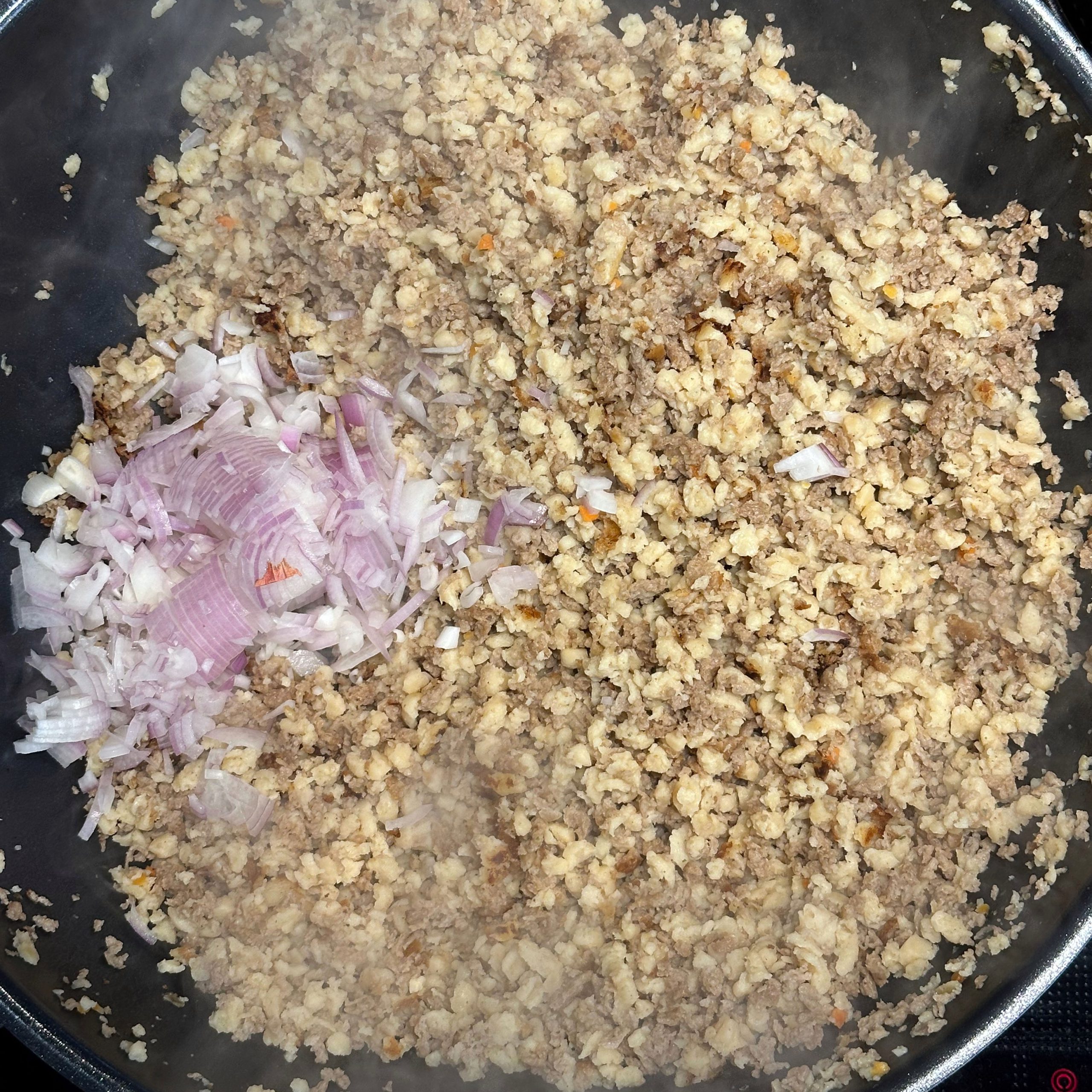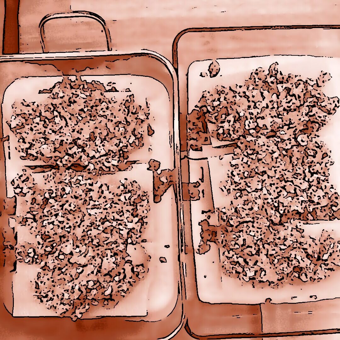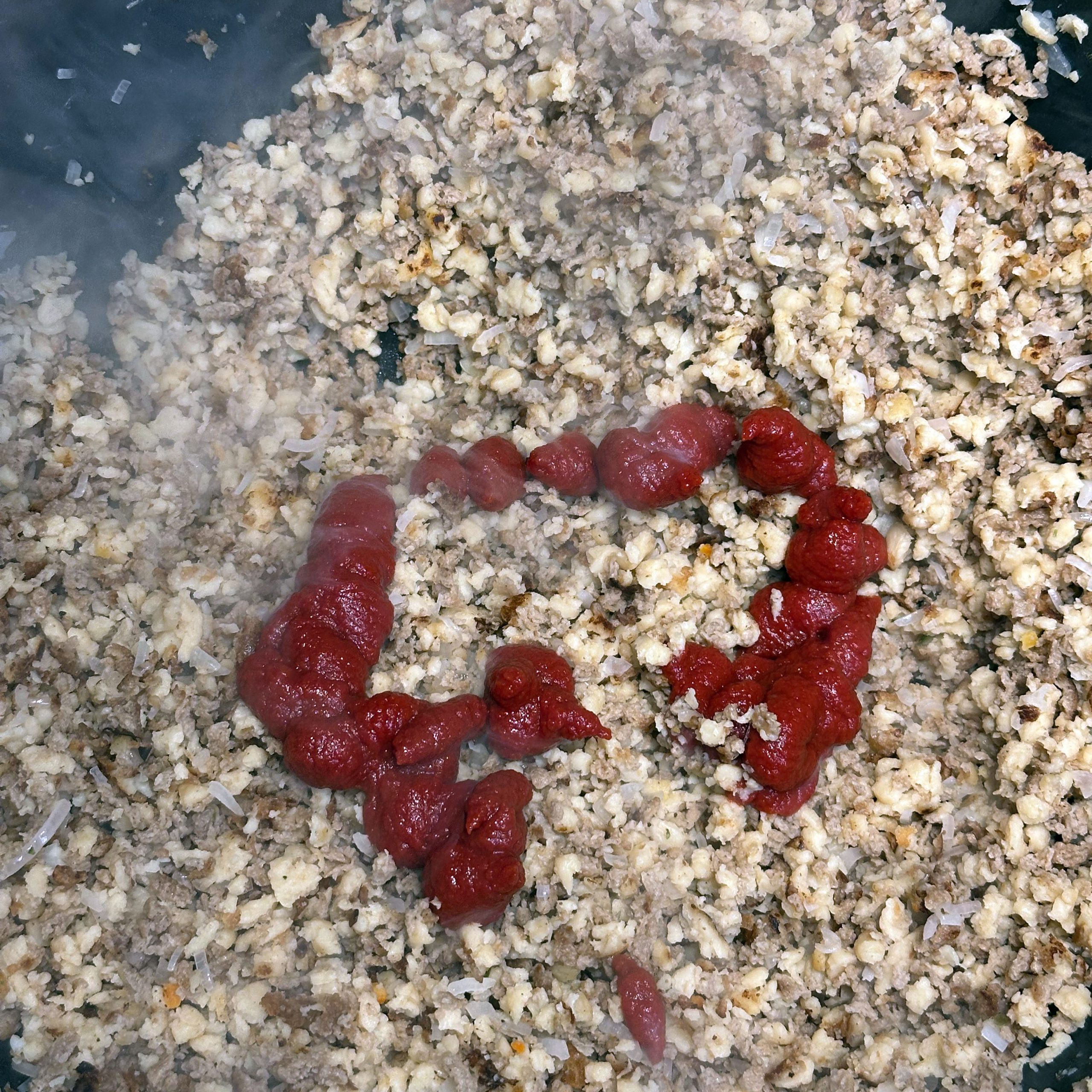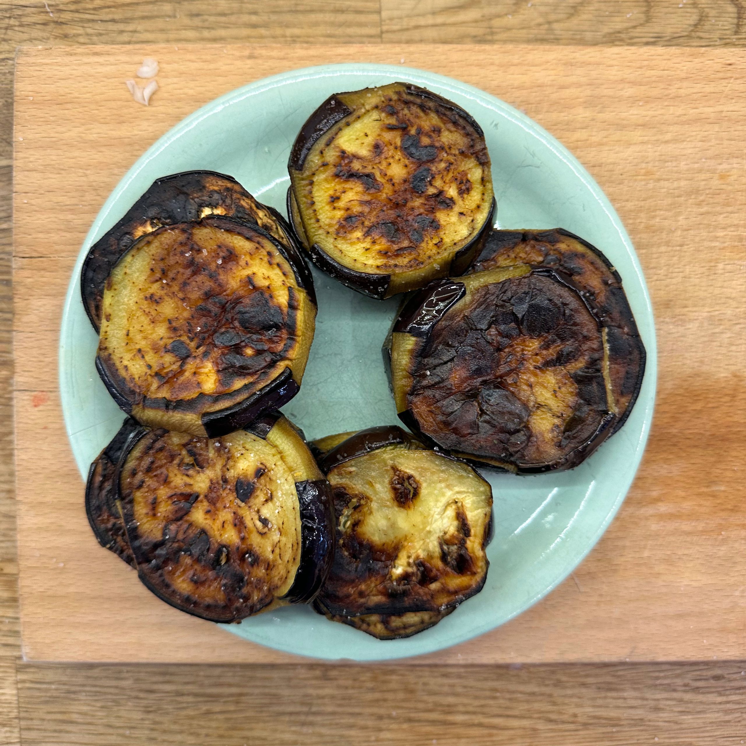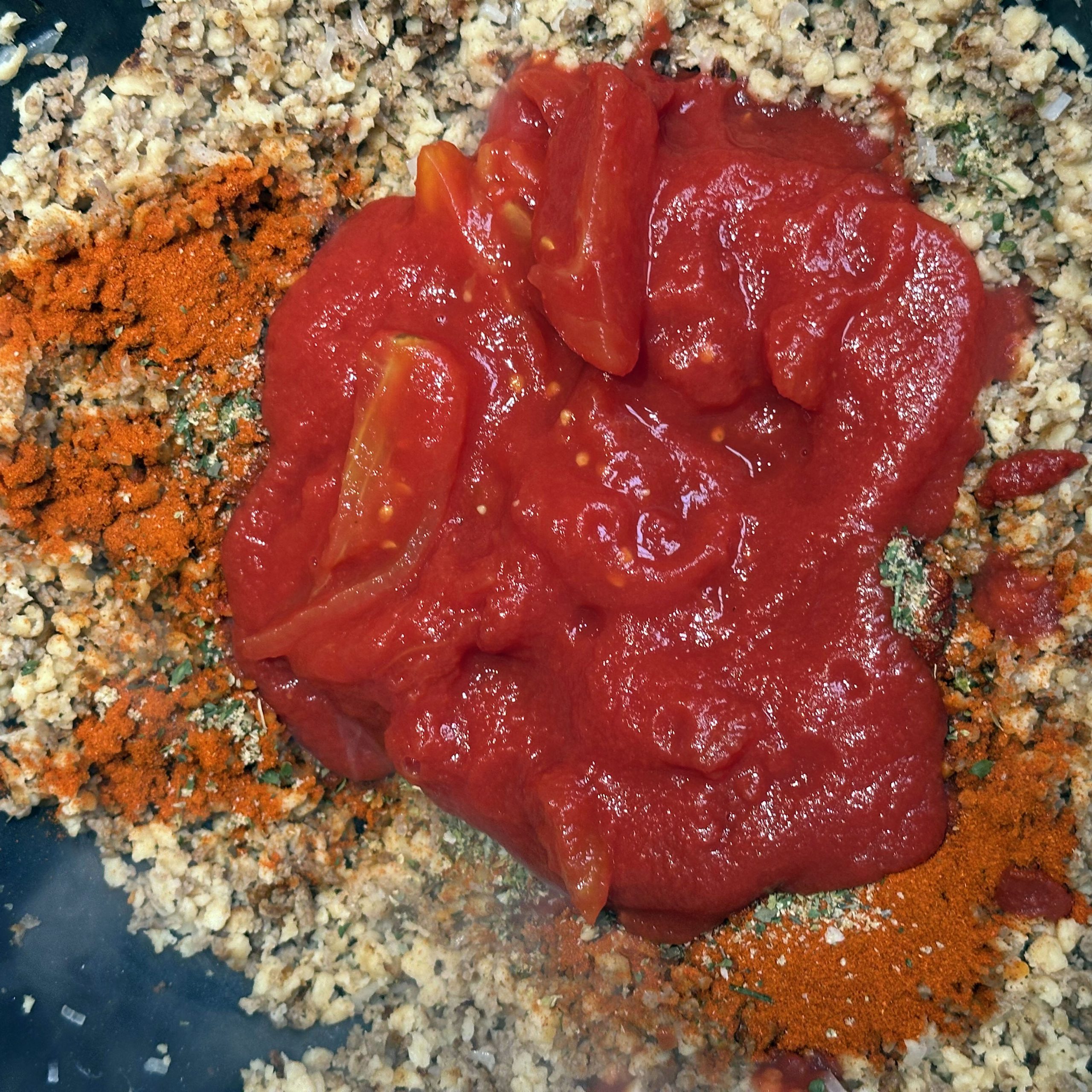 8 Tomaten blanchieren, enthäuten, halbieren, entkernen und mit Olivenöl und Salz bei 180°C etwa 40 Minuten im Ofen rösten, bis sie eingefallen sind. 2 mittelgroße Auberginen in Scheiben schneiden, salzen, 30 Minuten entwässern lassen, trocken tupfen und in Olivenöl von beiden Seiten goldbraun braten. 500g frischen Spinat waschen und in einer Pfanne kurz zusammenfallen lassen, gut ausdrücken. Für die Tofubolognese 400g Tofuhack mit kochendem Wasser übergießen, 10min ziehen lassen, auswringen und in einer Pfanne mit 2 EL Olivenöl goldbraun braten, 1 gewürfelte Zwiebel hinzufügen und glasig dünsten, 2 EL Tomatenmark einrühren, mit 1 Dose gehackten Tomaten (400g) und 100ml Gemüsebrühe ablöschen, mit 1 TL Oregano, 1 TL Thymian, Salz und Pfeffer würzen und 15 Minuten köcheln lassen. Eine Bechamelsoße aus 80g Butter, 80g Mehl und 1l Milch zubereiten, mit Salz und Pfeffer würzen. Eine Auflaufform einfetten und schichtweise aufbauen: etwas Bechamelsoße auf den Boden, 3 Lasagneblätter, Tofubolognese, Spinat, Auberginenscheiben, Ofentomaten, wieder Lasagneblätter und diese Schichtung wiederholen. Als oberste Schicht Lasagneblätter auflegen, mit der restlichen Bechamelsoße bedecken und mit 100g geriebenem Käse bestreuen. Die Lasagne bei 180°C etwa 40-45 Minuten backen, bis sie goldbraun ist, 10 Minuten ruhen lassen und in Stücke geschnitten servieren.