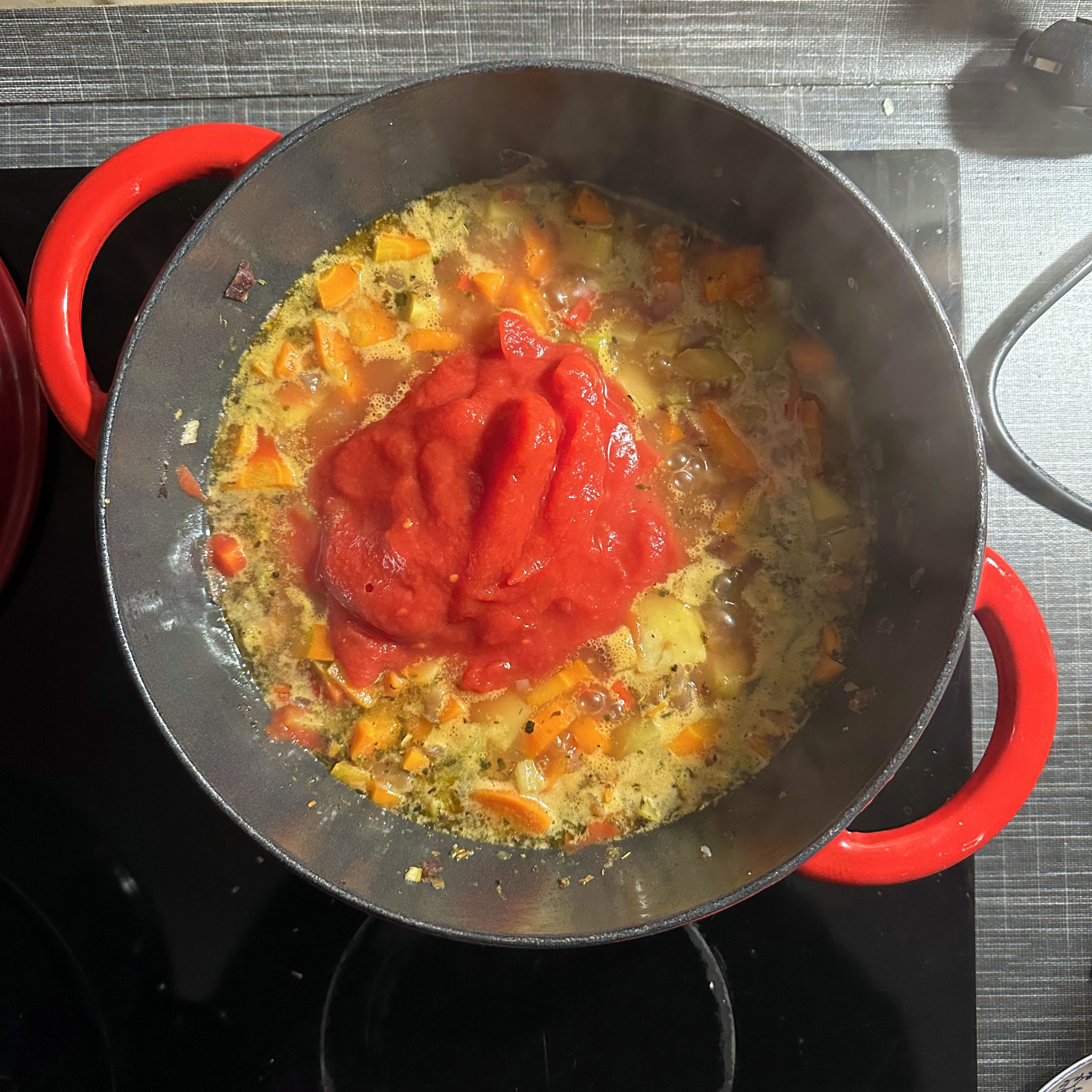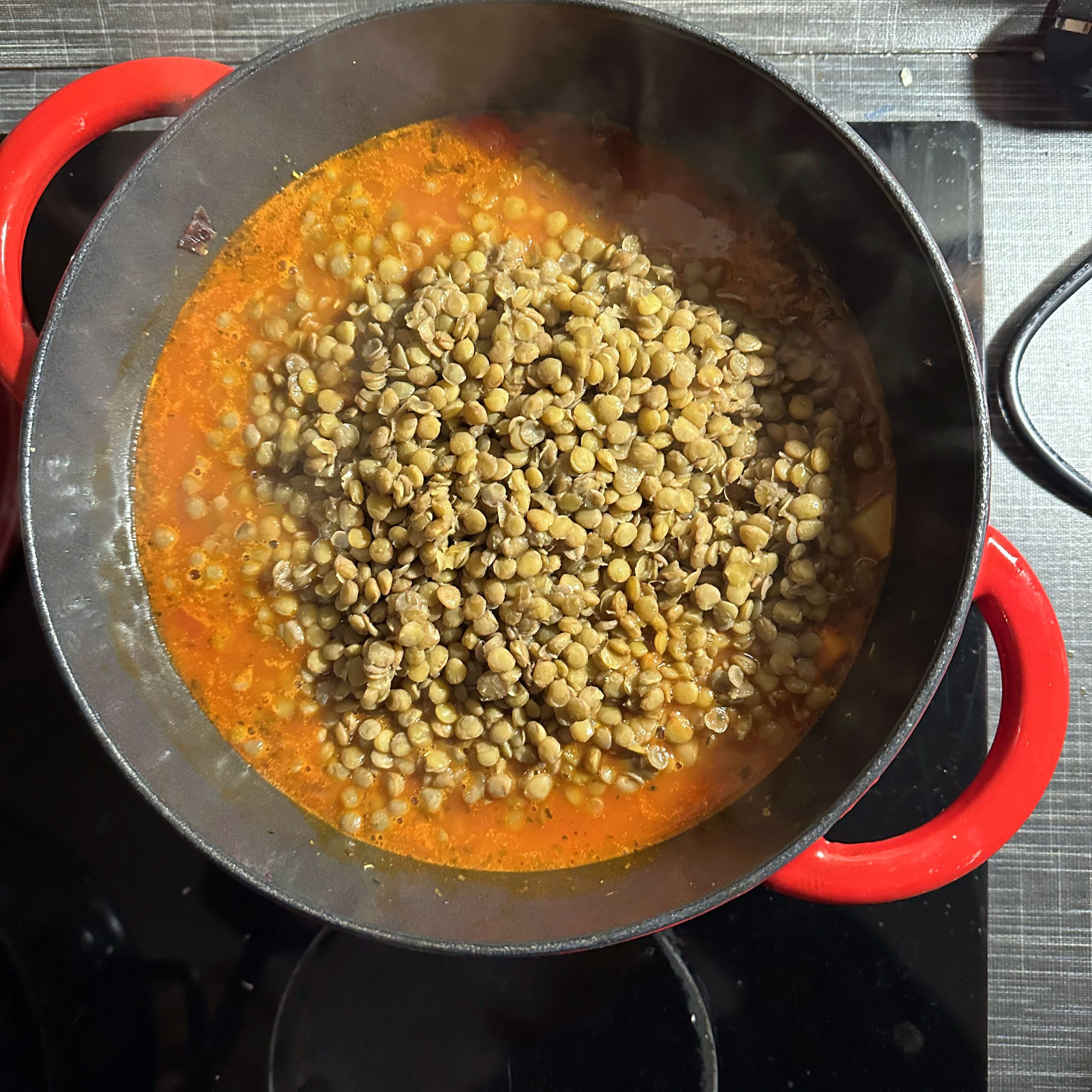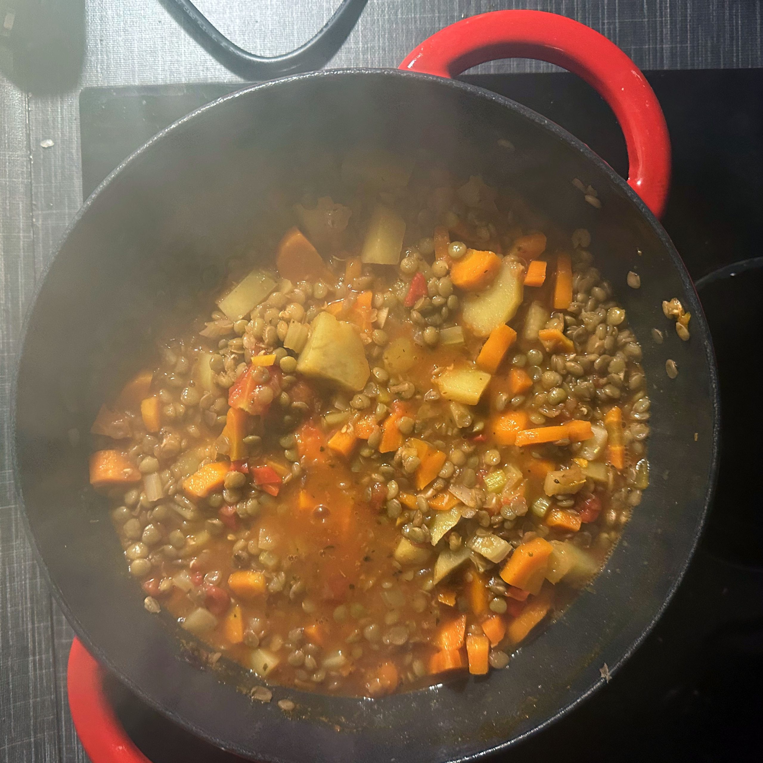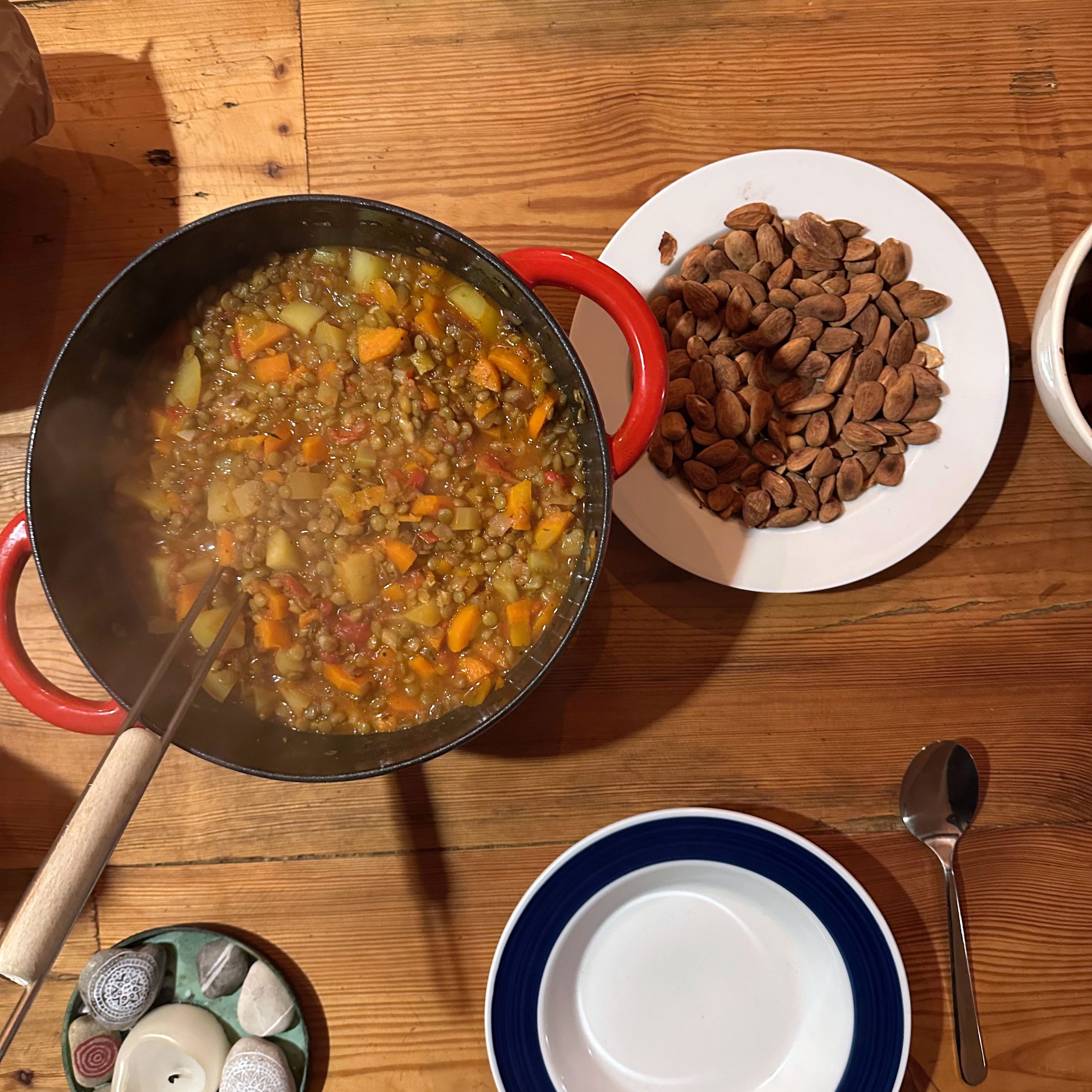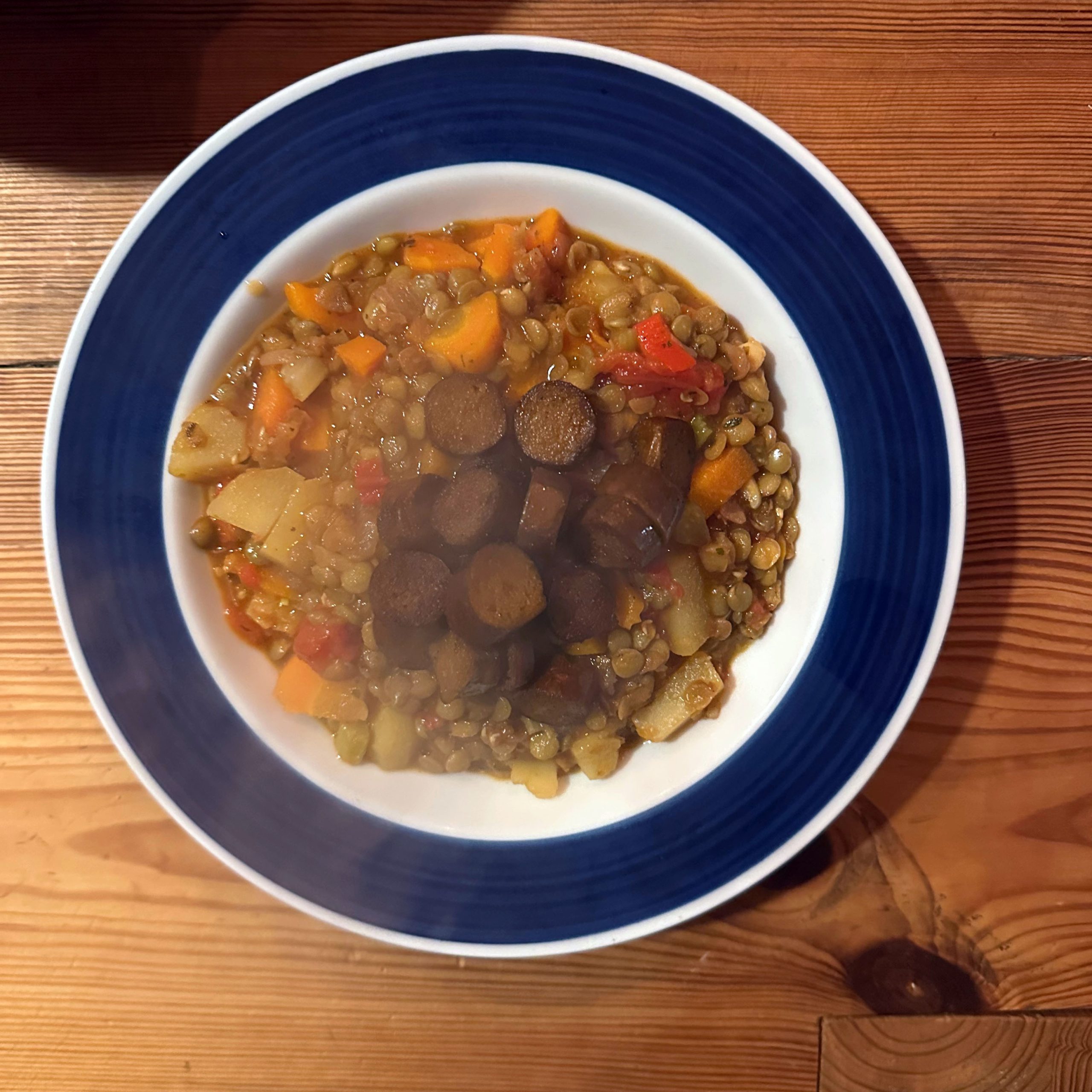 Deutsch Eintopf Gebraten Gekocht Vegan Winter Kartoffeln Linsen Merguez