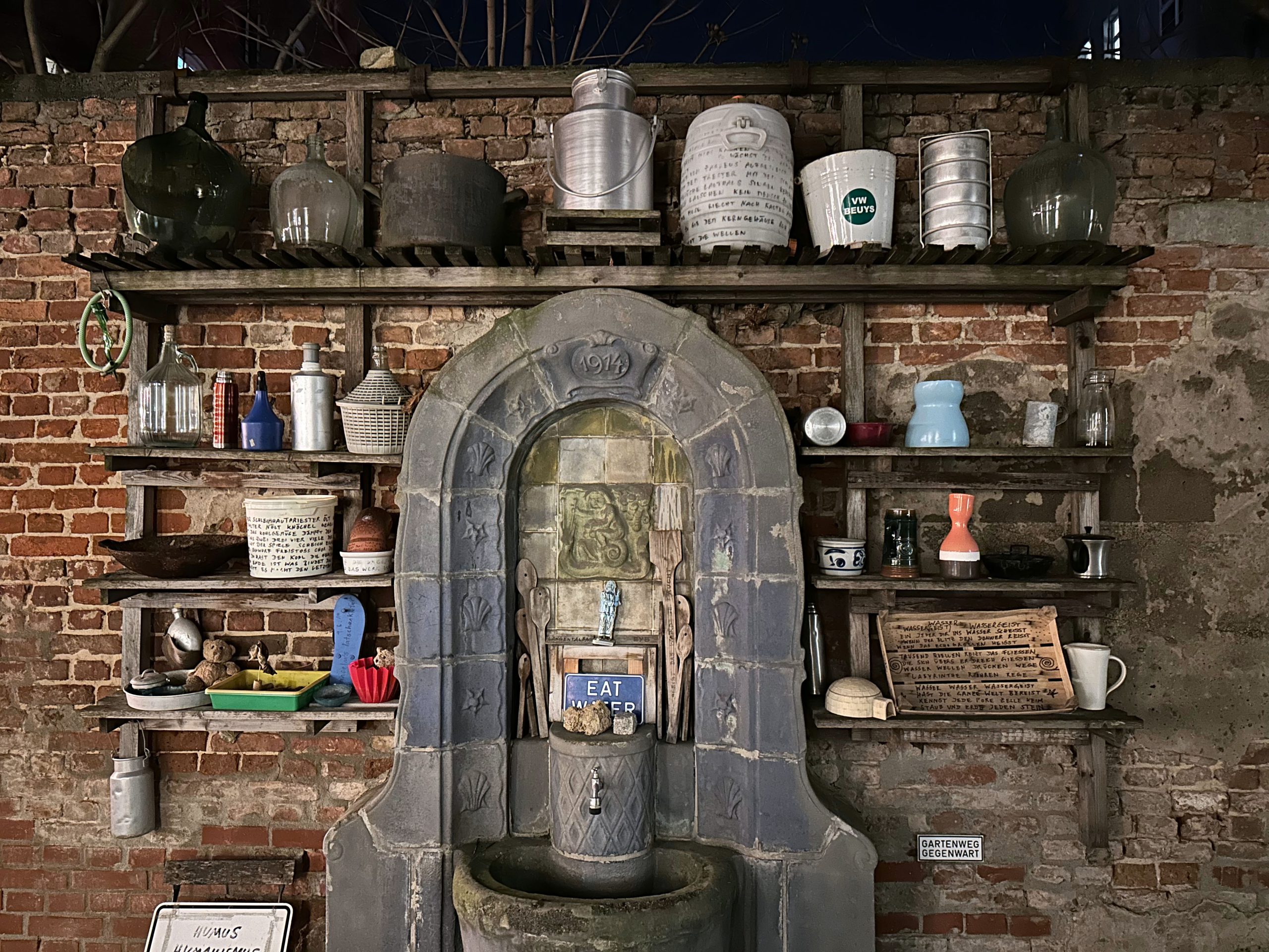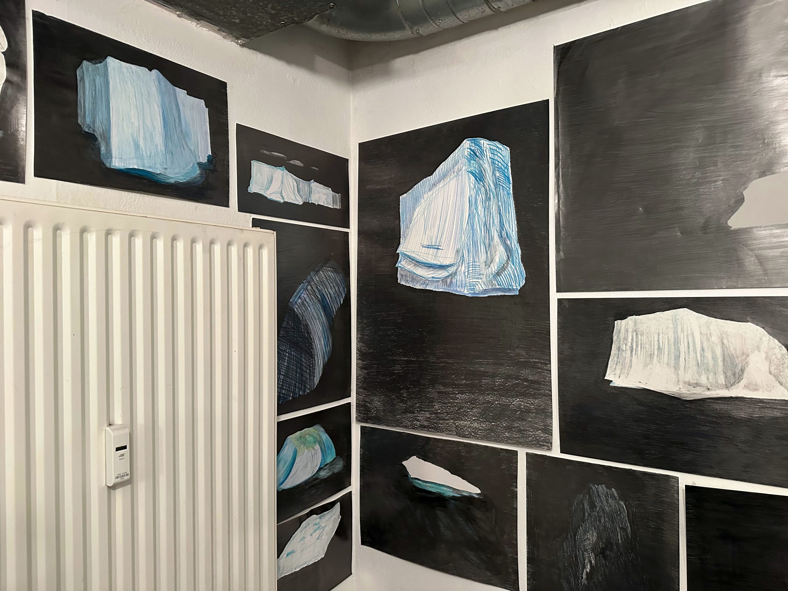 Essen und Kunst: zusammen mit Tilman in der Galerie Zagreus inmitten der Bilder „Denkmal für den unbekannten Eisberg“ von Ralf Tekaat das davon inspirierte Menu „Nordisch Noir“ gegessen: Konfierter Kabeljau mit Kombu-Algen, Muschelsud und Ingwer / „Eisberg“ Eisbergsalat, Chicorée und Endiviensalat mit Kartoffelschnee und Dressing mit Joghurt und Verjus auf eingelegten Pilzen und roten Zwiebeln mit Miso, Sojasauce und Balsamico / Rehkeule mit Steinpilzen, Johannisbeersauce mit Crème Double, Pastinakenpüree und Cranberries mit Orange / Parfait, Meringue, Sahne und Schokolade. Tolle Location, sehr gute Küche!