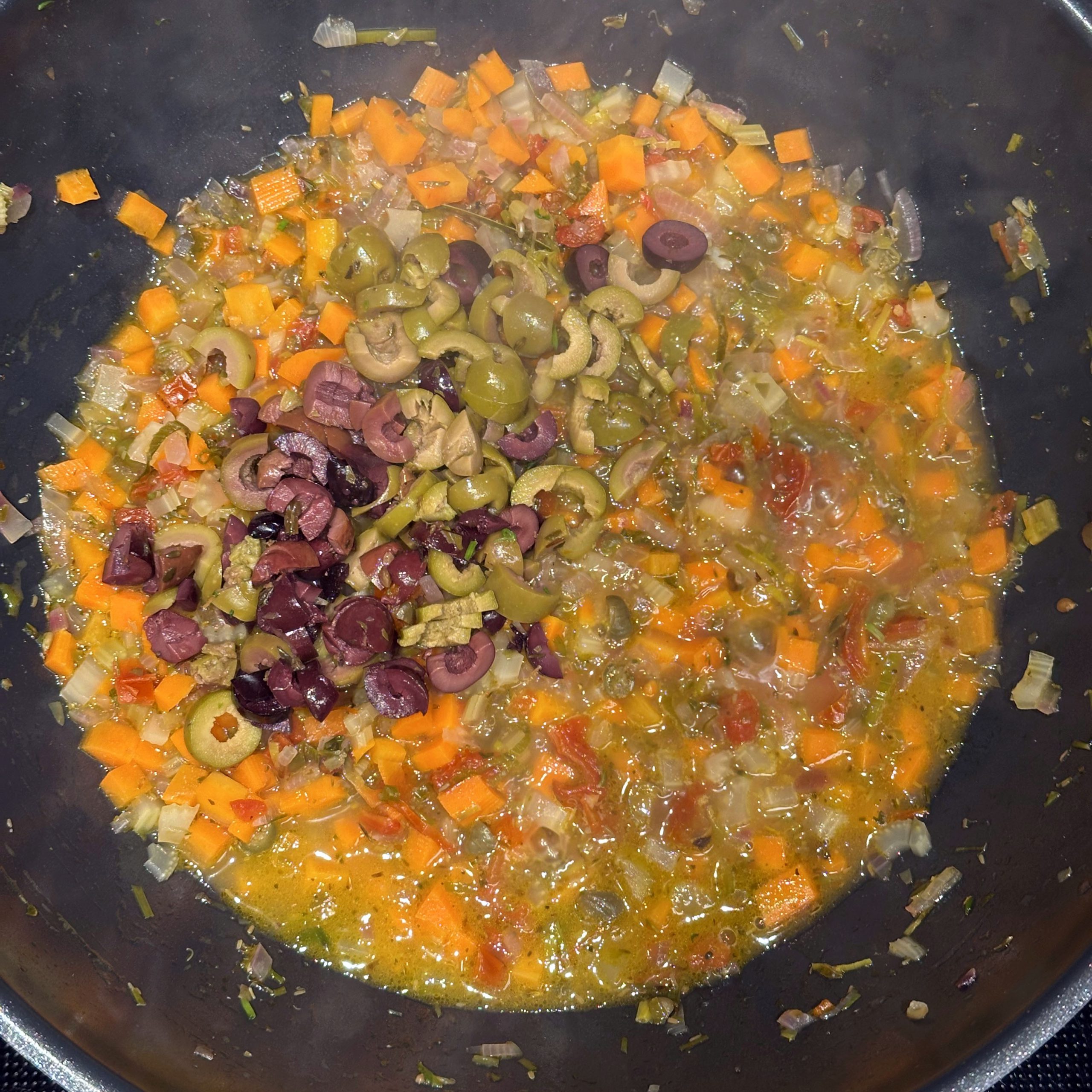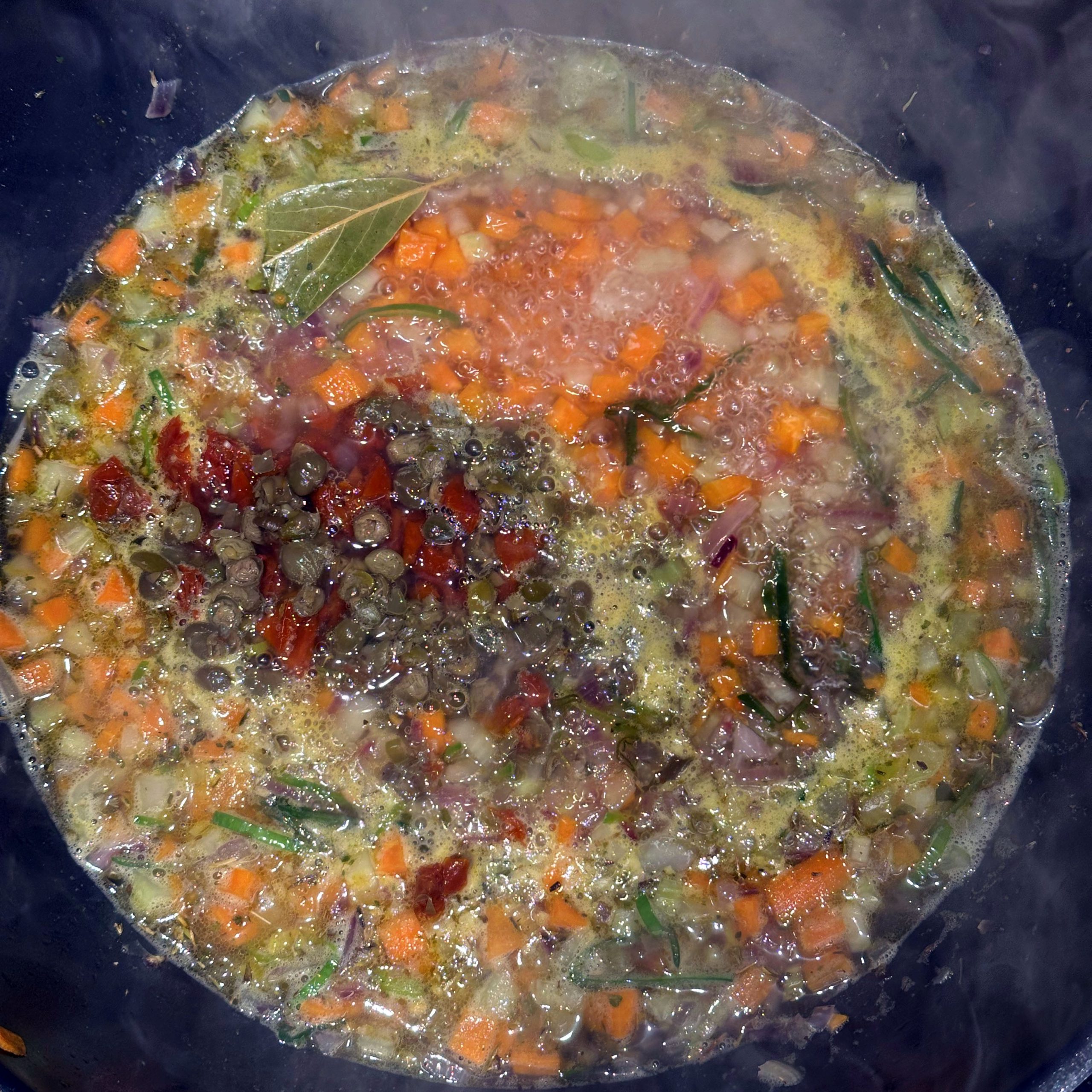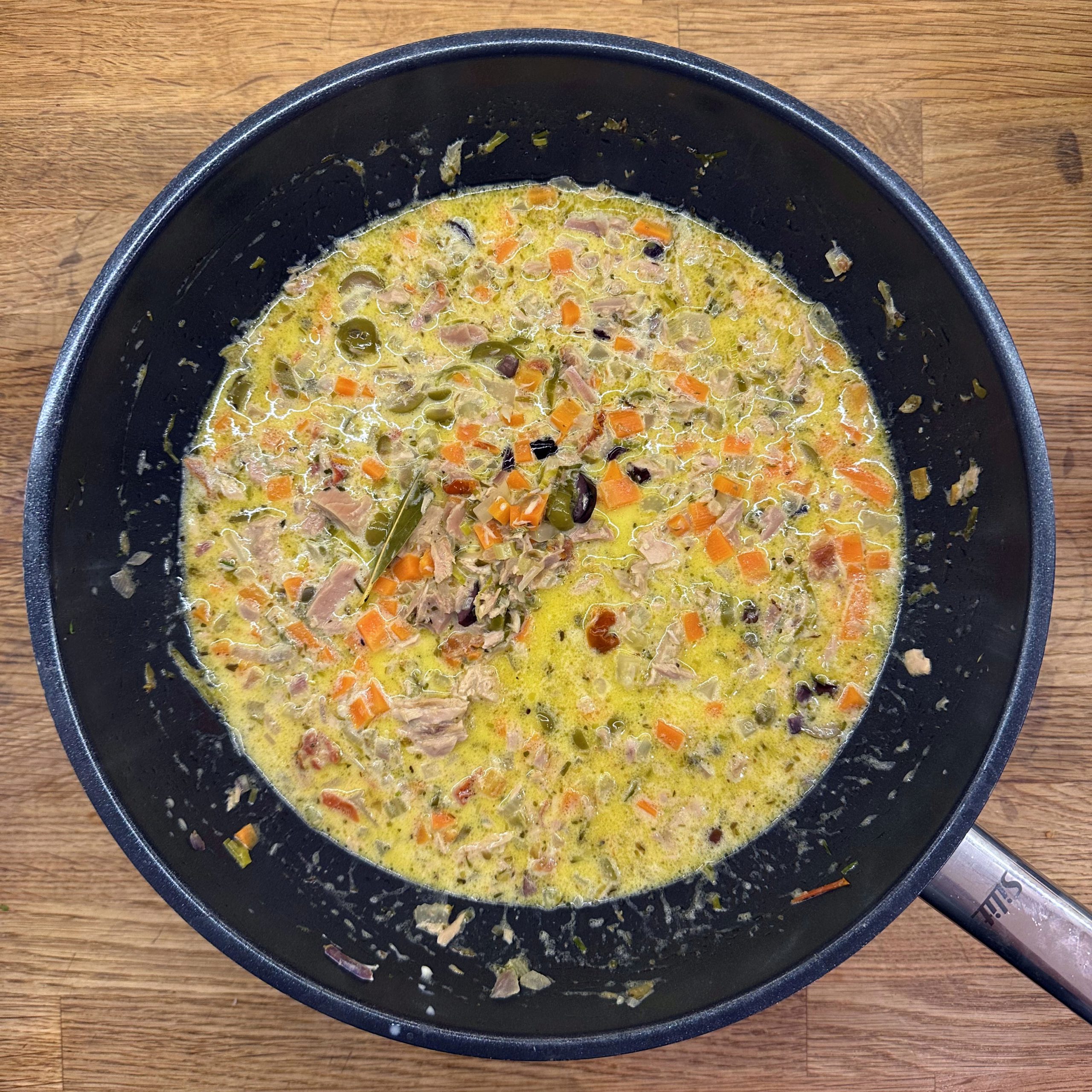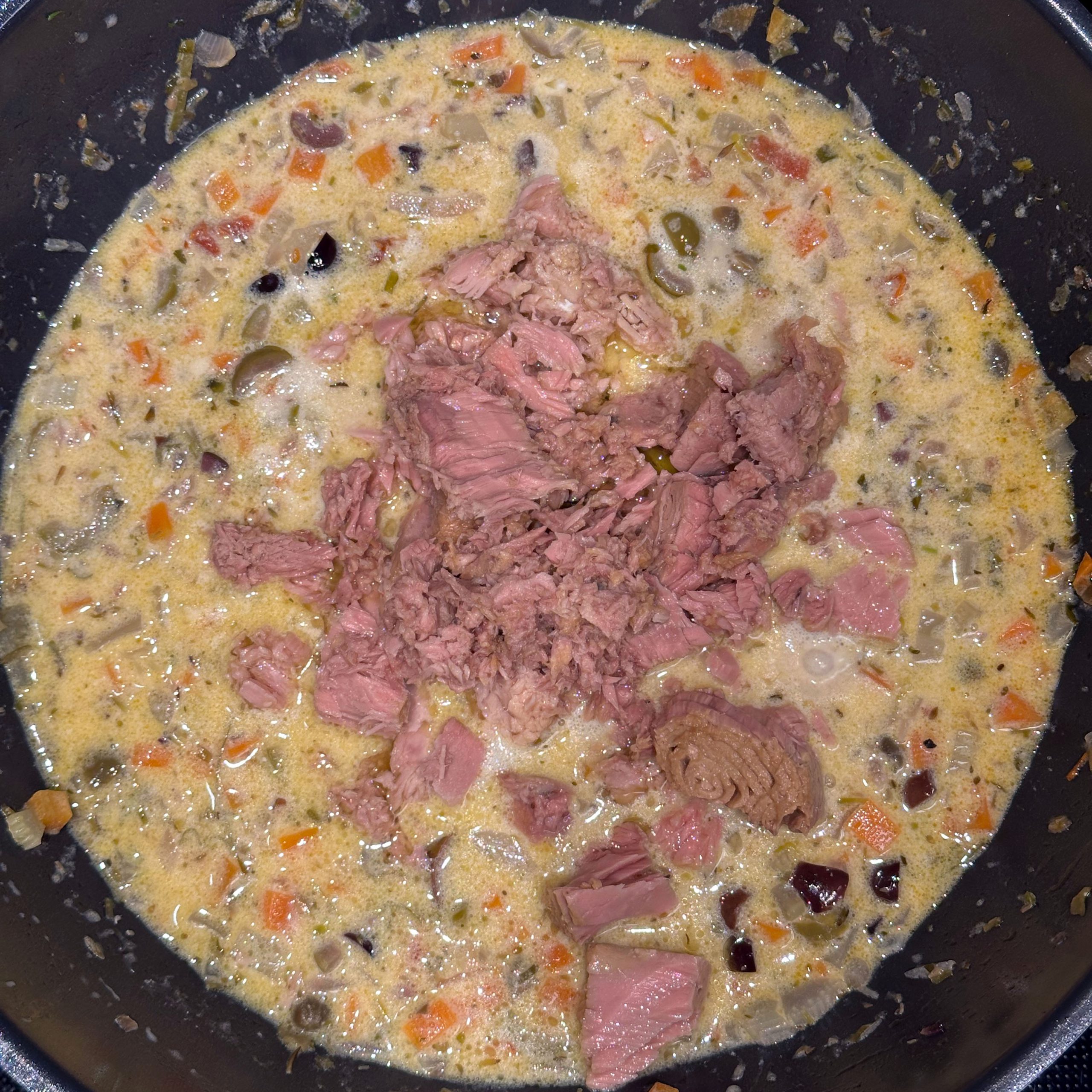 Fisch Gebraten Gekocht Mediterran Pasta Winter getrocknete Tomaten Kapern Lauch Möhren Oliven Parmesan Sahne Sellerie Thunfisch