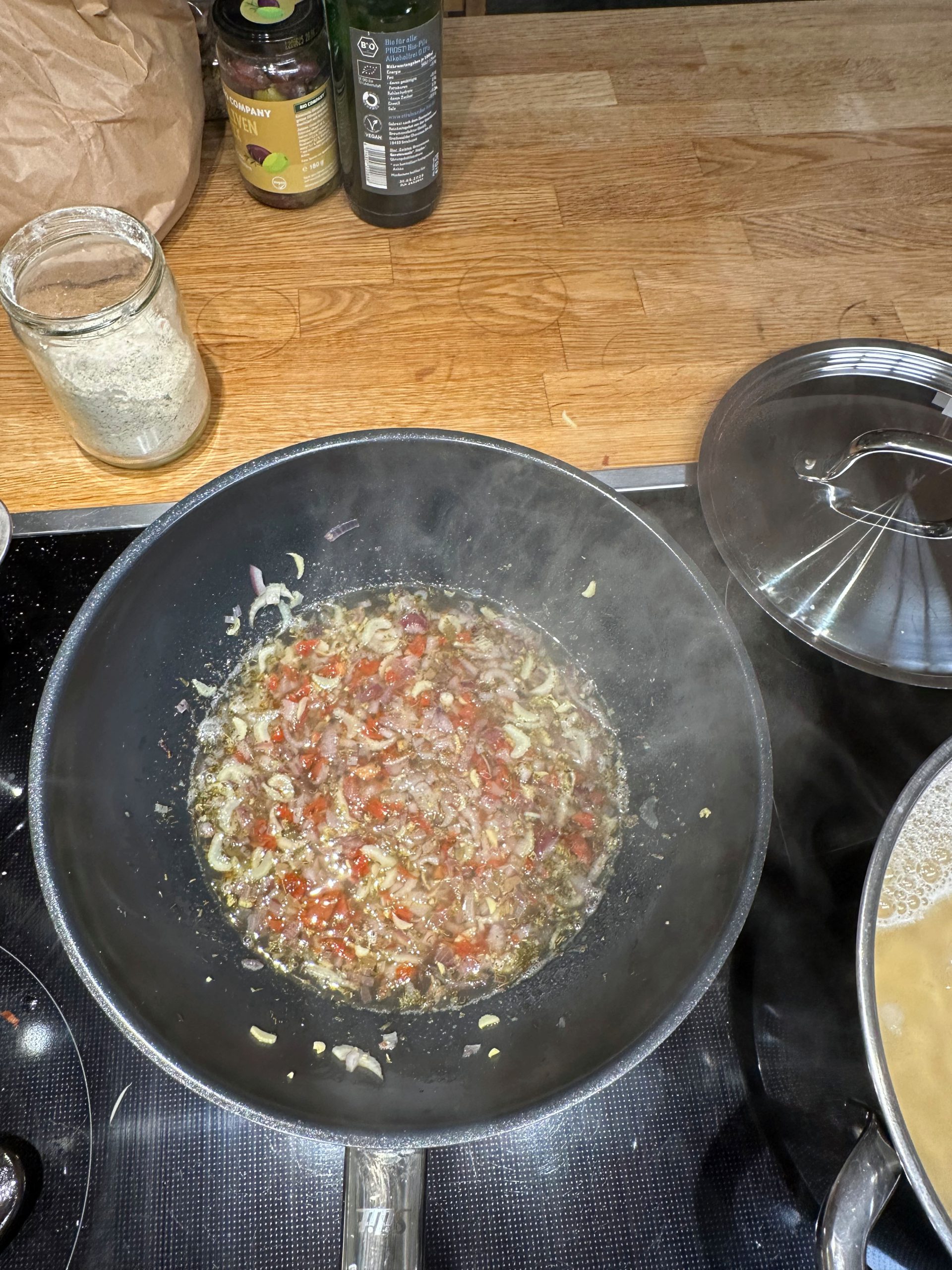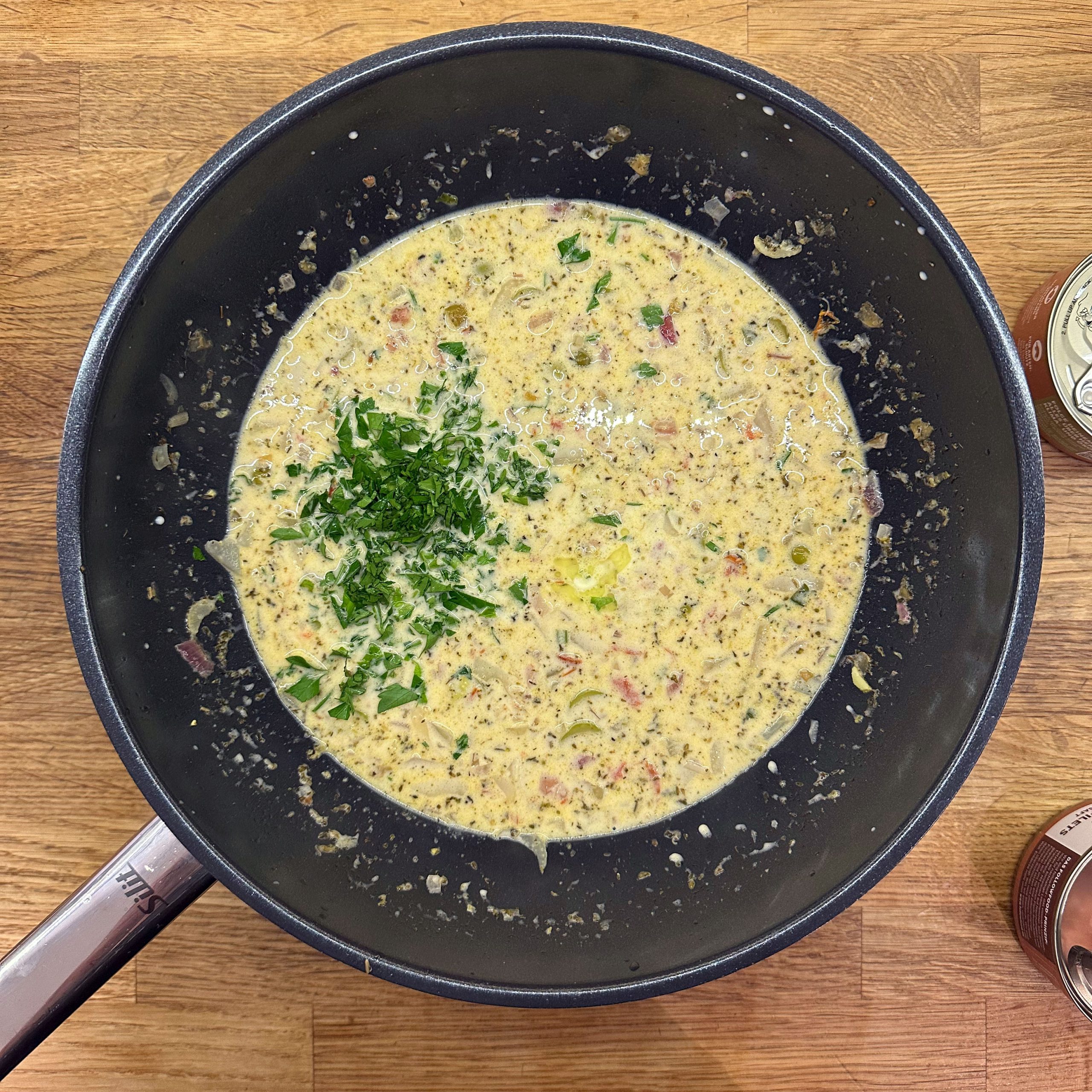 Fisch Gebraten Gedünstet Gekocht Mediterran Pasta Winter Fenchel Kapern Oliven Sahne Thunfischsoße