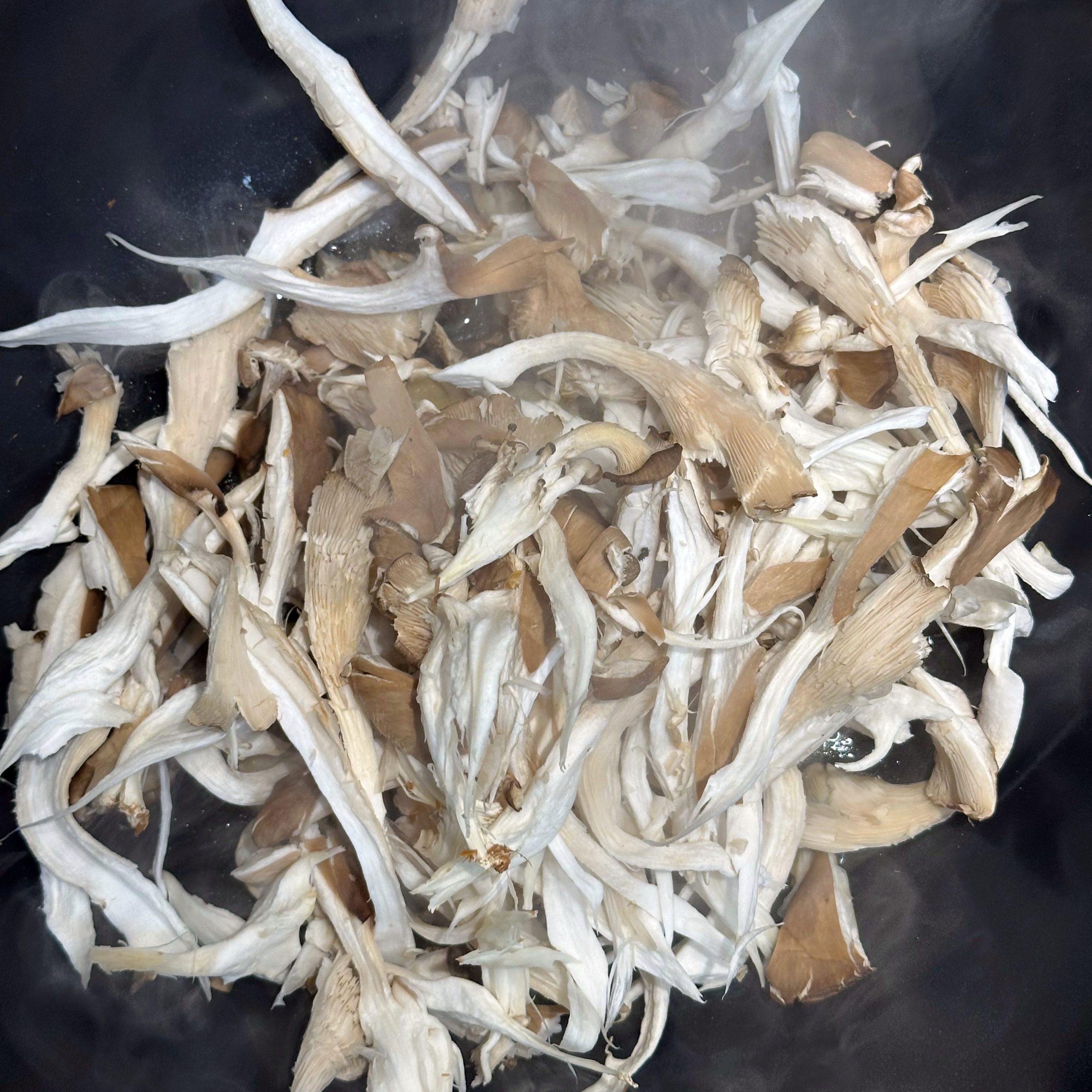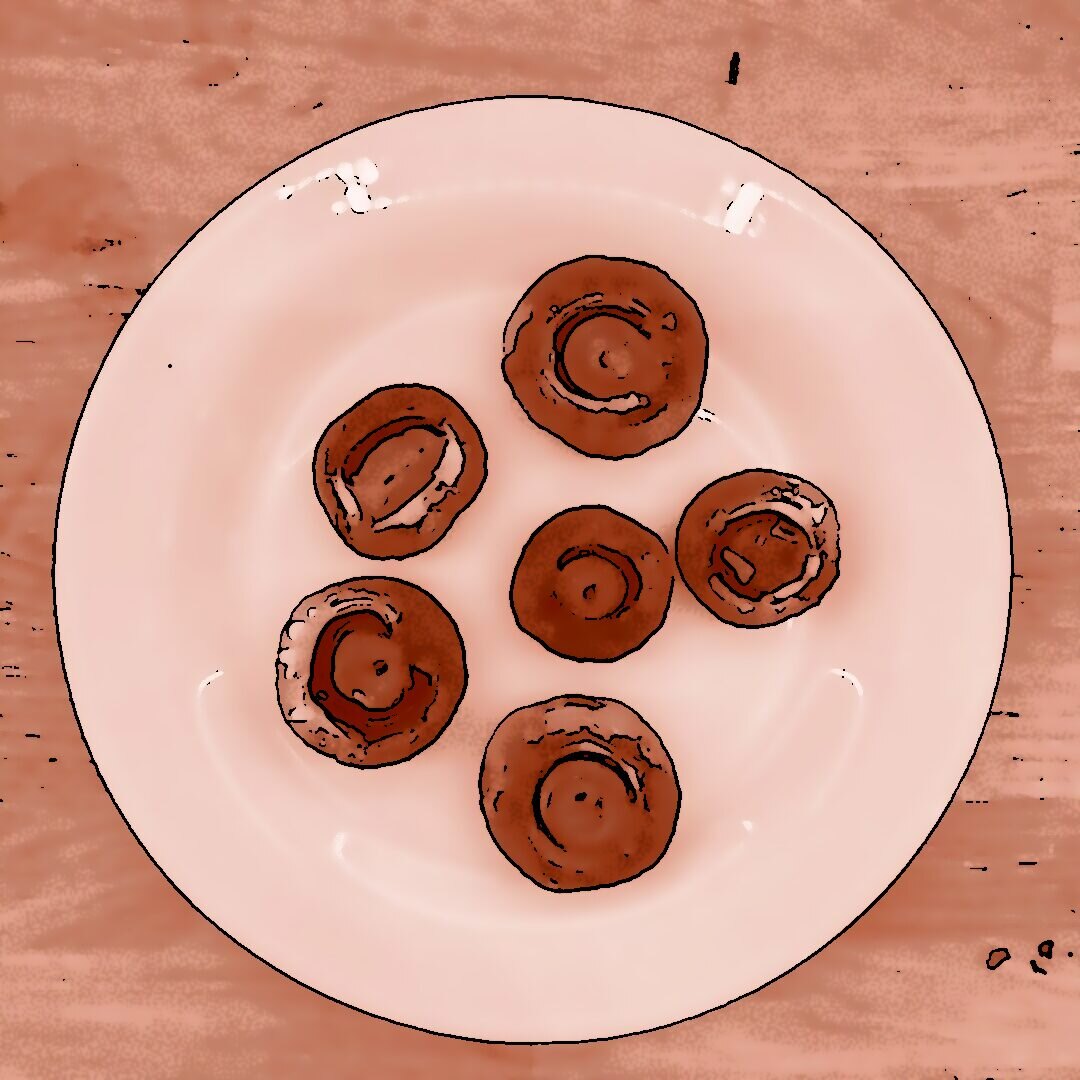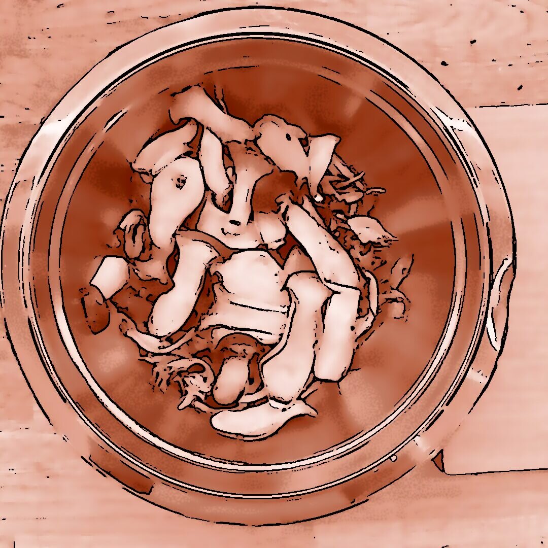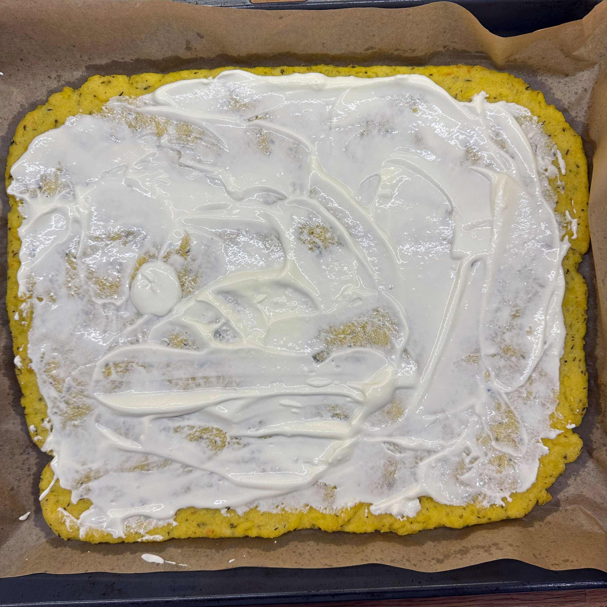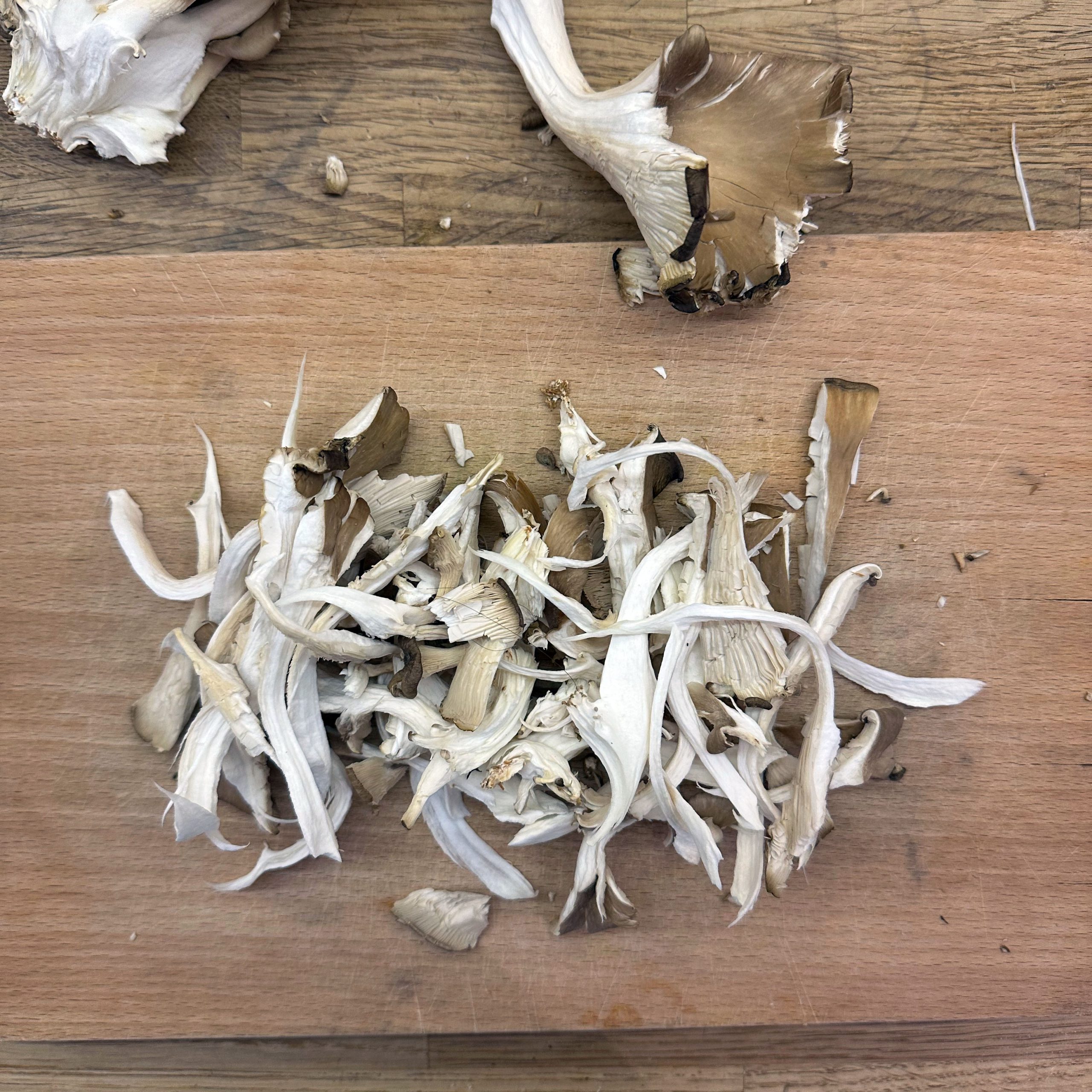 300 g Champignons ganz mit dem Kopf nach unten auf ein Blech setzen, mit etwas Öl beträufeln und salzen, bei 200 °C Umluft 30 Min. backen, etwas abkühlen lassen und in Scheiben schneiden. 300 g Austernpilze in Stücke zupfen und in etwas Öl kräftig anbraten, bis sie braune Stellen bekommen. 300 g Kräuterseitlinge in Scheiben schneiden und in etwas Öl von beiden Seiten 5–6 Min. braun braten. Alle Pilze mit Sojasoße marinieren. Koriander, Thymian, Dill und Petersilie hacken und unter die Pilze mischen. 400 ml Brühe aufkochen, 250 g Minutenpolenta unter ständigem Rühren einrieseln lassen und gut durchrühren, mit Kräutern der Provence würzen, 1 Becher Sahne und 40 g Butter unterrühren. Polenta auf ein mit Backpapier belegtes Blech gleichmäßig ausstreichen und bei 200 °C Umluft 15 Min. vorbacken. Polenta mit saurer Sahne bestreichen, die marinierten Pilze mit Kräutern darauf verteilen, 200 g Taleggio in Scheiben darauflegen und im Ofen grillen, bis der Käse Blasen schlägt. Polenta in Stücke schneiden und auf Tellern anrichten.