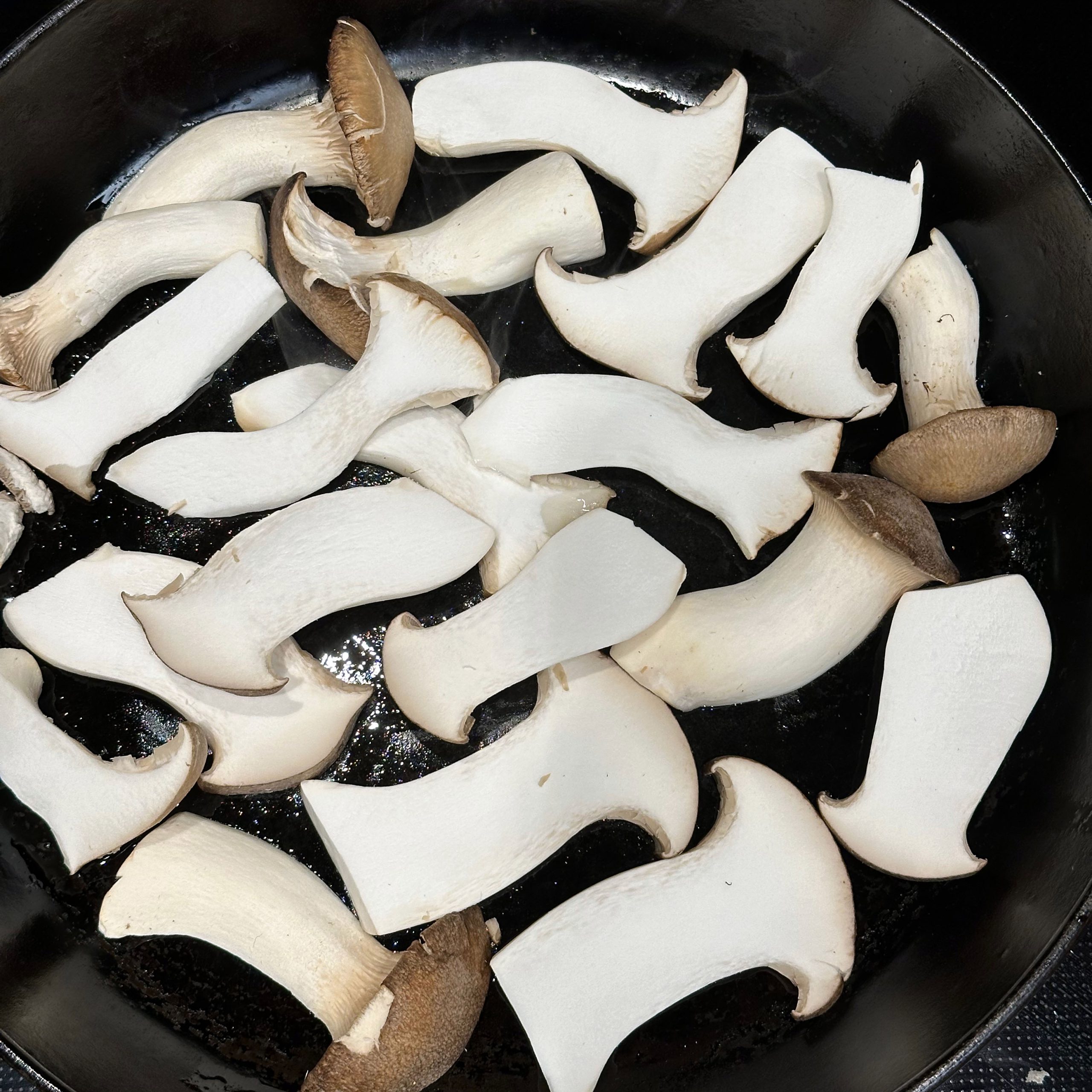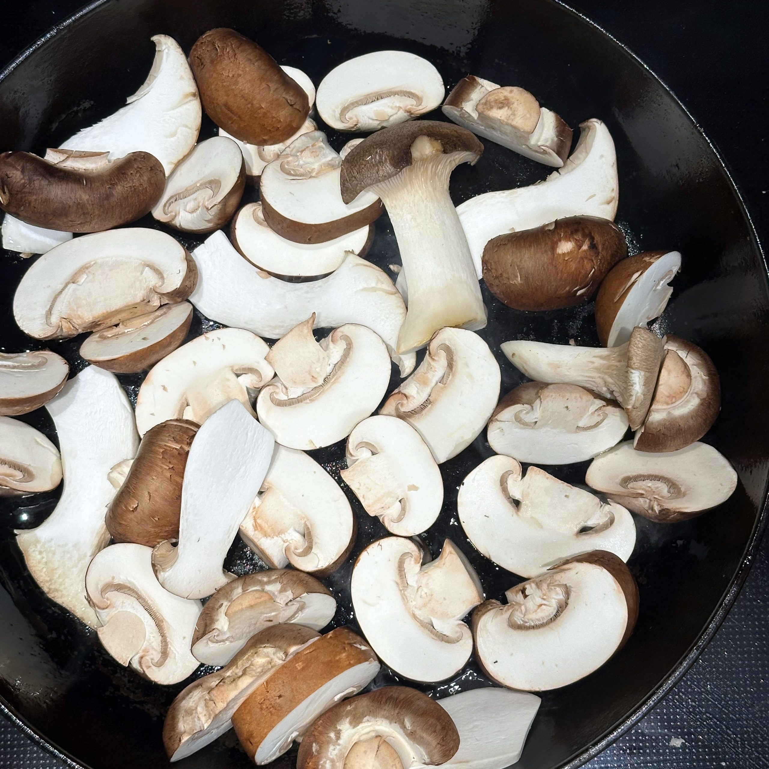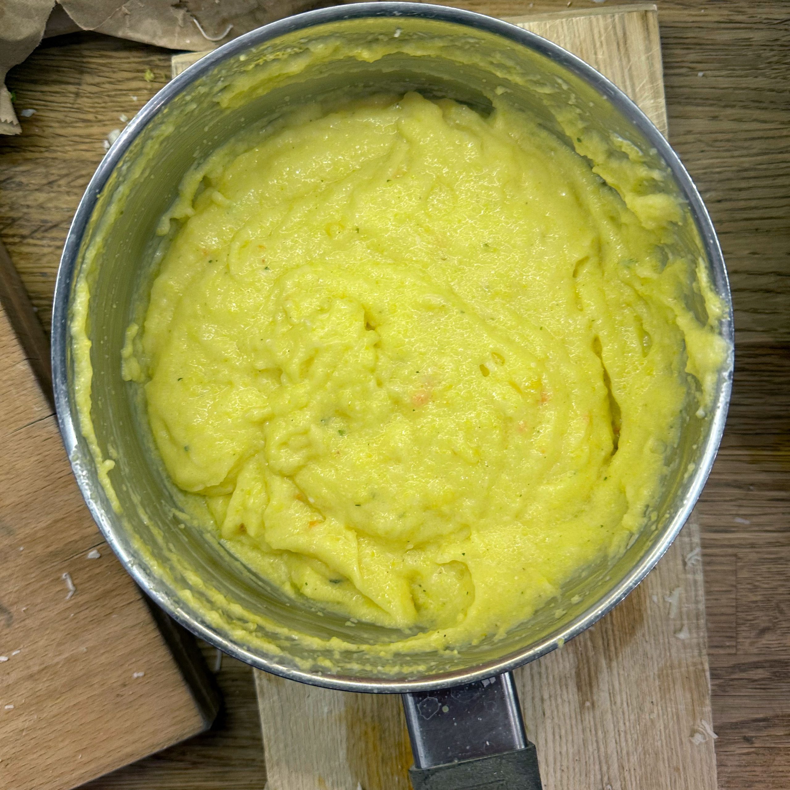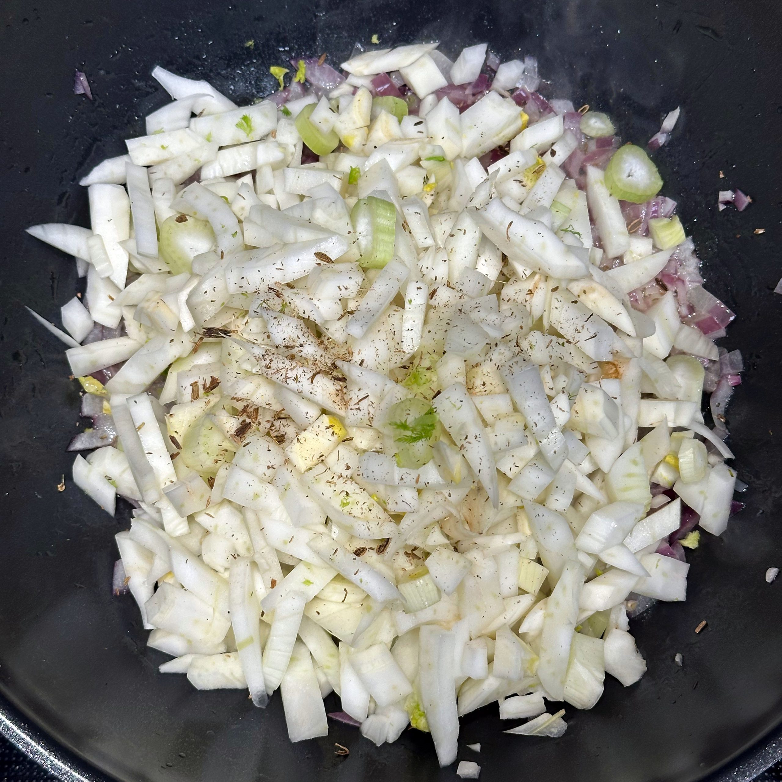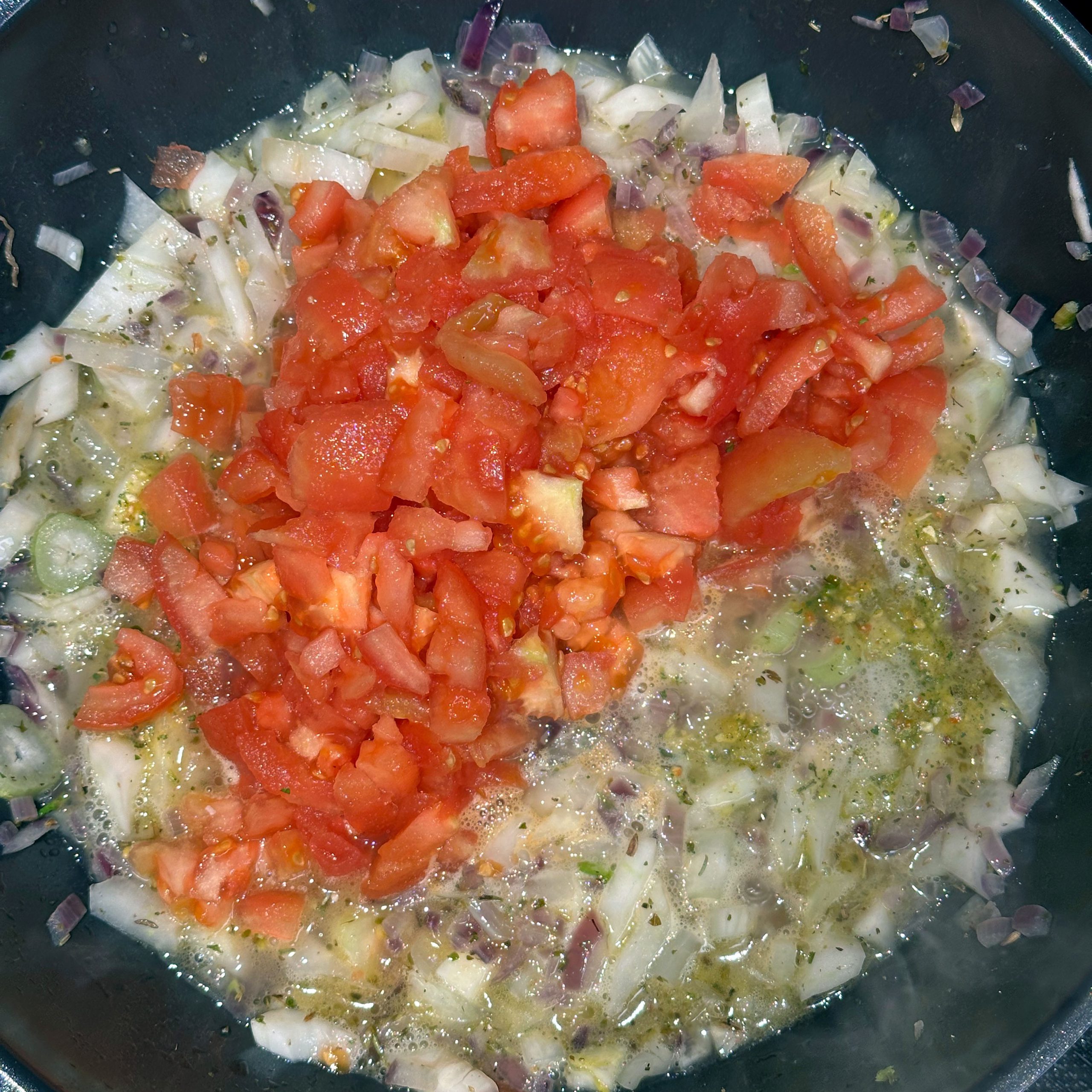 Brühe aufkochen, 120gr Polenta unter ständigem Rühren einrieseln lassen und unter Rühren köcheln lassen, dann etwas Butter, Sahne und Parmesan unterrühren. Polenta in eine Glasschüssel geben und abkühlen lassen. 200gr Champignons und 200gr Kräuterseitlinge in Scheiben schneiden und in einer Pfanne in etwas Öl von beiden Seiten braun braten, dann mit Sojasoße, fein gehacktem Rosmarin und 0,5 Bund gehackter Petersilie marinieren. 5 Tomaten mit kochendem Wasser übergießen, häuten und würfeln. 2 rote Zwiebeln würfeln und in einem Topf in Butter und Öl anbraten, 1 große Fenchelknolle würfeln und zugeben, 6min mitbraten, getrocknete Kräuter unterrühren, mit 300ml Brühe auffüllen, Tomaten zugeben und 20min köcheln lassen. Abgekühlte Polenta aus der Schüssel stürzen, längs durchschneiden und in kleine Vierecke schneiden, in einer Auflaufform die Stücke in Öl wenden und bei 200° Umluft 20min backen. Marinierte Pilze unter das Fenchel-Tomaten-Ragout mischen und weitere 10min köcheln lassen, 80ml Sahne unterrühren und mit den Polentaschnitten aus dem Ofen in tiefen Tellern servieren.