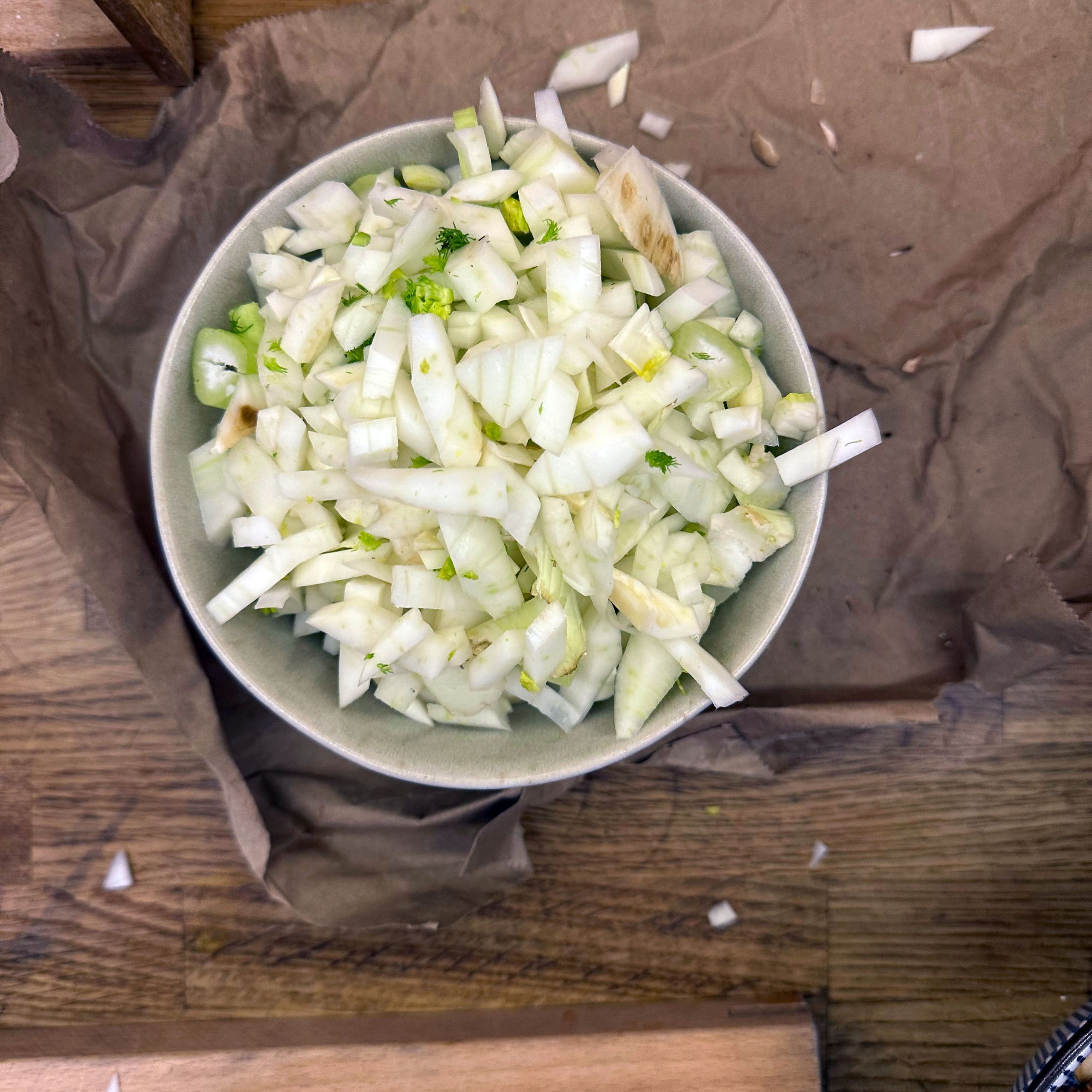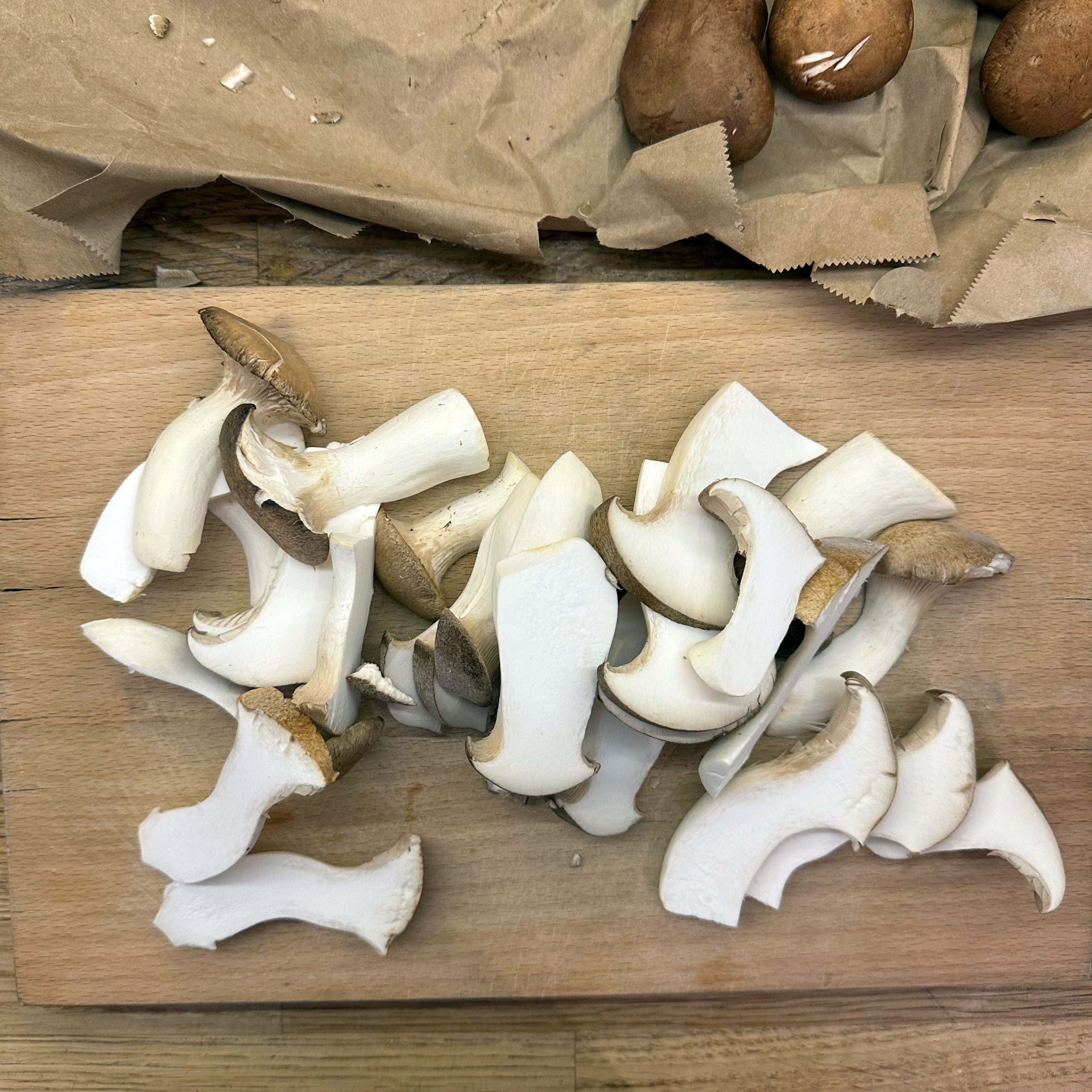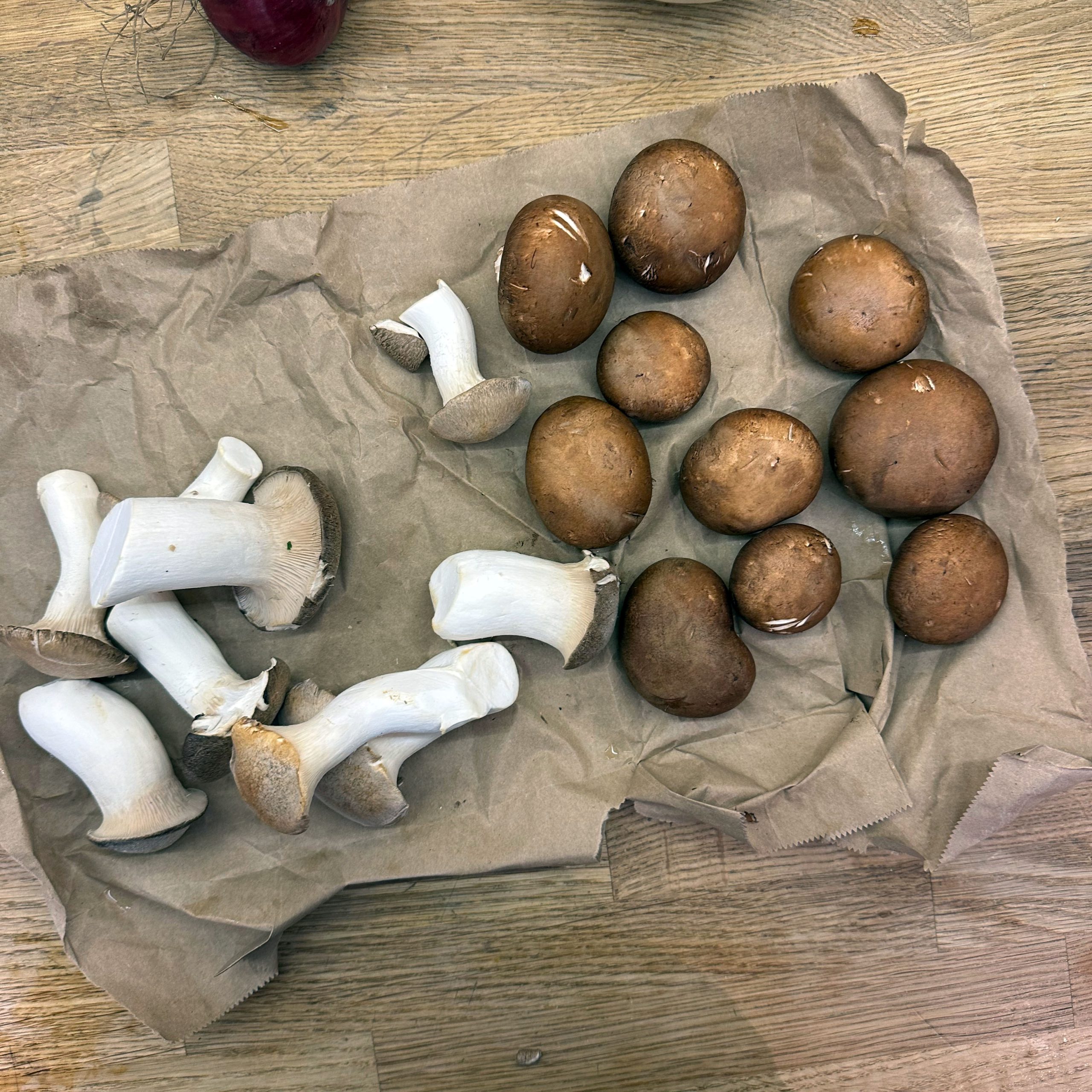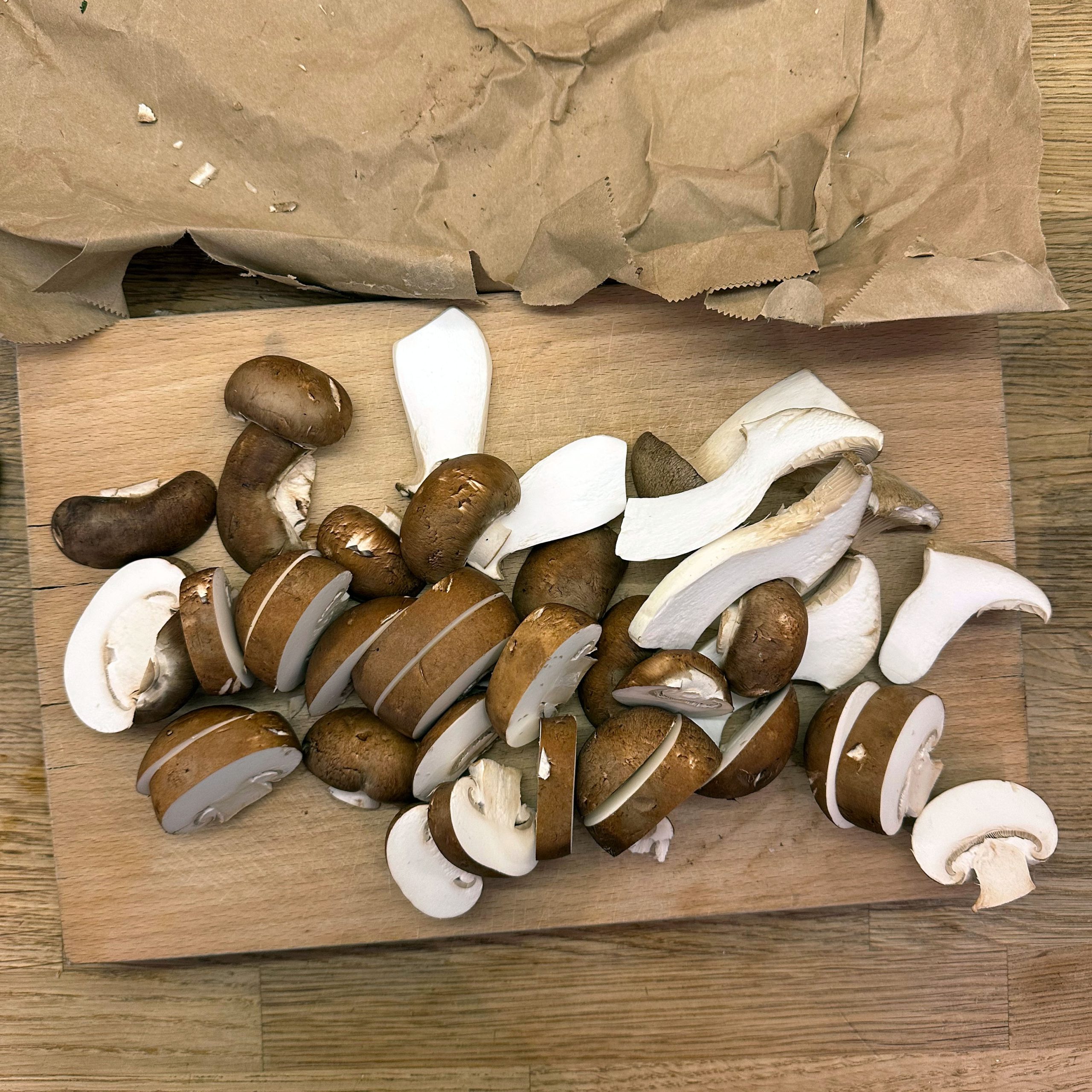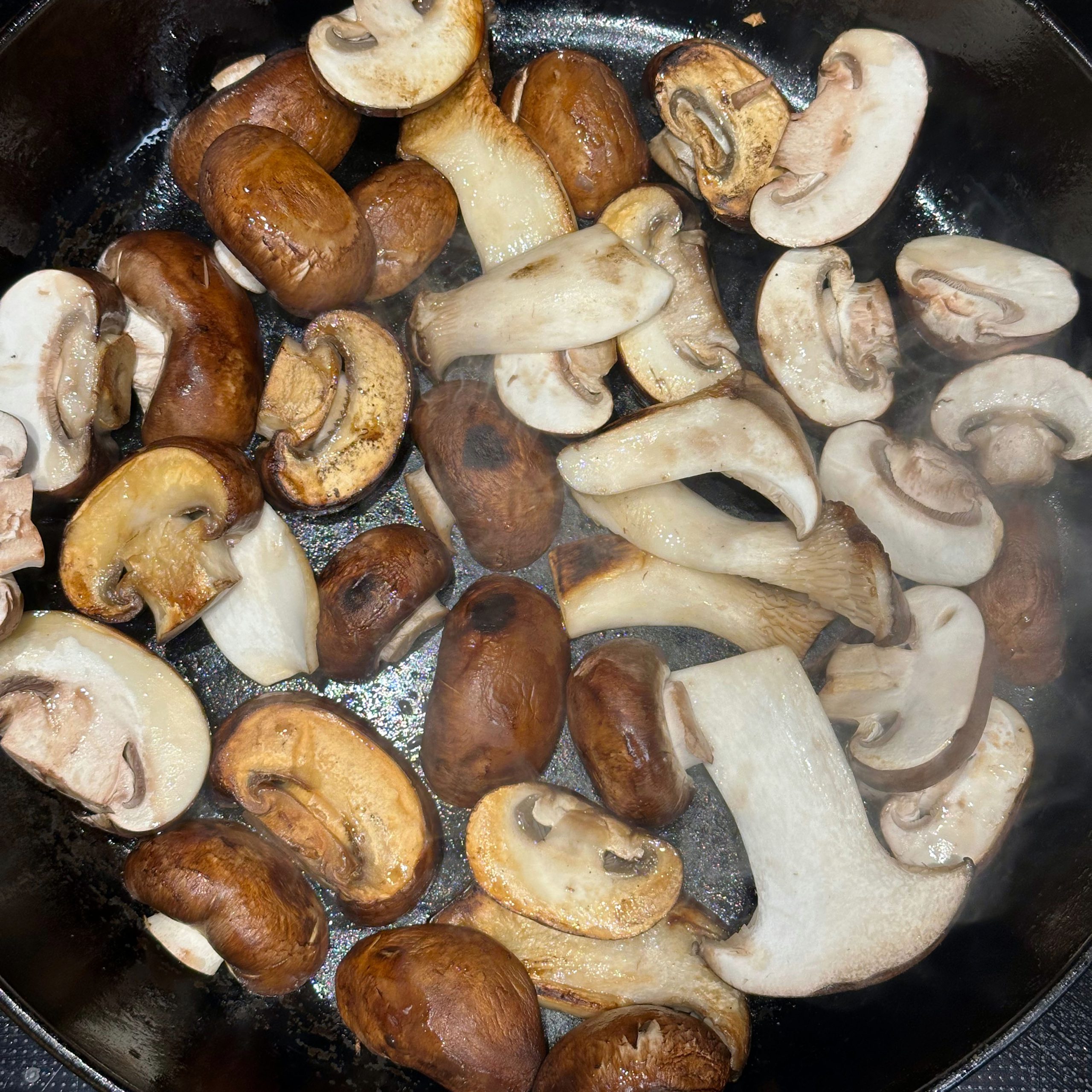 Brühe aufkochen, 120gr Polenta unter ständigem Rühren einrieseln lassen und unter Rühren köcheln lassen, dann etwas Butter, Sahne und Parmesan unterrühren. Polenta in eine Glasschüssel geben und abkühlen lassen. 200gr Champignons und 200gr Kräuterseitlinge in Scheiben schneiden und in einer Pfanne in etwas Öl von beiden Seiten braun braten, dann mit Sojasoße, fein gehacktem Rosmarin und 0,5 Bund gehackter Petersilie marinieren. 5 Tomaten mit kochendem Wasser übergießen, häuten und würfeln. 2 rote Zwiebeln würfeln und in einem Topf in Butter und Öl anbraten, 1 große Fenchelknolle würfeln und zugeben, 6min mitbraten, getrocknete Kräuter unterrühren, mit 300ml Brühe auffüllen, Tomaten zugeben und 20min köcheln lassen. Abgekühlte Polenta aus der Schüssel stürzen, längs durchschneiden und in kleine Vierecke schneiden, in einer Auflaufform die Stücke in Öl wenden und bei 200° Umluft 20min backen. Marinierte Pilze unter das Fenchel-Tomaten-Ragout mischen und weitere 10min köcheln lassen, 80ml Sahne unterrühren und mit den Polentaschnitten aus dem Ofen in tiefen Tellern servieren.