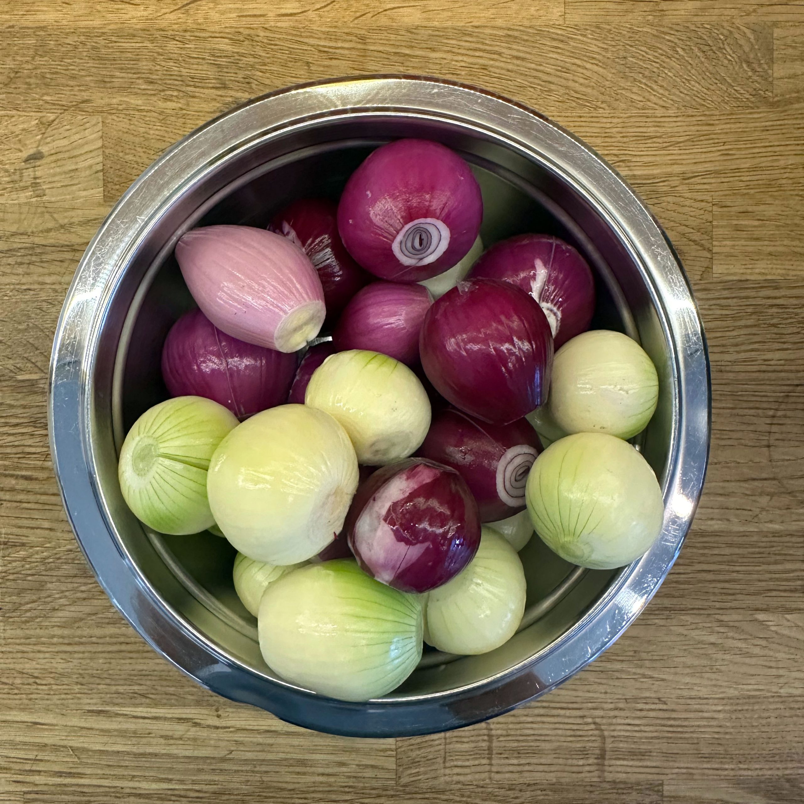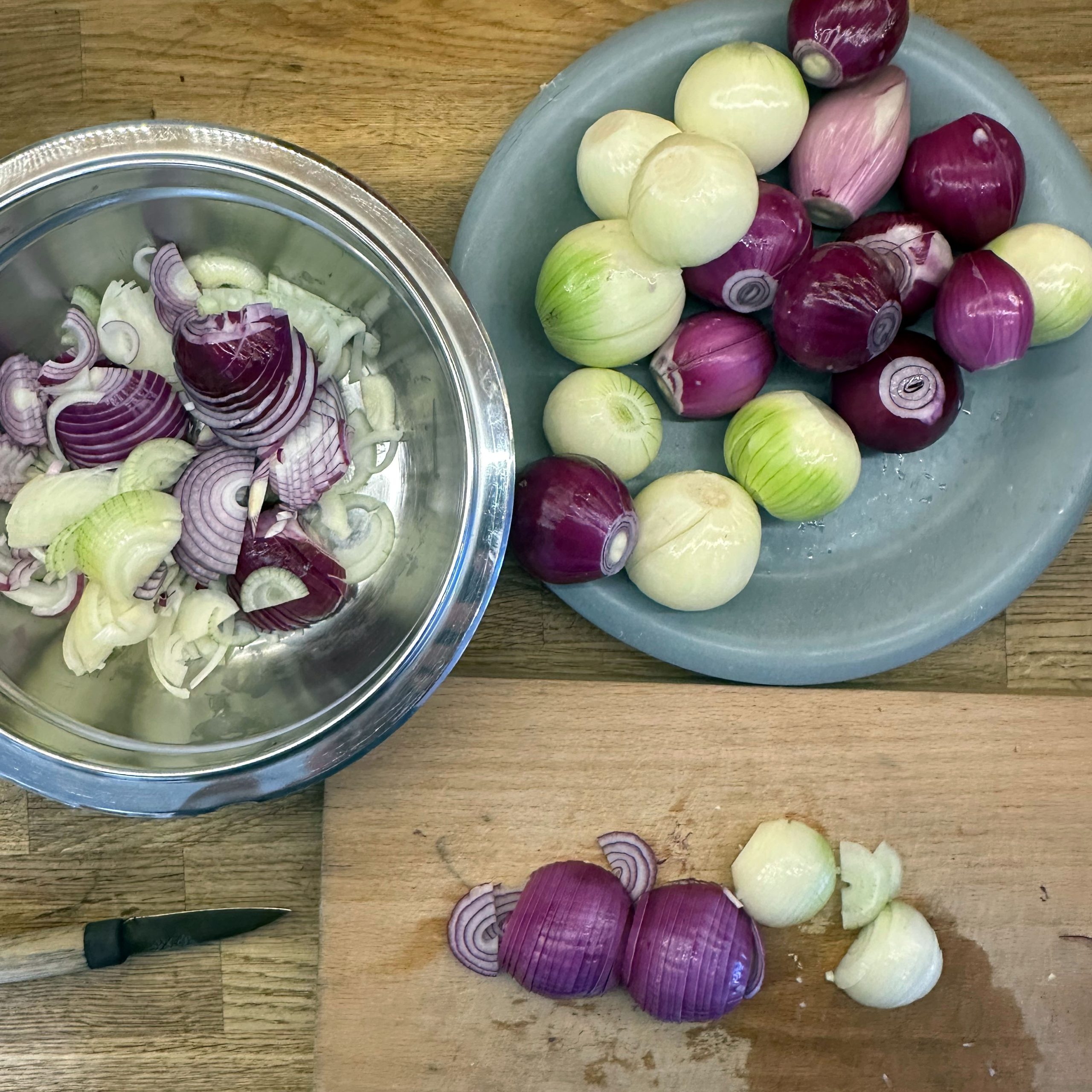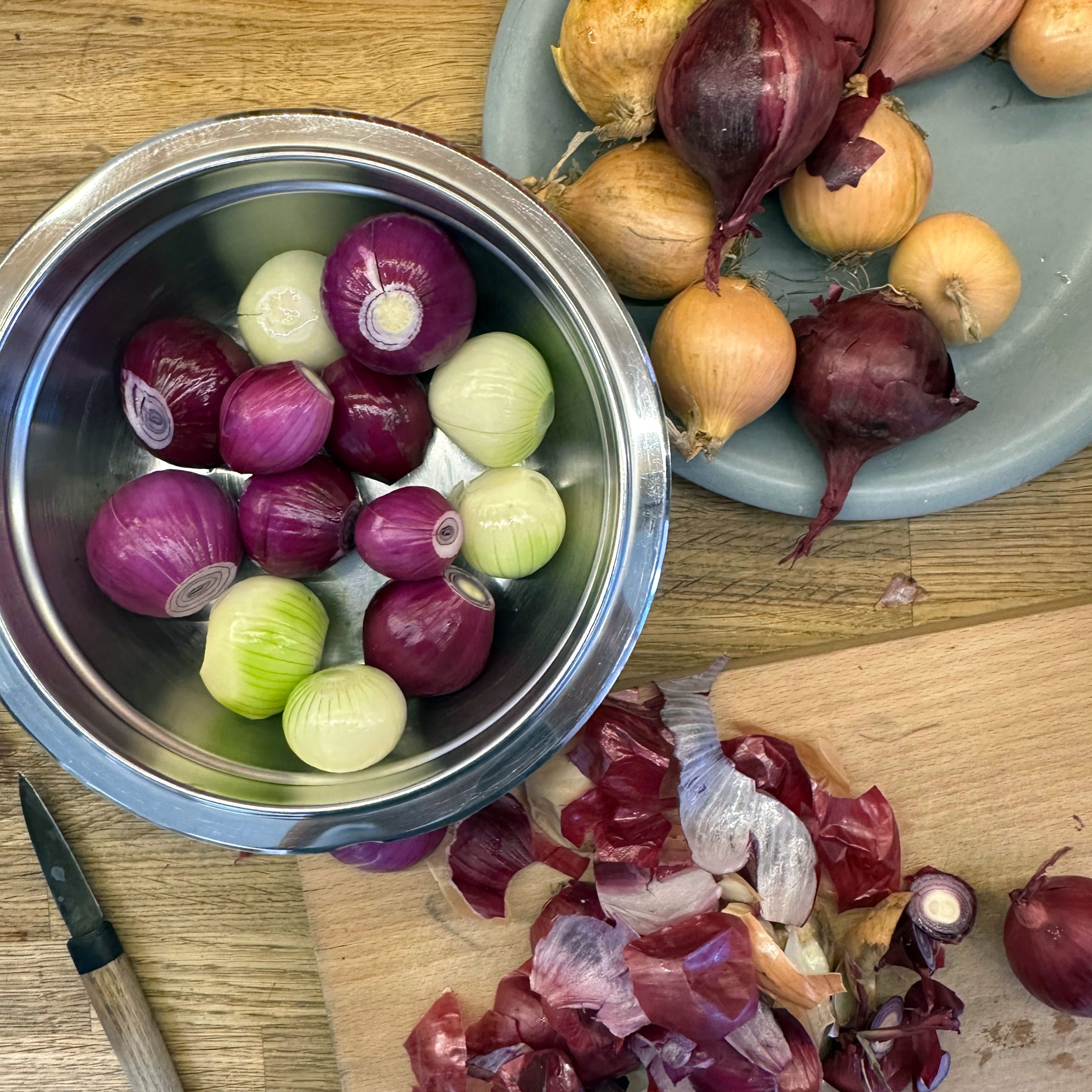 Anlässlich des 20-jährigen Einzugsjubiläums wird auf der Straße mit Grill und Glühwein bei Minus-Temperaturen gefeiert. Ich steuere Zwiebelkuchen und frische Waffeln bei. Für den Zwiebelkuchen den Teig schon 36h vorher ansetzen: 800 g Mehl mit Wasser, Öl, Salz und 3 g Trockenhefe zu einem Teig vermischen, abgedeckt im Kühlschrank gehen lassen, alle 6 Stunden ziehen und falten. 1,5 kg gemischte Zwiebeln schälen und in Ringe schneiden, in einem Wok 40 Minuten braten und dünsten, mit Salz, Pfeffer, Thymian und Kümmel würzen. Die abgekühlten Zwiebeln mit 2 Bechern Crème fraîche vermischen. Den Teig 2h vor dem Backen in zwei Hälften teilen und ruhen lassen. Die Teiglinge auf Backpapier ca. 1 cm dick ausrollen, mit der Hälfte der Zwiebelmasse bestreichen und im Backofen bei 200° ca. 30min backen. Für den Waffelteig 250 g Zucker, 3 EL Vanillezucker, 1 TL Salz, 1 EL Backpulver und 6 Eier mit dem Rührgerät verrühren, 400 ml Milch unterrühren, dann 600 g Mehl schrittweise hinzufügen und gut vermengen. Den Teig etwas stehen lassen und im Waffeleisen ausbacken. Mit warmem Nutella bestrichen servieren.