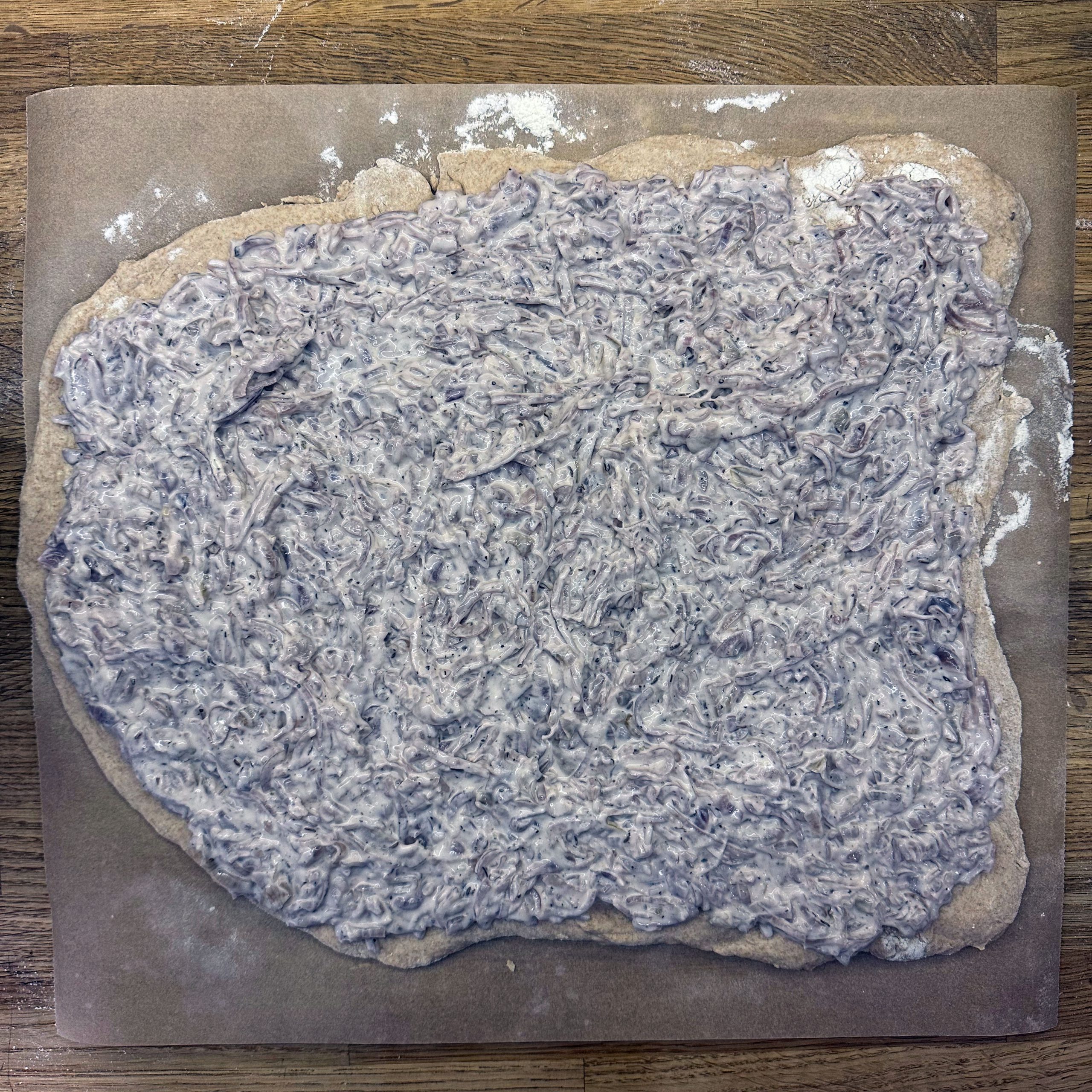 Deutsch Festessen Gebacken Vegetarisch Winter Crème fraîche Glühwein Hefeteig Privatstraßenfest Waffeln Zwiebelkuchen