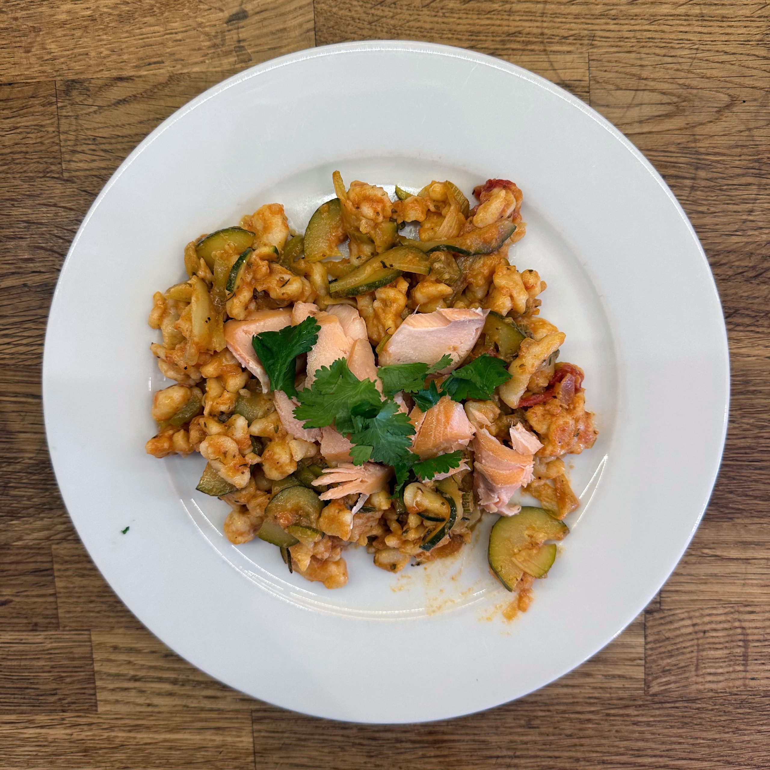 Das Minestrone von gestern noch mit etwas Stremellachs gestreckt.
