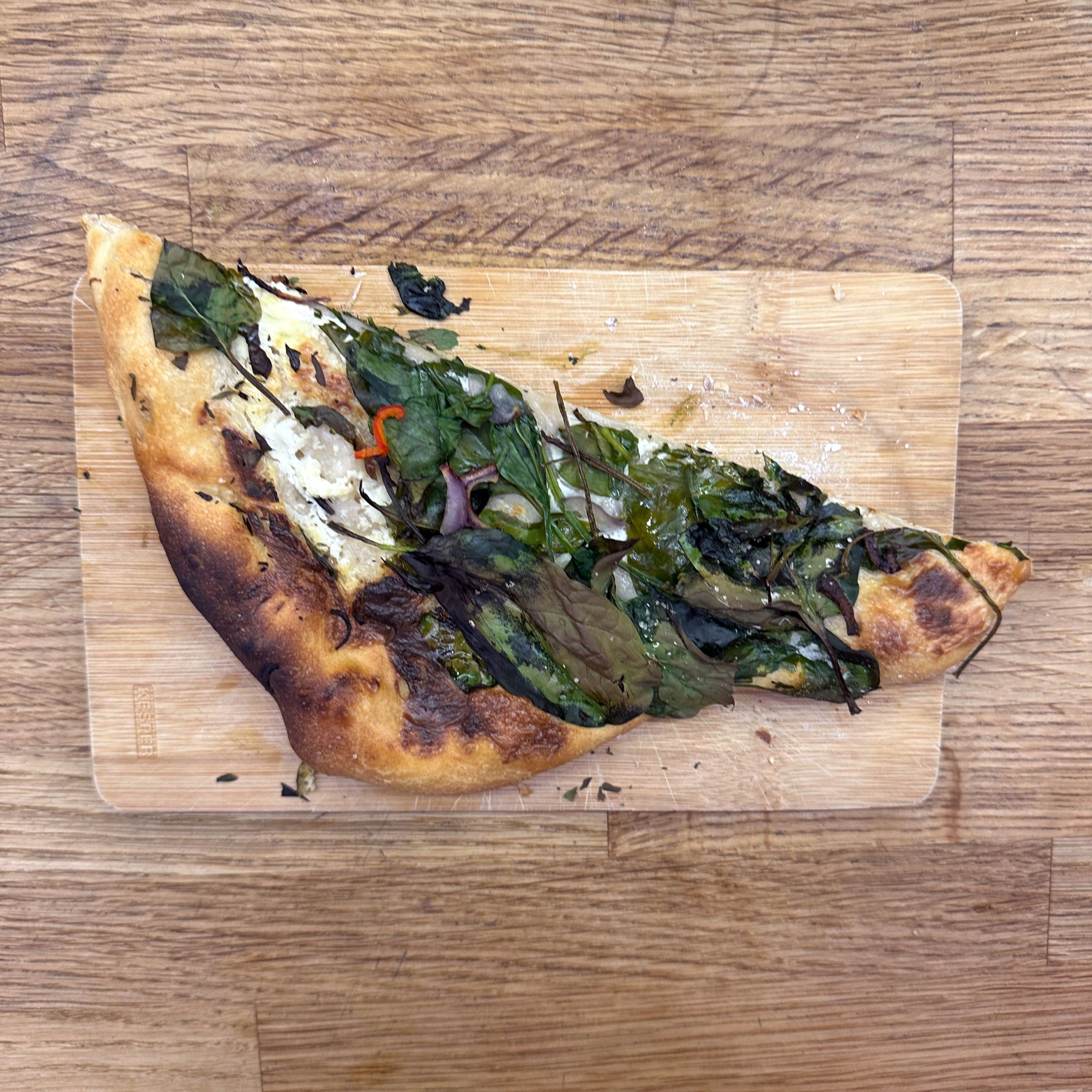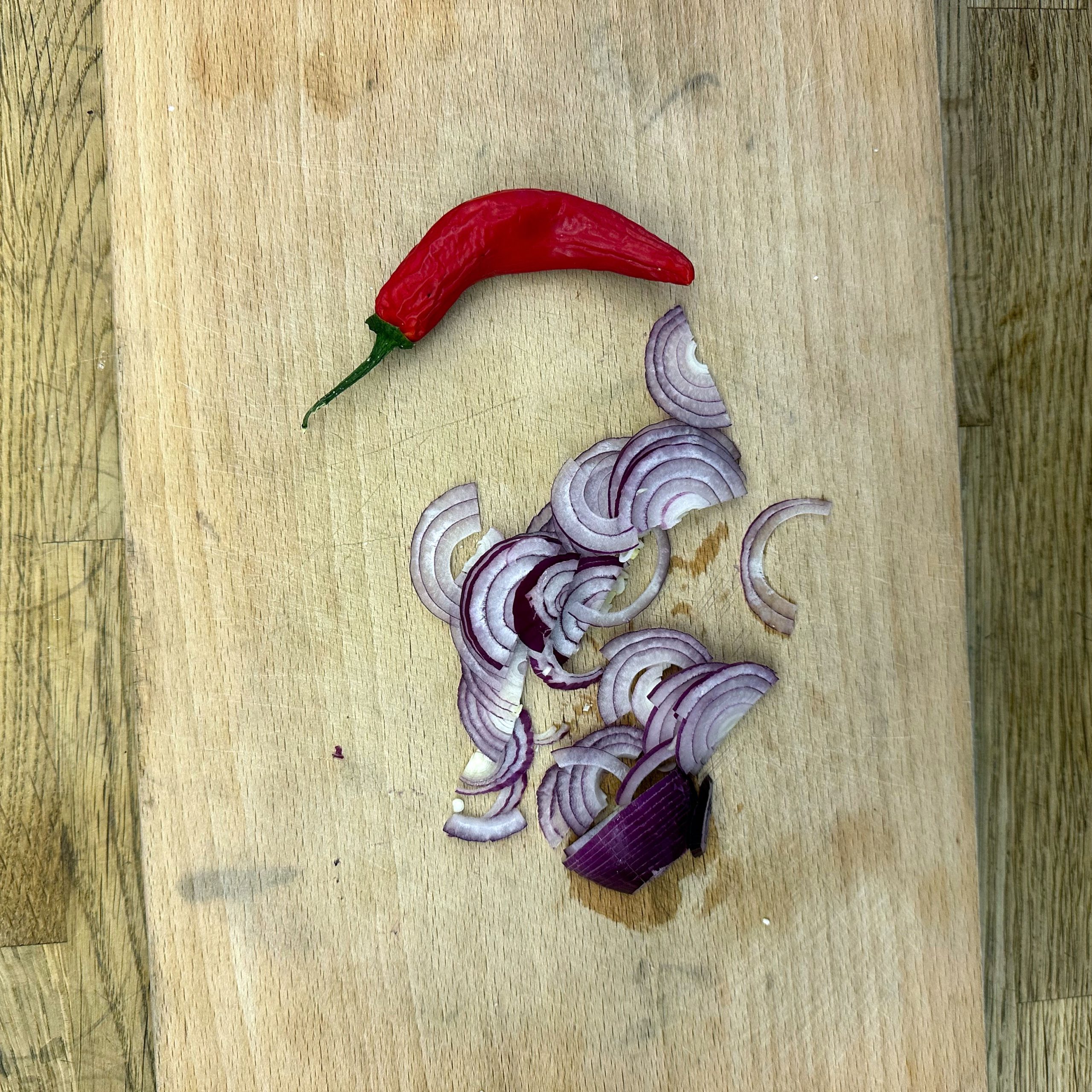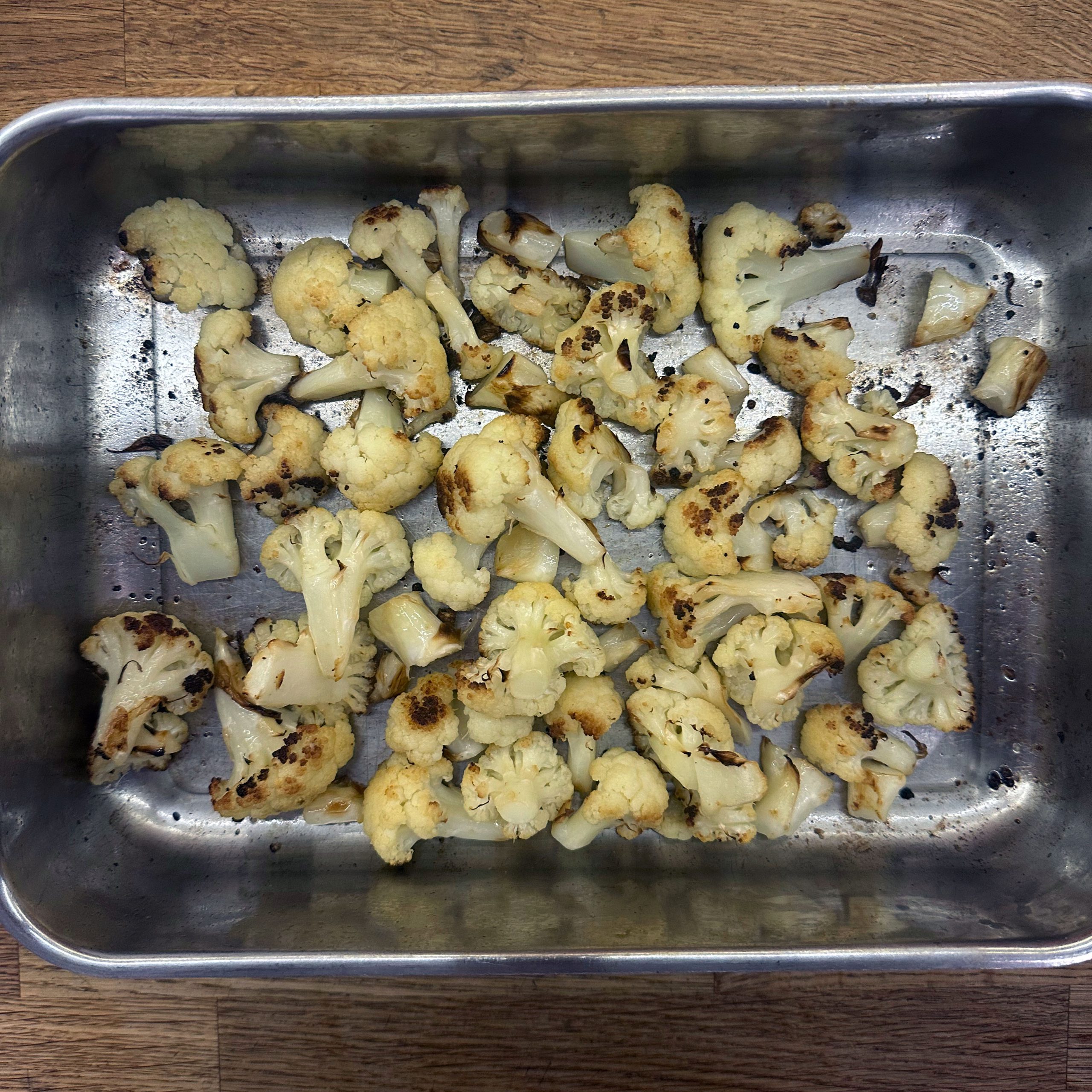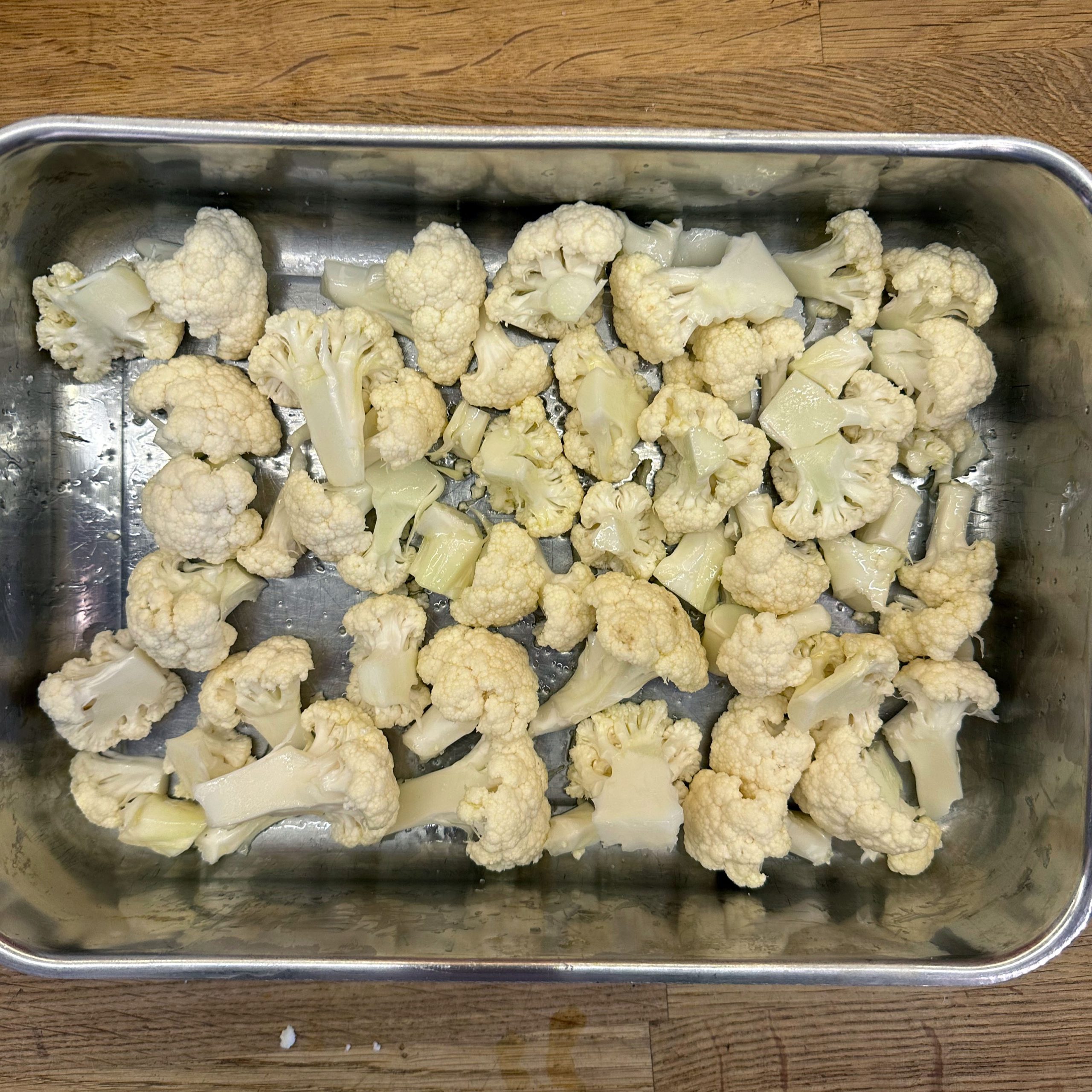 Noch einen Teigling von gestern übrig, den dann wieder mit Schmand, frischem Spinat, Zwiebeln und Chili belegt. Im Ofen auf dem Pizzablech 14 Min. bei 230° Umluft gebacken. Daneben den Salat aus geröstetem Blumenkohl gemacht: 1 Blumenkohl in 4 cm große Röschen teilen, mit 4 EL Olivenöl, 2 TL mildem Currypulver und etwas Salz in einer Backform vermengen. In der Backform im Ofen 30 Min. rösten, bis die Röschen goldbraun und weich sind. 125 g grüne oder braune Linsen waschen und in leicht gesalzenem Wasser bissfest kochen, in ein Sieb abtropfen lassen und abkühlen lassen. 4 Eier 9 Min. kochen, herausnehmen, kalt abspülen, abkühlen lassen, pellen und in einer großen Schüssel grob zerdrücken. Blumenkohl, 0,5 Bund gehackte Petersilie, 1 TL Sumach und 1 TL zerstoßenen Kreuzkümmel mit den Eiern vermengen. Linsen abtropfen lassen und unterrühren. 100 g Joghurt, 50 g Mayonnaise und den Saft einer halben Zitrone verrühren und vorsichtig mit dem Rest vermengen.
