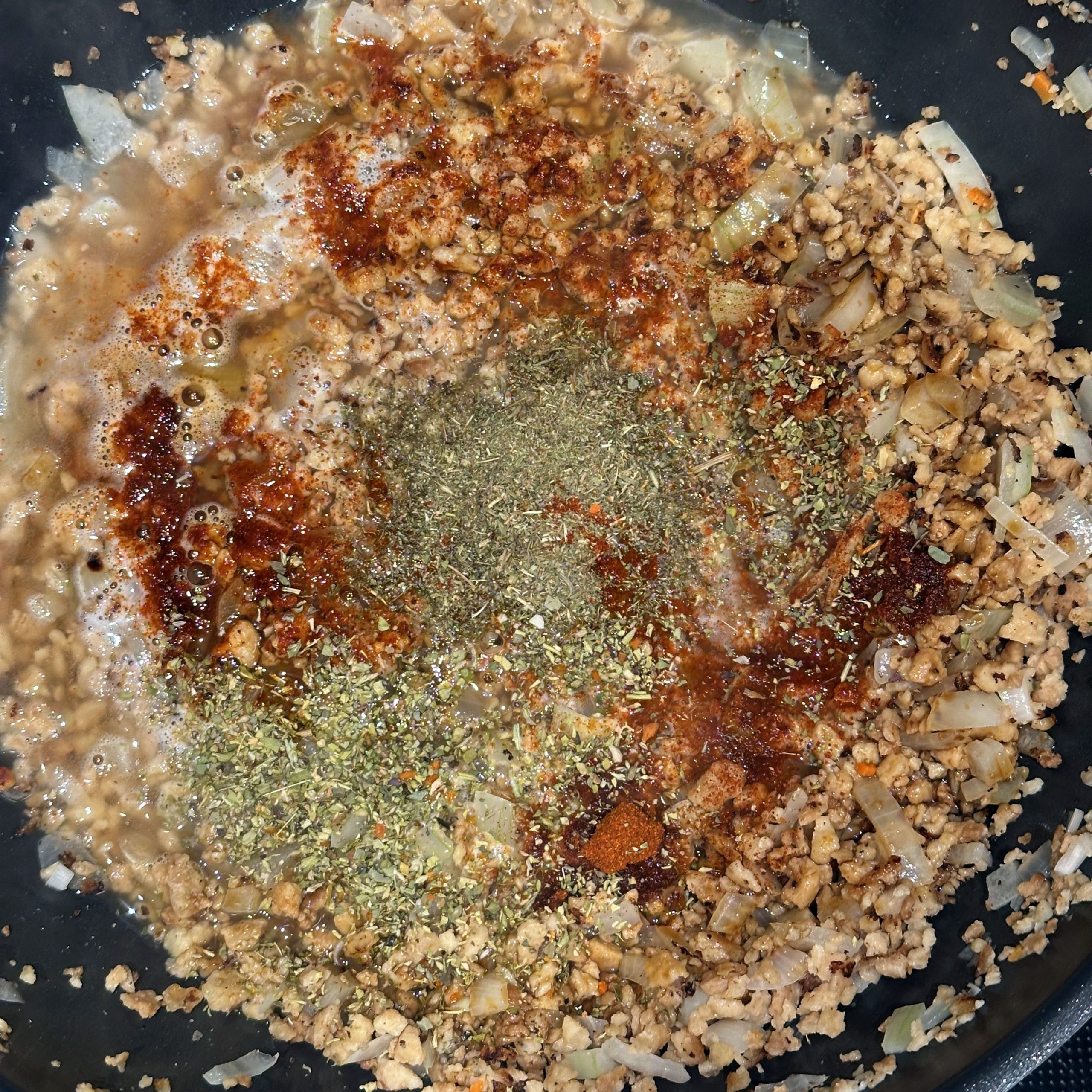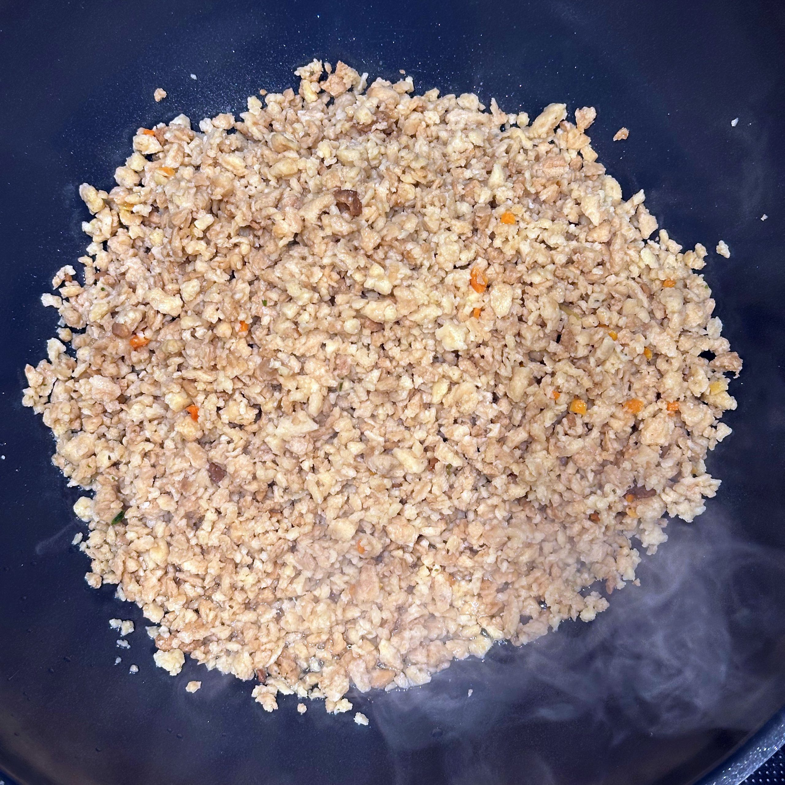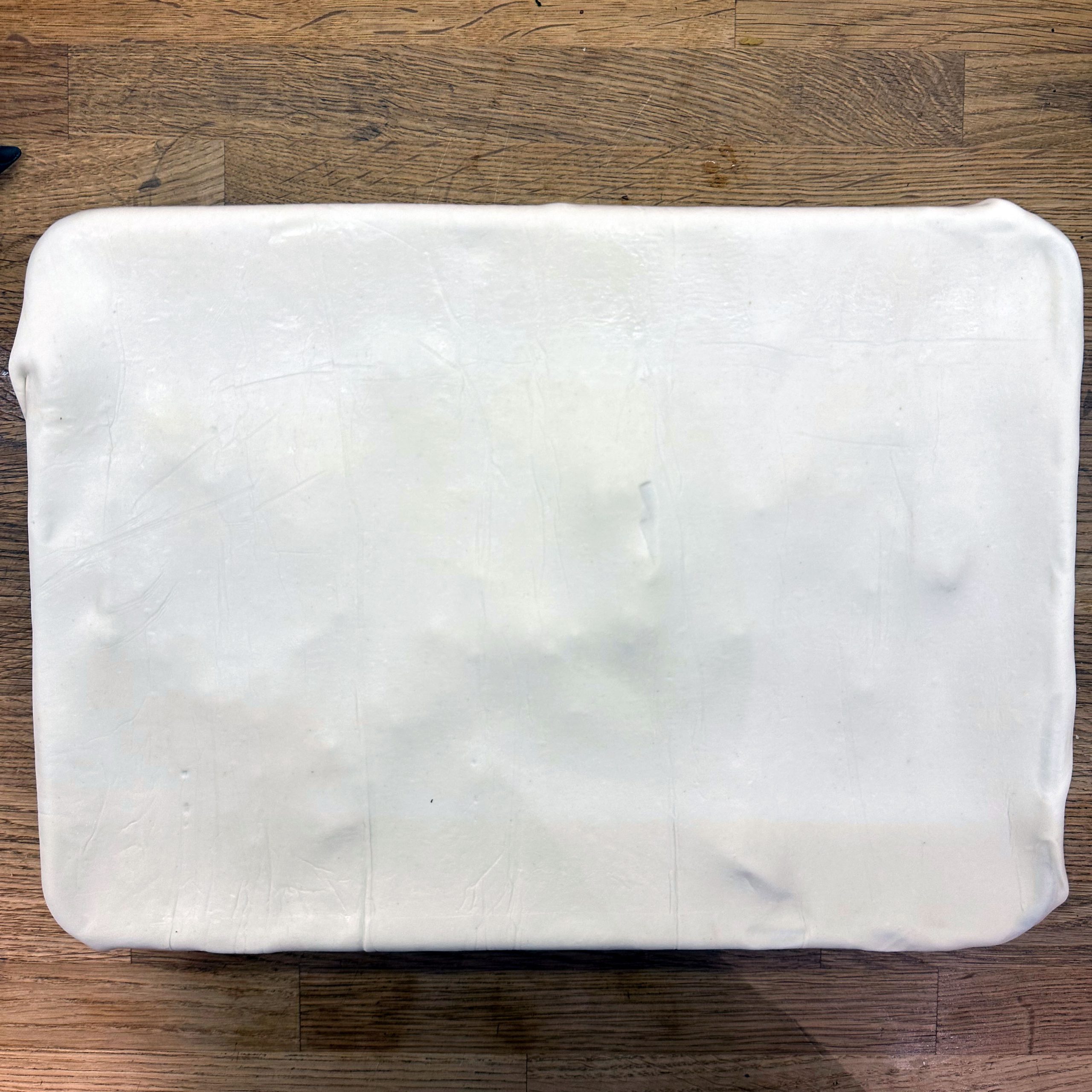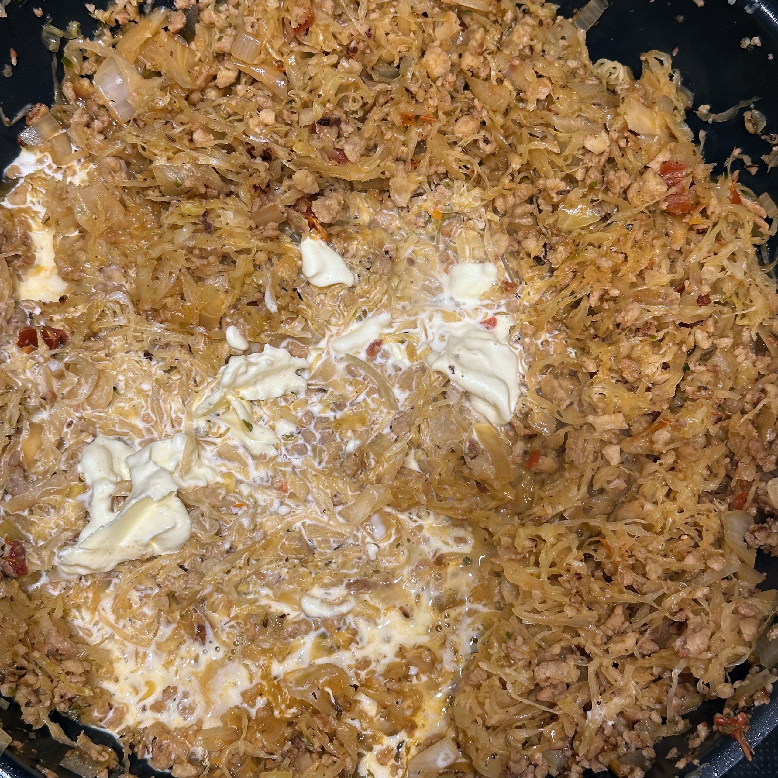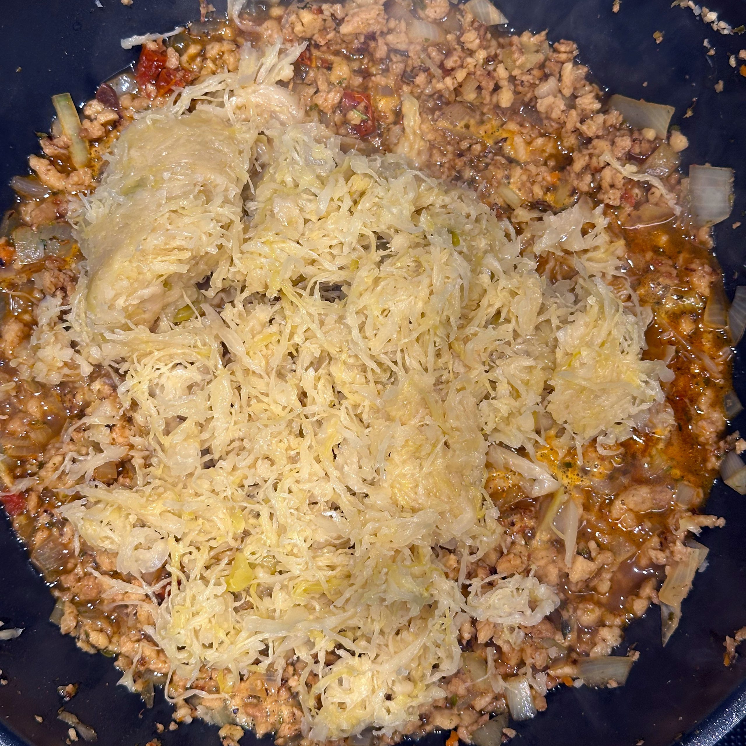 200 g Sojahack in kochender Brühe 10 Minuten einweichen, auswringen und in etwas Öl scharf anbraten. 2 gewürfelte Zwiebeln hinzufügen und mitbraten, 750 g Sauerkraut unterrühren, mit Salz, Pfeffer und 1 TL Kümmel würzen und 1 Becher Sahne unterrühren. 750 g Kartoffeln schälen, achteln und in Salzwasser 15 Minuten kochen, abgießen. Sauerkraut-Sojahack-Mischung in eine gefettete Auflaufform geben, die gekochten Kartoffelecken darauf verteilen und alles vorsichtig vermengen. 1 Platte Blätterteig ausrollen und auf die Größe der Auflaufform zuschneiden, Rosmarinzweige auf den Blätterteig legen und leicht andrücken, den Blätterteig mit der Rosmarinseite nach oben als Deckel auf den Auflauf legen und die Ränder leicht festdrücken. Bei 200° Umluft 25–30 Minuten backen, bis der Blätterteig goldbraun und knusprig ist.