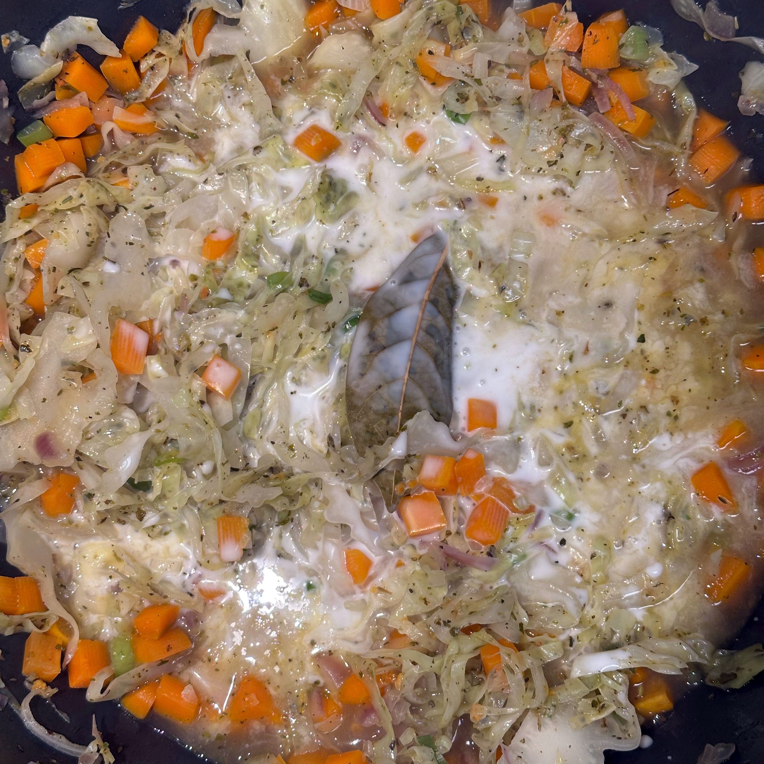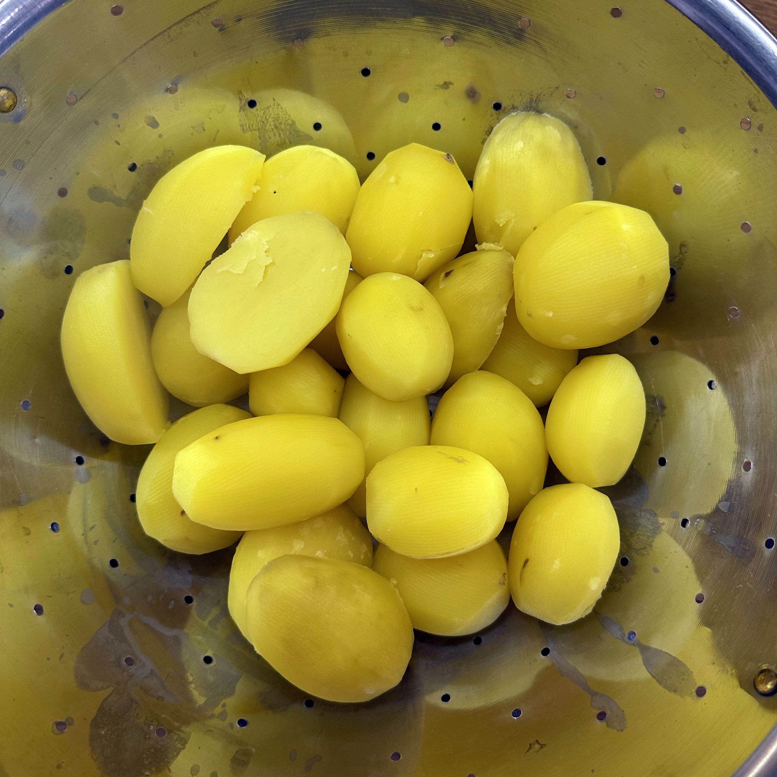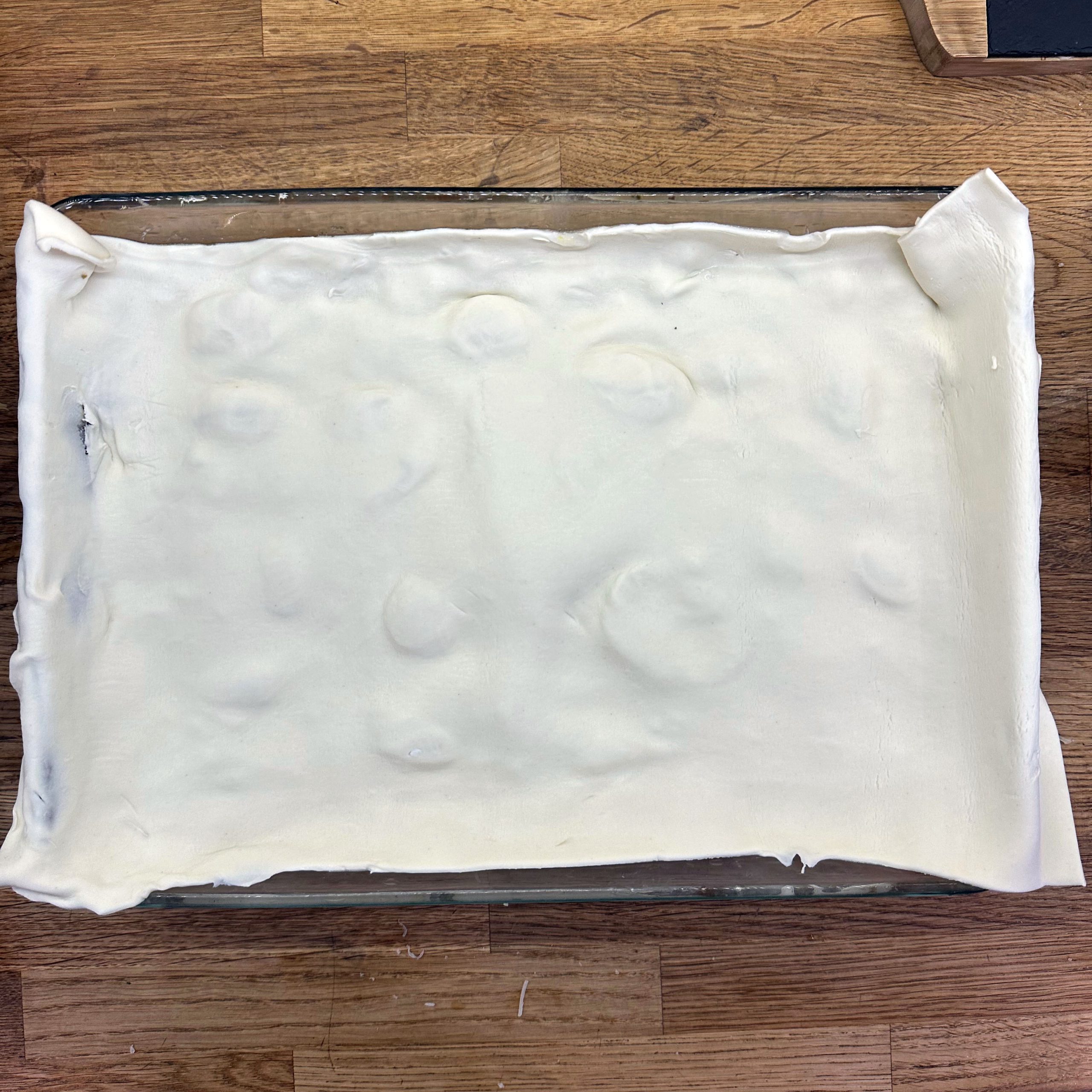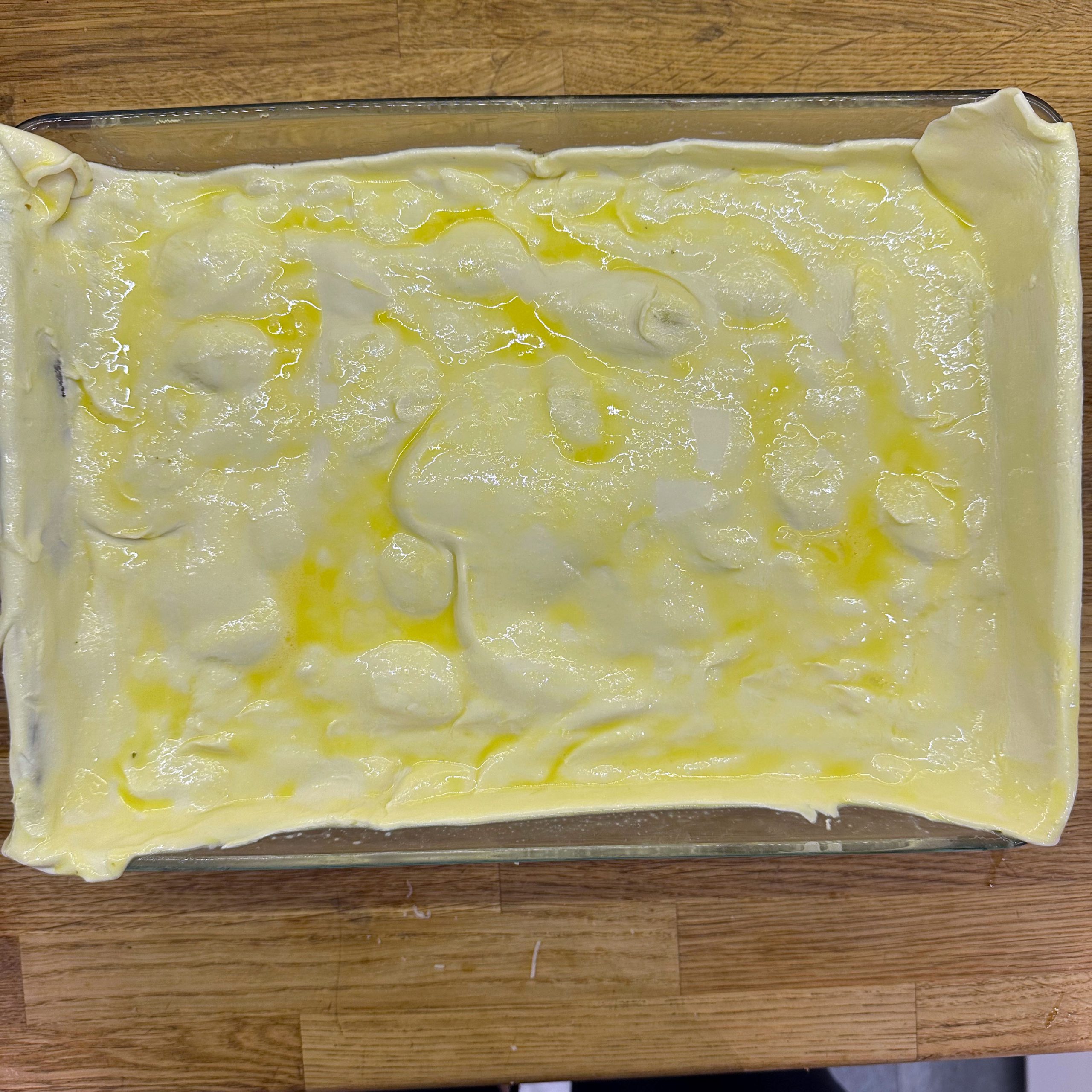 900g kleine Kartoffeln schälen und 20min in Salzwasser kochen, kurz abkühlen lassen und längs halbieren. 0,5 Spitzkohl vierteln und den Strunk herausschneiden. Den Spitzkohl und 200g rote Zwiebeln in Streifen schneiden, 200g Möhren schälen und fein würfeln, 100g Parmesan grob reiben. 3 EL Erdnussöl in einer großen Pfanne erhitzen und das gesamte Gemüse etwa 5 Minuten anbraten. Mit 600ml Gemüsebrühe ablöschen und etwa 15 Minuten köcheln lassen, dann 200ml Kokos-Cuisine hinzufügen und weitere 5 Minuten köcheln. Die Pfanne vom Herd nehmen, mit Salz und Pfeffer würzen, den geriebenen Parmesan unterrühren und die Mischung in eine gefettete Auflaufform (ca. 30x20x5 cm) füllen. Den Ofen auf 200°C (Umluft 180°C) vorheizen. 300g Blätterteig auf die Größe der Auflaufform ausrollen, den oberen Rand der Form mit Wasser bepinseln, die Teigplatte darauflegen und etwas festdrücken. Mit 1 verquirltem Ei bepinseln und mit Estragon und Rosmarin bestreuen. Den Pie etwa 35 Minuten goldbraun backen und heiß servieren.