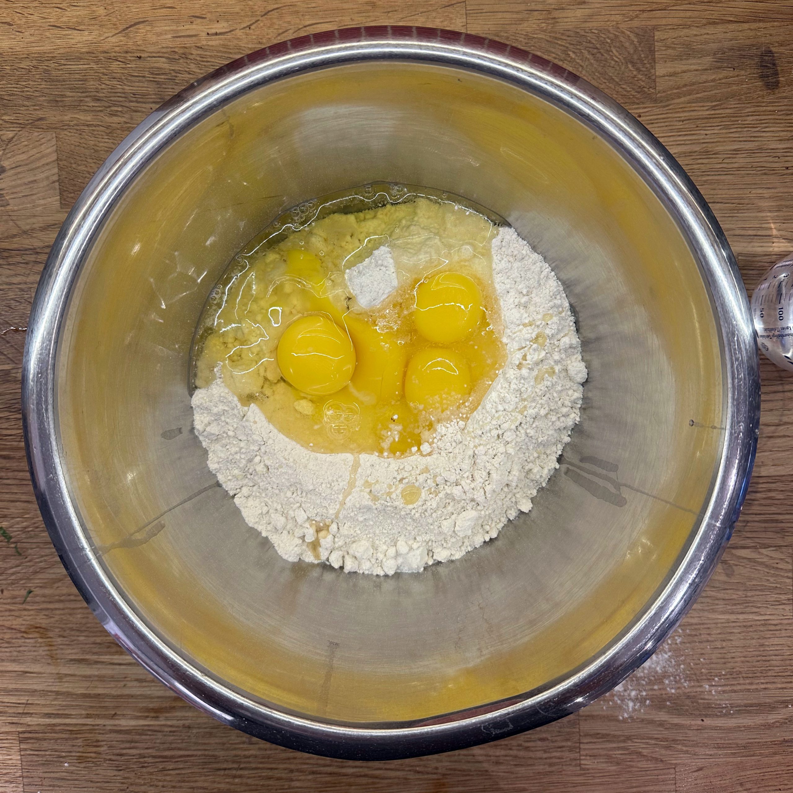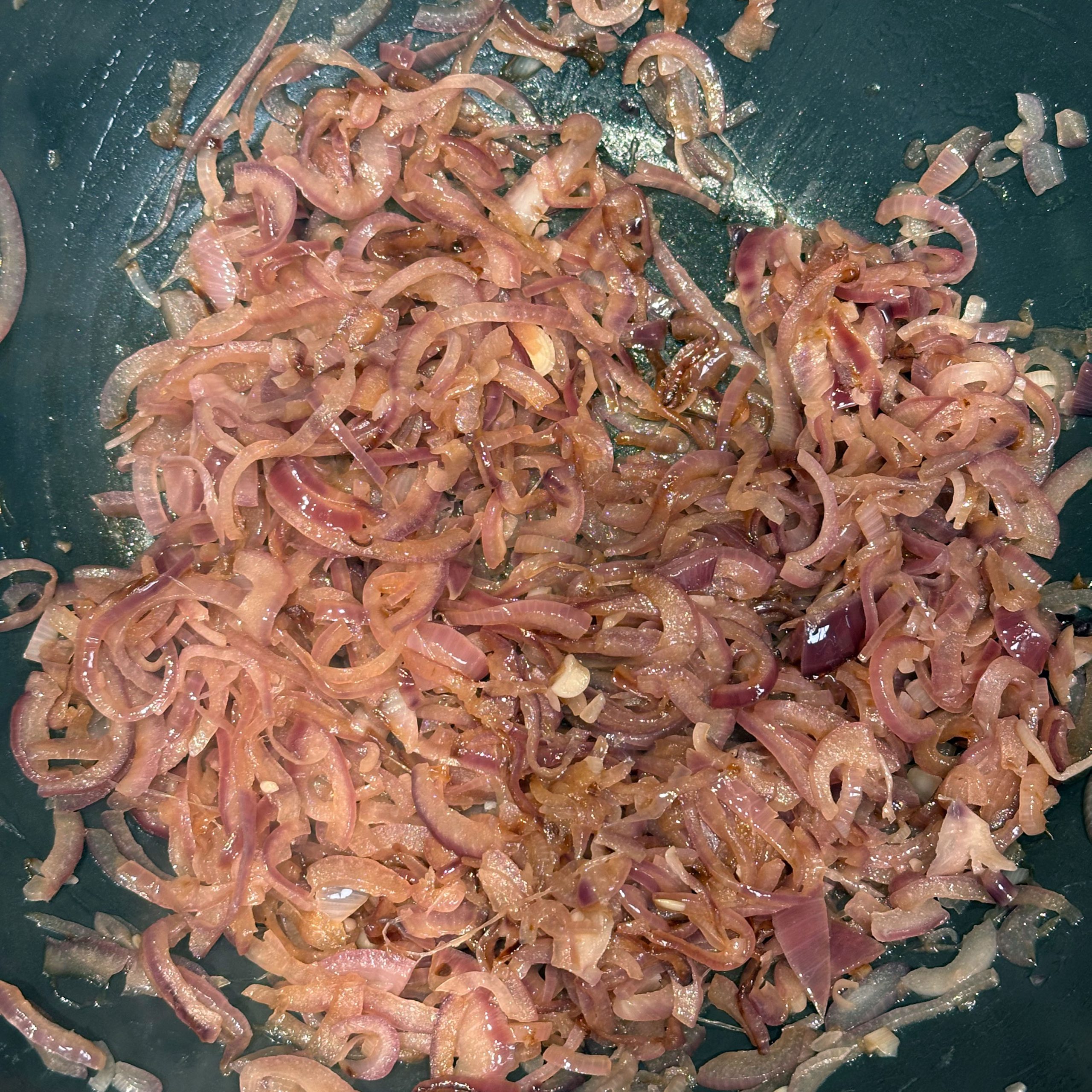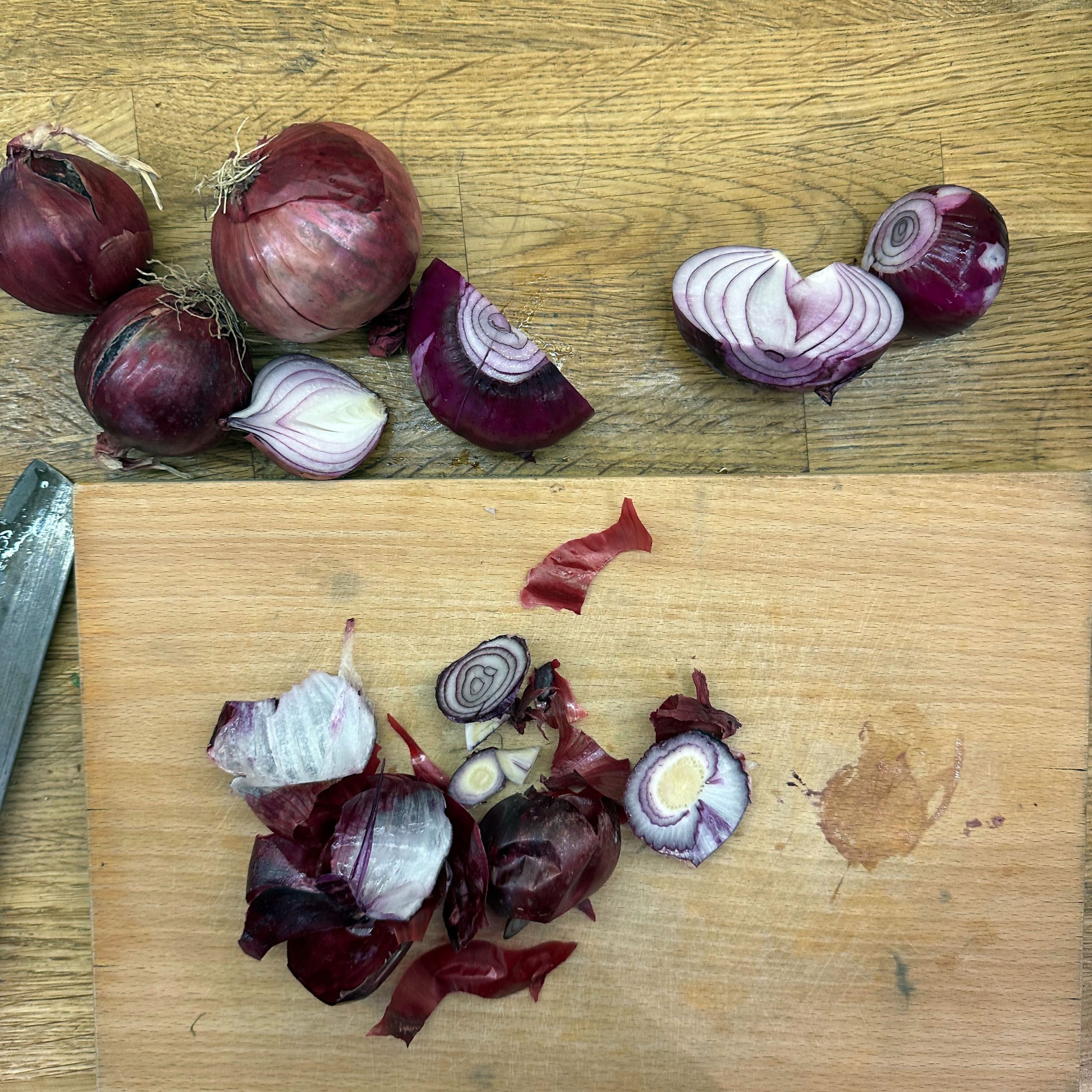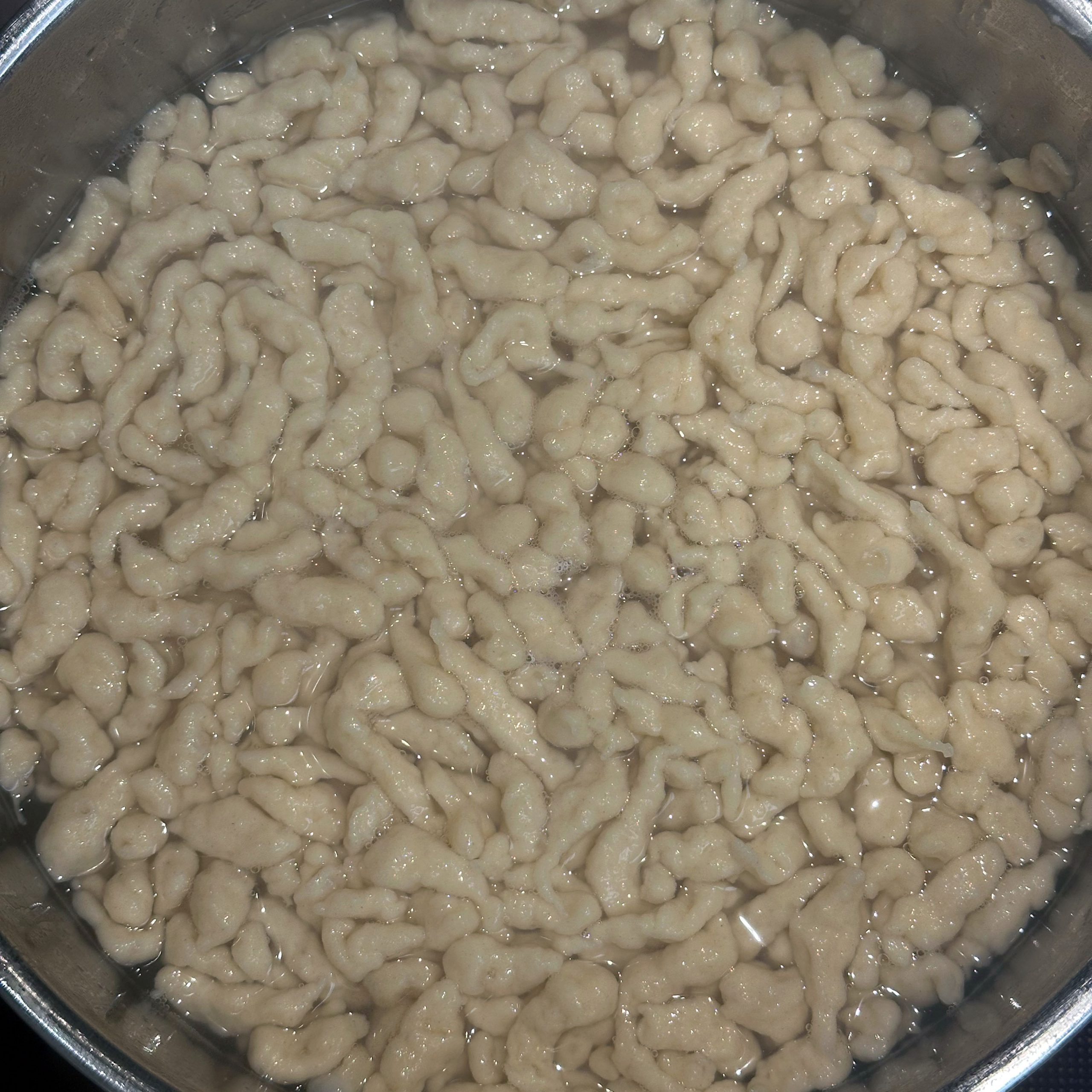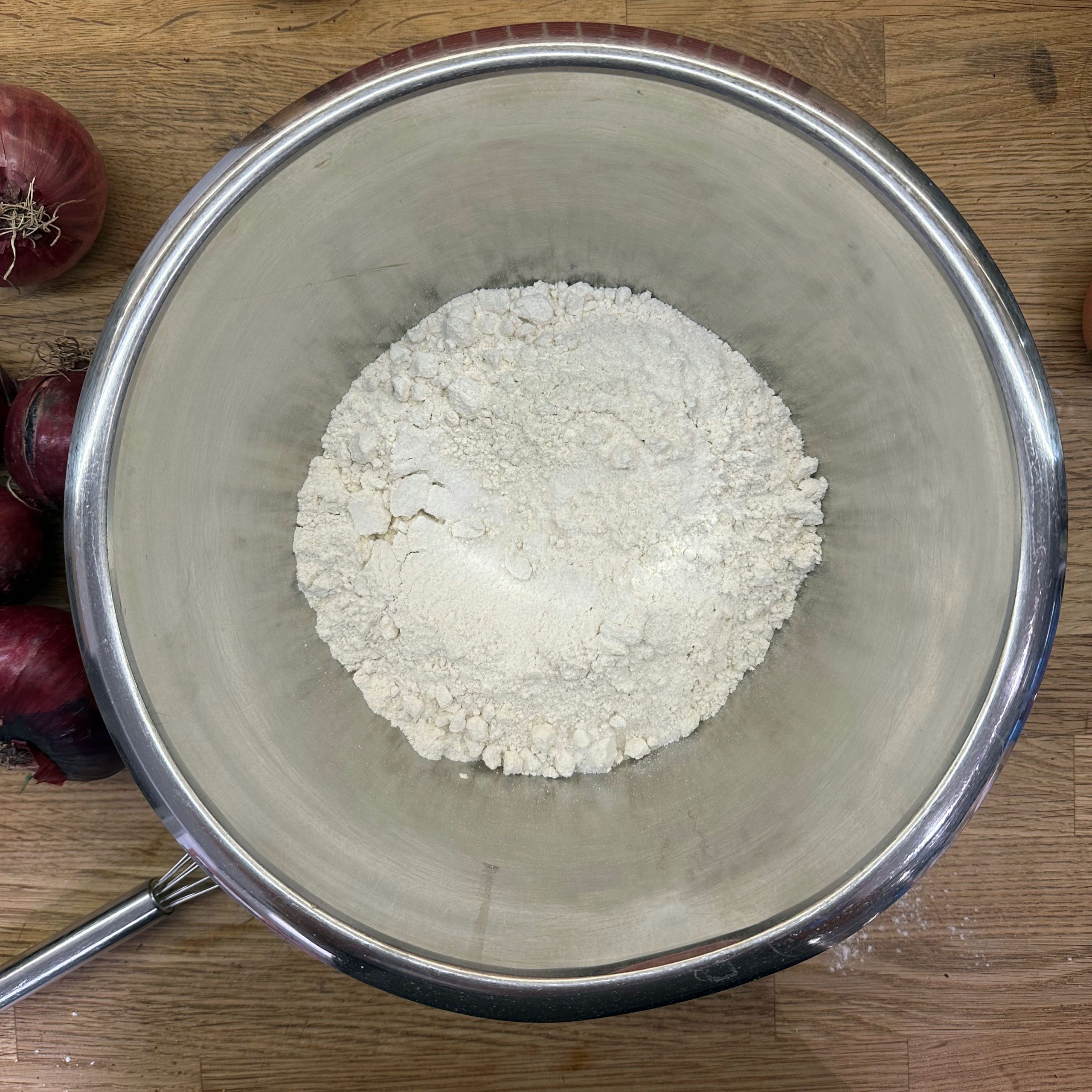 Für den Spätzleteig 200g Dinkelmehl, 200g Weizenmehl, 4 Eier und etwa 100ml Wasser gut verrühren, bis der Teig Blasen schlägt. Den Teig durch ein Spätzlesieb in kochendes Salzwasser schaben, 4 Minuten ziehen lassen und abschütten. 5-6 rote Zwiebeln schälen, in Streifen schneiden und in einer Pfanne bei geringer Hitze etwa 50 Minuten braun backen, am Ende 2 TL getrockneten Thymian und Salz unterrühren. Die Spätzle in einem Topf mit den Röstzwiebeln, 1 Glas Sauerkraut (ca. 300g), 80g geriebenem Bergkäse und 200ml Hafersahne verrühren, in eine Tarteform geben und mit 200g geriebenem Bergkäse bestreuen. Im vorgeheizten Ofen bei 200°C 20 Minuten backen und am Ende 4 Minuten grillen, bis die Oberfläche goldbraun ist. Für den Radicchio-Salat 1 Radicchio-Kopf in Streifen schneiden und in einer Pfanne mit Olivenöl scharf anbraten, bis er gebräunt ist, dann mit 3 EL Balsamico-Essig, 2 EL Ahornsirup, Sojasoße, Salz und Pfeffer marinieren. Einen Tomatensalat aus 100g Kirschtomaten zubereiten. Tomaten kleinschneiden und mit 3 EL Olivenöl, 1 EL Balsamico-Essig und Salz marinieren. Die überbackenen Sauerkrautspätzle mit dem gebratenen Radicchio-Salat und dem Kirschtomatensalat servieren.