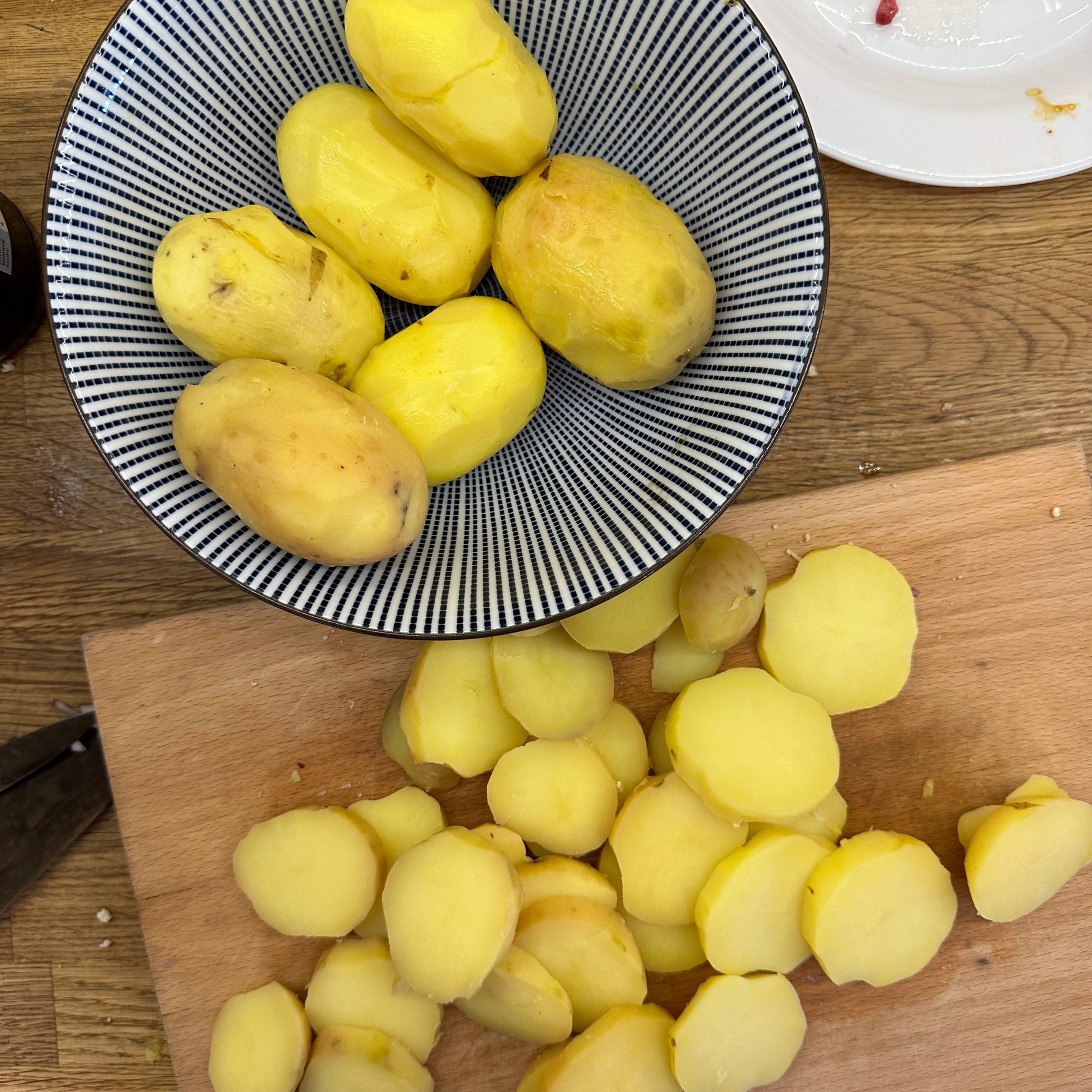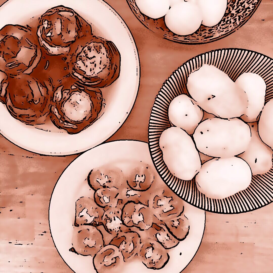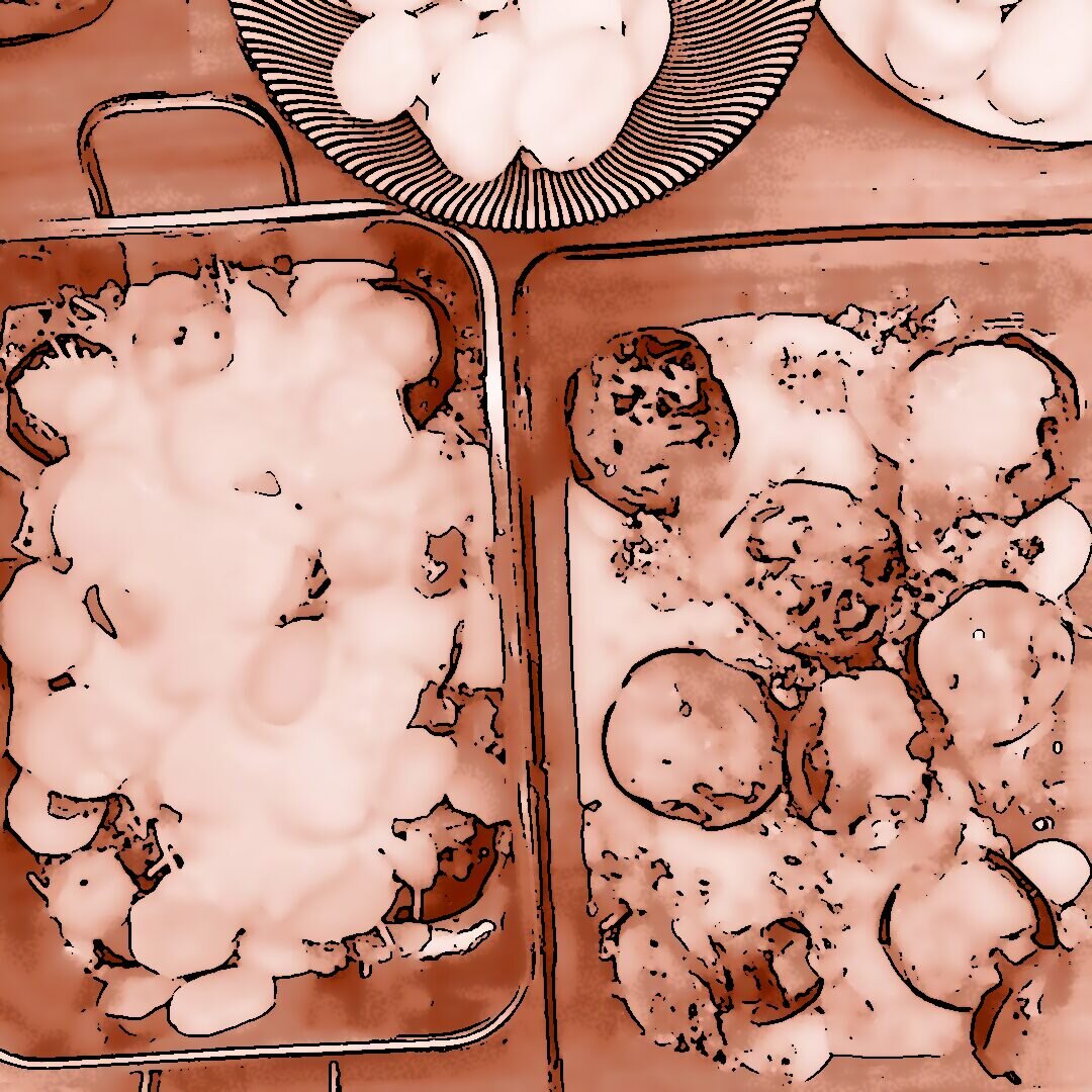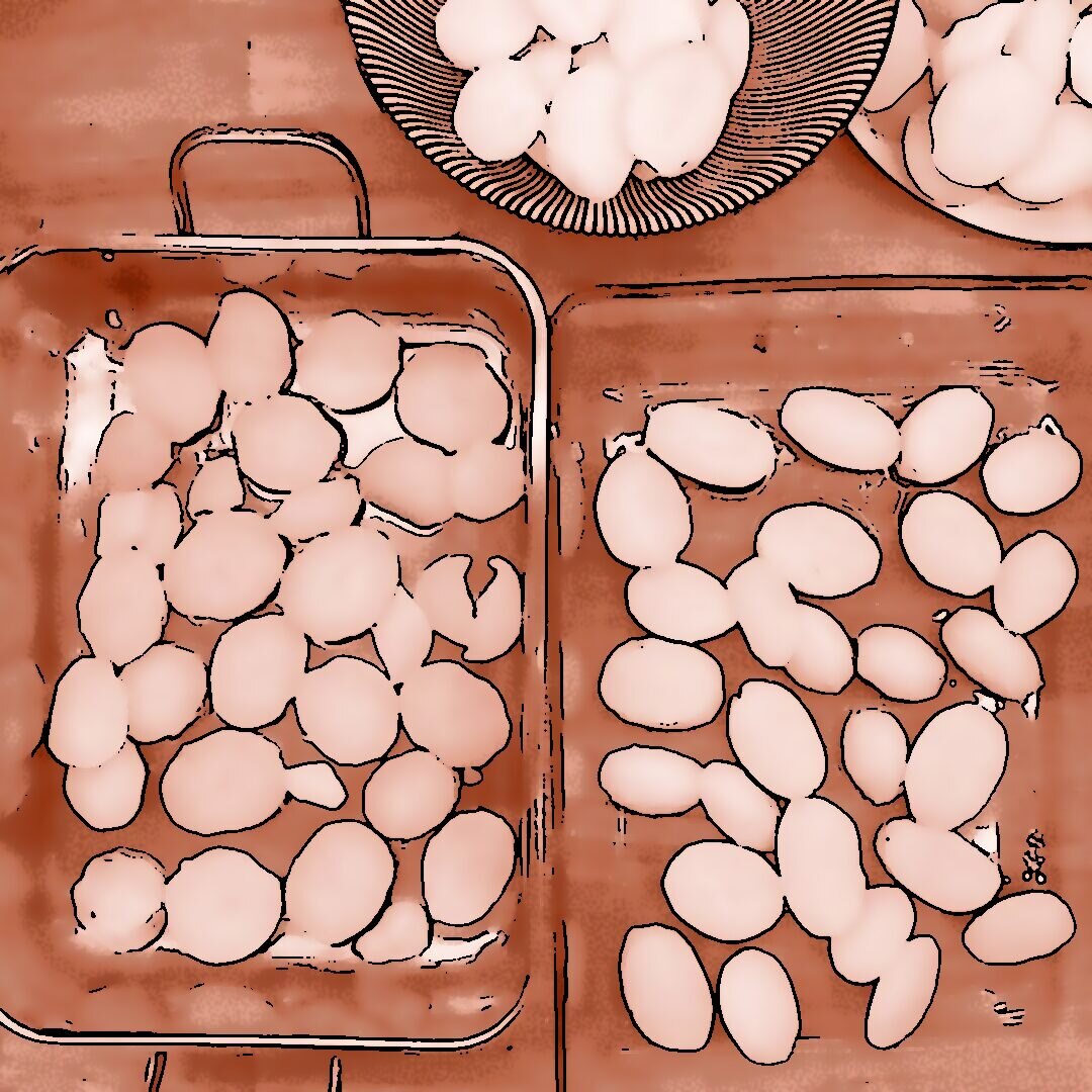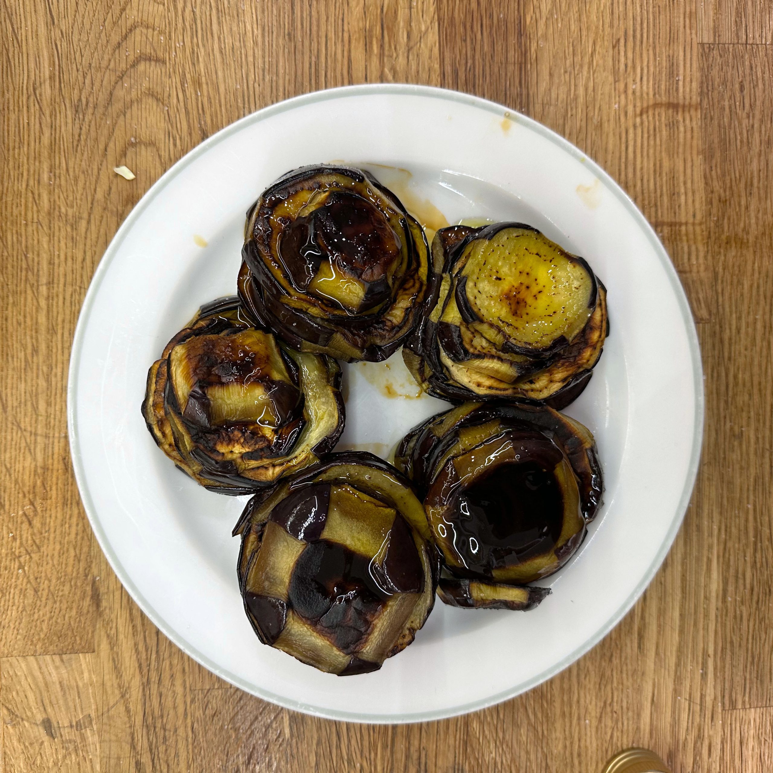Am Vortag die Vorbereitung: 3 große Auberginen in etwa 1 cm dicke Scheiben schneiden, mit Salz bestreuen, 30 Minuten entwässern lassen, trocken tupfen und einzeln in Öl goldbraun braten, dann übereinander gestapelt mit Olivenöl beträufelt im Kühlschrank lagern. 1,5kg Kartoffeln in der Schale kochen, ausgedampft über Nacht im Kühlschrank lagern, am nächsten Tag schälen und in Scheiben schneiden. 600g Tofu zerkrümeln, in 2 Portionen scharf anbraten, 2 EL Tomatenmark und 50ml Wasser hinzufügen und mit Salz, Sojasoße, normalem und geräuchertem Paprikapulver, Thymian, Kräutern der Provence, Majoran und Bruschettagewürz würzen. 1l Bechamelsoße mit Milch und 0,5l Bechamelsoße mit Pflanzenmilch zubereiten. 8 Tomaten schälen, halbieren, entkernen und im Ofen backen. Zwei Auflaufformen mit Öl einpinseln und abwechselnd schichten: Kartoffelscheiben, Tofuhack, Auberginenscheiben, geröstete Tomaten, in die eine Form zusätzlich Käse und Milch-Bechamel, in die andere die Pflanzenmilch-Bechamel. Zwei Schichten aufbauen, die oberste mit Auberginenscheiben abschließen und mit der restlichen Bechamelsoße gut bedecken. Mit Alufolie oder Deckel bei 230°C Umluft 30 Minuten backen, dann weitere 25 Minuten ohne Deckel bei 200°C. Die vegetarische Version am Ende noch mit Käse bestreuen und weitere 5 Minuten backen. Vor dem Servieren 20 Minuten stehen lassen.