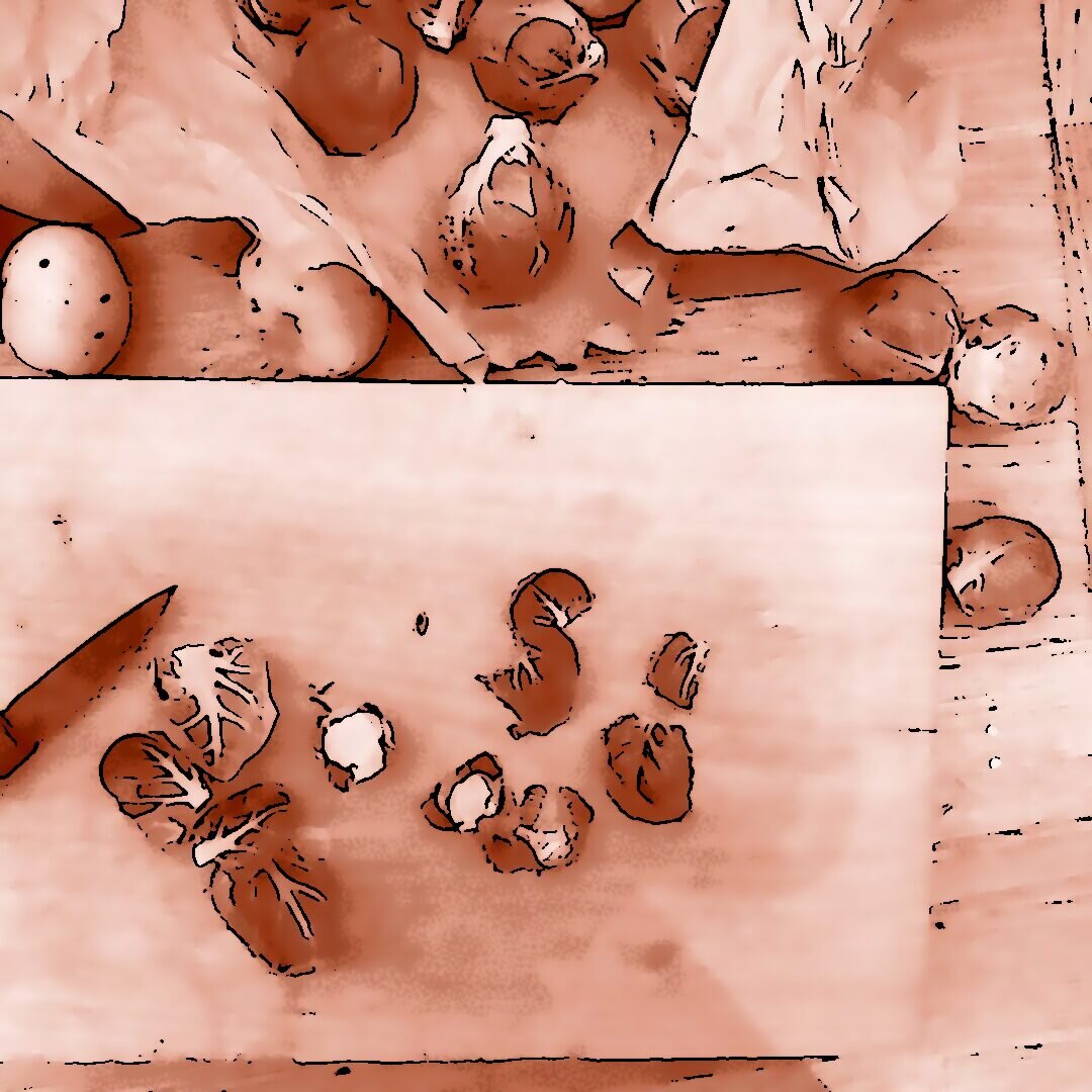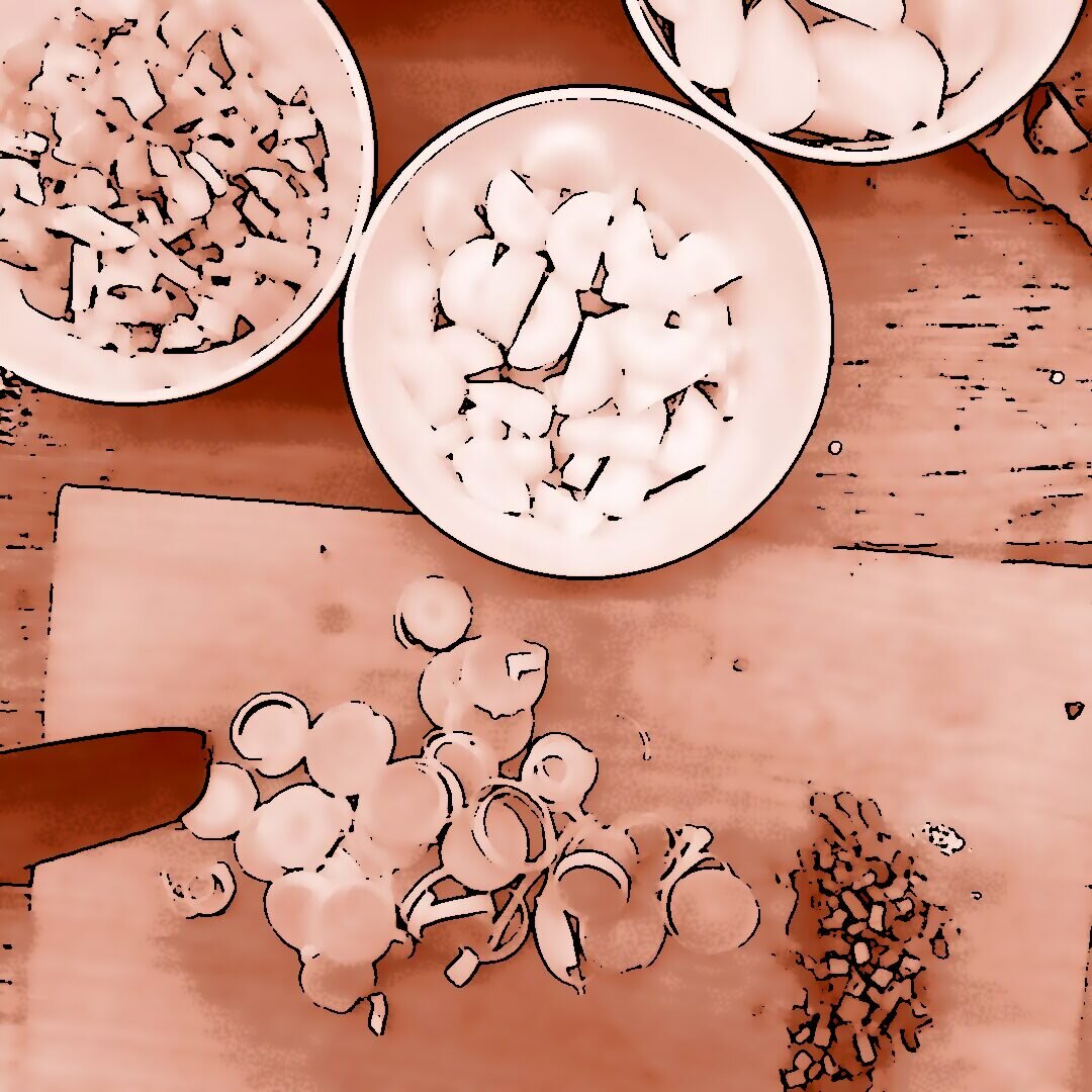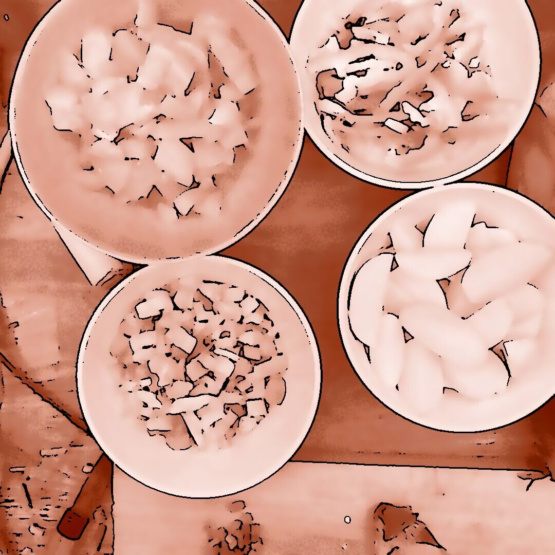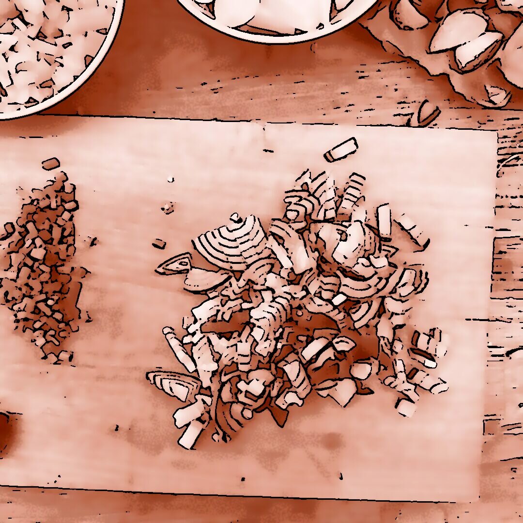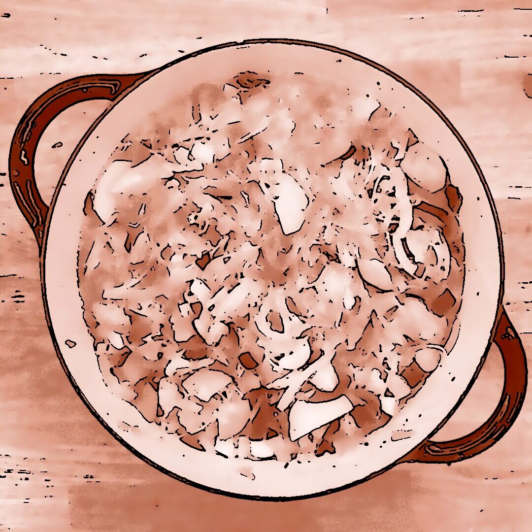 2 Zwiebeln würfeln und in Olivenöl anbraten, 3 Stangen Sellerie in Scheiben hinzufügen und mitbraten, dann 2 Möhren in Halbmonden und 6 kleine Kartoffeln geviertelt unterrühren. Rosenkohl putzen, vierteln. 3 Tomaten mit kochendem Wasser übergießen, häuten, würfeln und mit 5 kleingeschnittenen getrockneten Tomaten zugeben, mit 100ml Weißwein ablöschen und getrocknete Kräuter, Thymian, Fenchelsamen, 0,5 Lauchstange in Scheiben und 2 Lorbeerblätter einrühren. Mit 700ml Brühe auffüllen, Rosenkohl zusammen mit vorher kräftig gebratenen Auberginenwürfeln zugeben, Saft von 1 Zitrone einrühren und mit geschlossenem Deckel 12min köcheln lassen. 1 Zucchini würfeln, zugeben und 10min weiterköcheln lassen. In der Zwischenzeit 2 dicke Scheiben Sauerteigbrot ohne Rinde kleinzupfen und in einer Pfanne mit 4EL Olivenöl braun braten, Kapern und 4 Stängel gehackten Schnittlauch zugeben, 0,5 Zitrone abreiben und den Abrieb unterrühren, 30gr kleingeschnittene gemischte Oliven und 3EL Pinienkerne zugeben, salzen, kurz weiterbraten und als Topping beiseitestellen. 100gr kleine Pastanudeln am Ende in die Minestrone geben und 4min ziehen lassen, bis sie weich sind. Minestrone in Schüsseln füllen, mit dem Brot-Oliven-Topping bestreuen und mit saurer Sahne, Parmesan und gehackter roter Chili servieren.