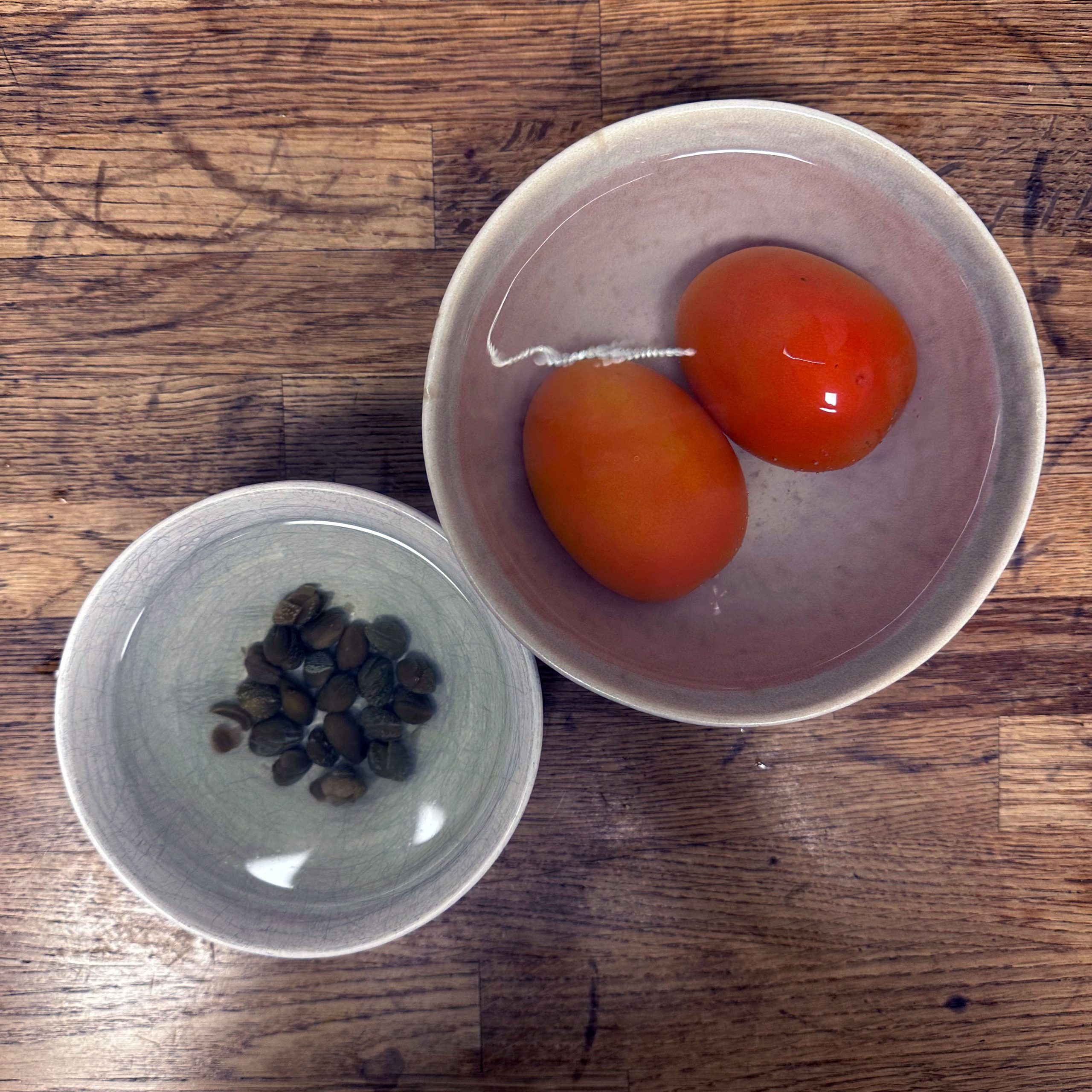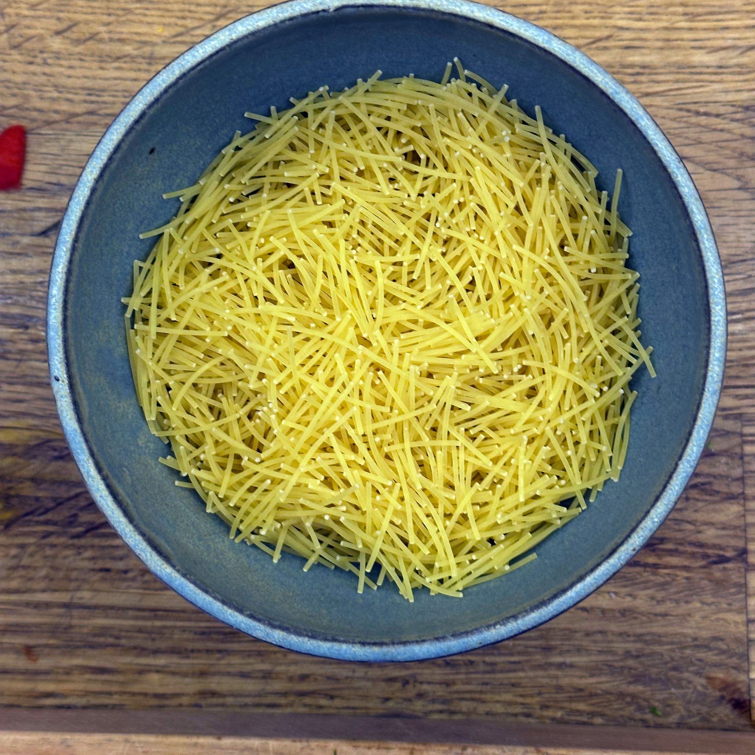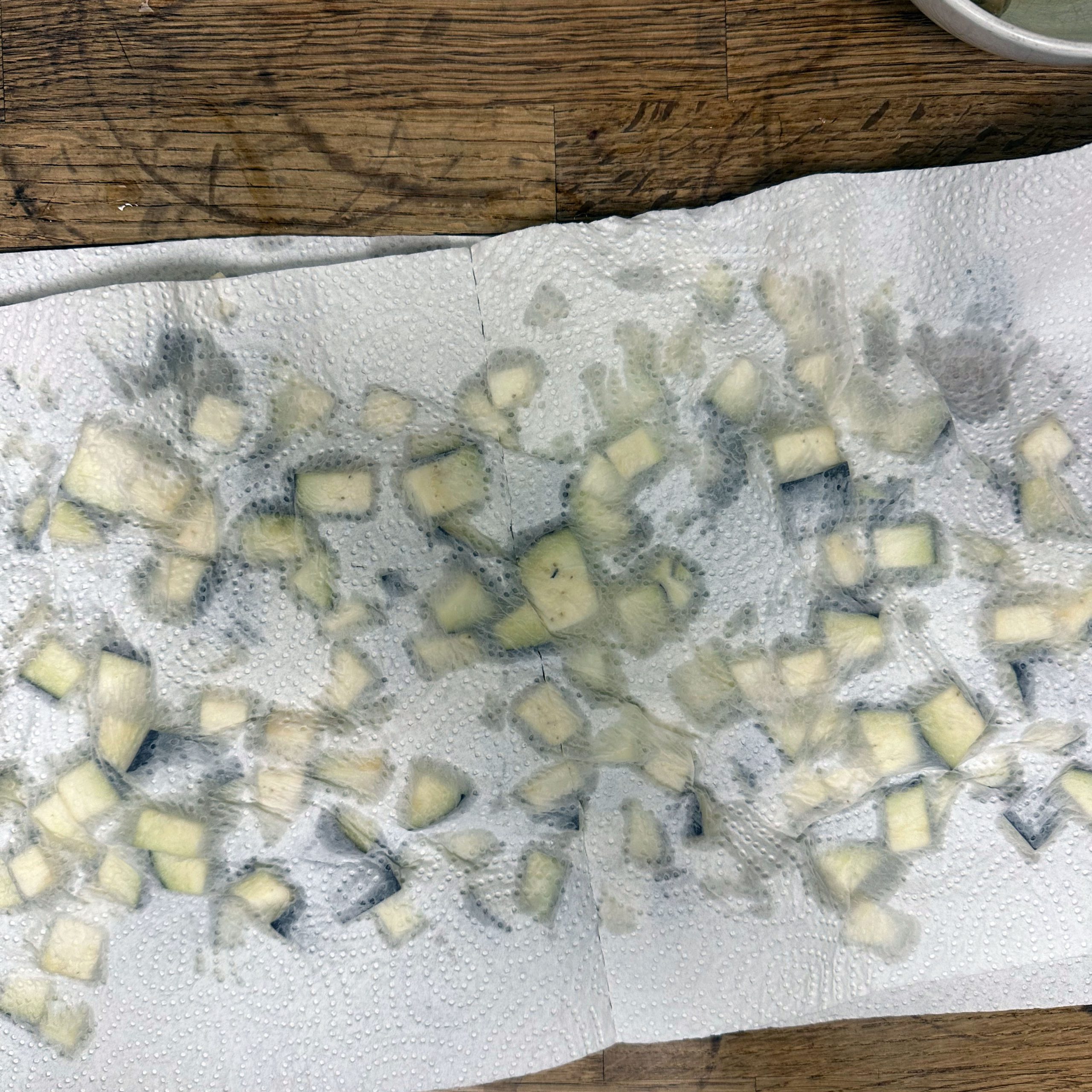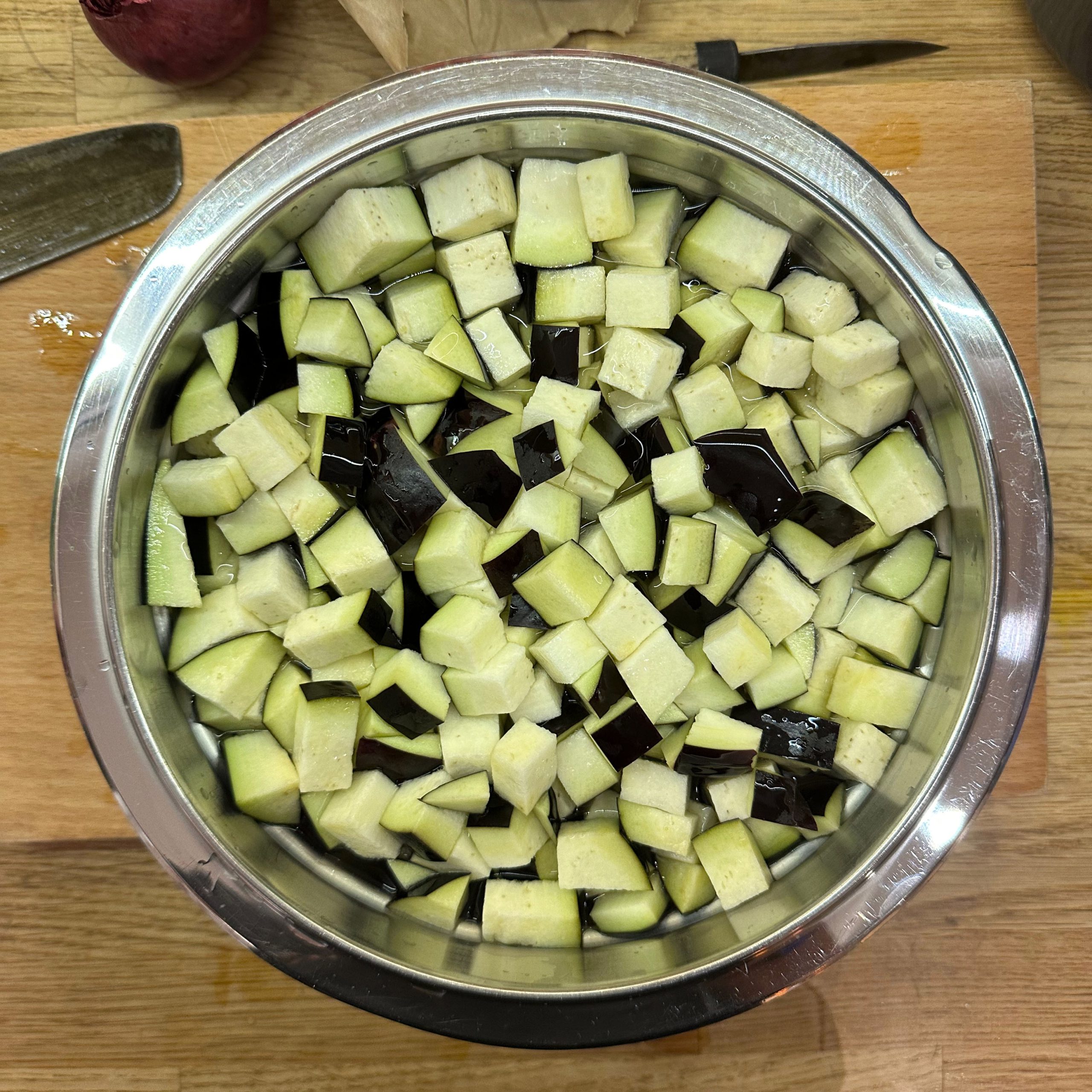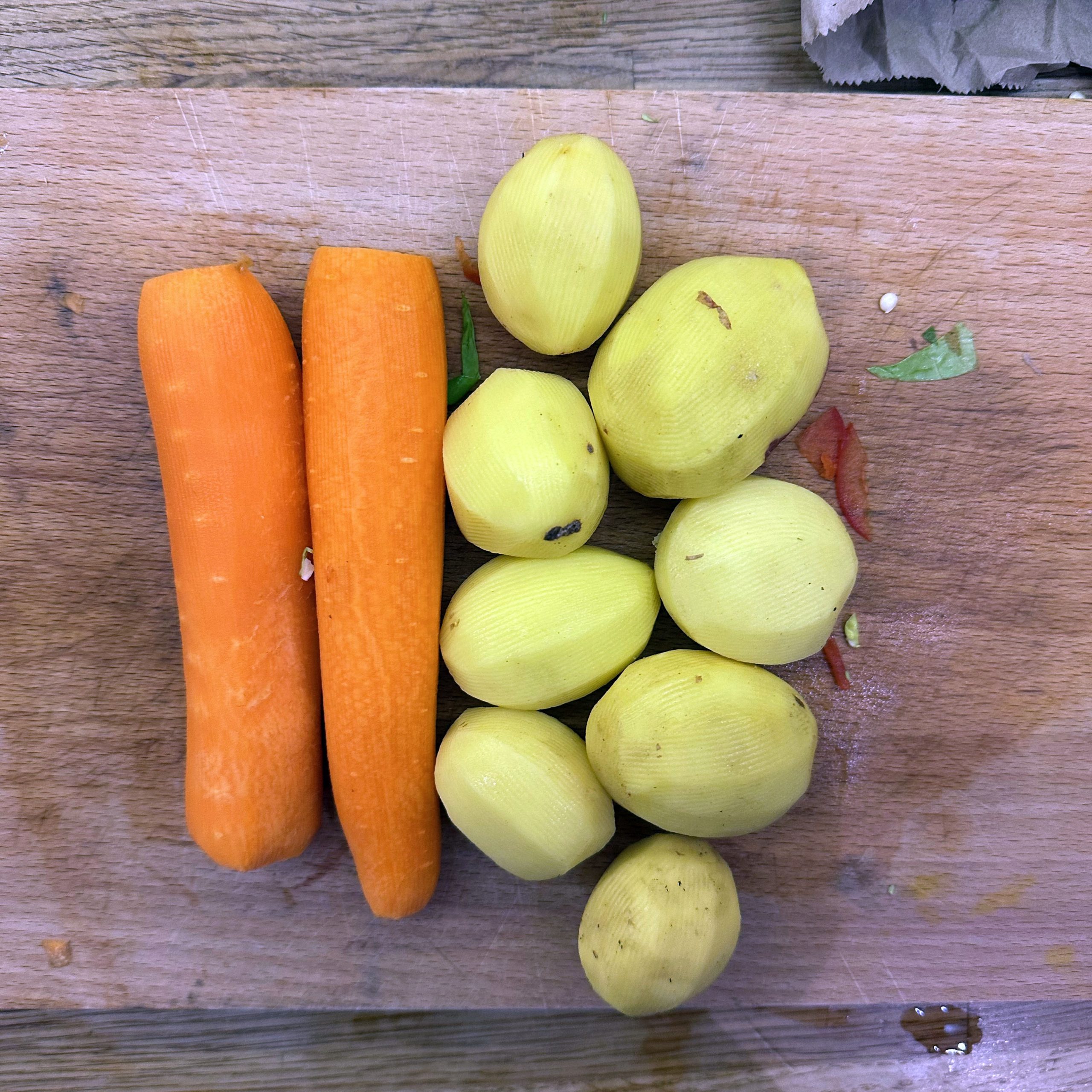 2 Zwiebeln würfeln und in Olivenöl anbraten, 3 Stangen Sellerie in Scheiben hinzufügen und mitbraten, dann 2 Möhren in Halbmonden und 6 kleine Kartoffeln geviertelt unterrühren. Rosenkohl putzen, vierteln. 3 Tomaten mit kochendem Wasser übergießen, häuten, würfeln und mit 5 kleingeschnittenen getrockneten Tomaten zugeben, mit 100ml Weißwein ablöschen und getrocknete Kräuter, Thymian, Fenchelsamen, 0,5 Lauchstange in Scheiben und 2 Lorbeerblätter einrühren. Mit 700ml Brühe auffüllen, Rosenkohl zusammen mit vorher kräftig gebratenen Auberginenwürfeln zugeben, Saft von 1 Zitrone einrühren und mit geschlossenem Deckel 12min köcheln lassen. 1 Zucchini würfeln, zugeben und 10min weiterköcheln lassen. In der Zwischenzeit 2 dicke Scheiben Sauerteigbrot ohne Rinde kleinzupfen und in einer Pfanne mit 4EL Olivenöl braun braten, Kapern und 4 Stängel gehackten Schnittlauch zugeben, 0,5 Zitrone abreiben und den Abrieb unterrühren, 30gr kleingeschnittene gemischte Oliven und 3EL Pinienkerne zugeben, salzen, kurz weiterbraten und als Topping beiseitestellen. 100gr kleine Pastanudeln am Ende in die Minestrone geben und 4min ziehen lassen, bis sie weich sind. Minestrone in Schüsseln füllen, mit dem Brot-Oliven-Topping bestreuen und mit saurer Sahne, Parmesan und gehackter roter Chili servieren.
