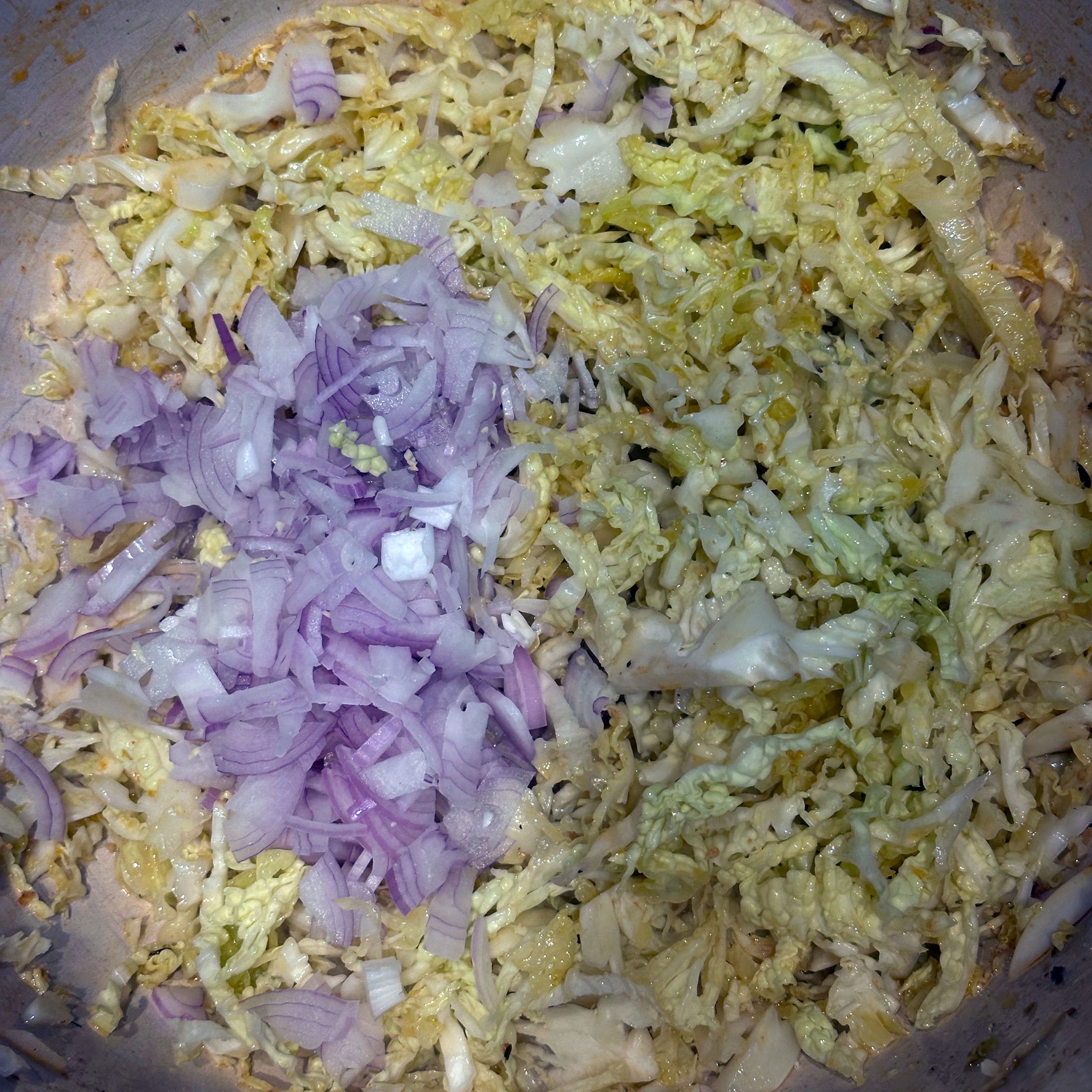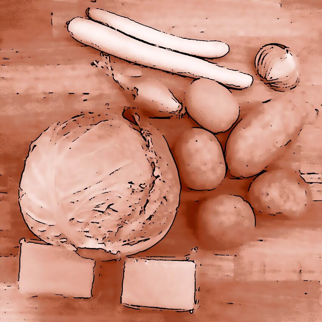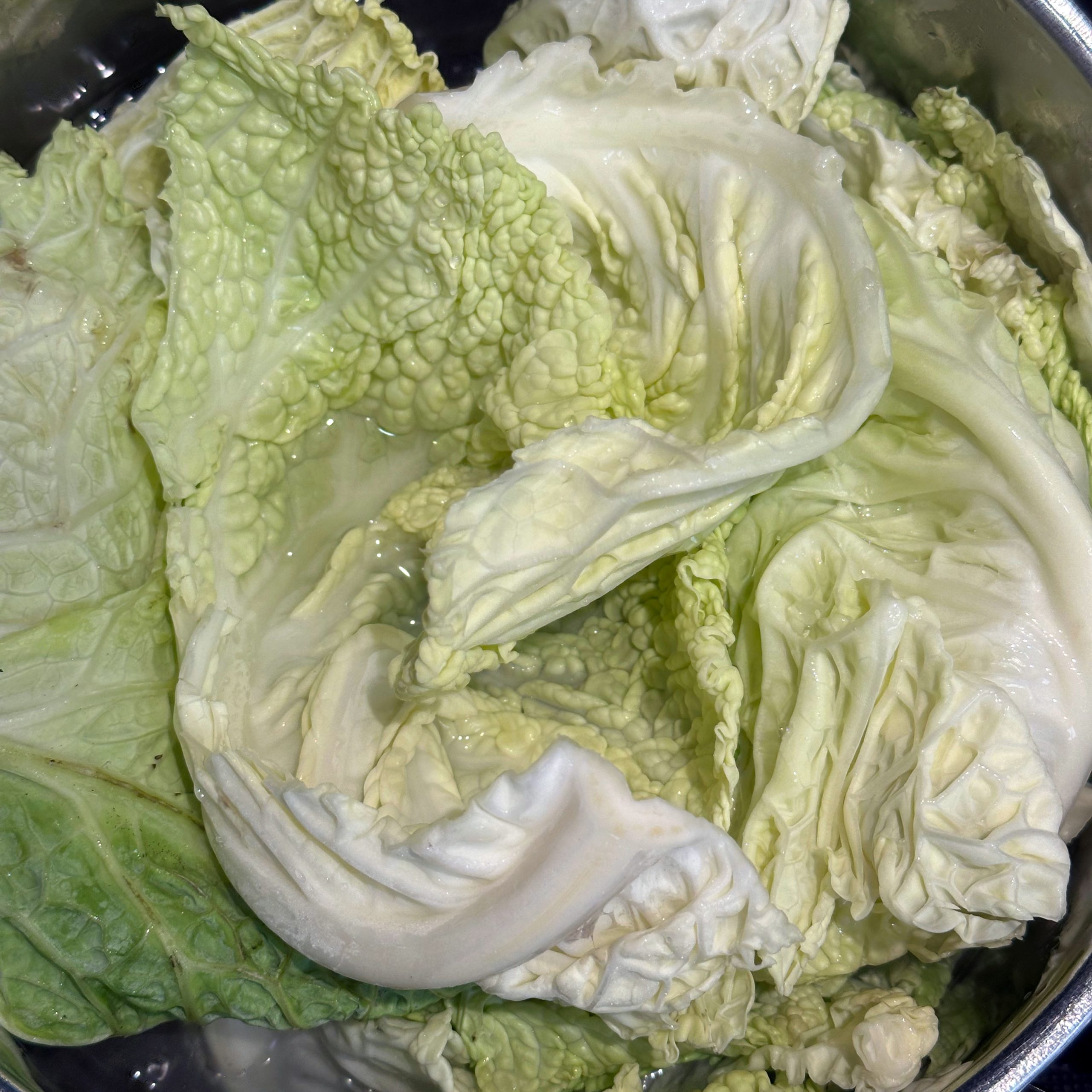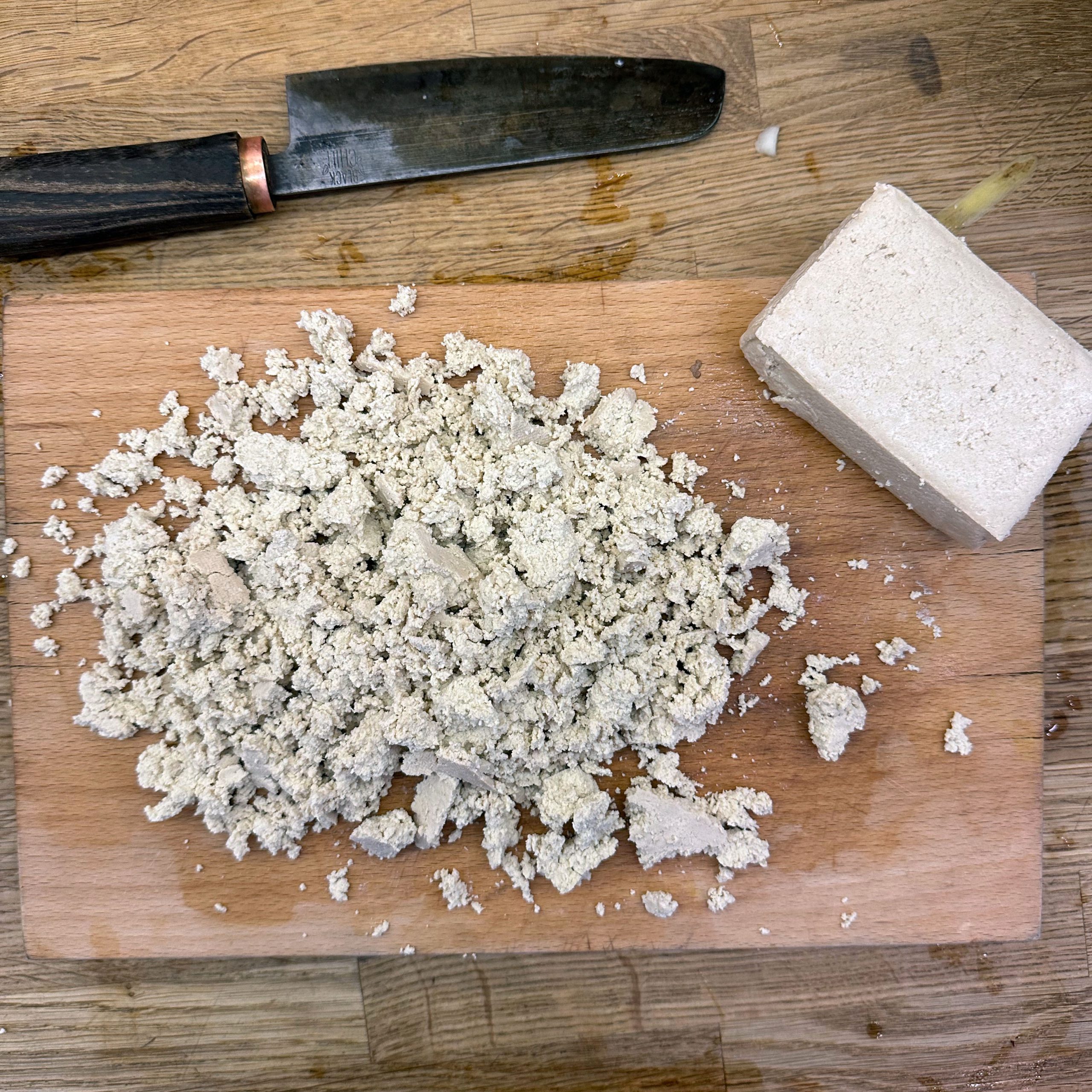 Die äußeren Wirsingblätter vom Strunk lösen, soweit möglich, den restlichen Wirsing in kleine Streifen schneiden. Die ganzen Blätter in kochendem Salzwasser blanchieren und abtropfen lassen. In dem gleichen Kochwasser 800g mehligkochende, geschälte und geviertelte Kartoffeln 20 Minuten garen. 400g Tofu zerbröseln und in Öl bei starker Hitze 10 Minuten braten, dabei gut umrühren, dann mit 80ml Brühe ablöschen und 2 EL Tomatenmark unterrühren. Mit getrockneten Kräutern, Sojasoße und geräuchertem Paprikapulver abschmecken und beiseite stellen. Im gleichen Topf 2 kleingeschnittene Zwiebeln und den gehackten Restwirsing anbraten, 2 gewürfelte Möhren hinzufügen. Die abgetropften Wirsingblätter in Streifen schneiden und mit ein paar Kümmelkörnern und 200ml Brühe zu dem Gemüse geben. Mit geschlossenem Deckel 10min köcheln lassen. Das vegane Hack unterrühren, mit Salz und Zitronensaft abschmecken und 1 Becher Sahne unterrühren, kurz erhitzen. Den Eintopf mit den gekochten Kartoffeln servieren.